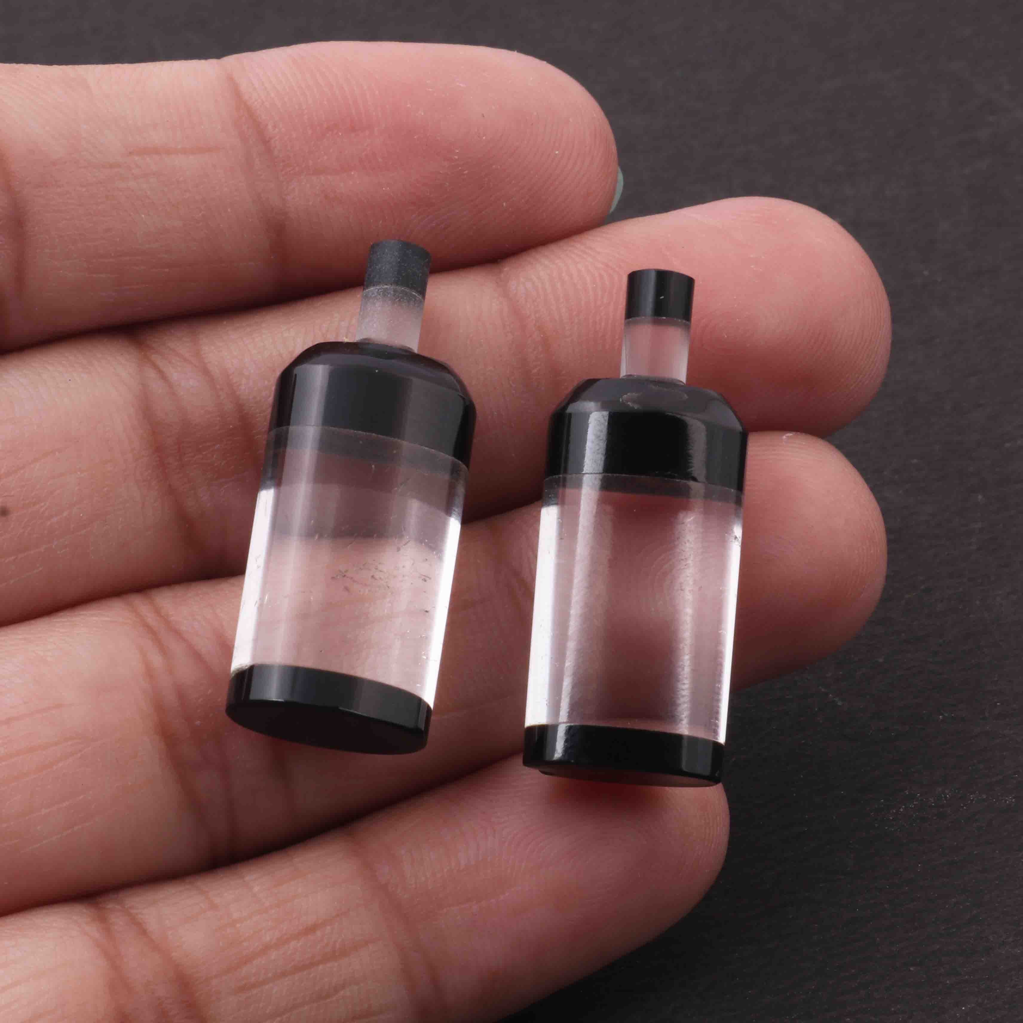 Matched Pairs Natural Crystal Quartz ,Black Onyx Joined Smooth Bottle Shape Loose Gemstone 30mmx12mm BG009