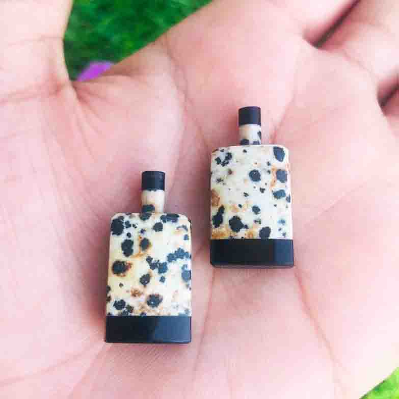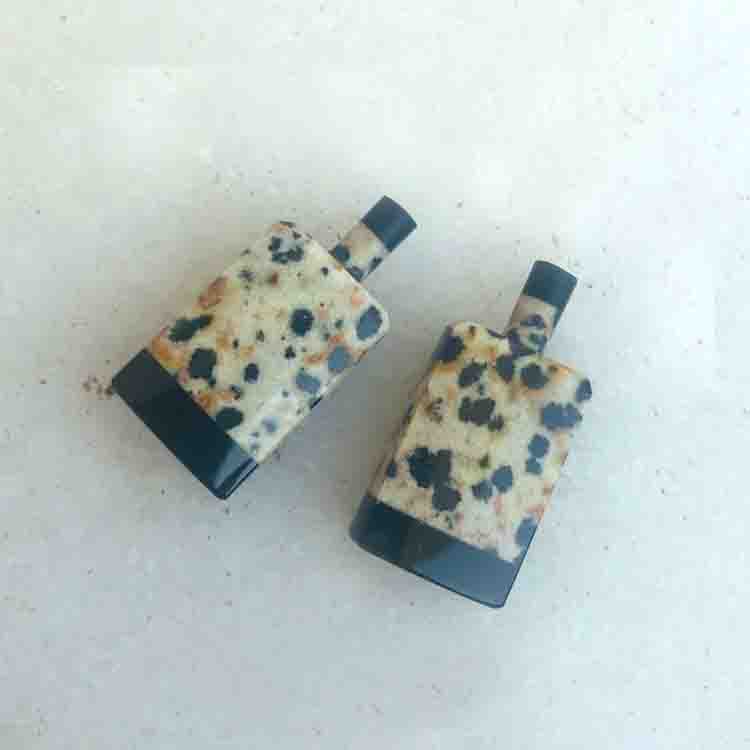 Matched Pairs Natural Dalmatian ,Black Onyx Joined Smooth Bottle Shape Loose Gemstone 28mmx13mm BG003