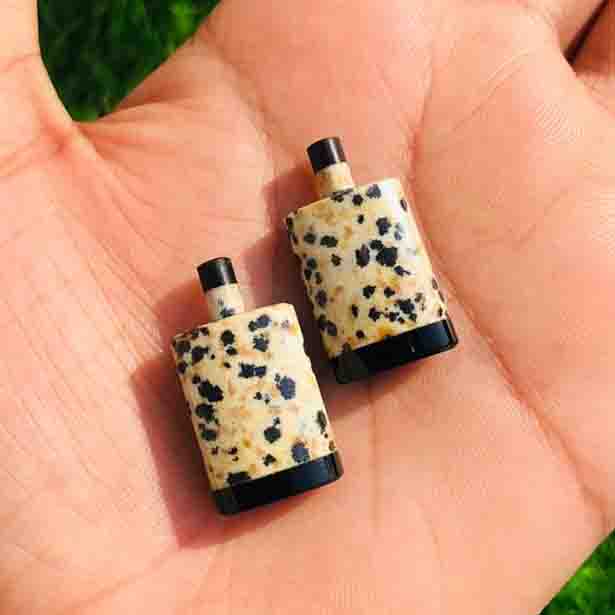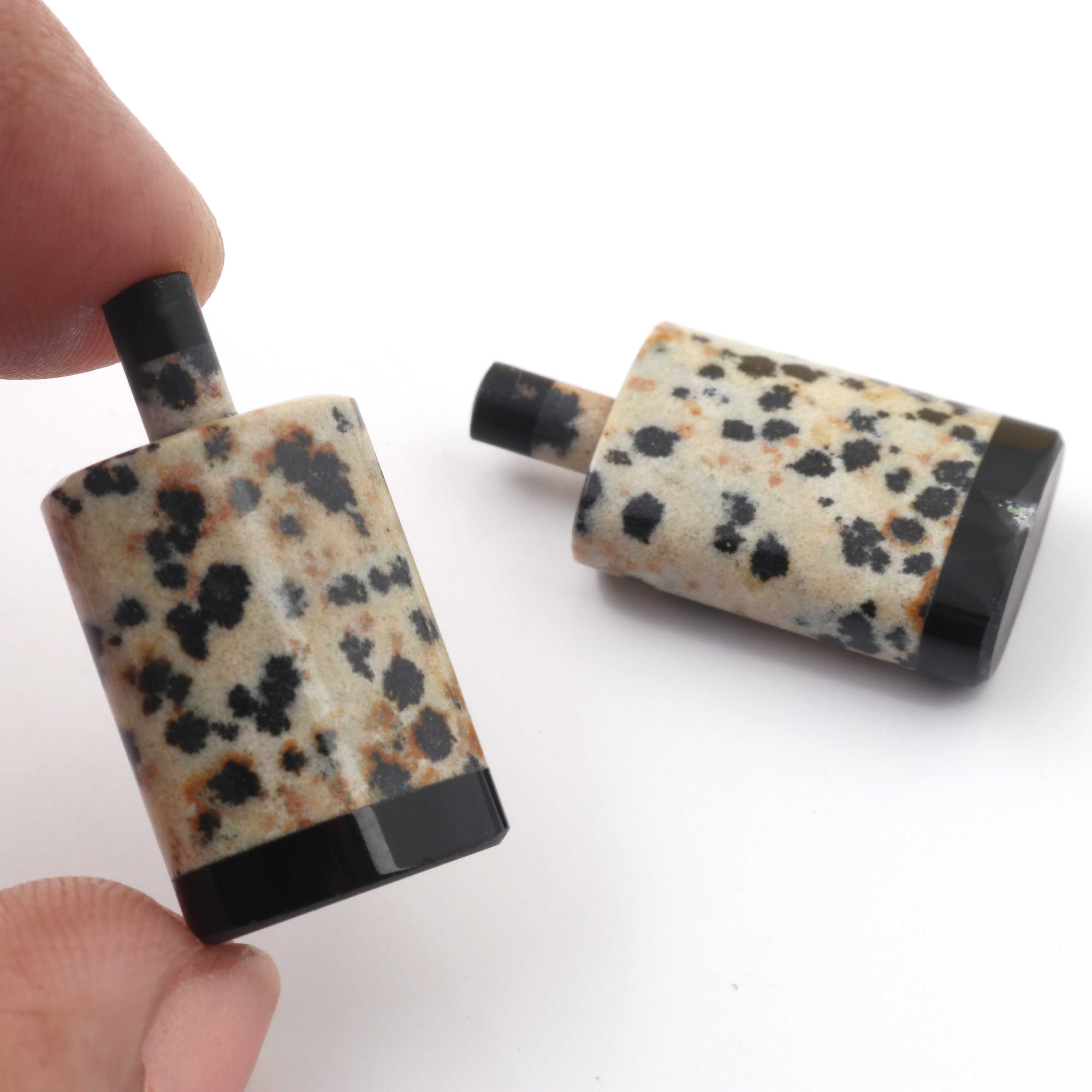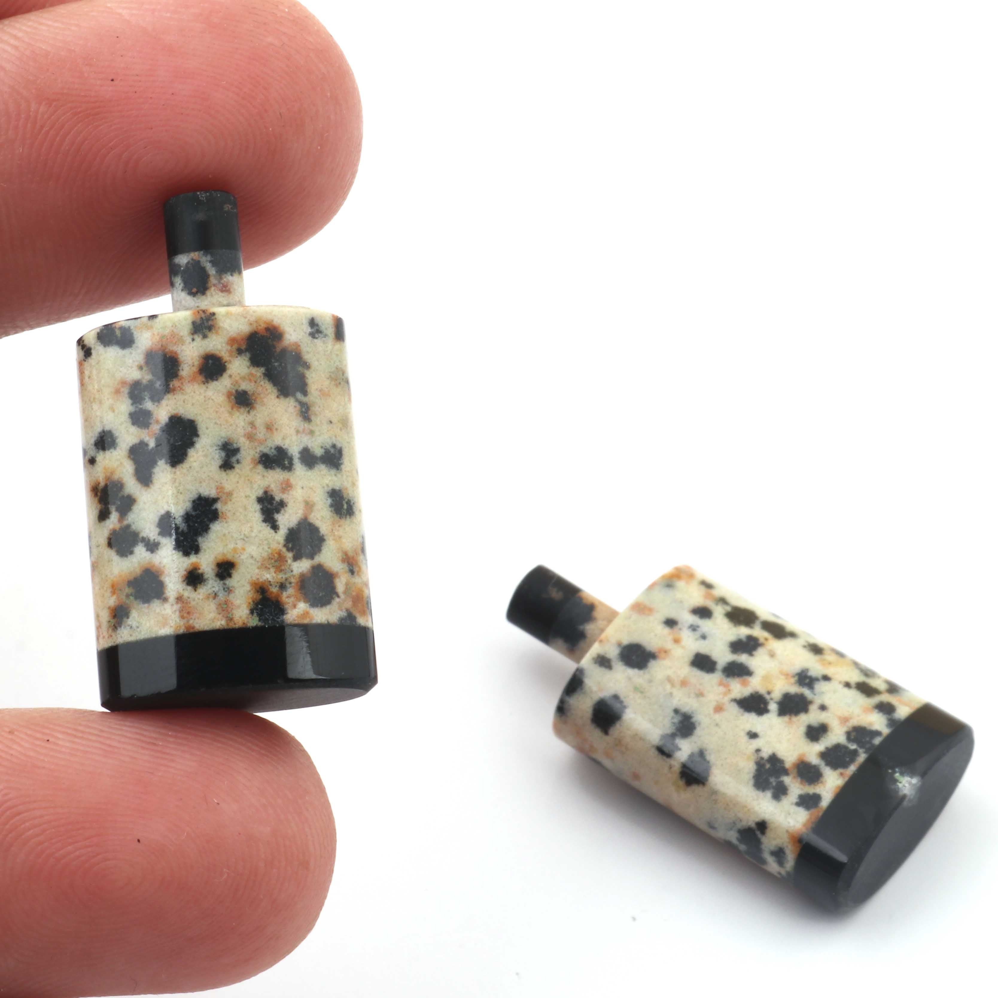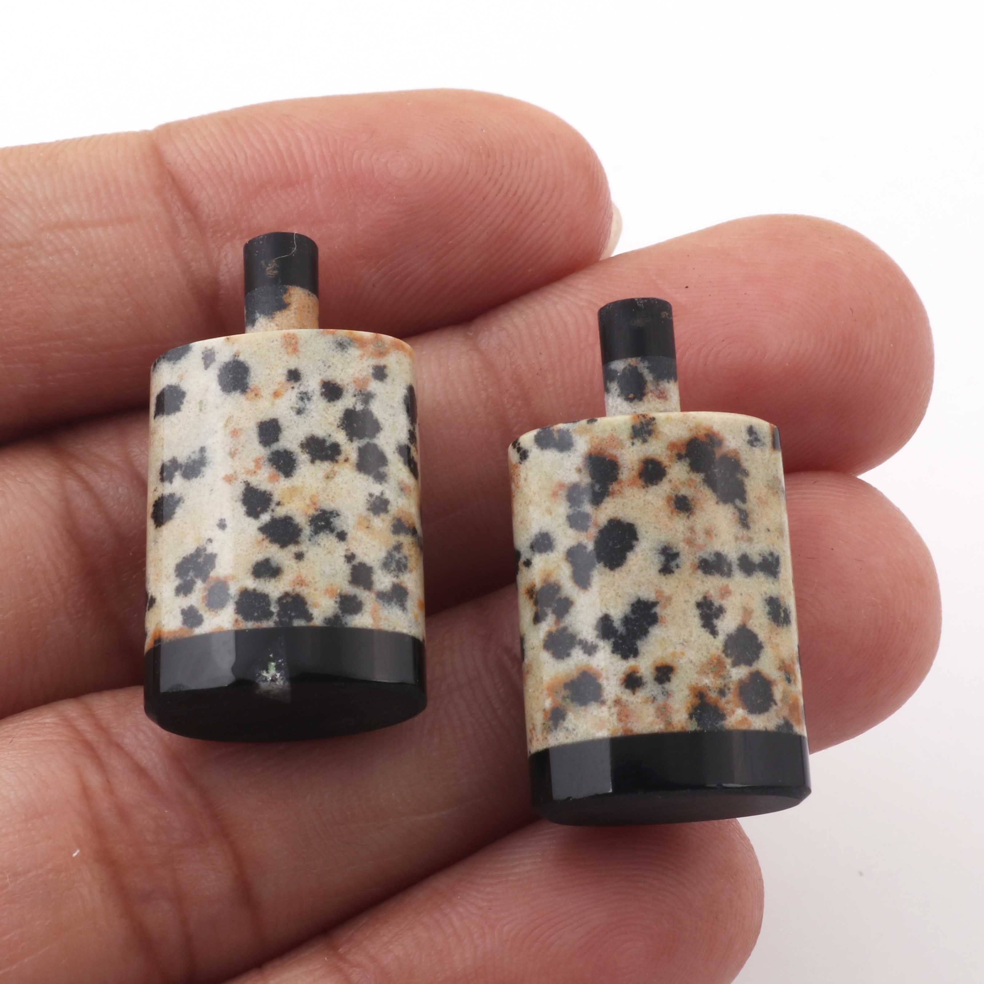 Matched Pairs Natural Dalmatian ,Black Onyx Joined Smooth Bottle Shape Loose Gemstone 27mmx14mm BG030