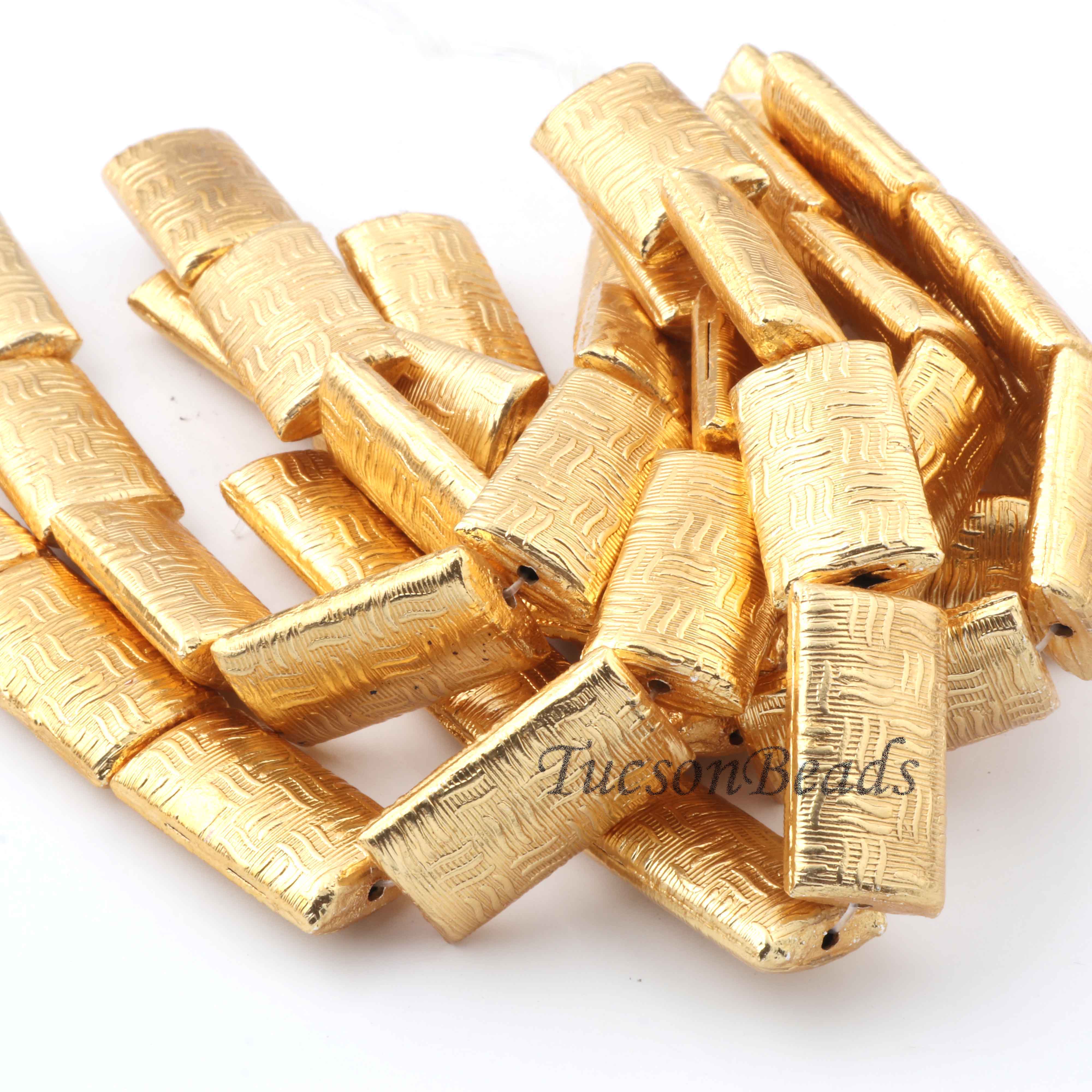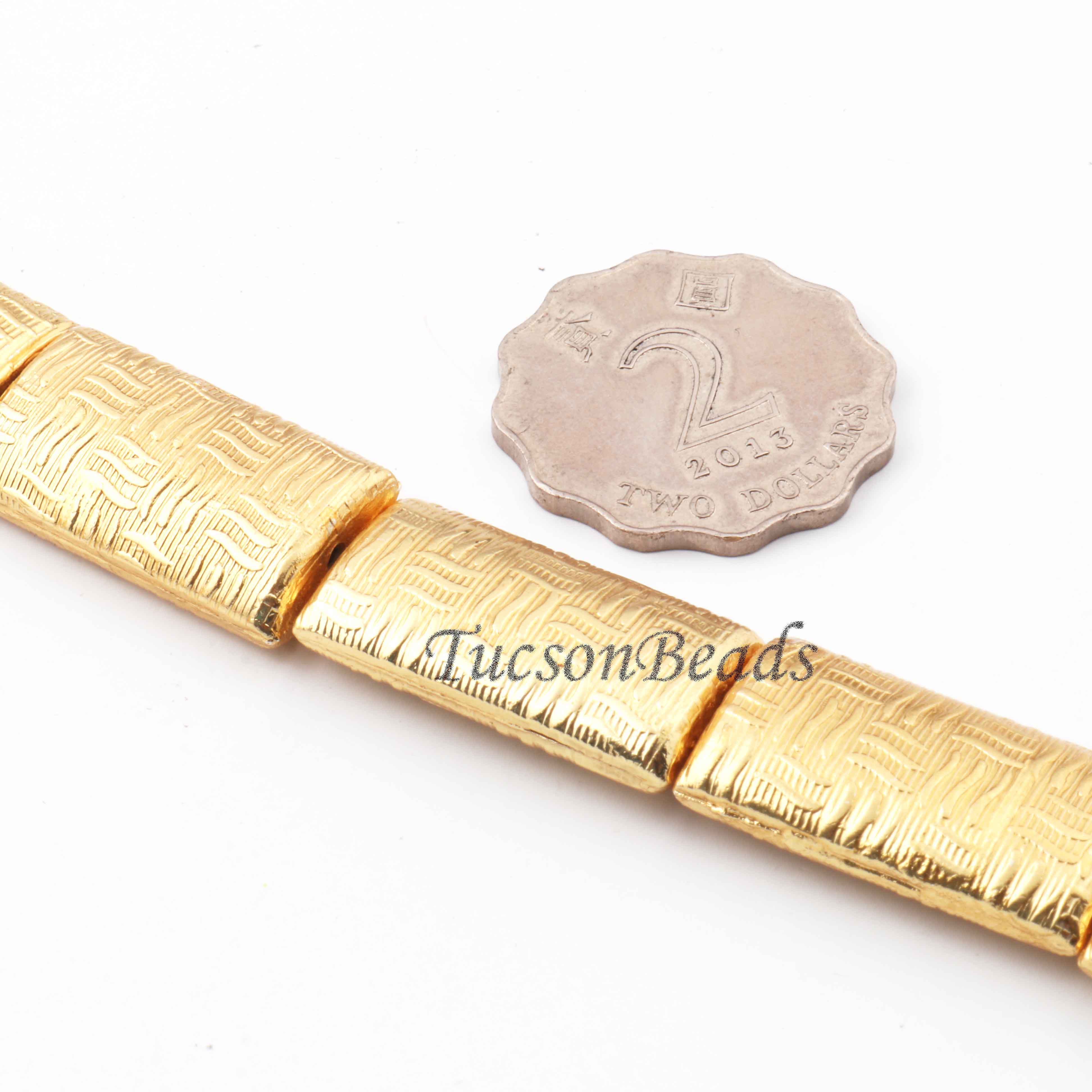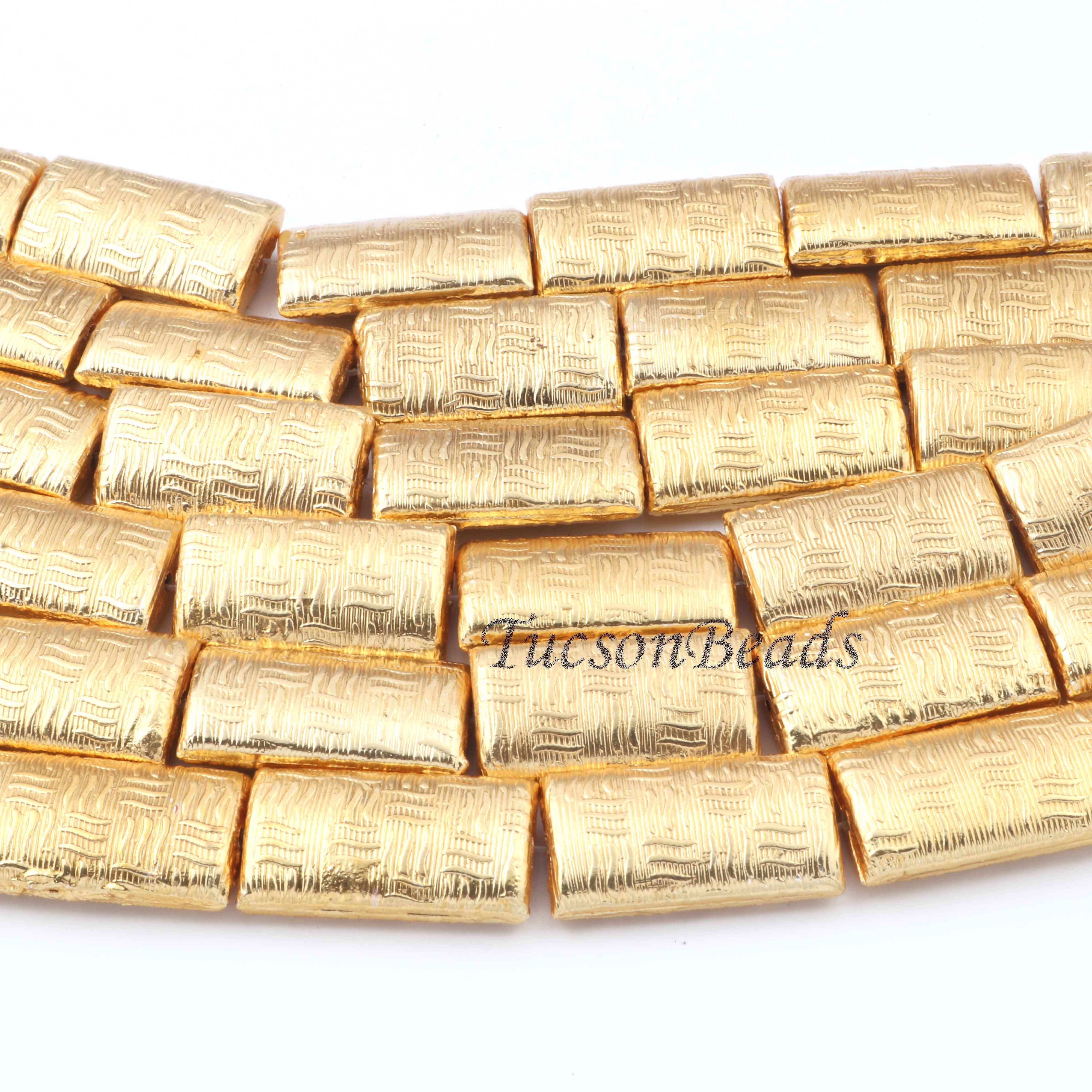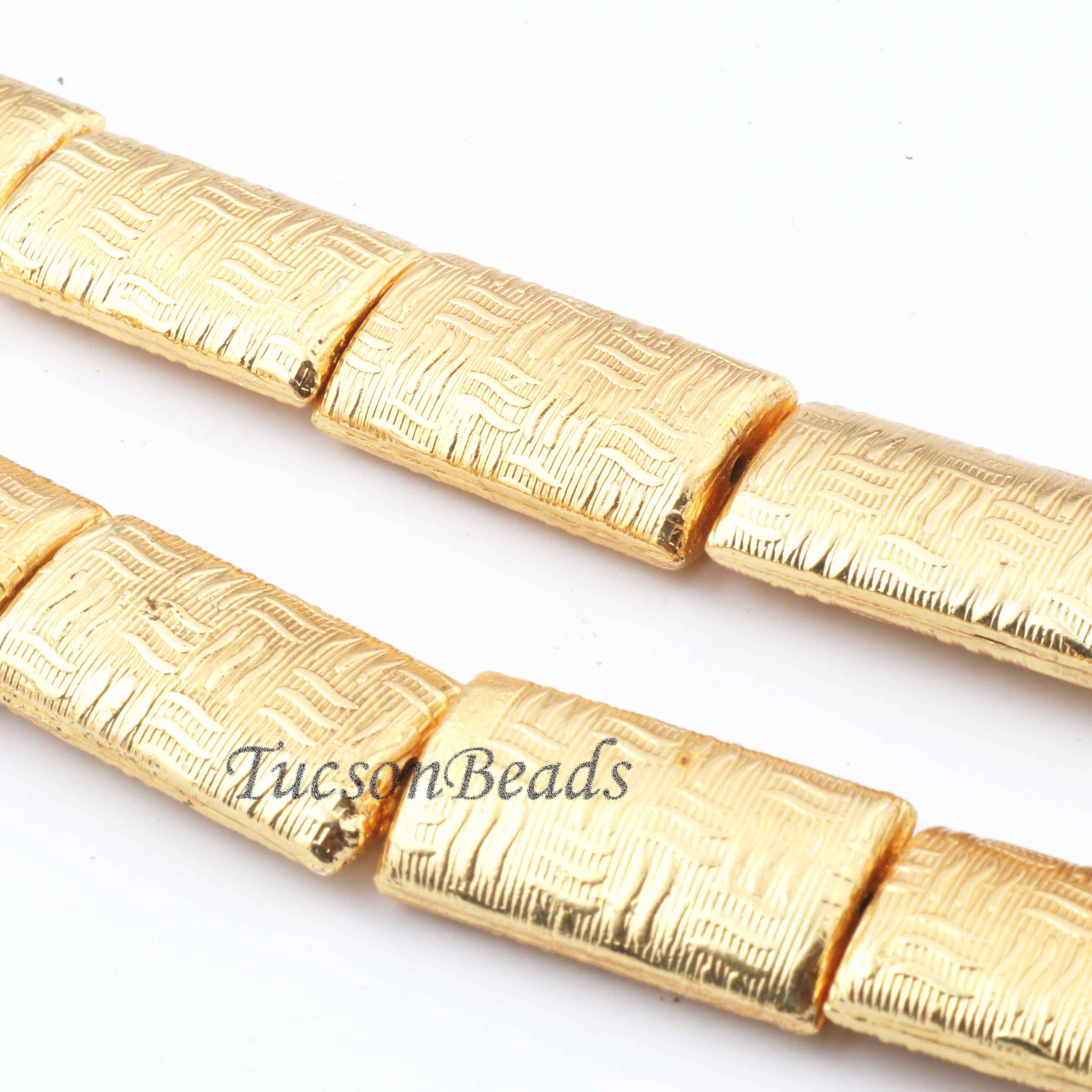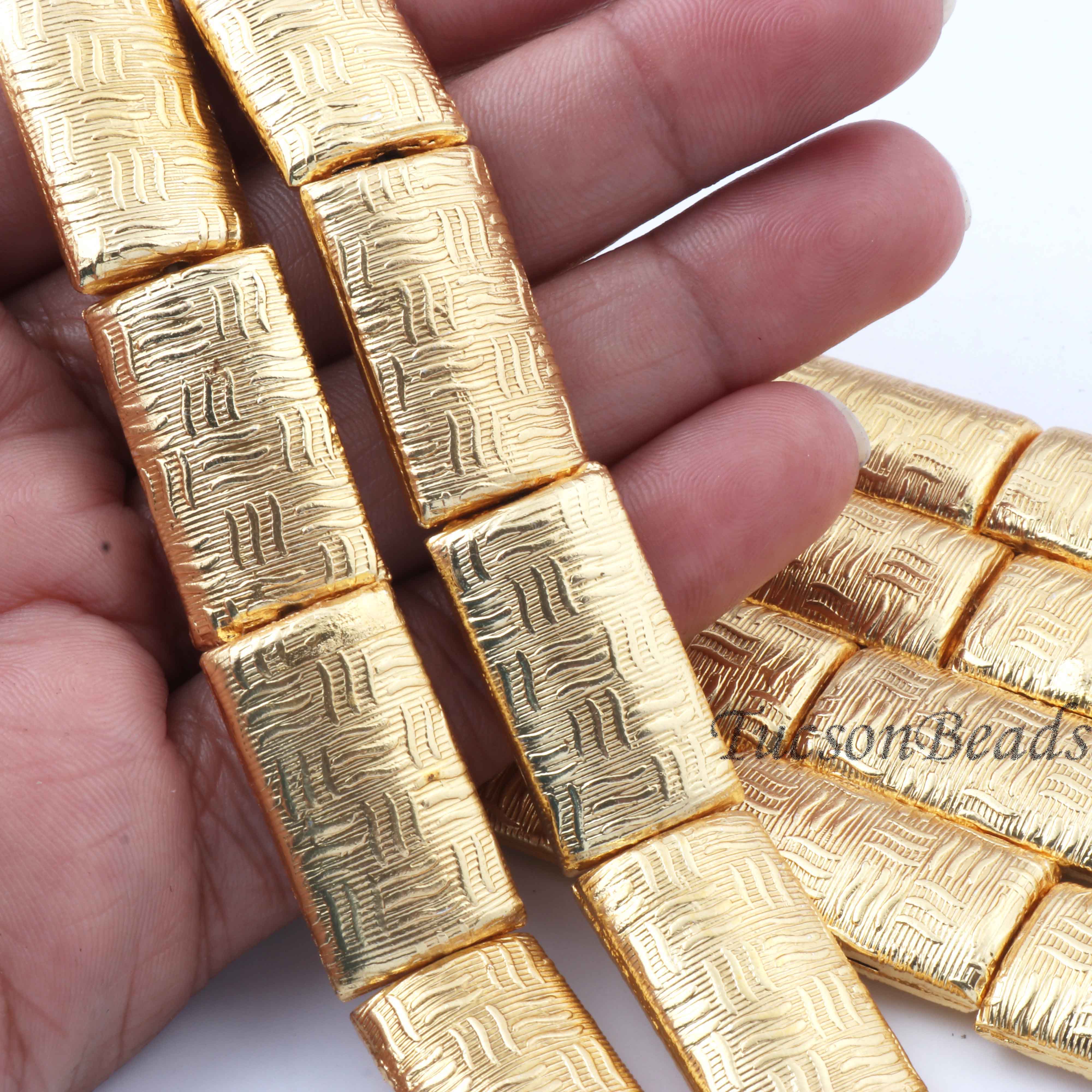 1 Strand 24k Gold Plated Designer Copper Casting Rectangle Shape Beads stamped gold plated - Copper Jewelry - 27mmx15mm - 8 Inches GPC0002
