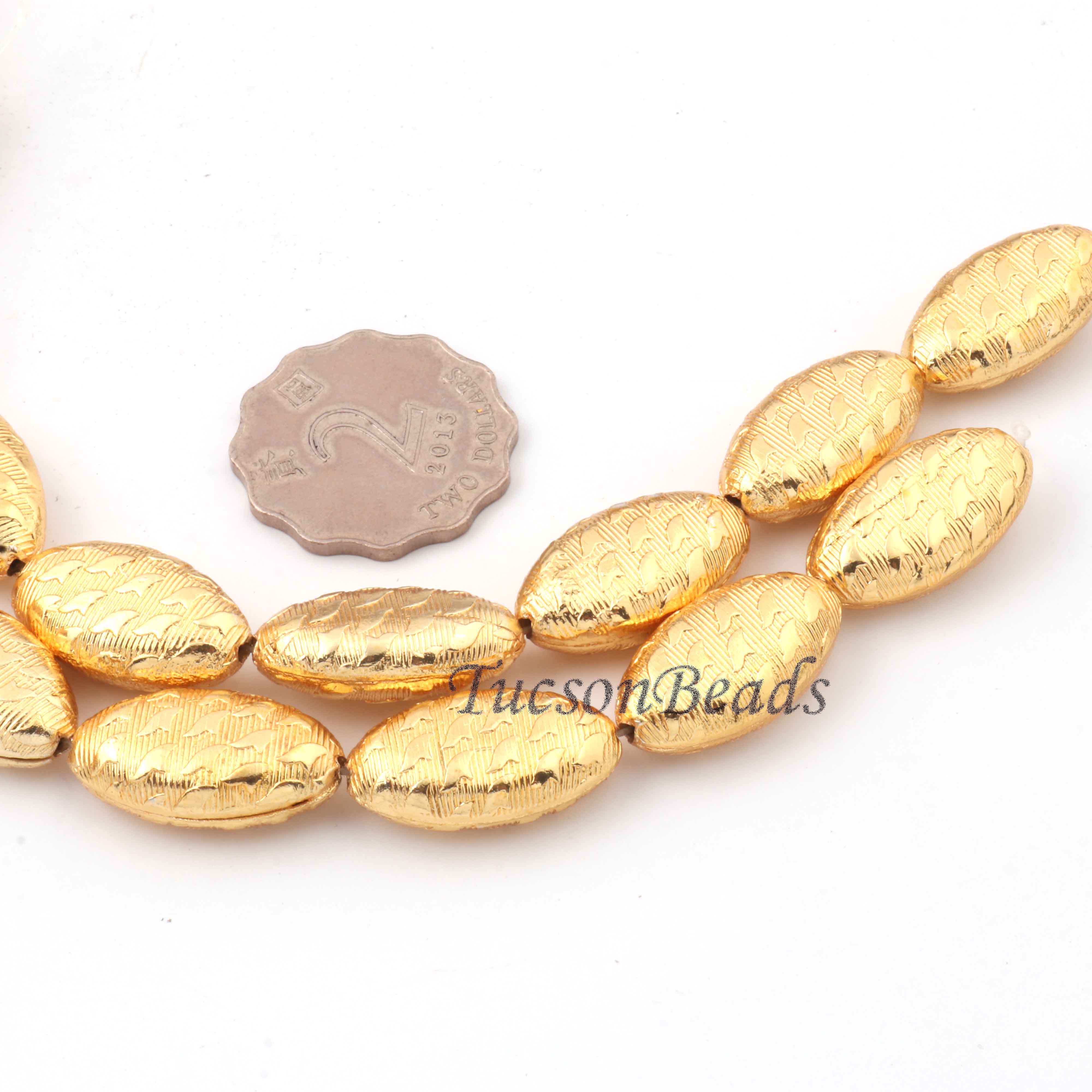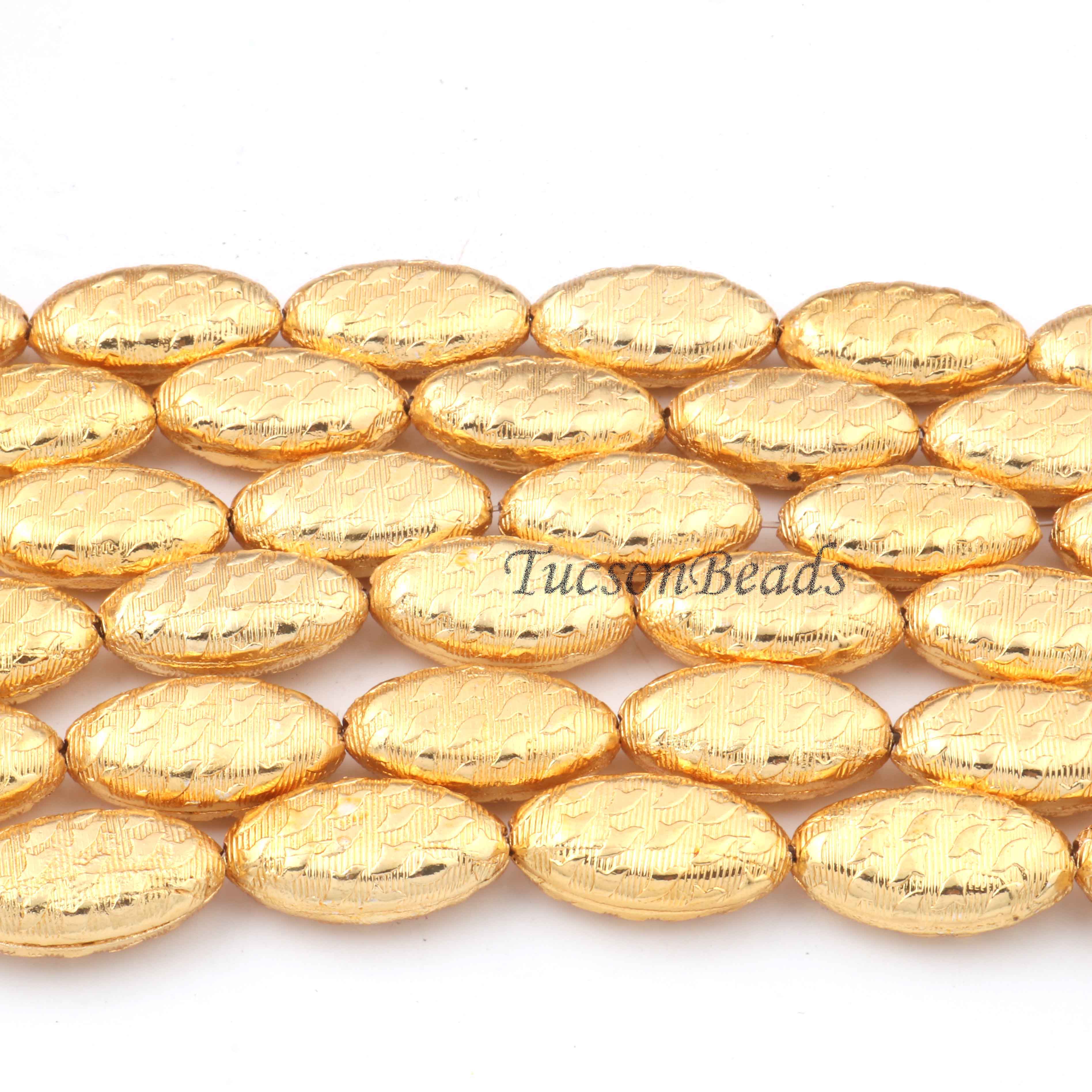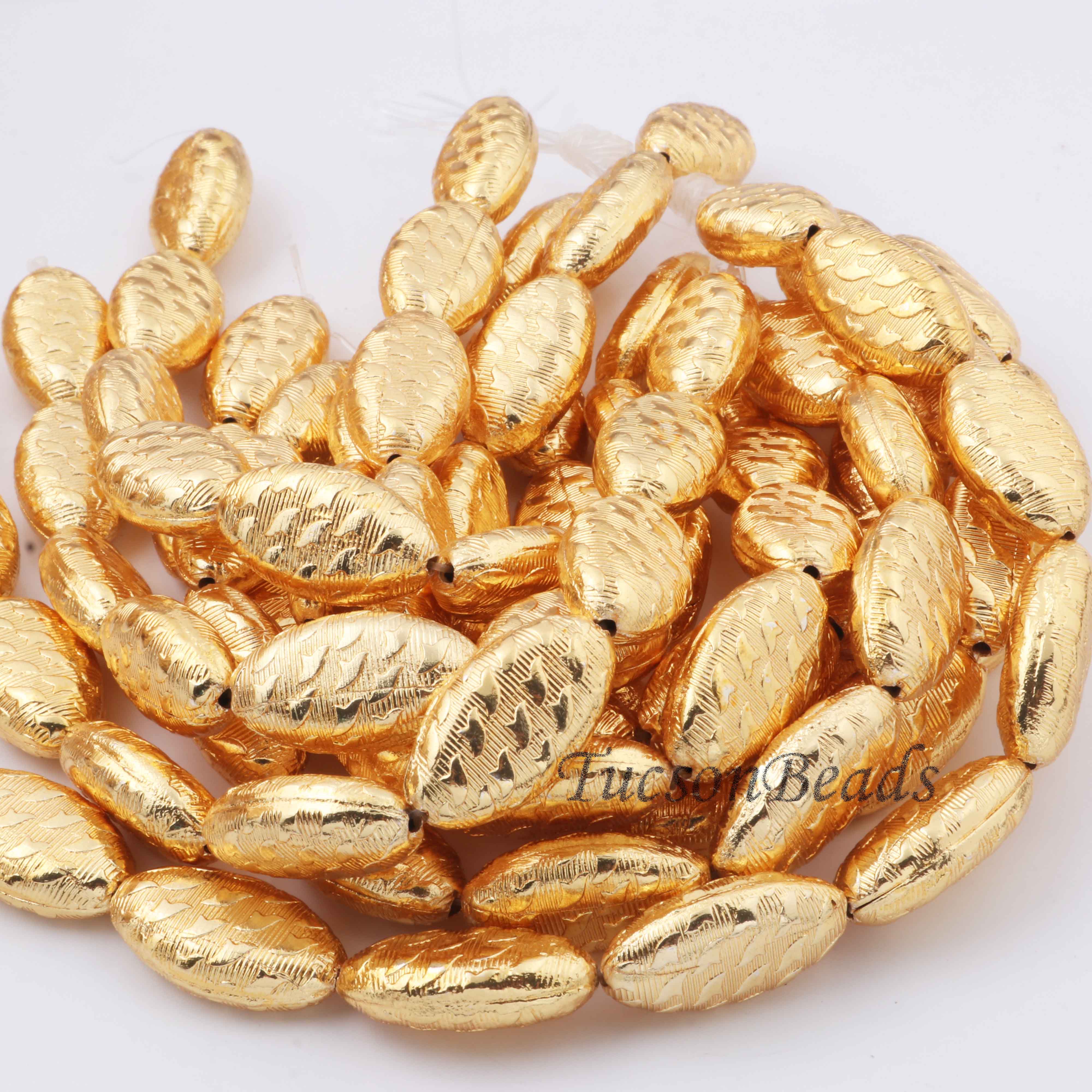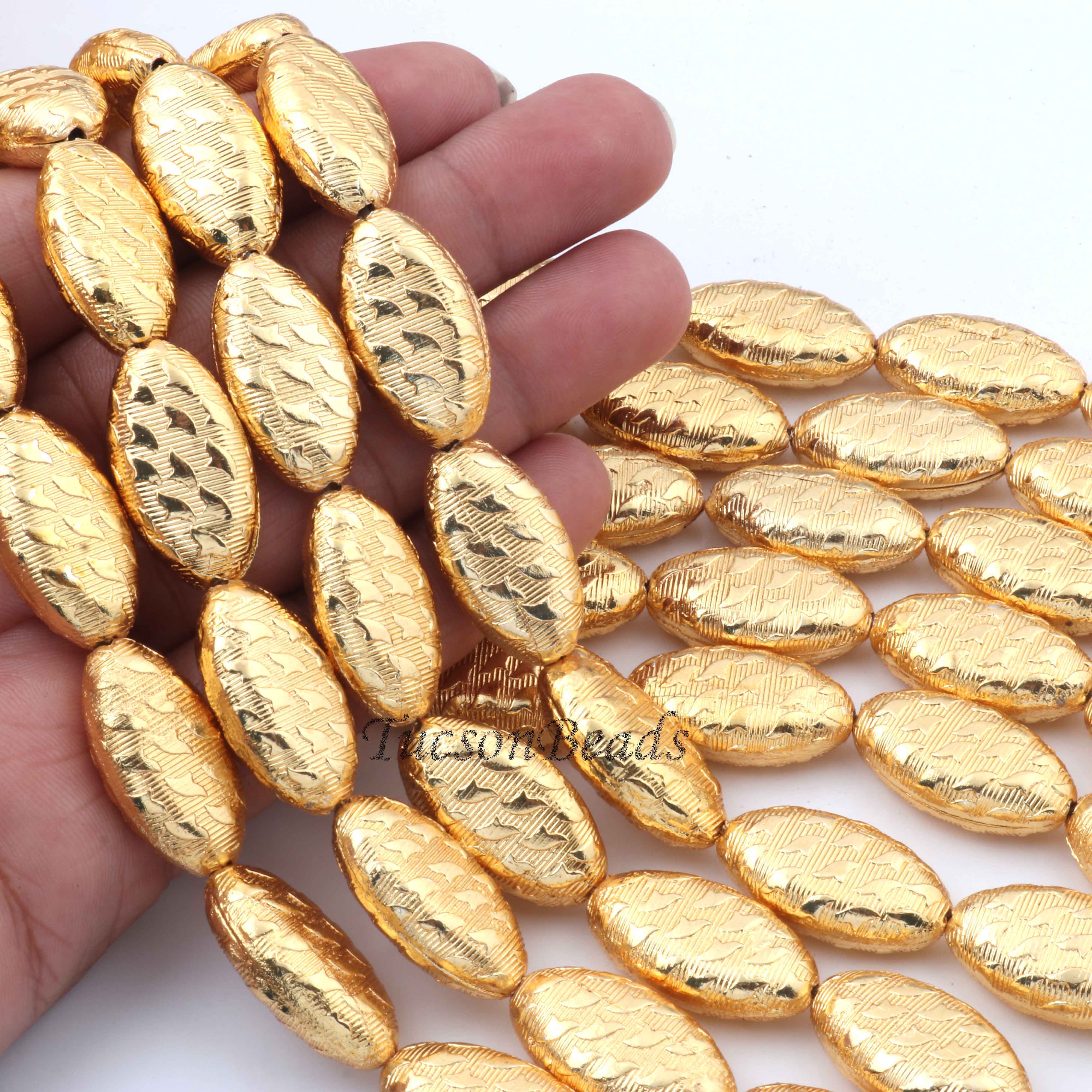 1 Stands 24K Gold Plated Designer Oval Shape Beads , Copper Beads -Copper Jewelry -25mmx13mm -8.5 inch GPC0012
