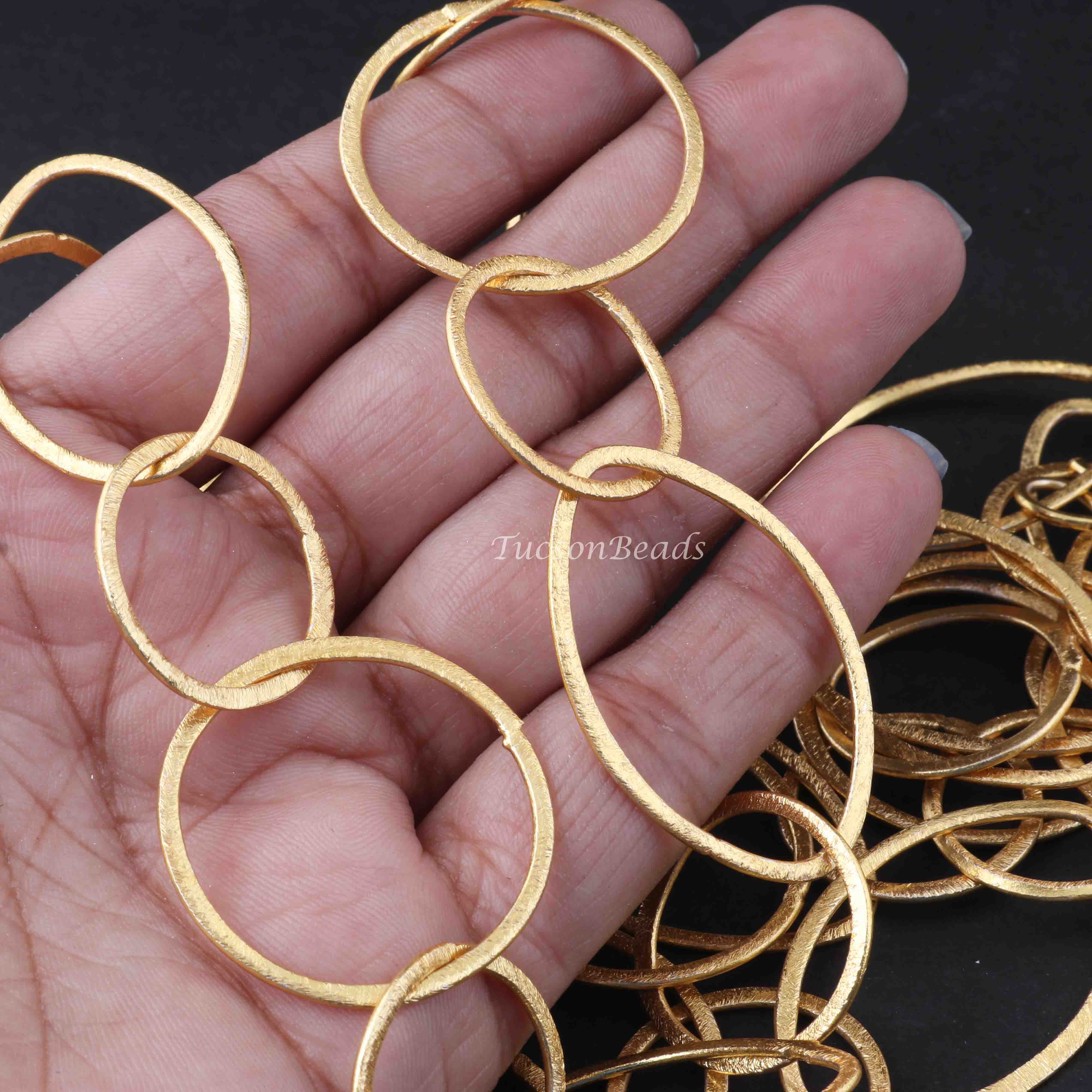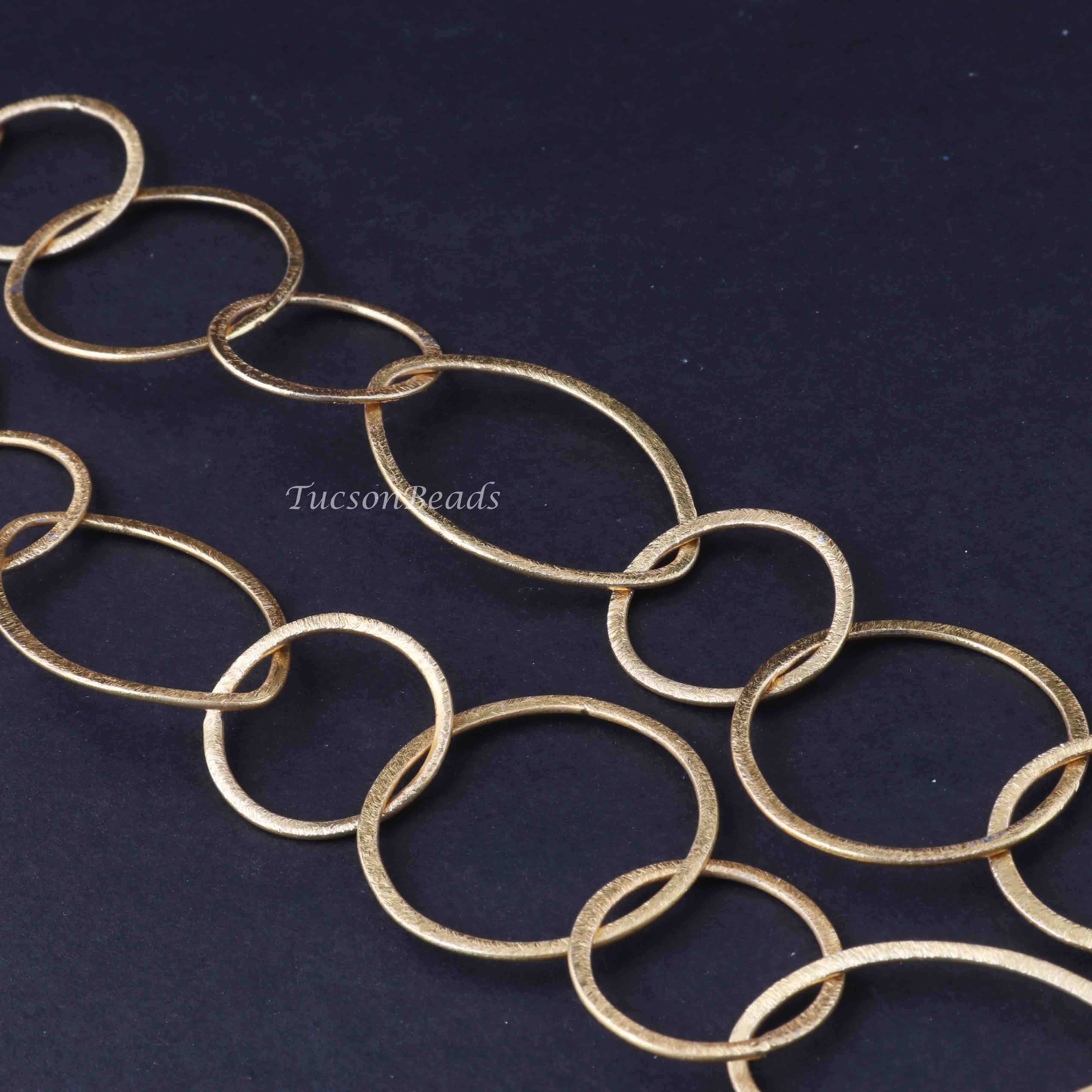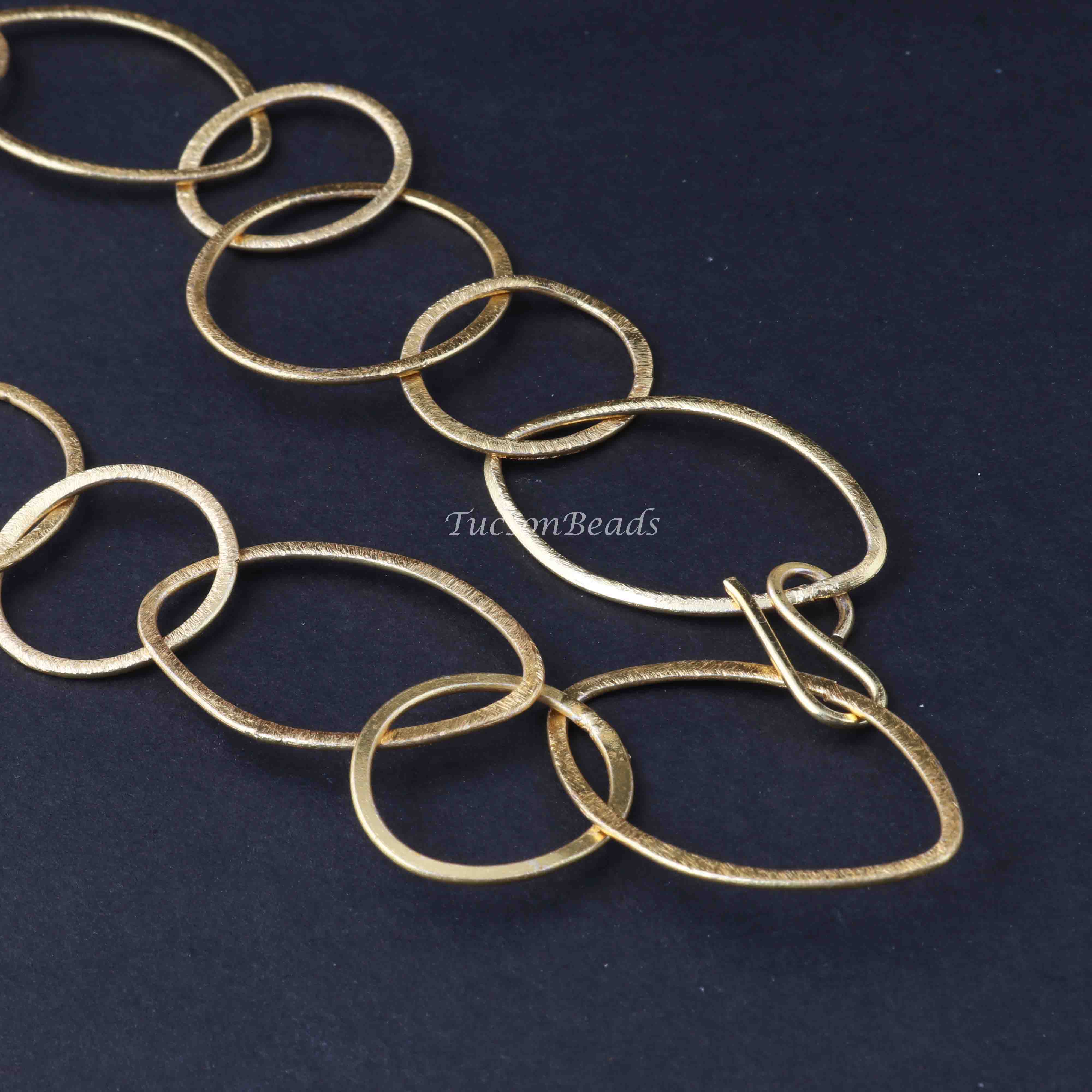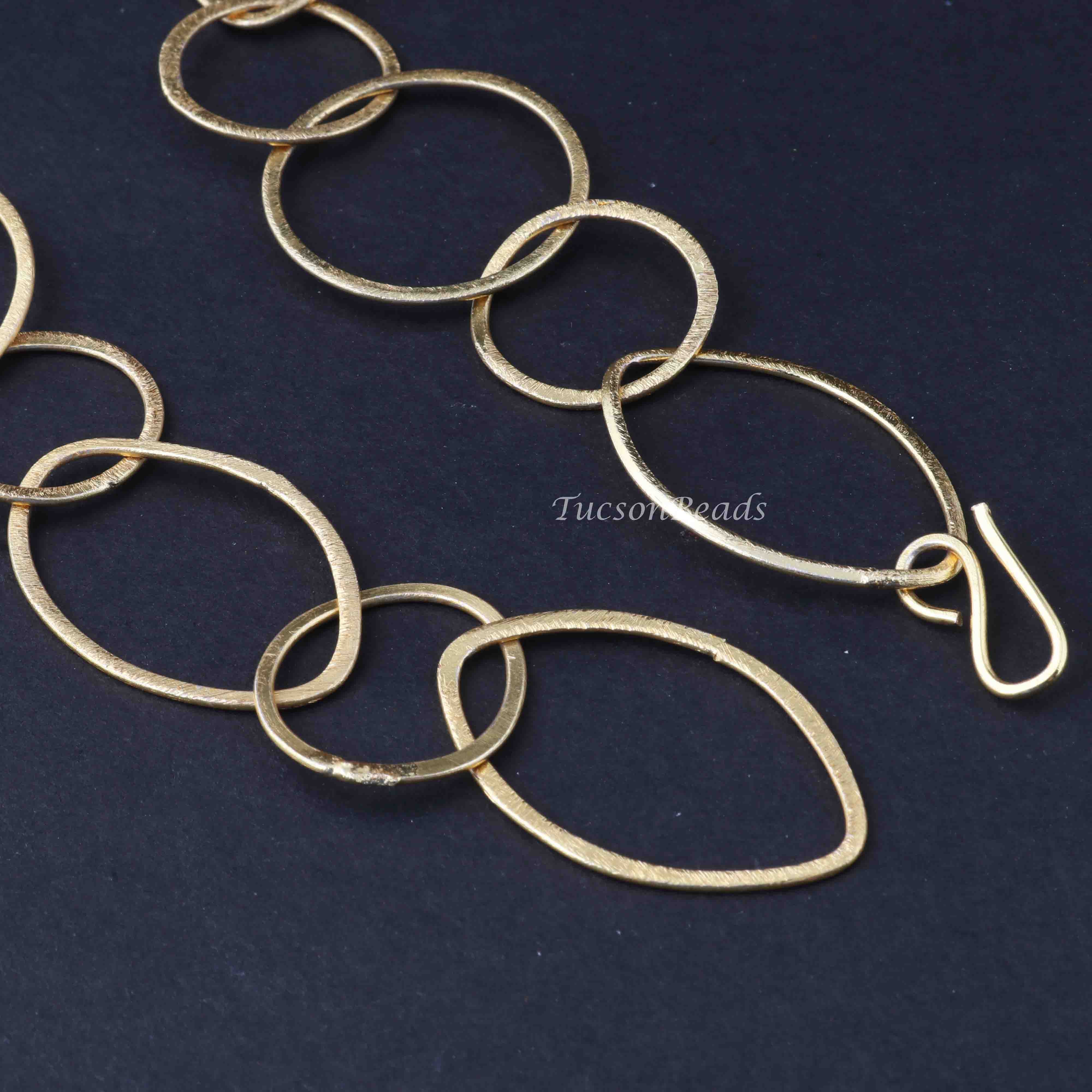 1 Necklace Top Quality 3 Feet Each 24K Gold Plated Round With Marquise Shape Copper Link Chain - Each 18 inch GPC067