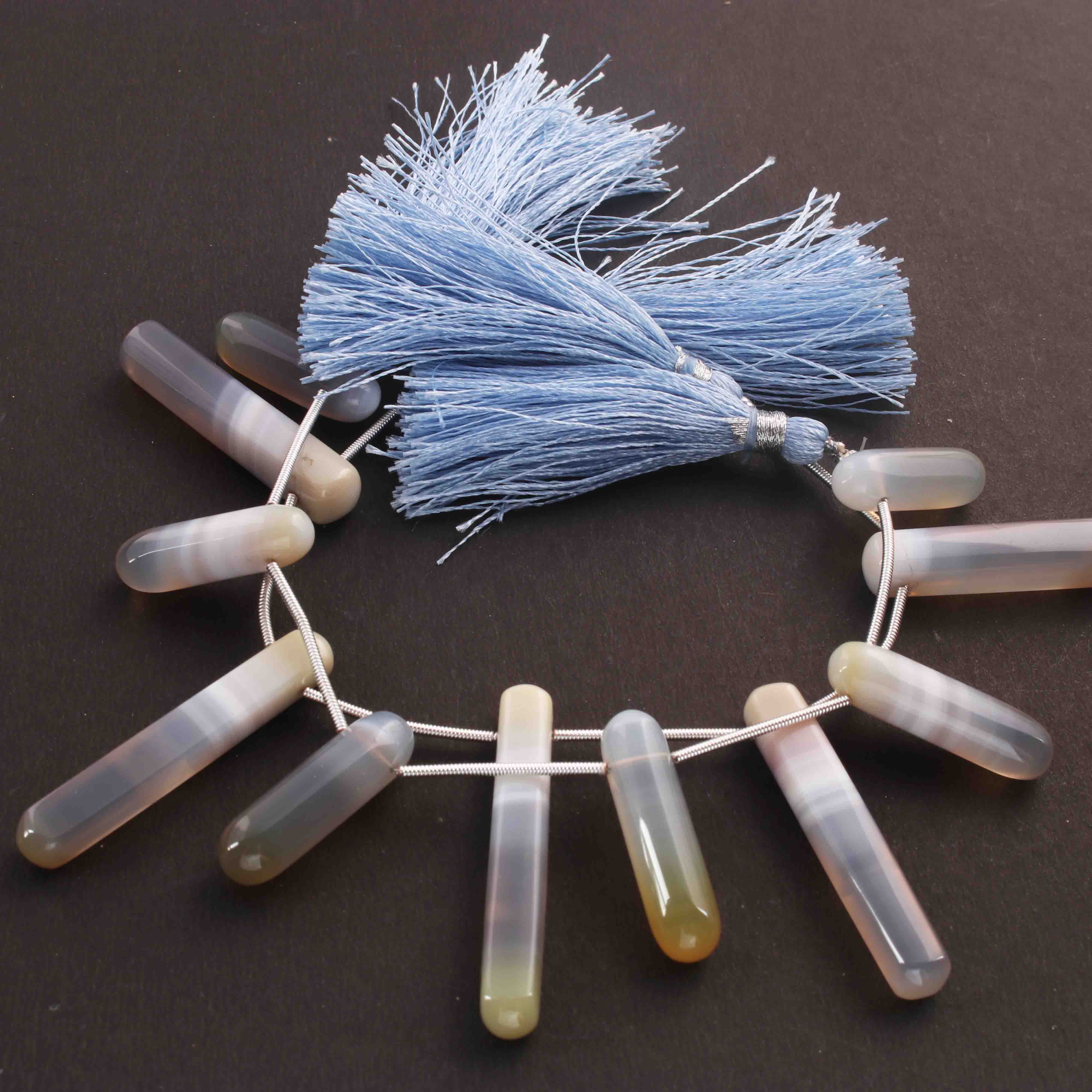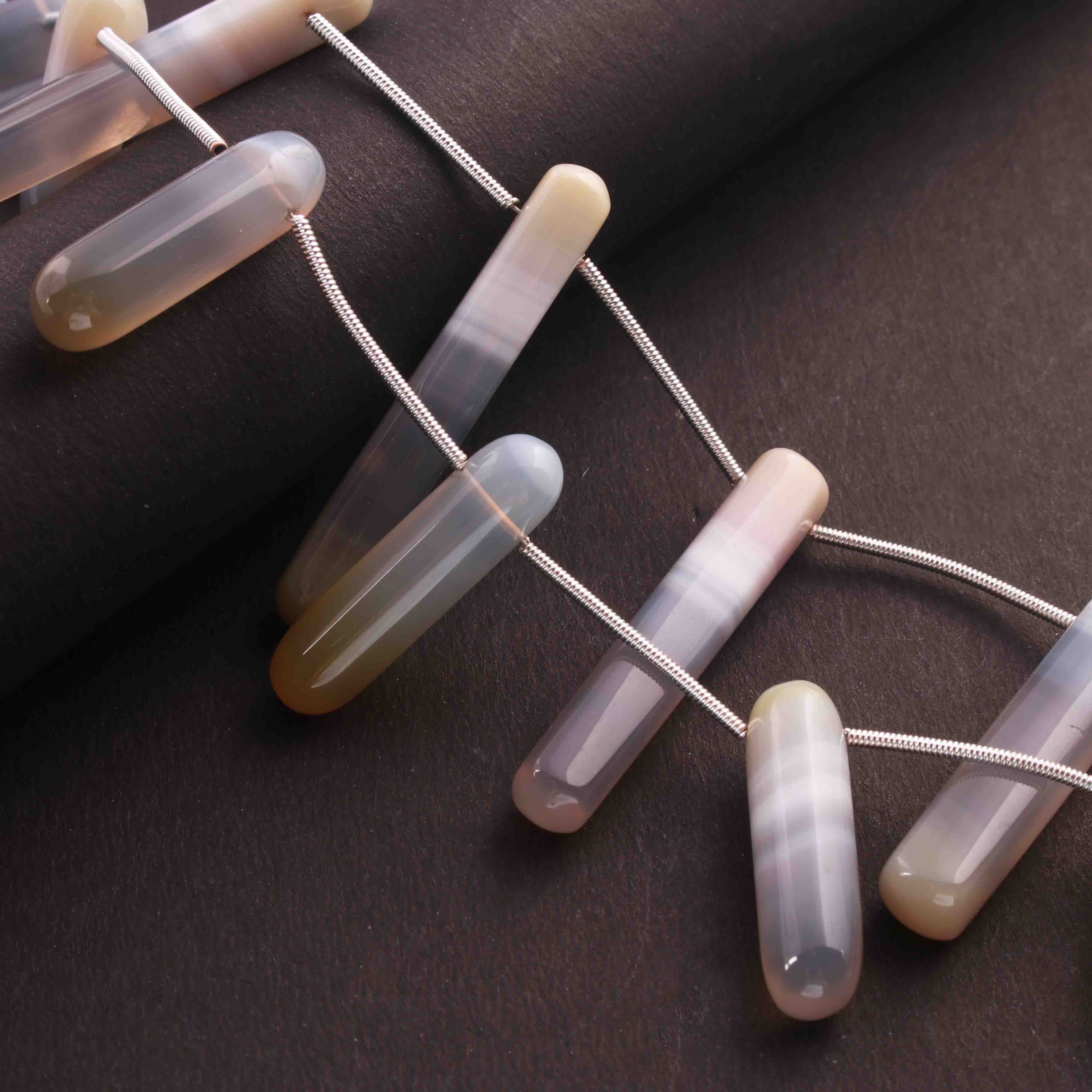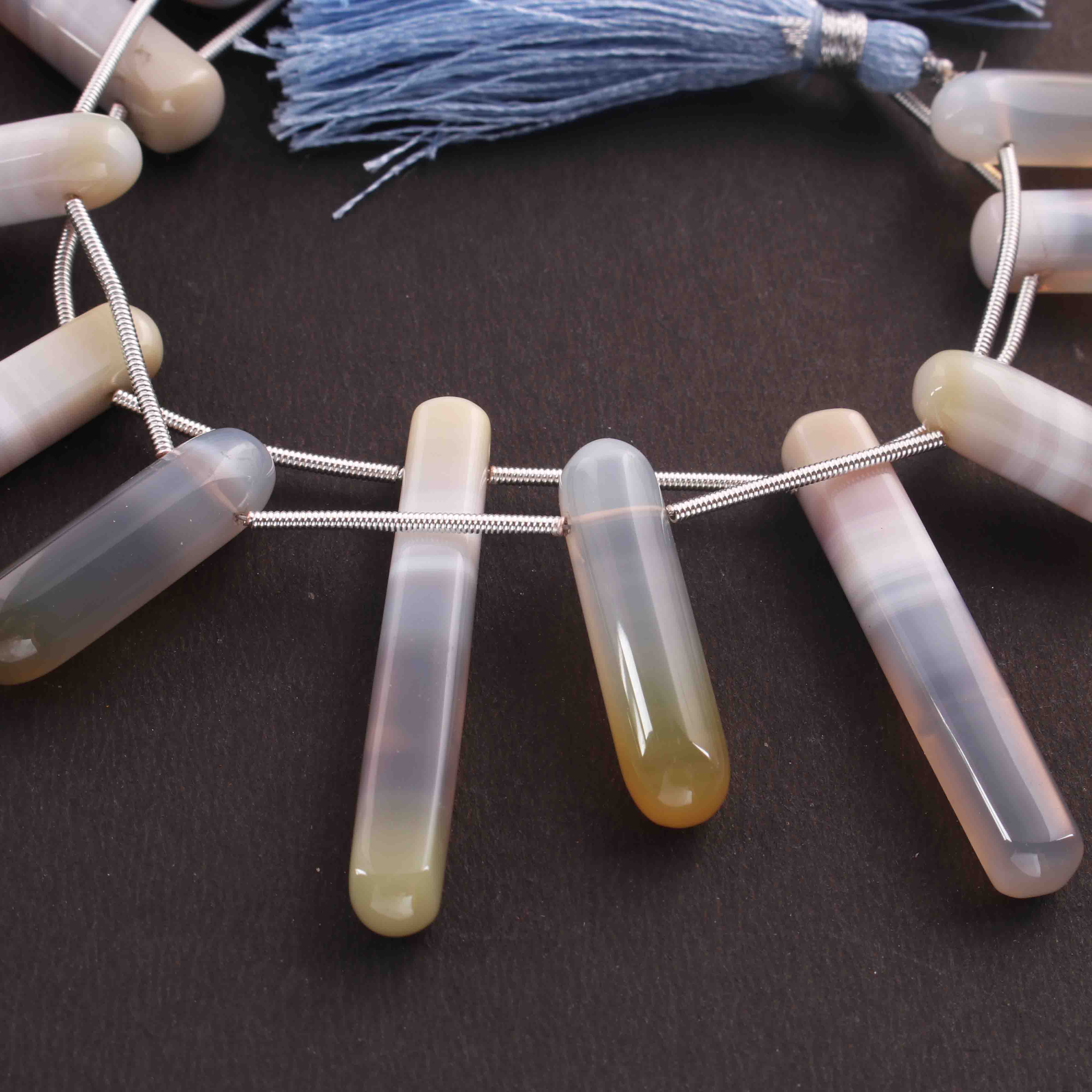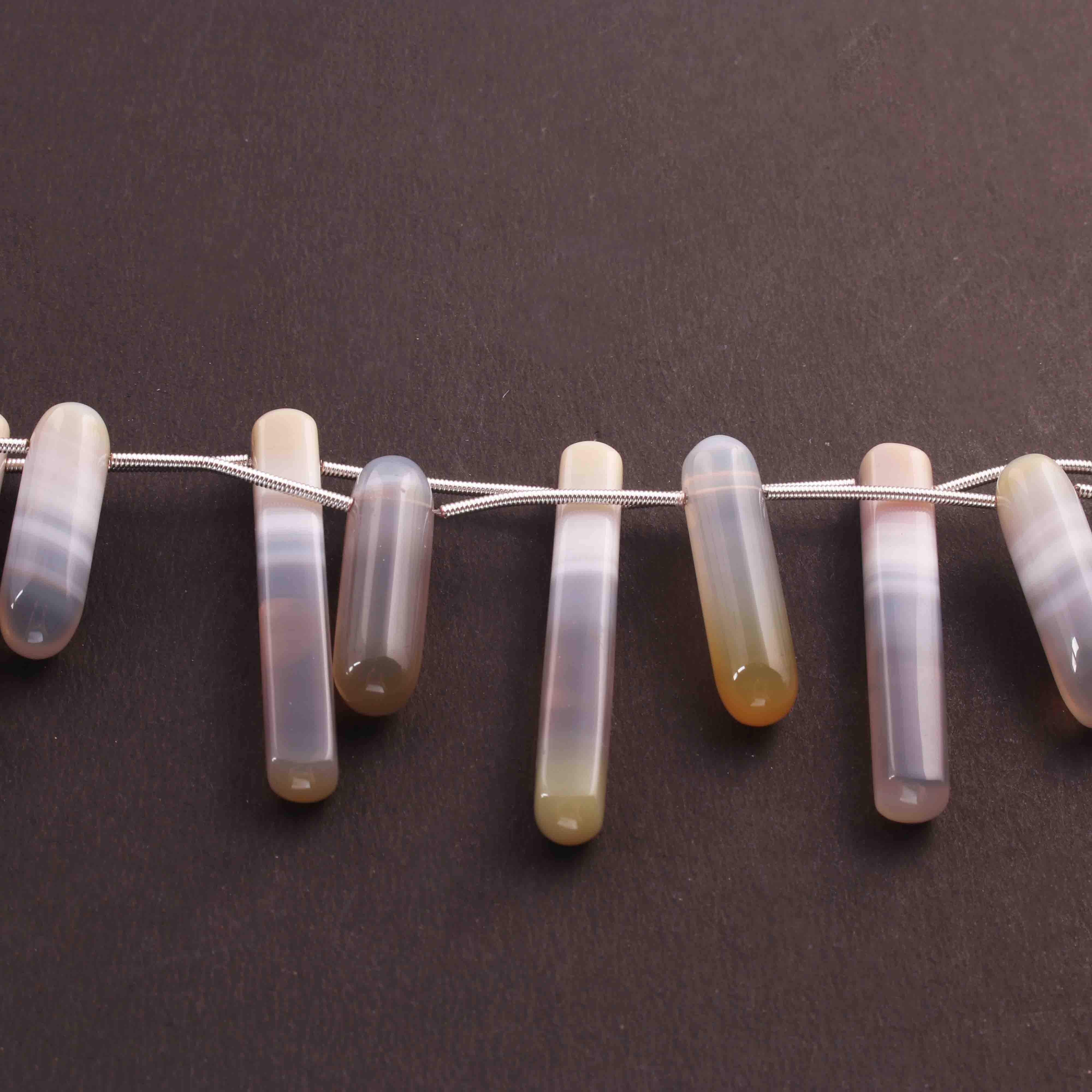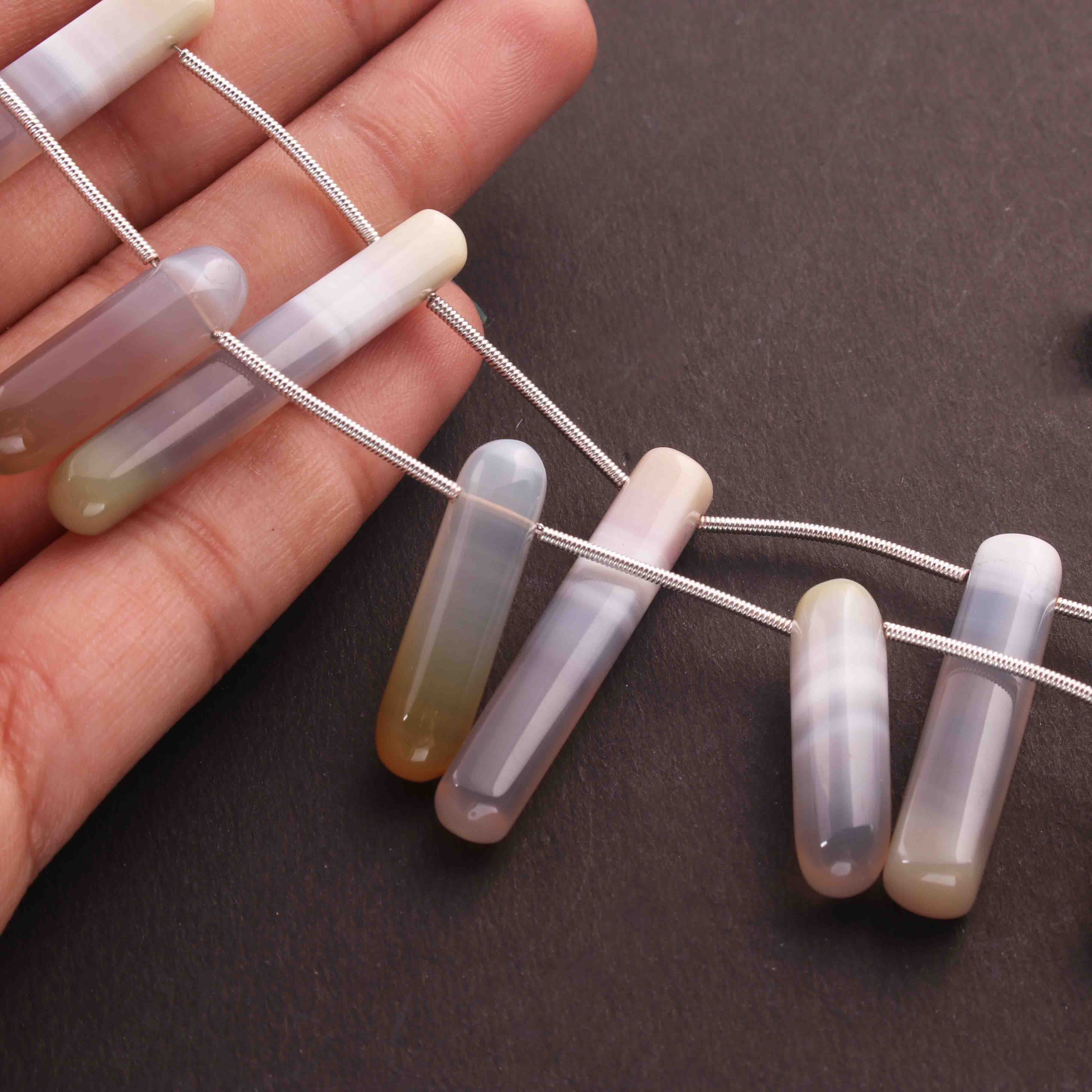 1  Long Strand Natural Chalacdony Smooth Briolettes -Cube Shape Briolettes - 52mmx7mm-27mmx7mm- 8 Inches BR01668