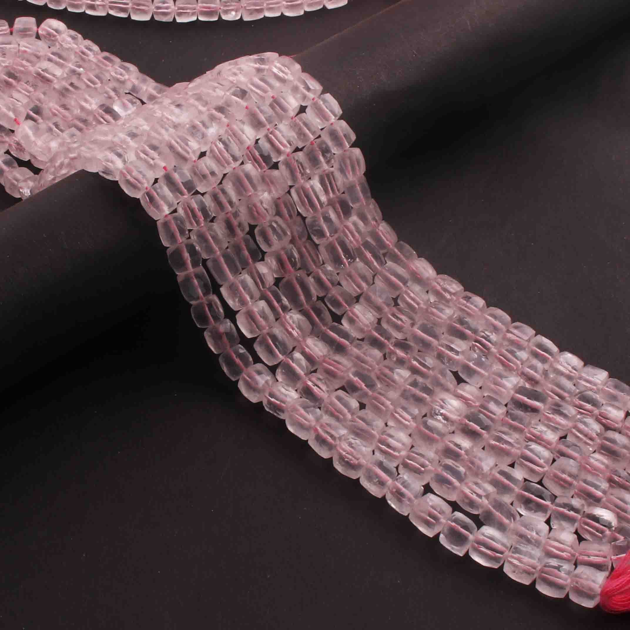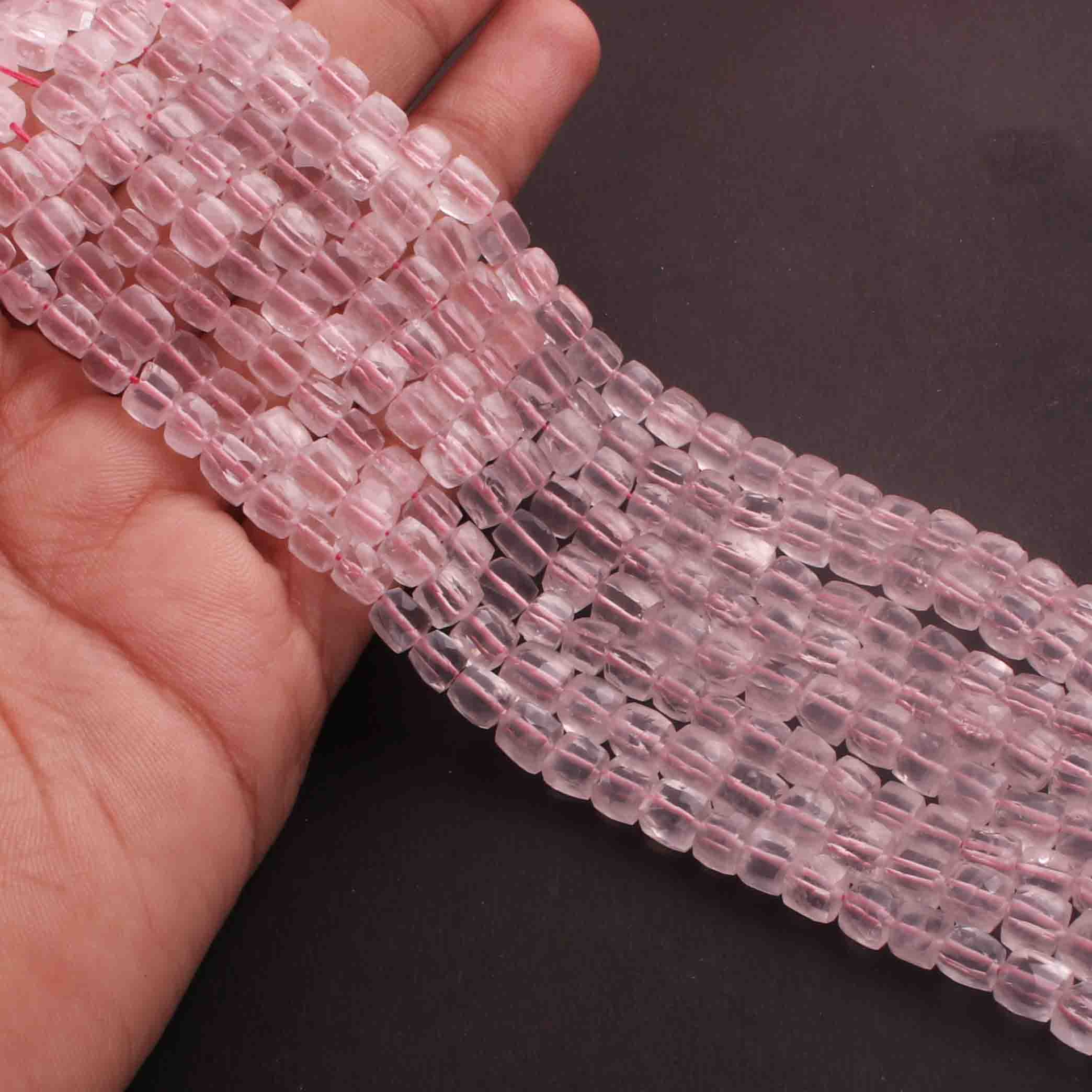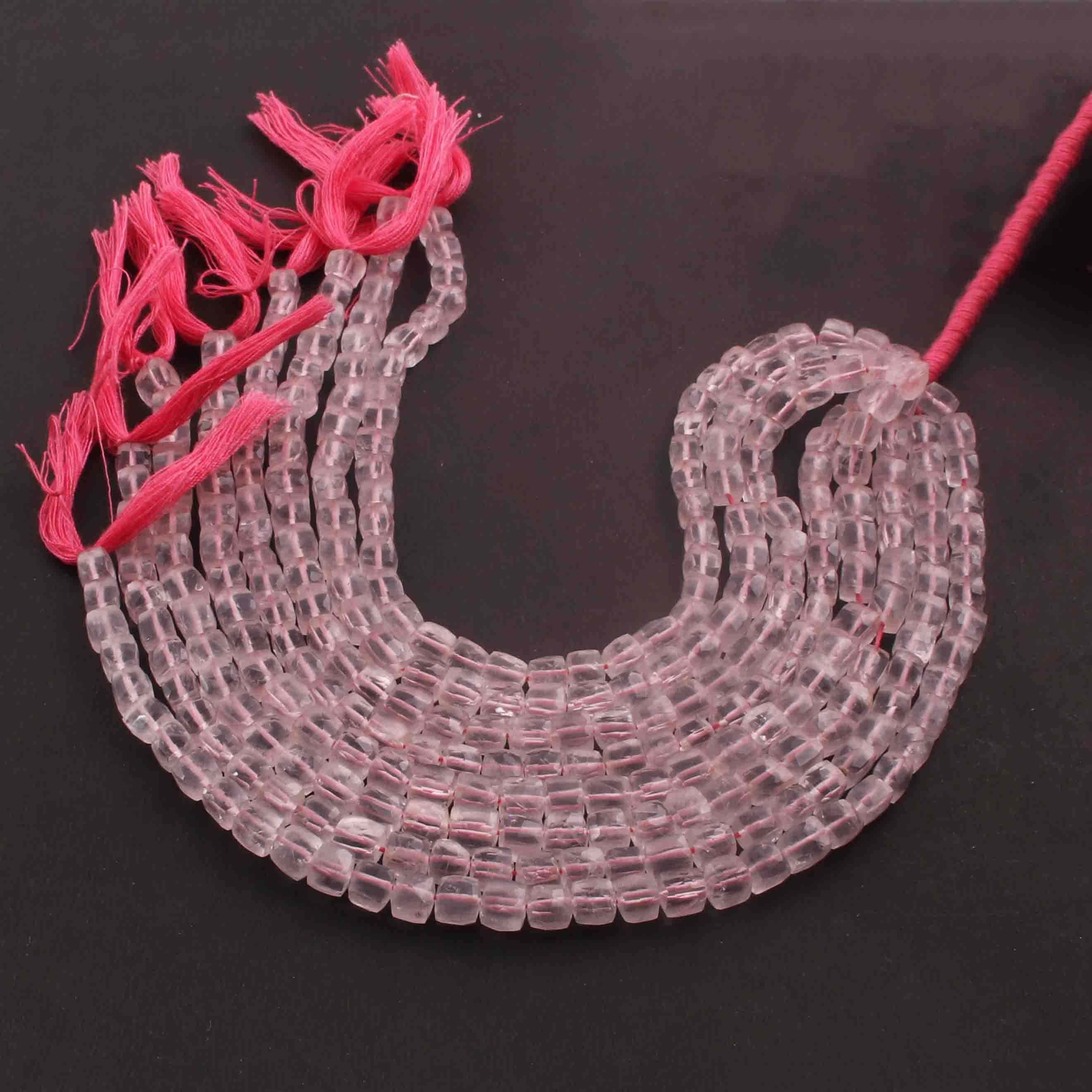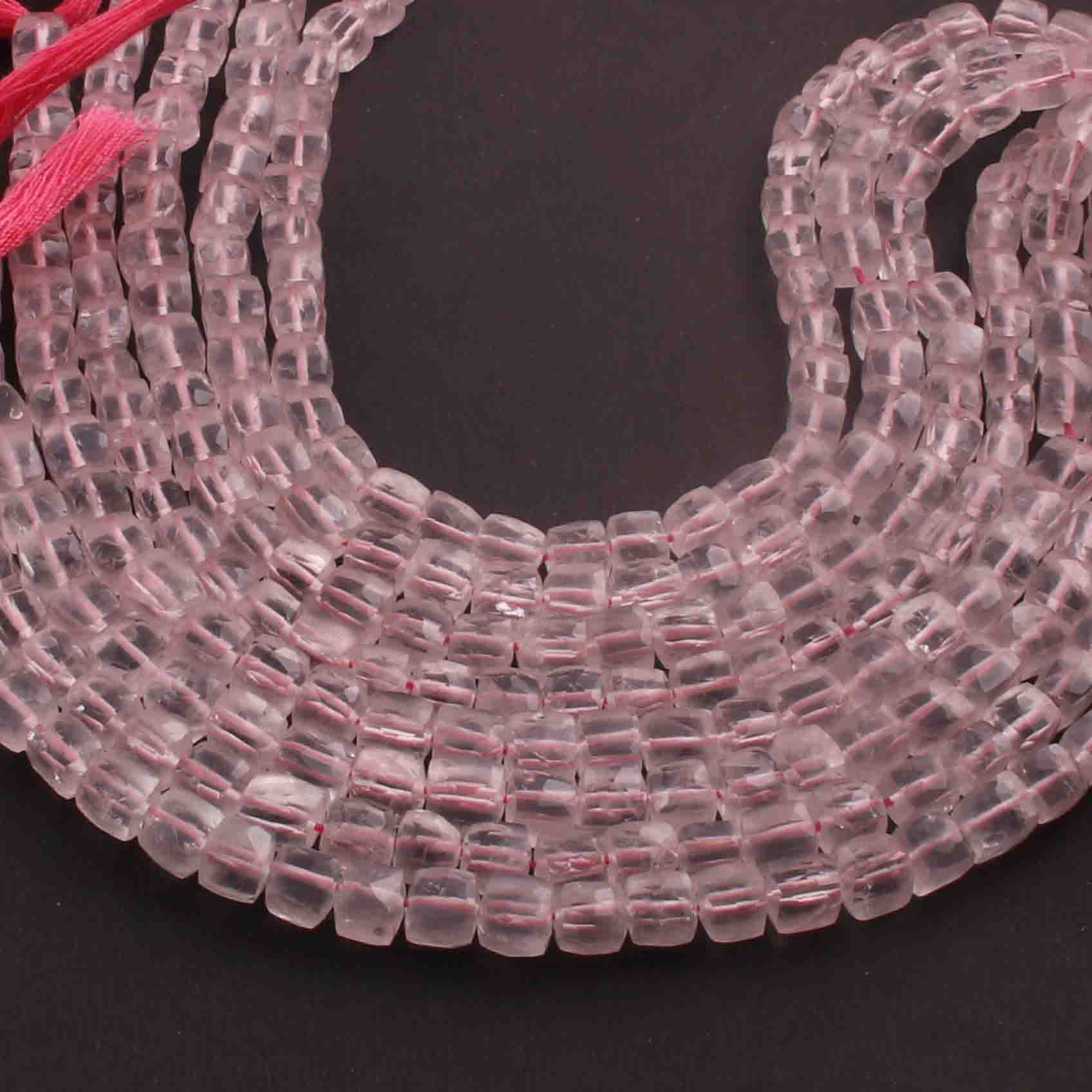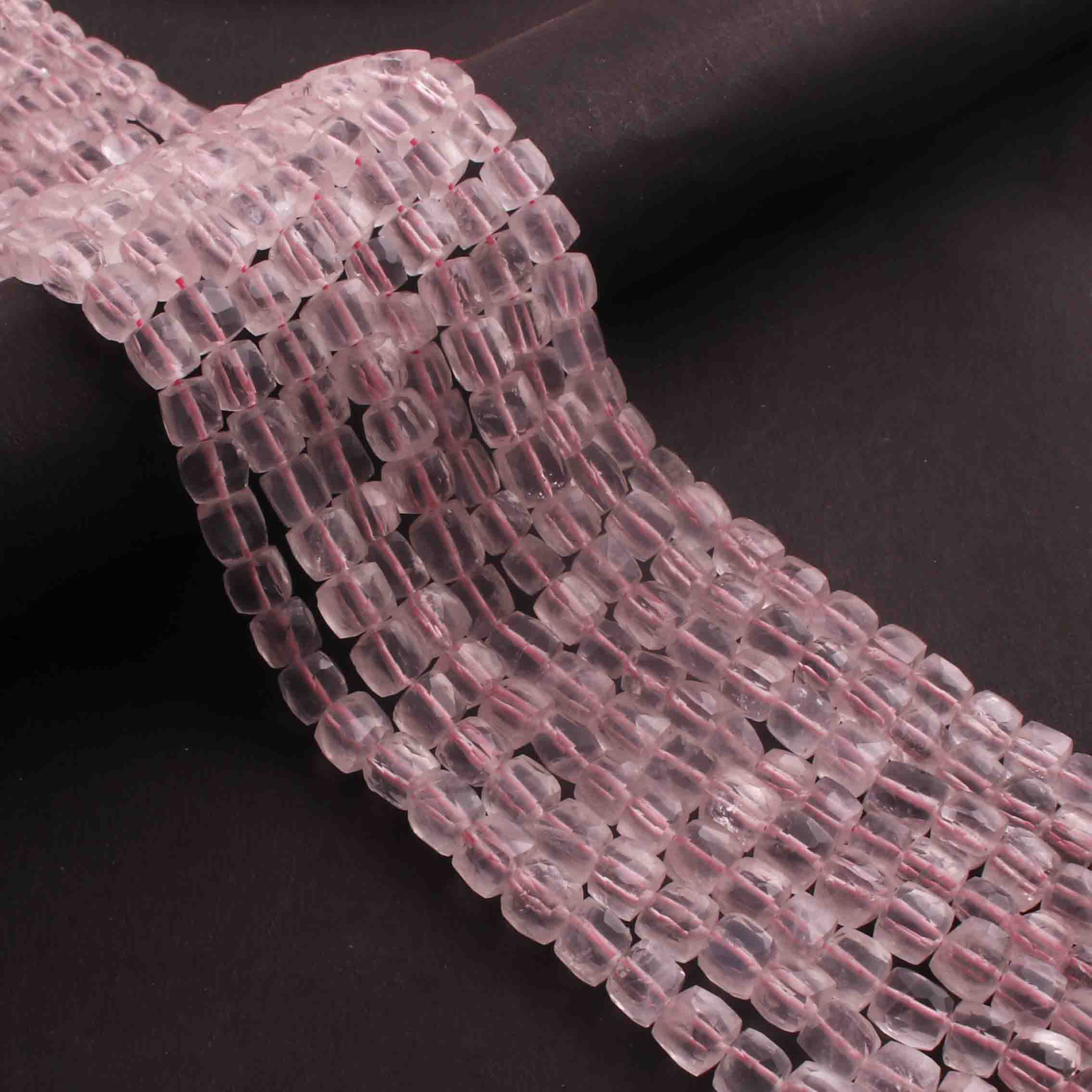 1 Long Strand Rose Quartz Faceted Briolettes - Cube Shape Briolettes , Jewelry Making Supplies 5mmx6mm-8.5 Inches BR01698