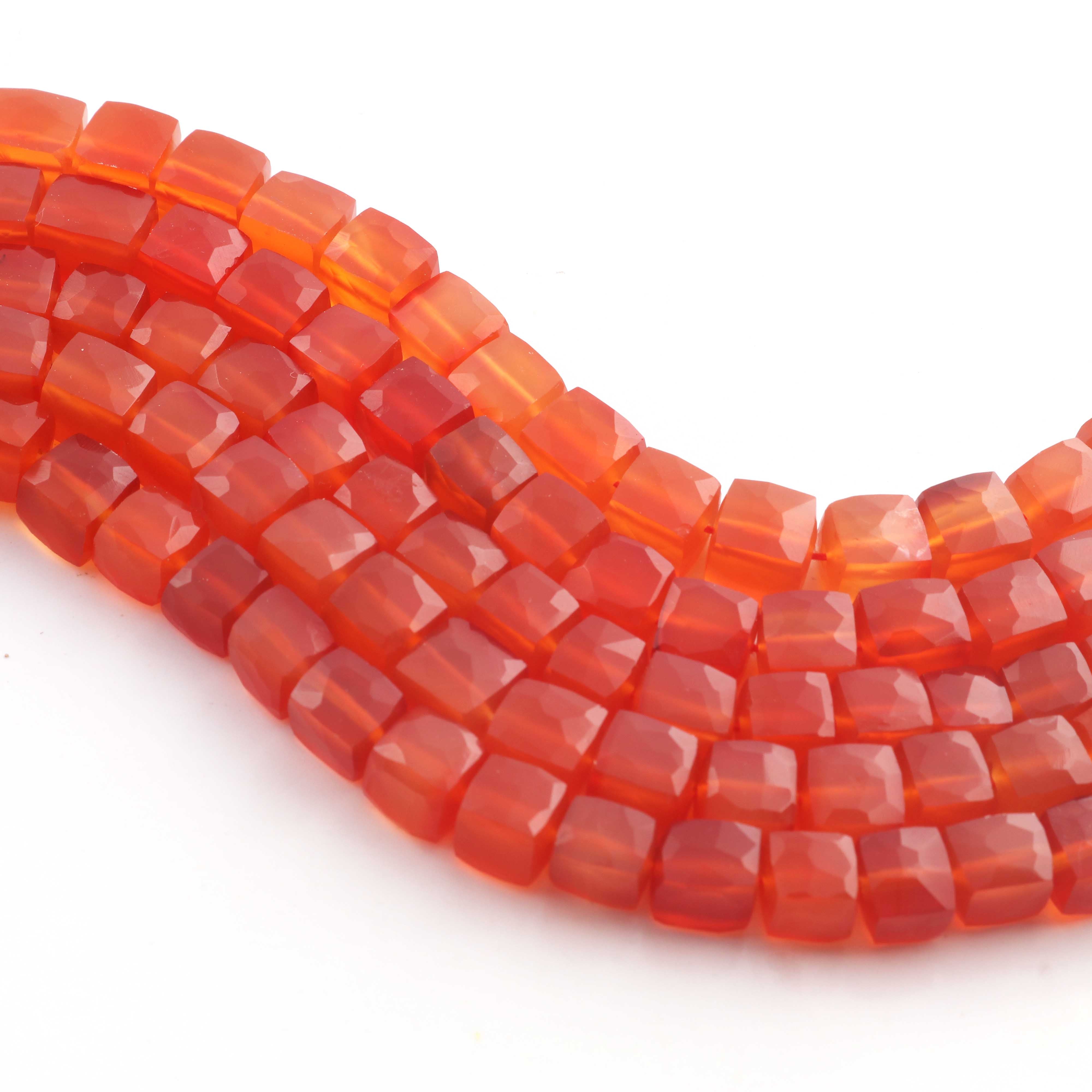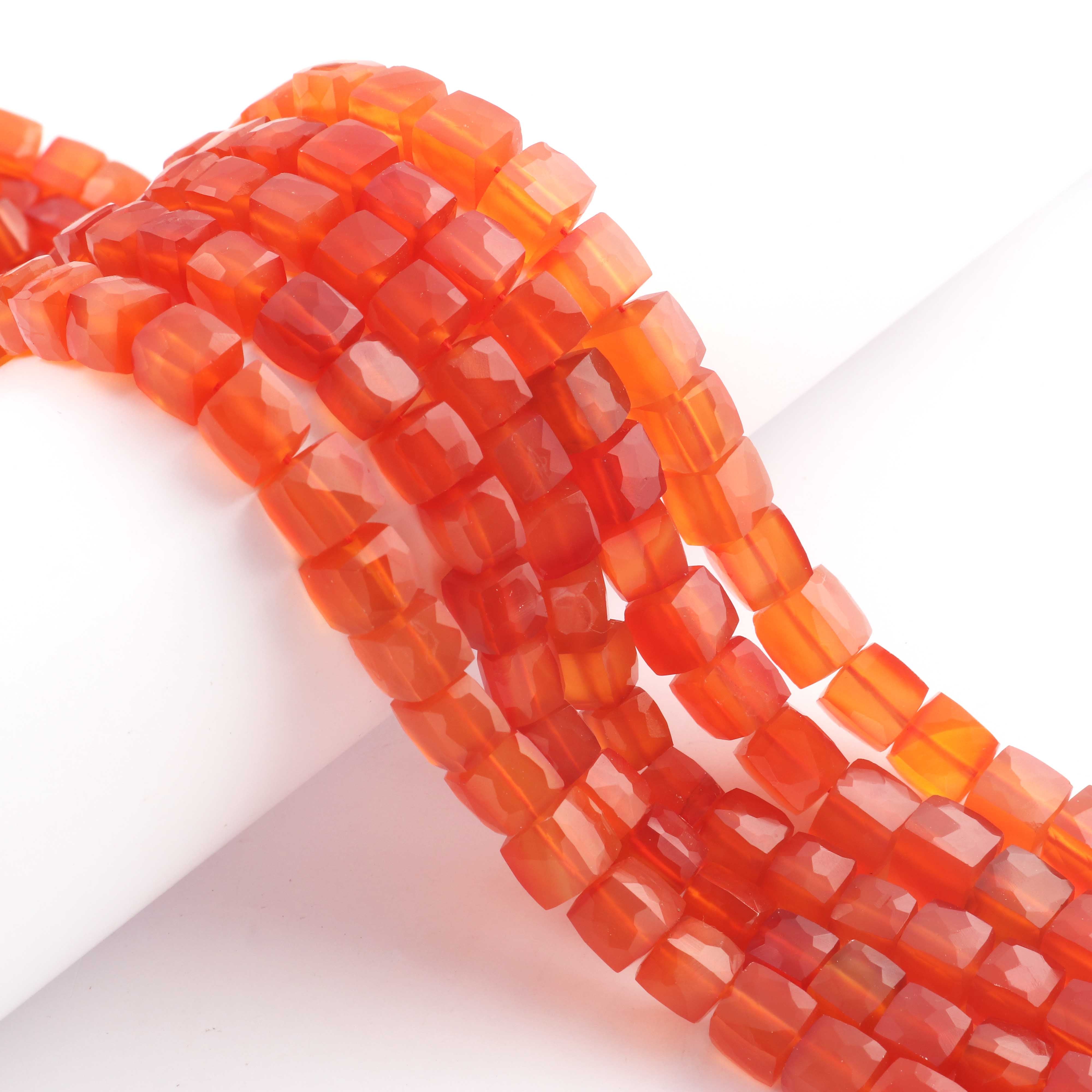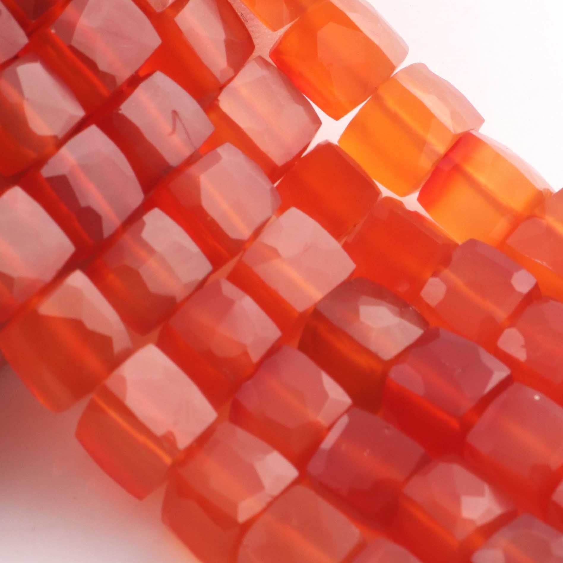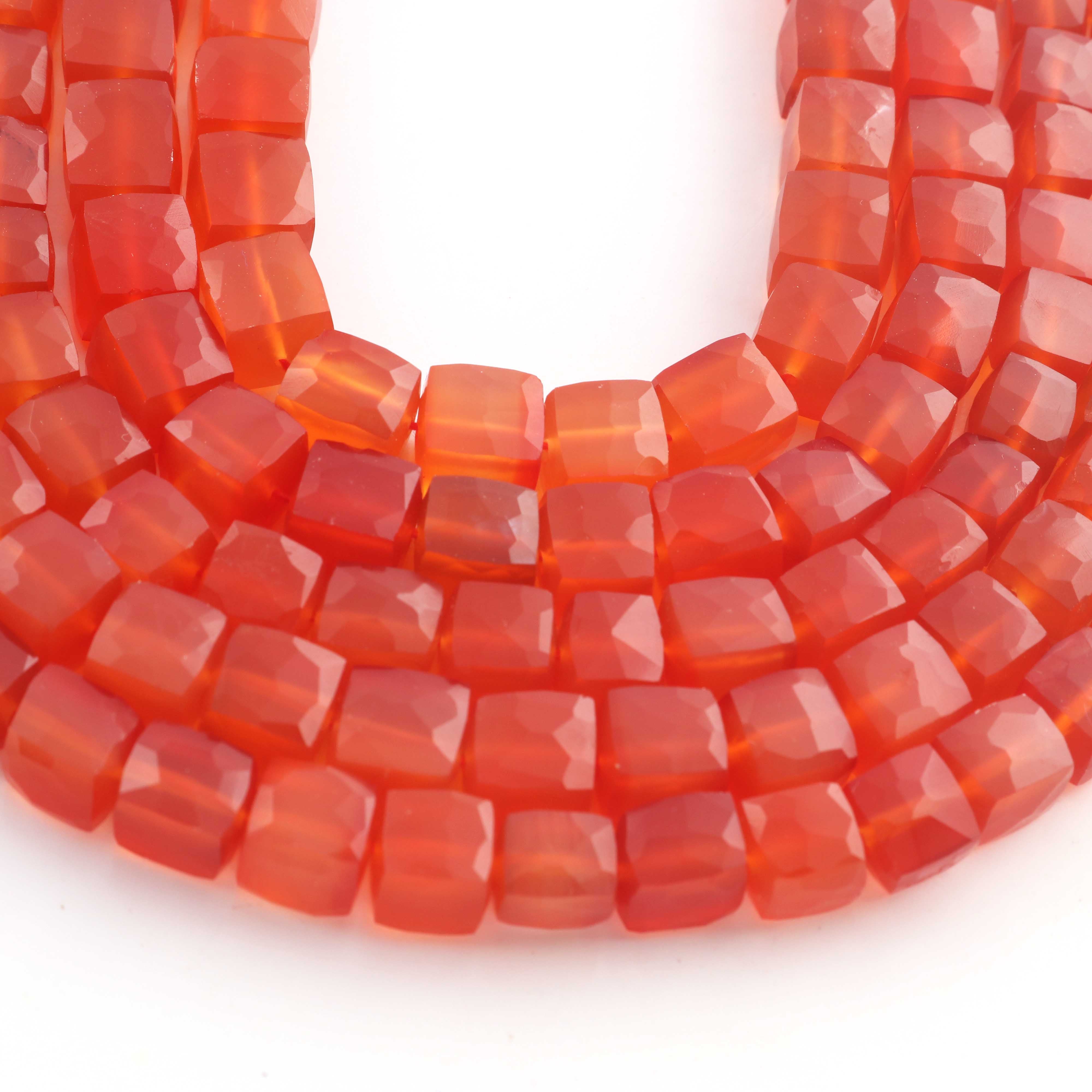 1 Strand Carnelian Faceted Cube Briolettes - Box Shape Gemstone Beads - 6mm-8mm 8 Inches BR03431
