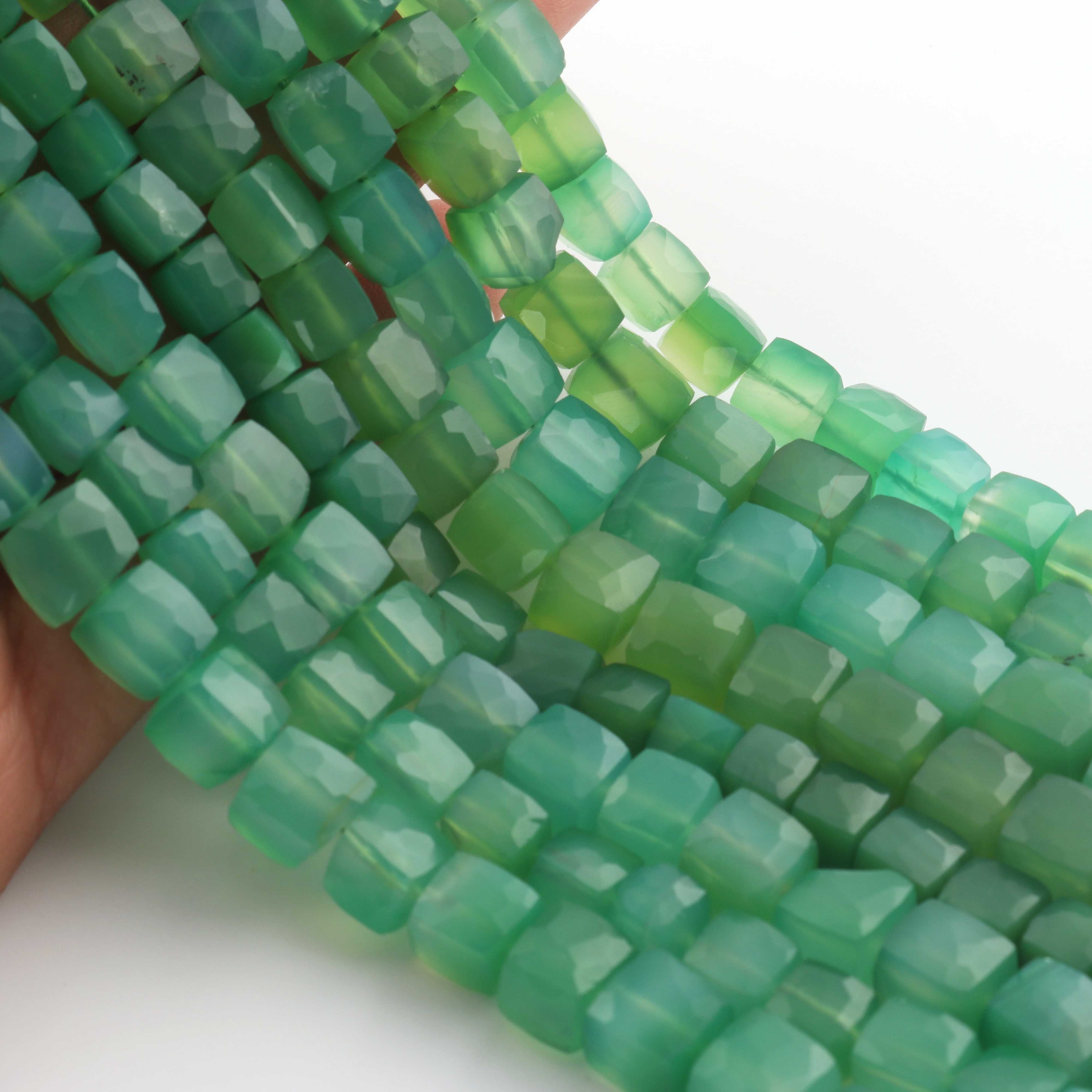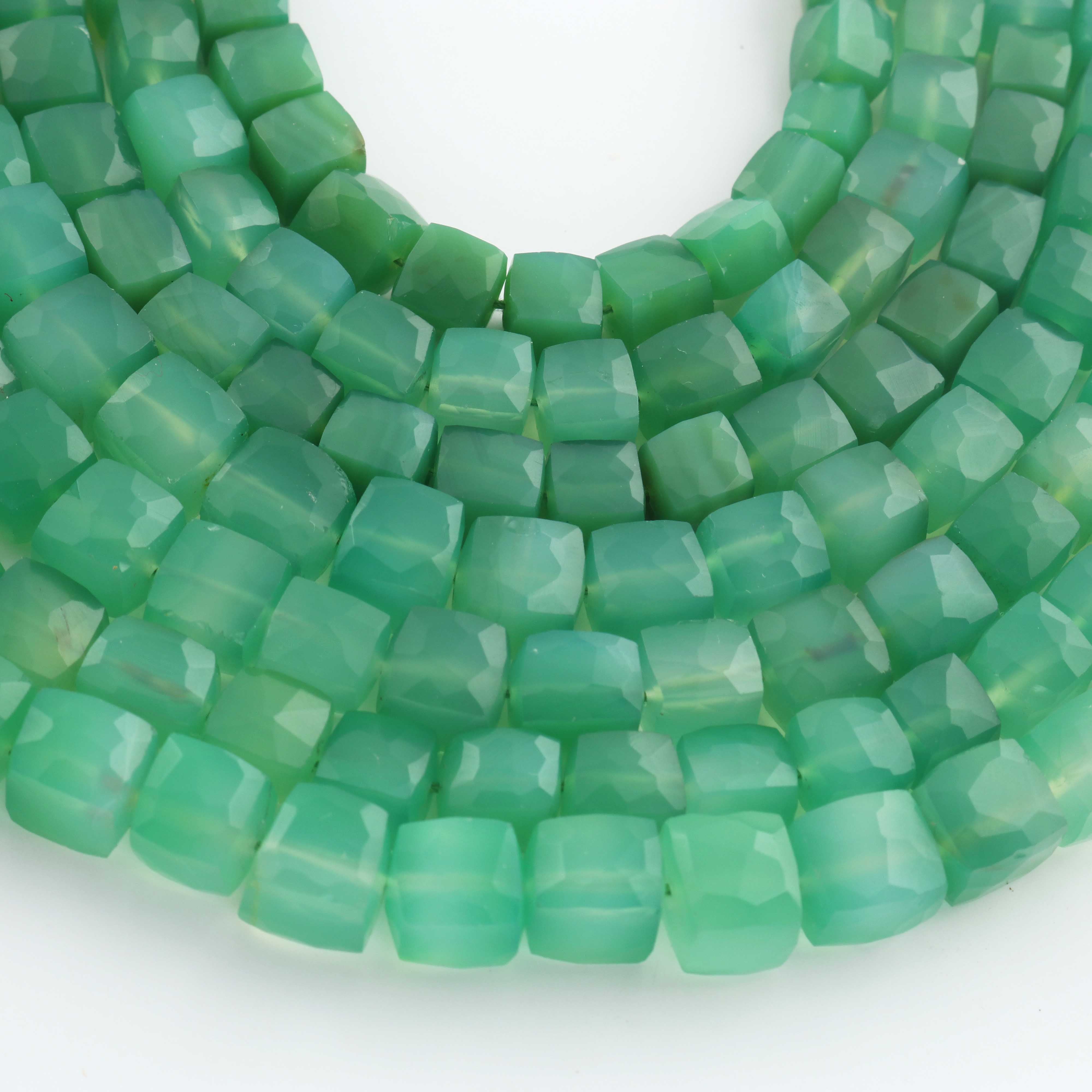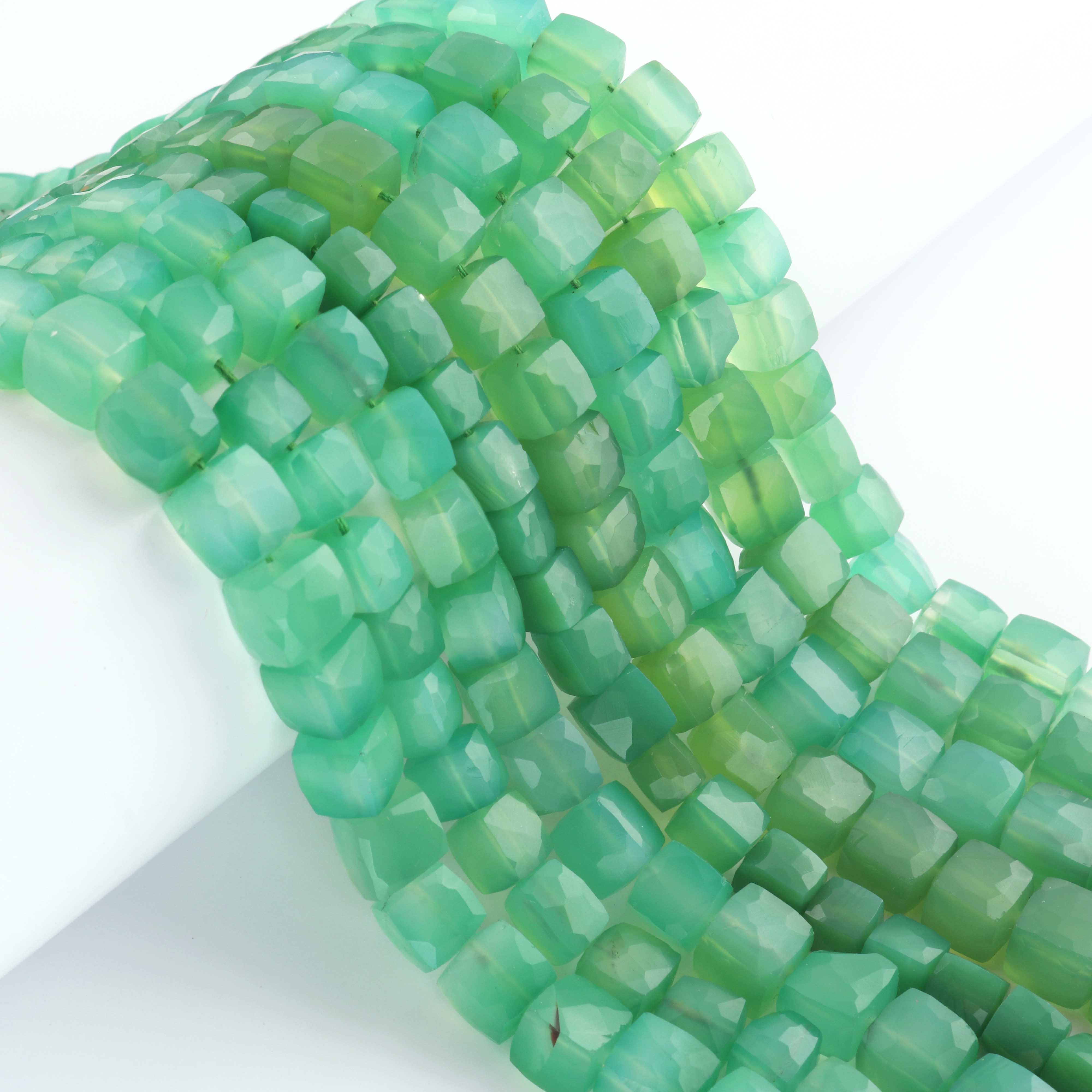 1 Strand Chrysoprase Faceted  Cube Shape Briolettes - Box Shape Briolettes  6mmx7mm - 6mmx8mm - 8 Inches BR03451