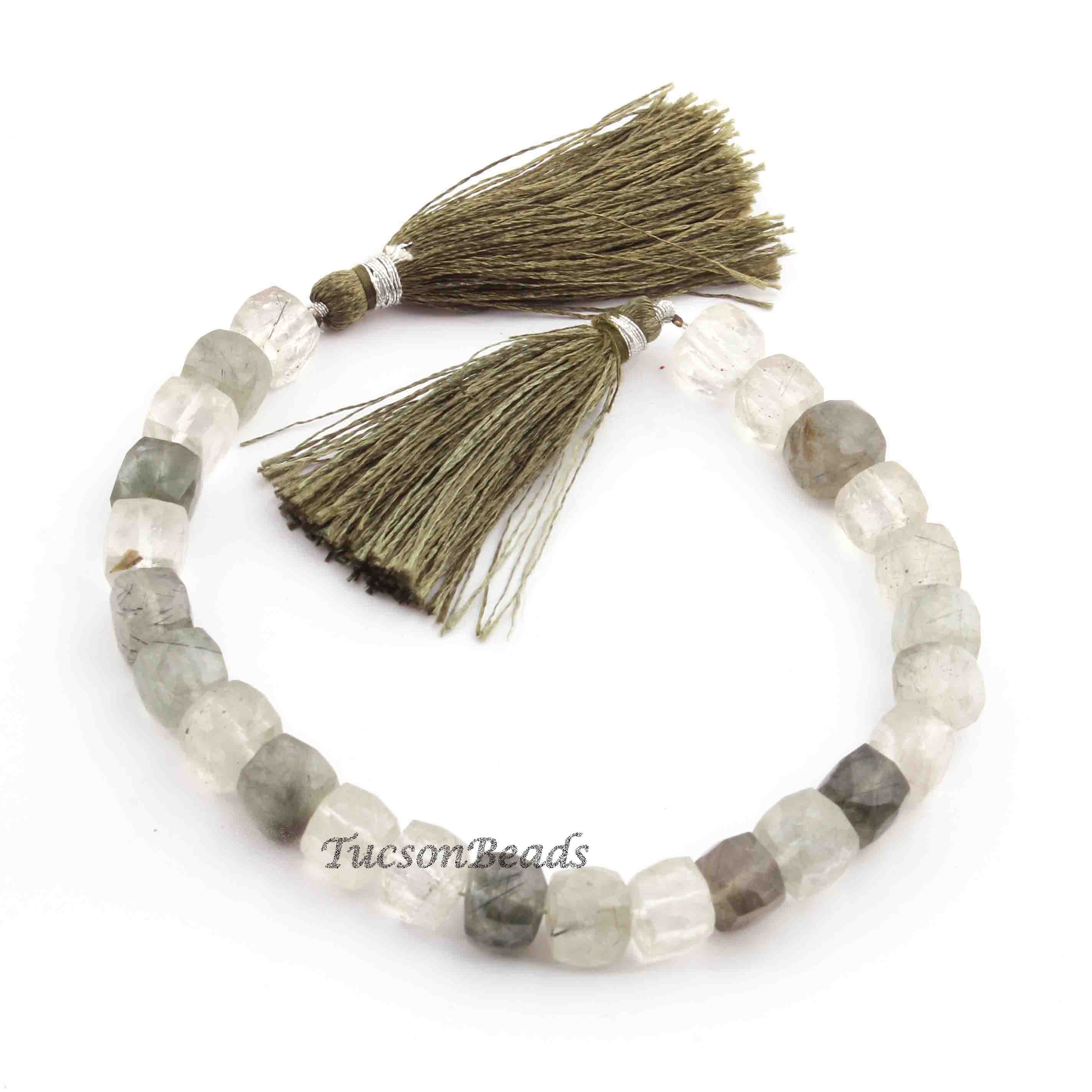 1 Strand Green Rutile Cube Shape Faceted Briolettes - 7mm-9mm 8 Inches BR3377