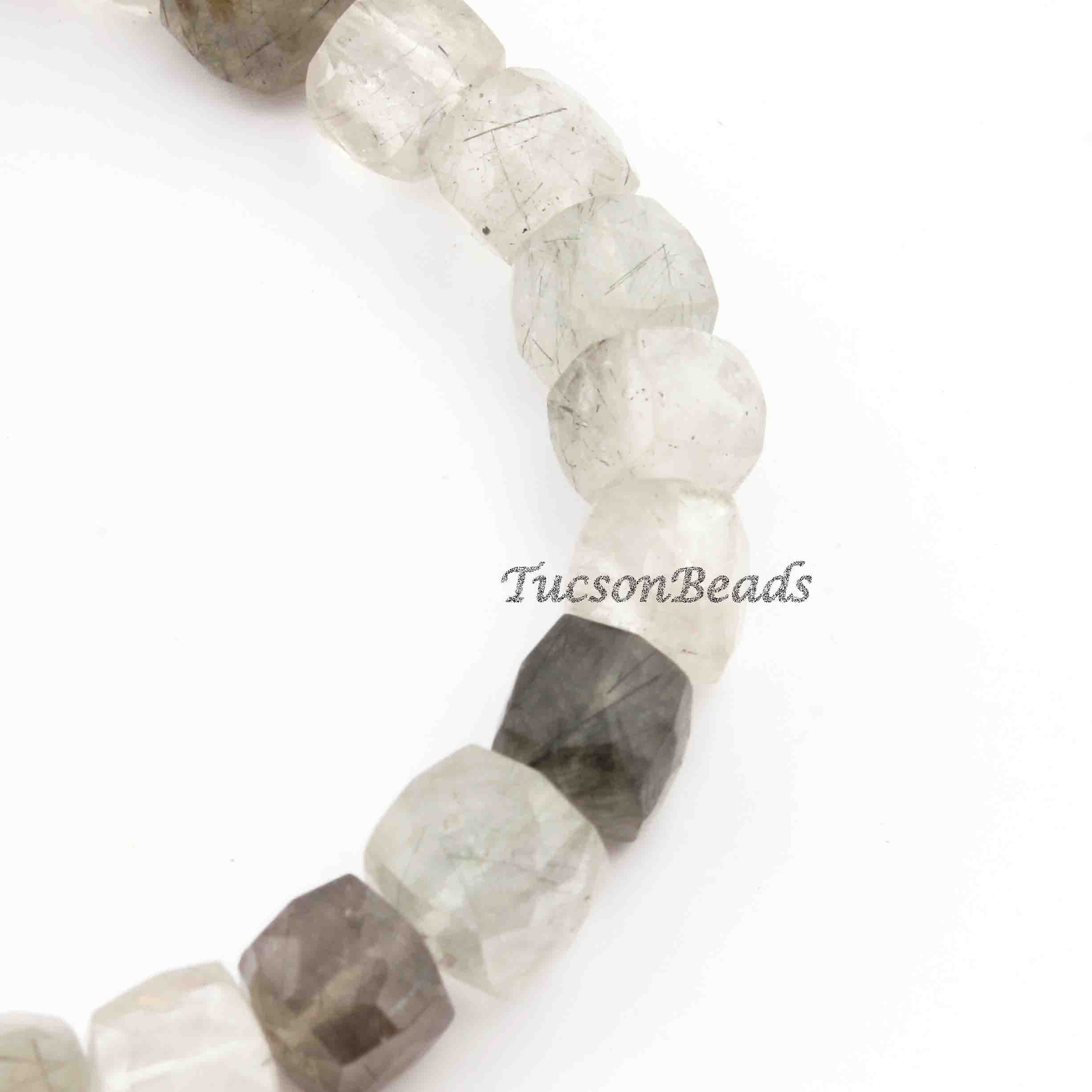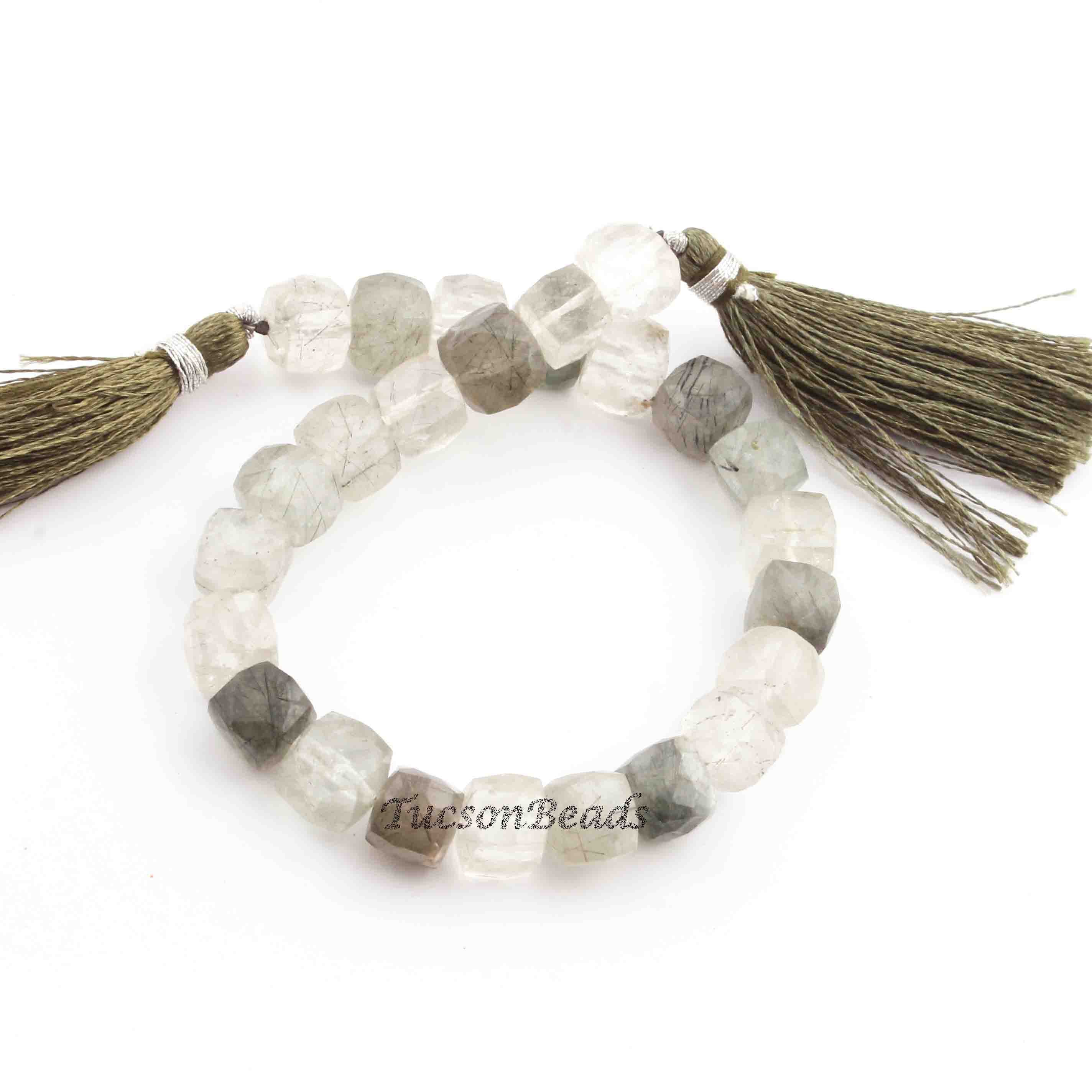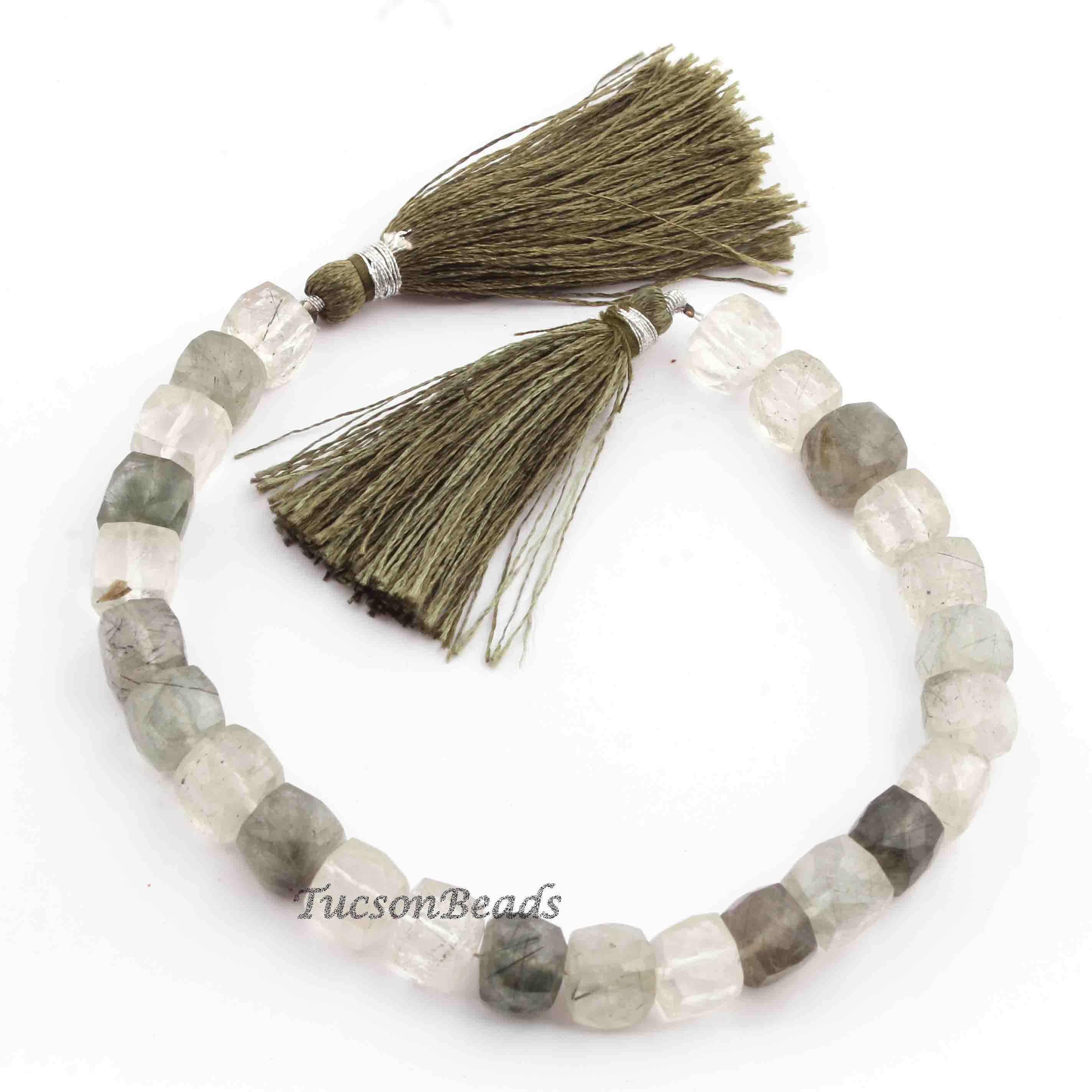 1 Strand Green Rutile Cube Shape Faceted Briolettes - 7mm-9mm  8 Inches BR3377