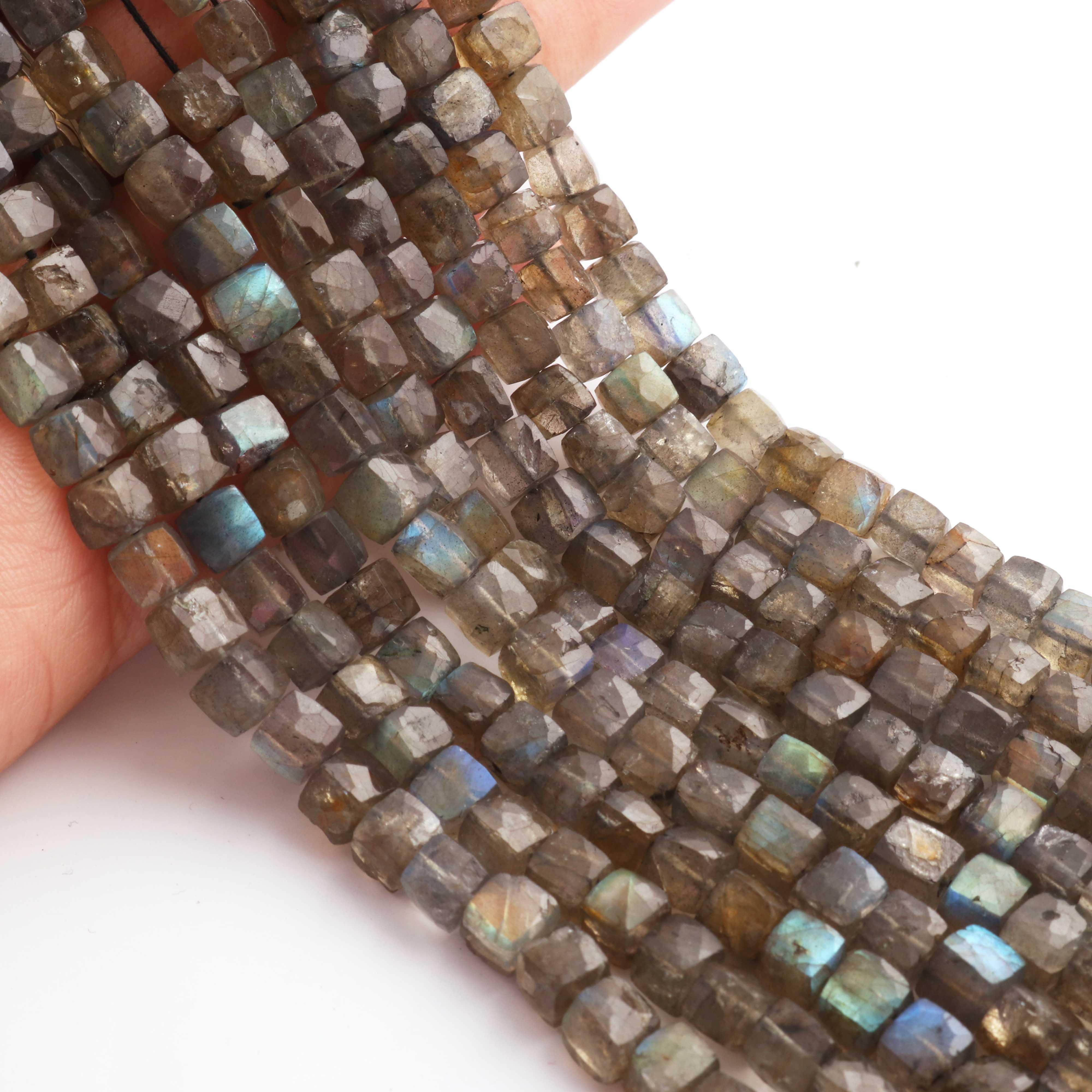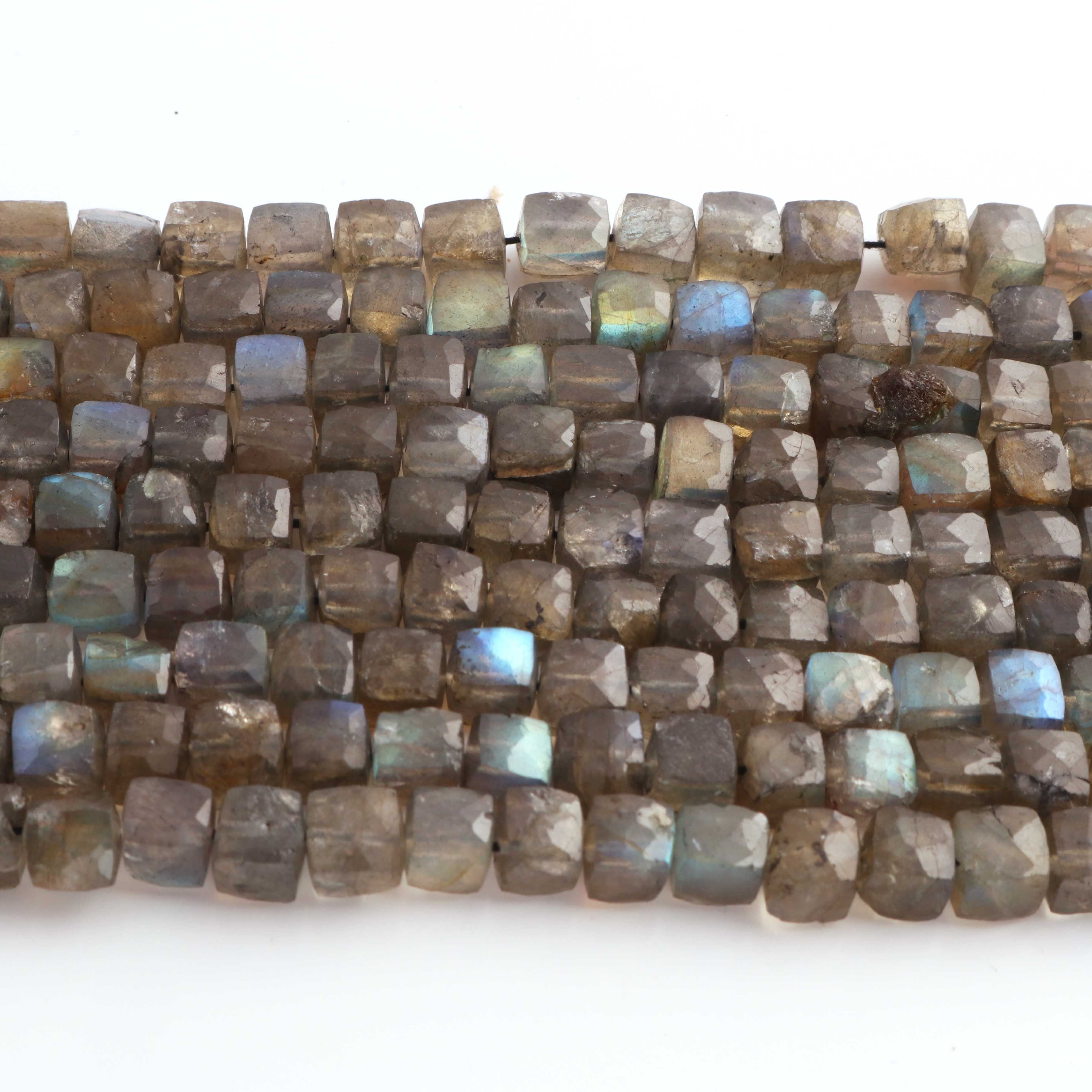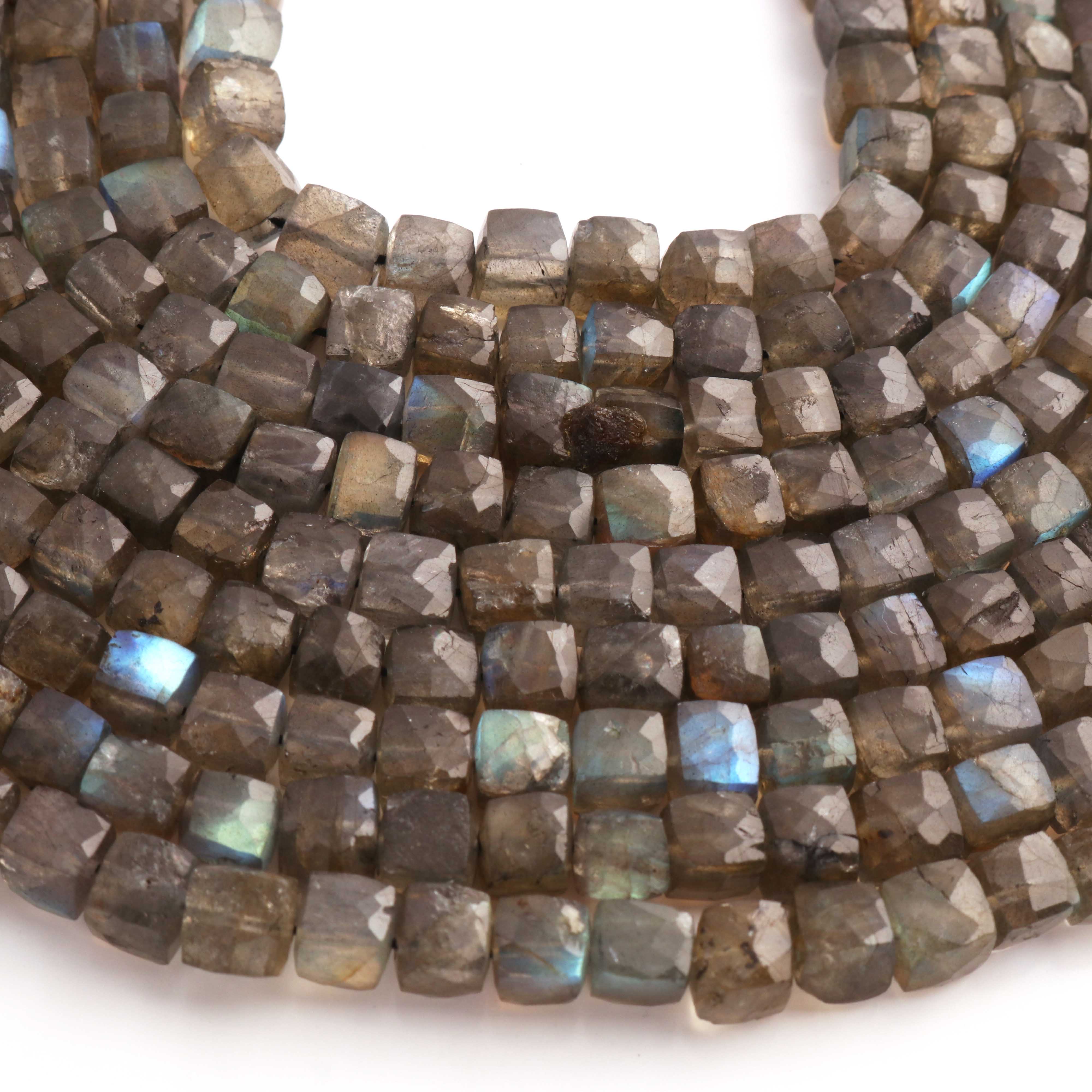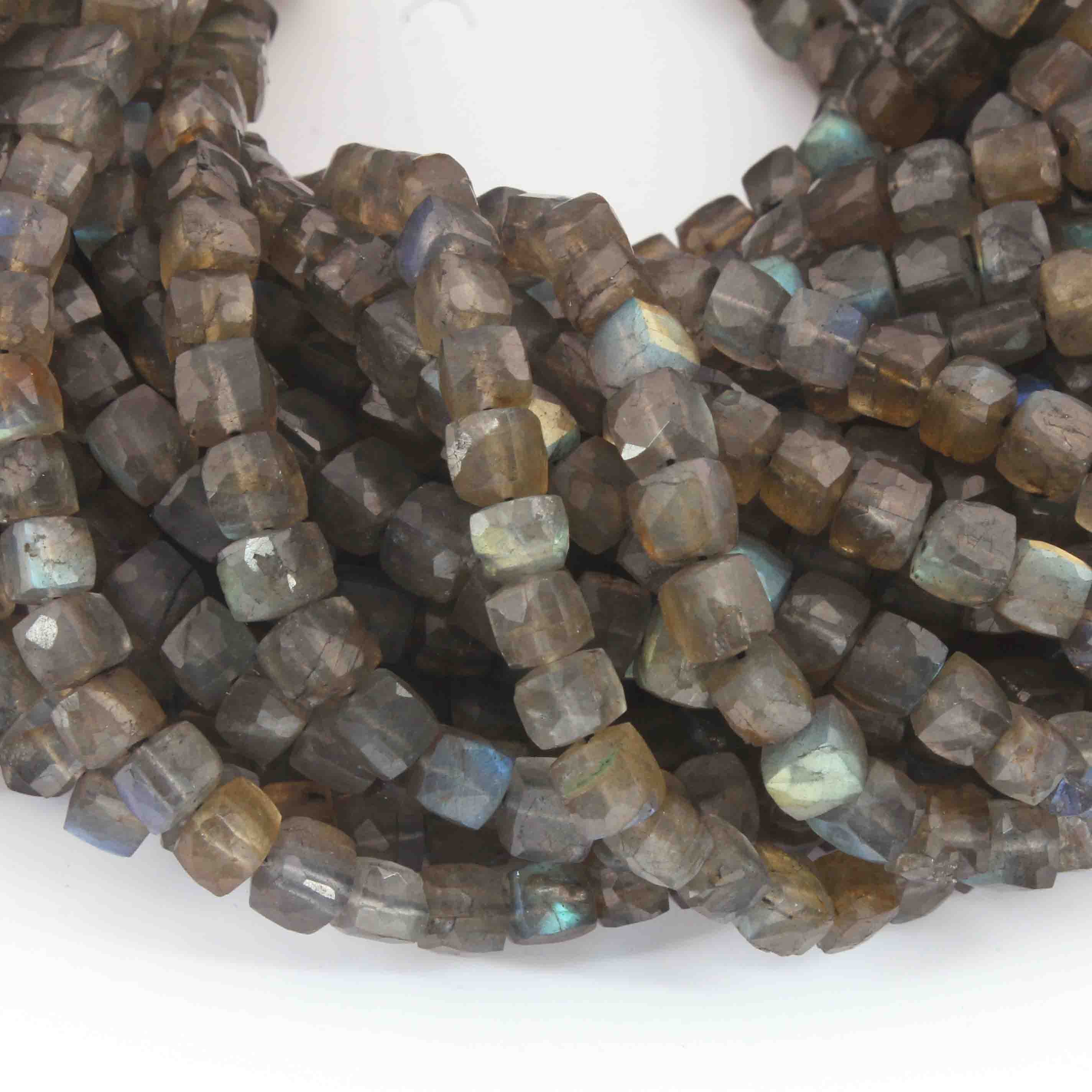 1 Strand Labradorite Faceted Cube Briolettes-Semi Precious Labradorite Box Gemstone Beads 5mm-7mm 8 Inches BR02632