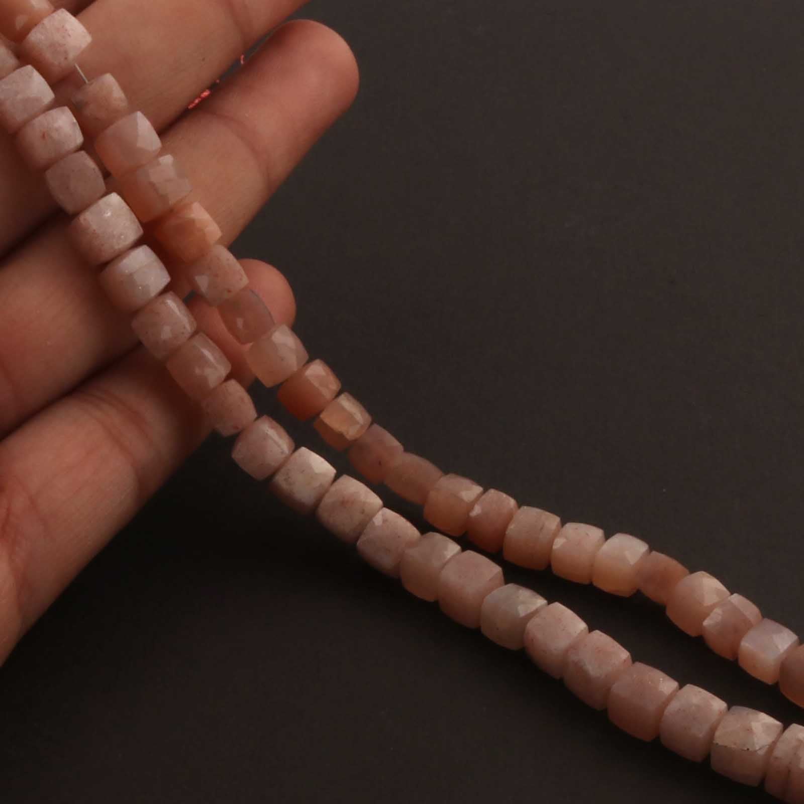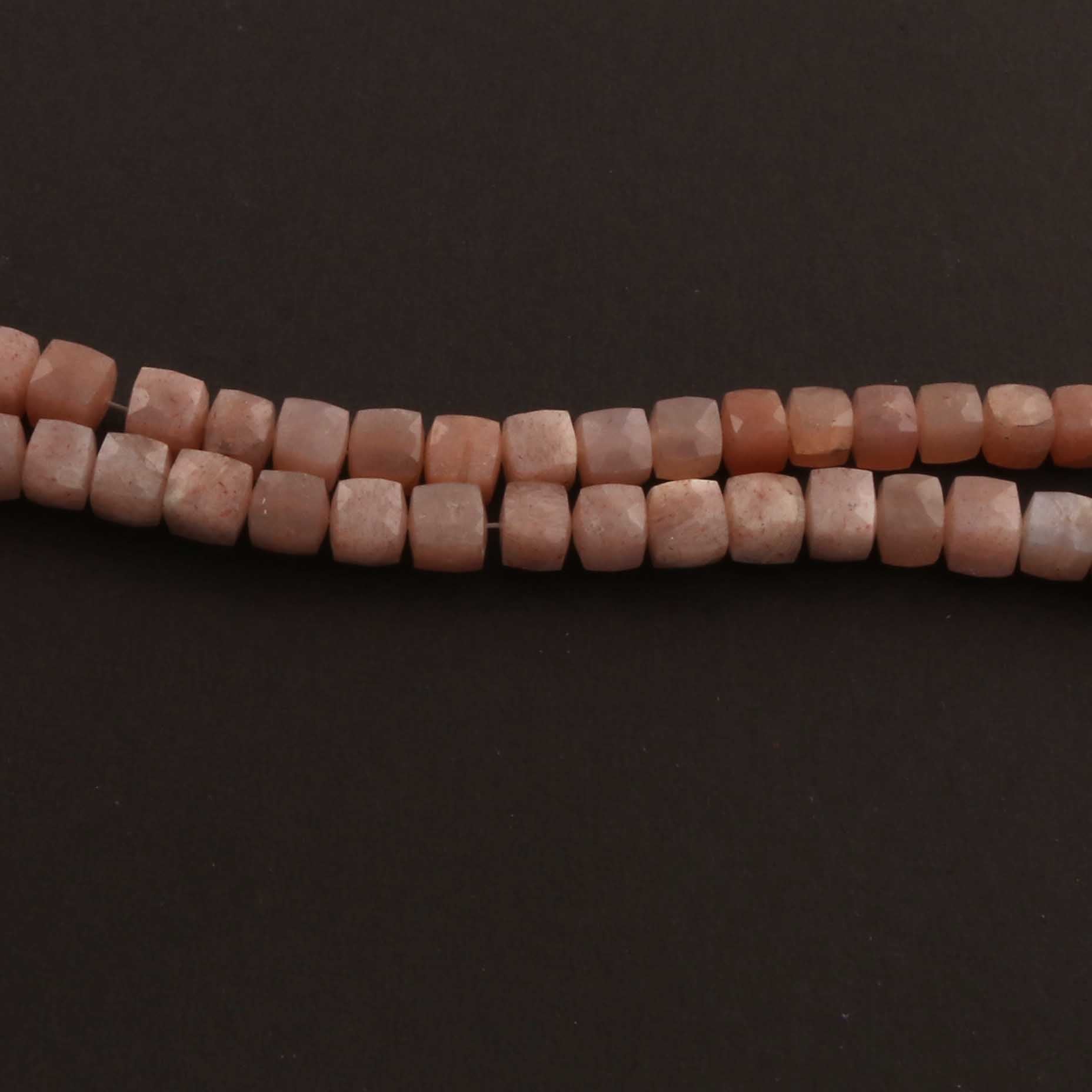 1 Strand Peach Moonstone Faceted Cube Briolettes - Box shape Beads -5mm-7mm - 8 Inches BR0638