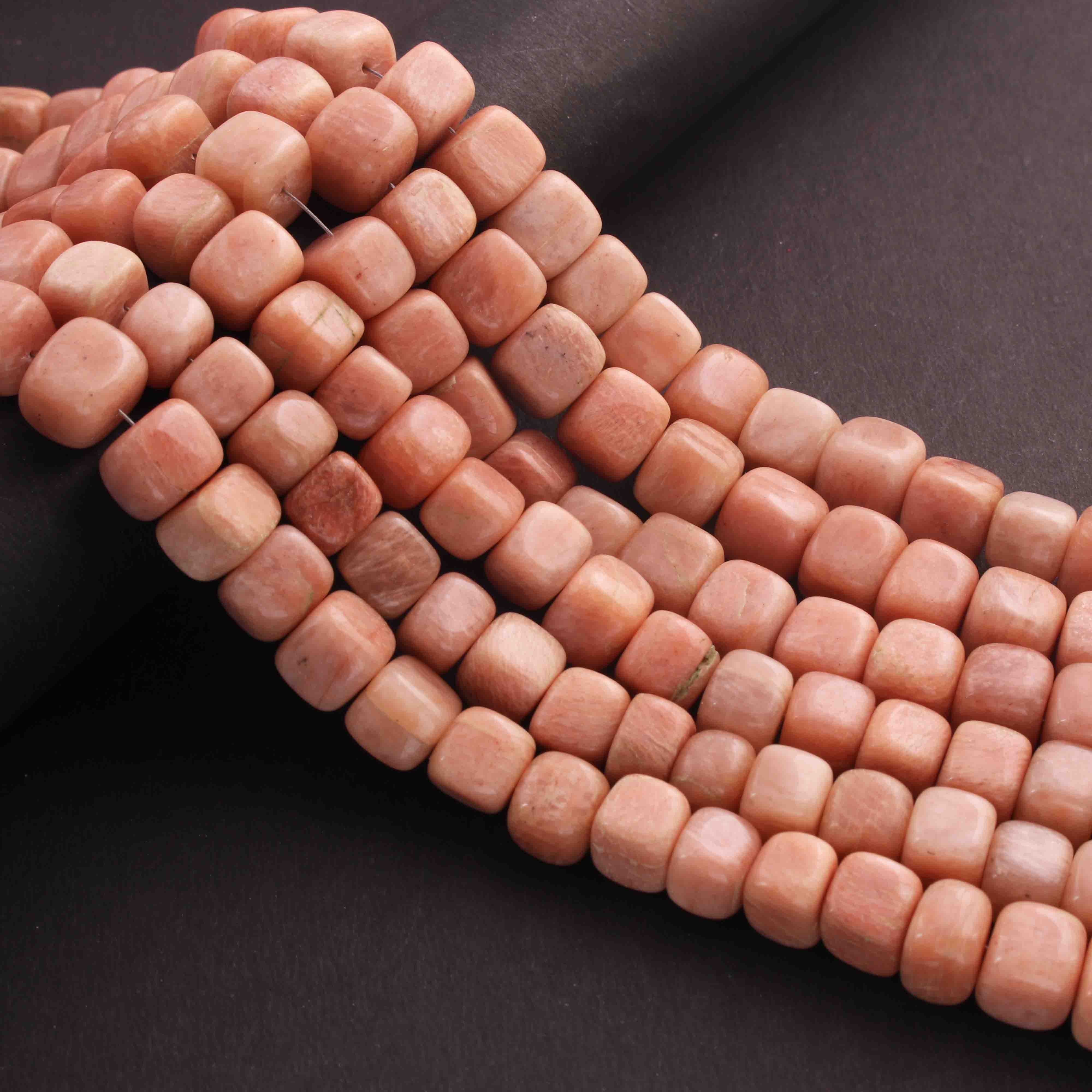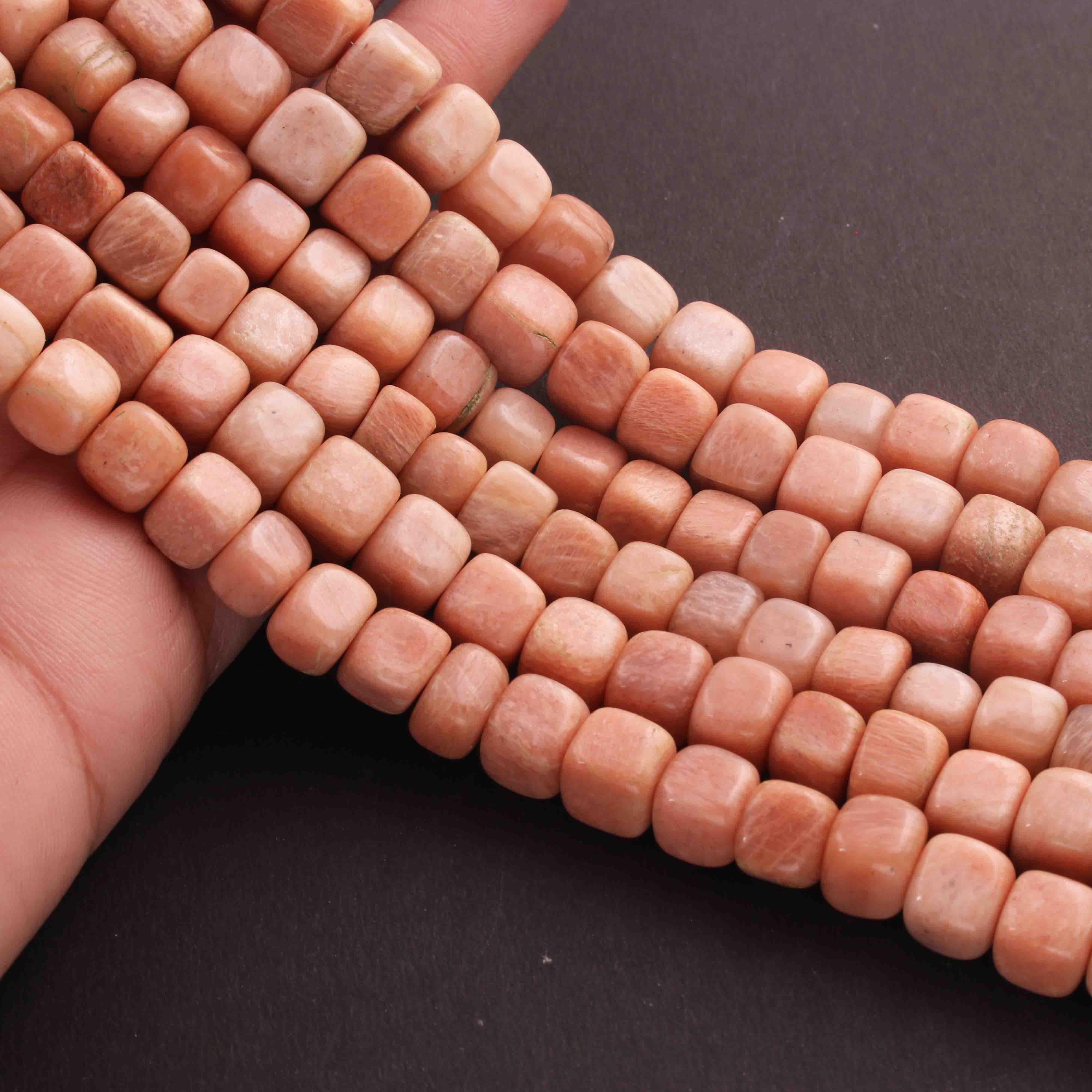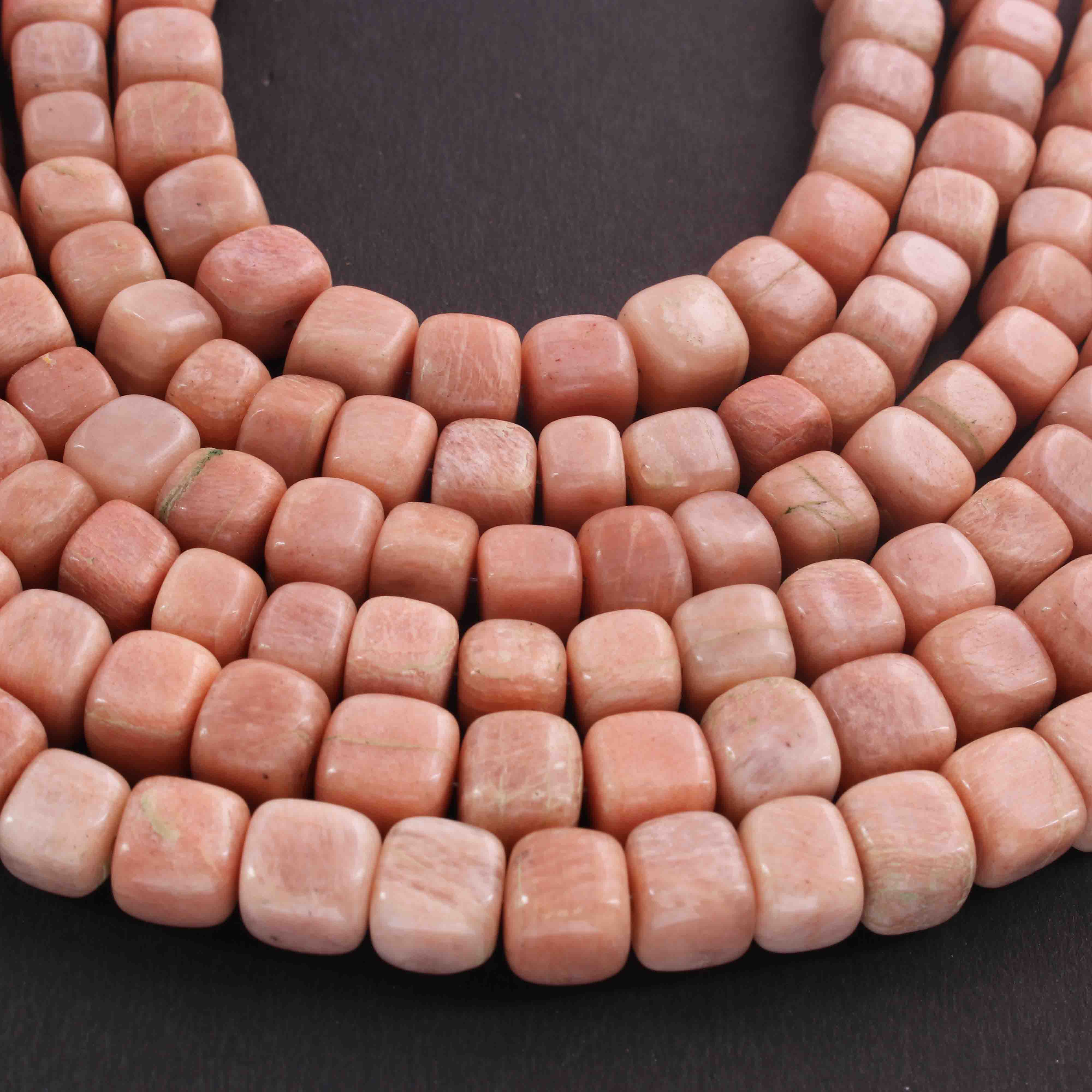1 Strand Peach Moonstone Smooth Cube Briolettes - Cube shape Beads -6mmx8mm-9mmx10mm - 10.5 Inches BR01651