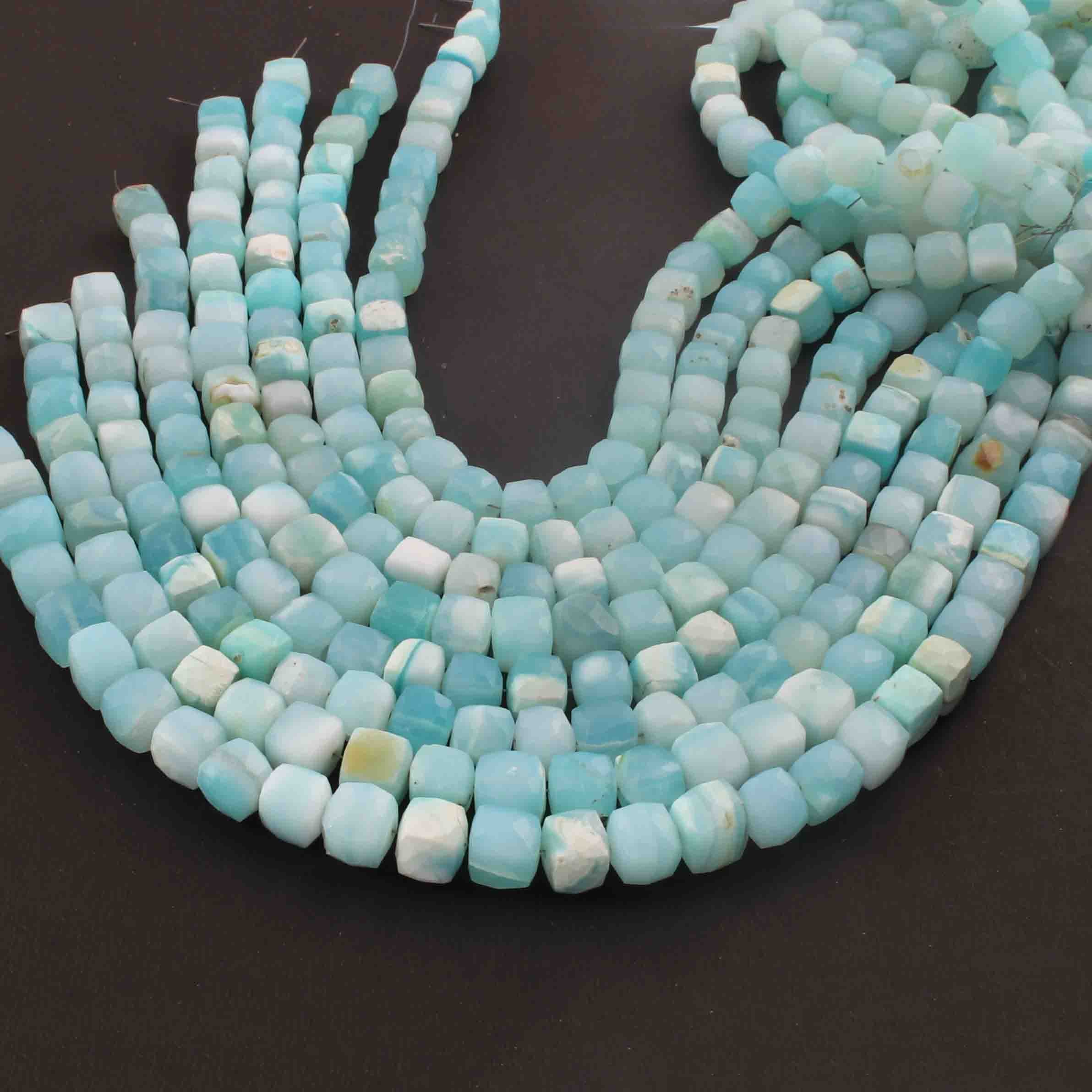 1 Strand Peru Opal Faceted Briolettes - Cube Shape Briolettes 7mm-9mm-10 Inches BR01699