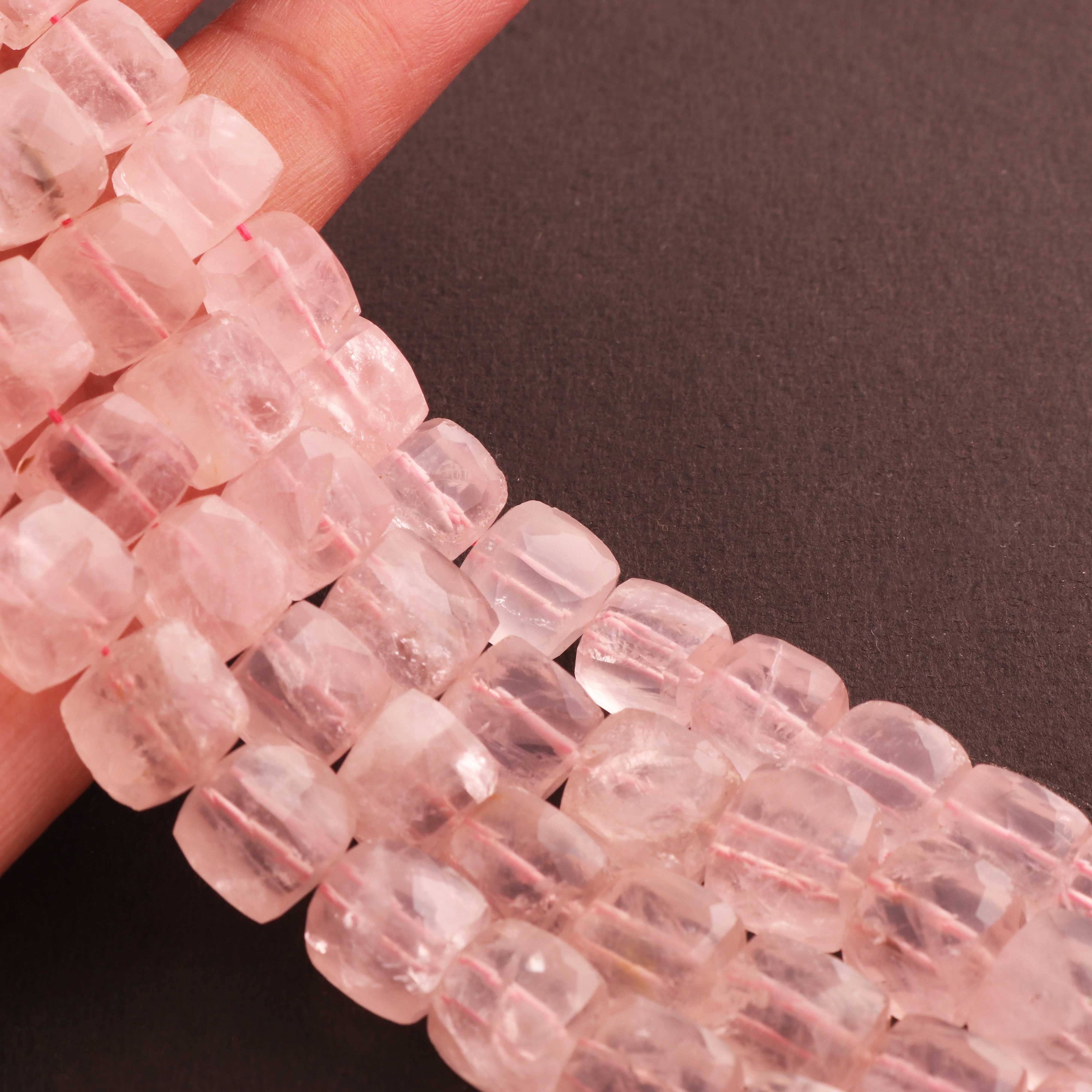 1 Strand Rose Quartz Faceted Cube Briolettes -Rose Quartz Cube Briolettes - 7mm-10mm 8 Inches BR1255