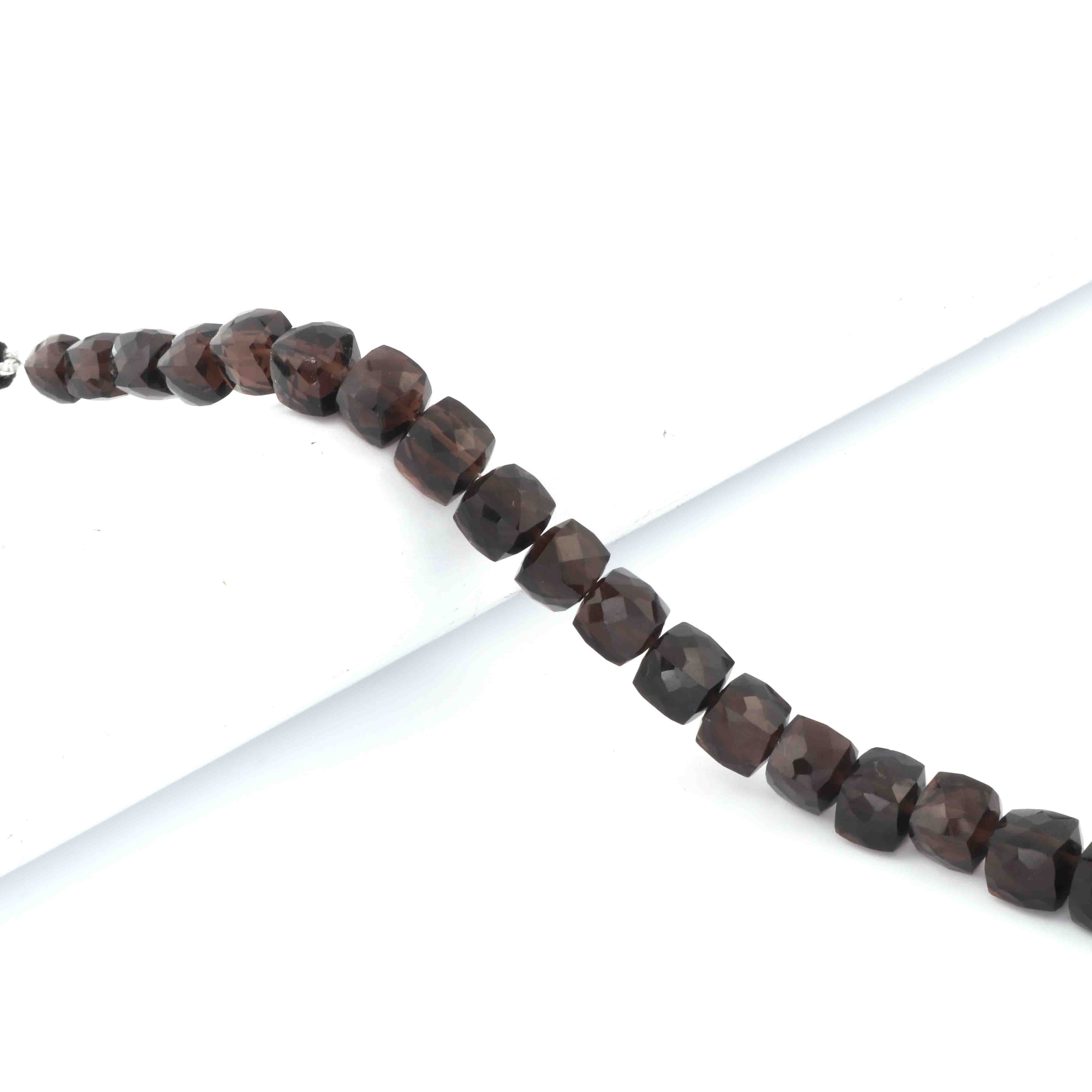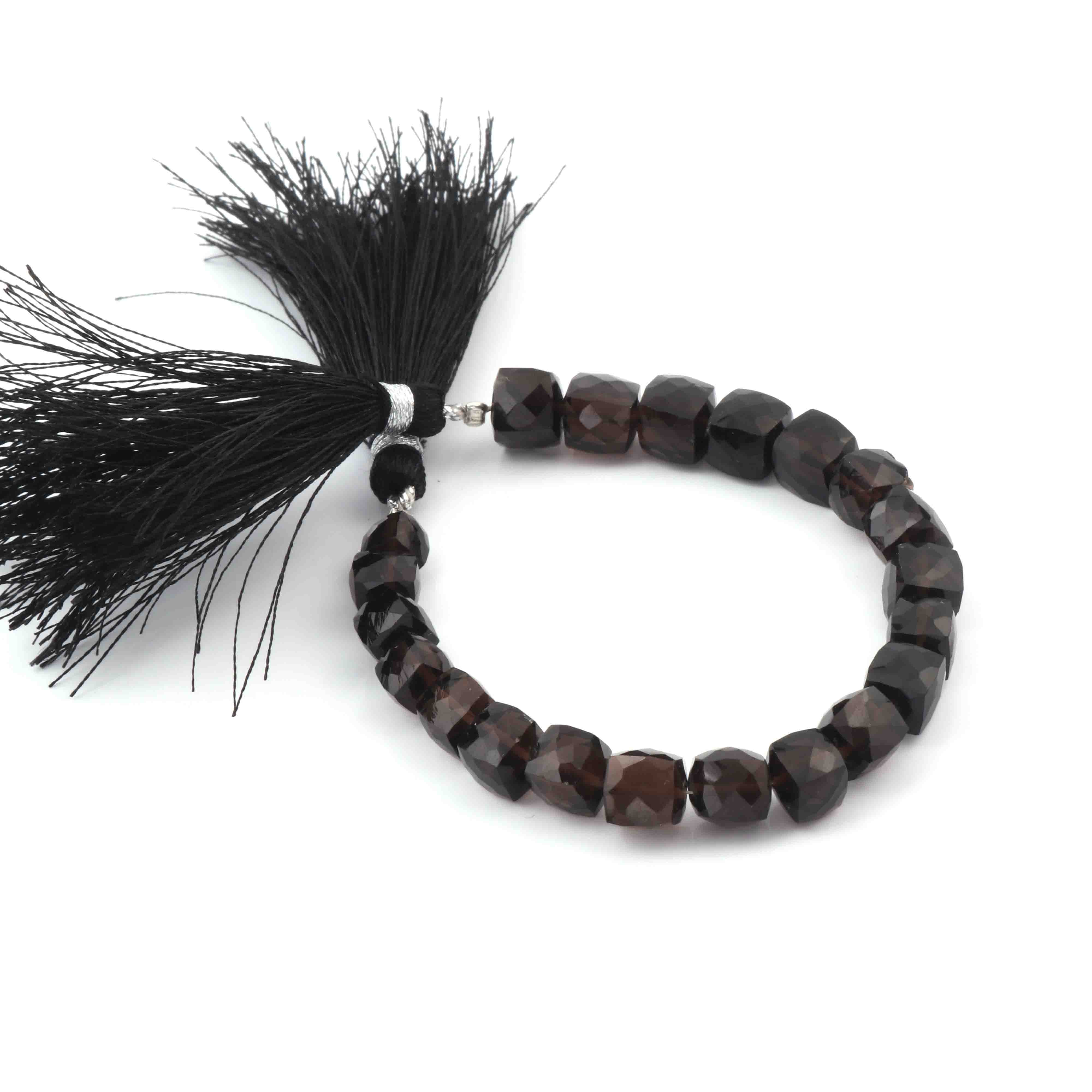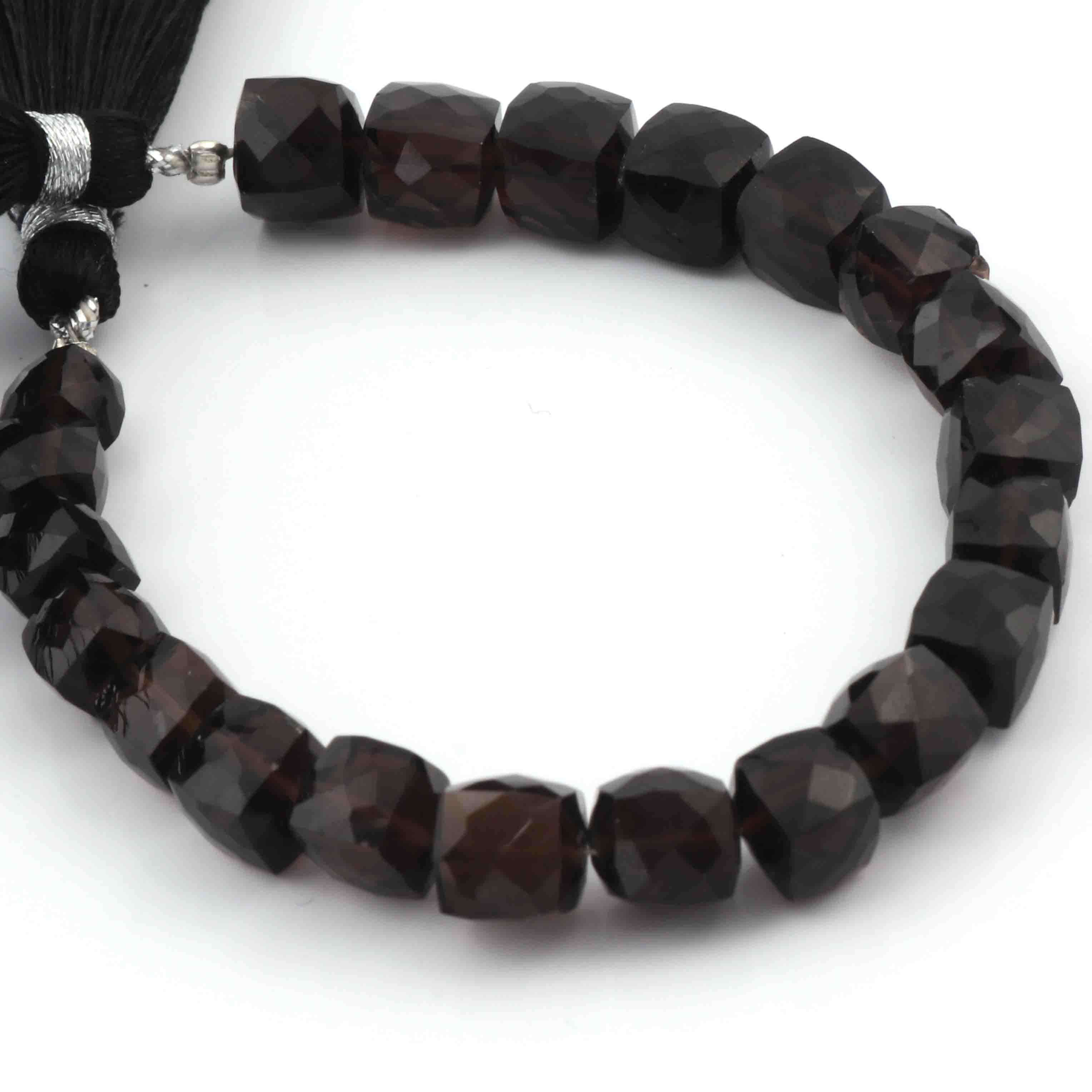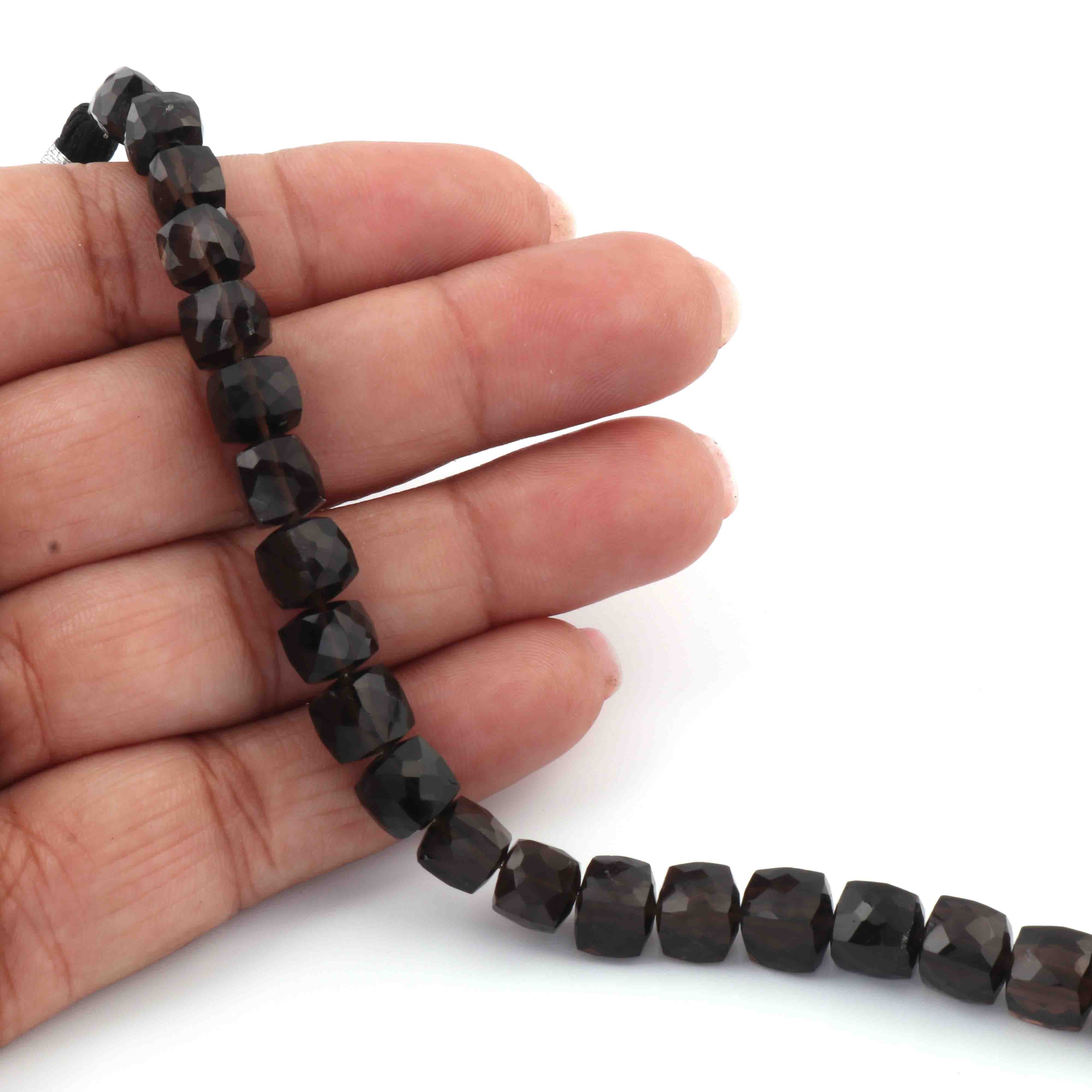 1 Strand Smoky Faceted Briolettes -Cube Shape Briolettes 7mm- 6 Inches BR2648