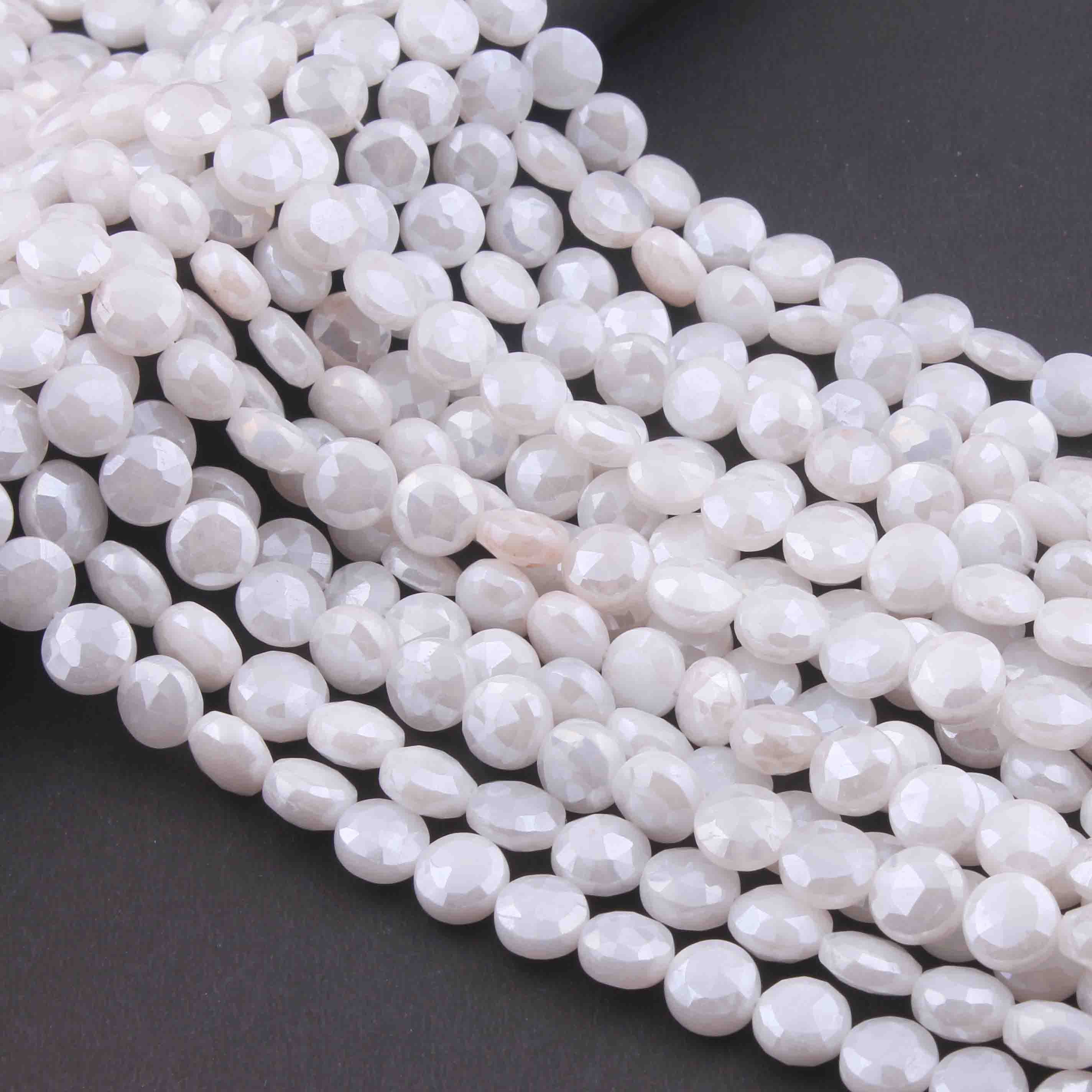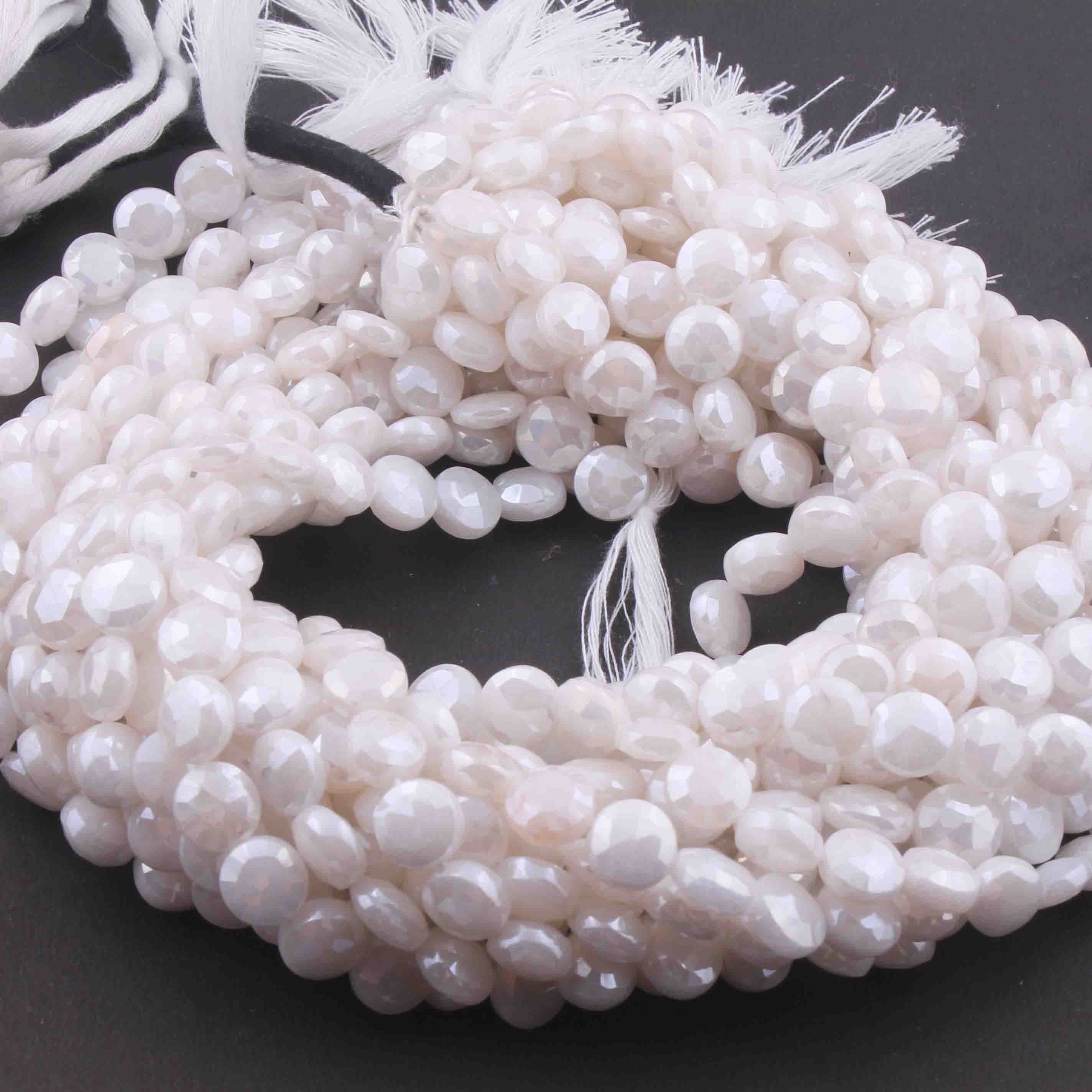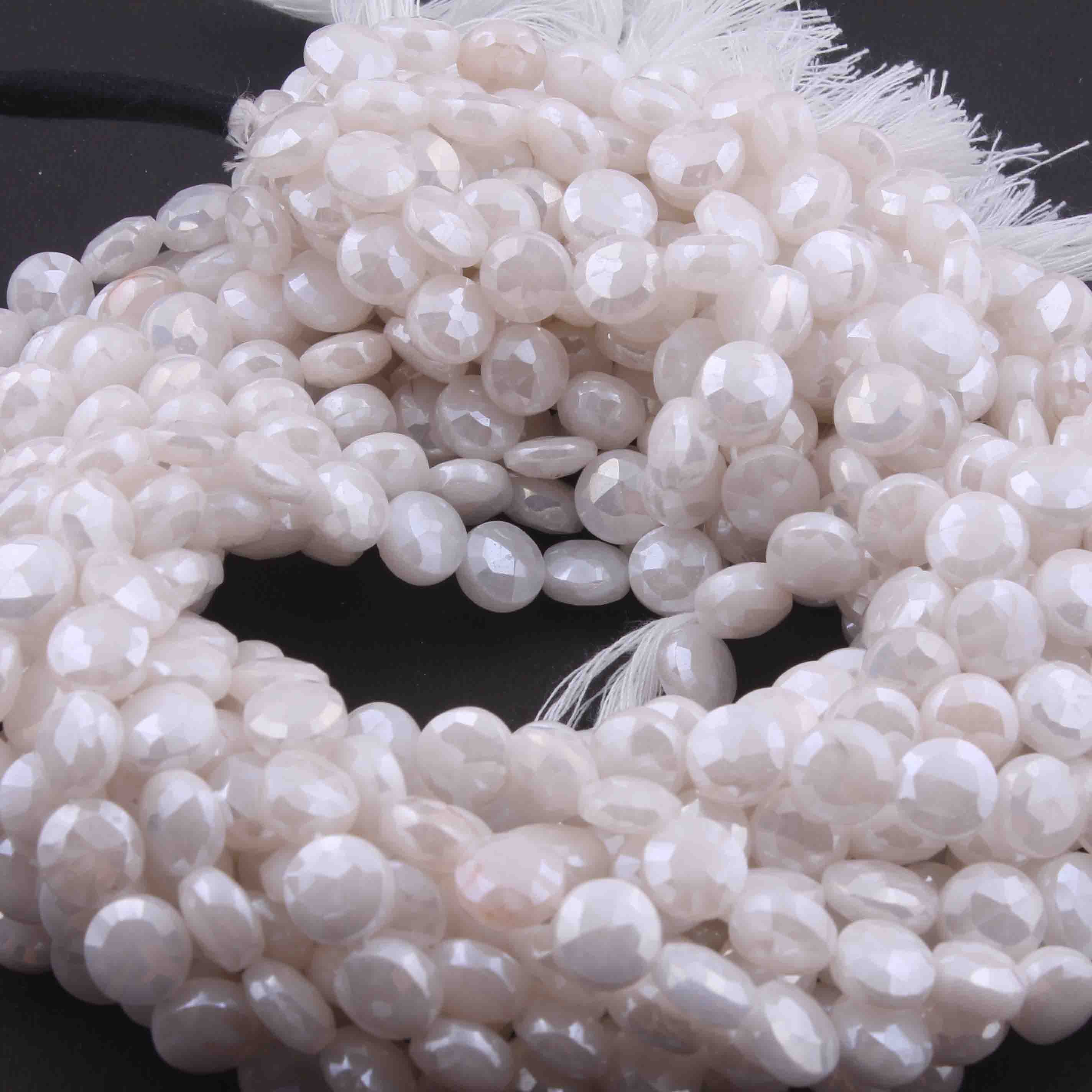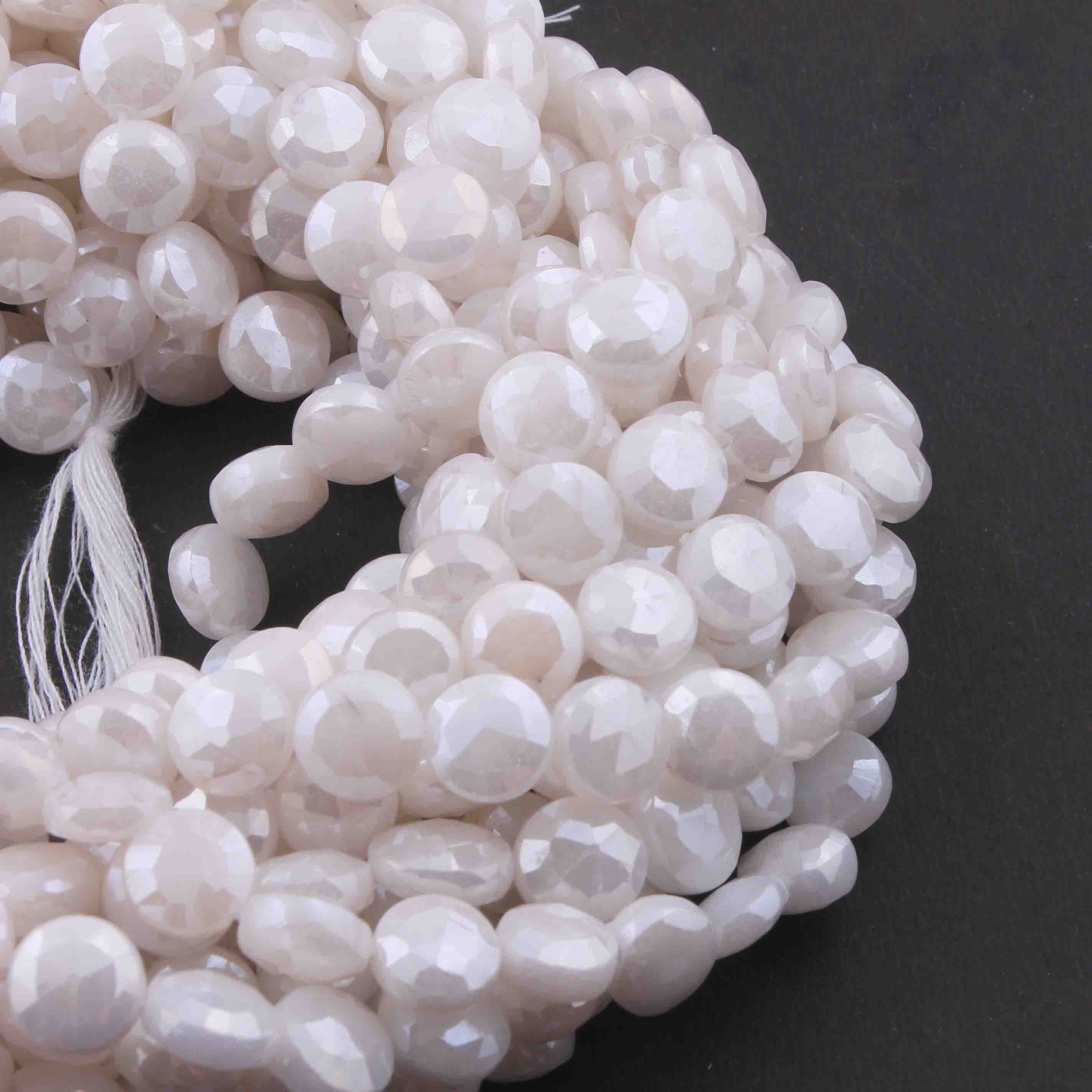 1 Strand White Silverite Faceted Briolettes - Silverite Coin Beads 9mm-10mm 15 Inches BR2517