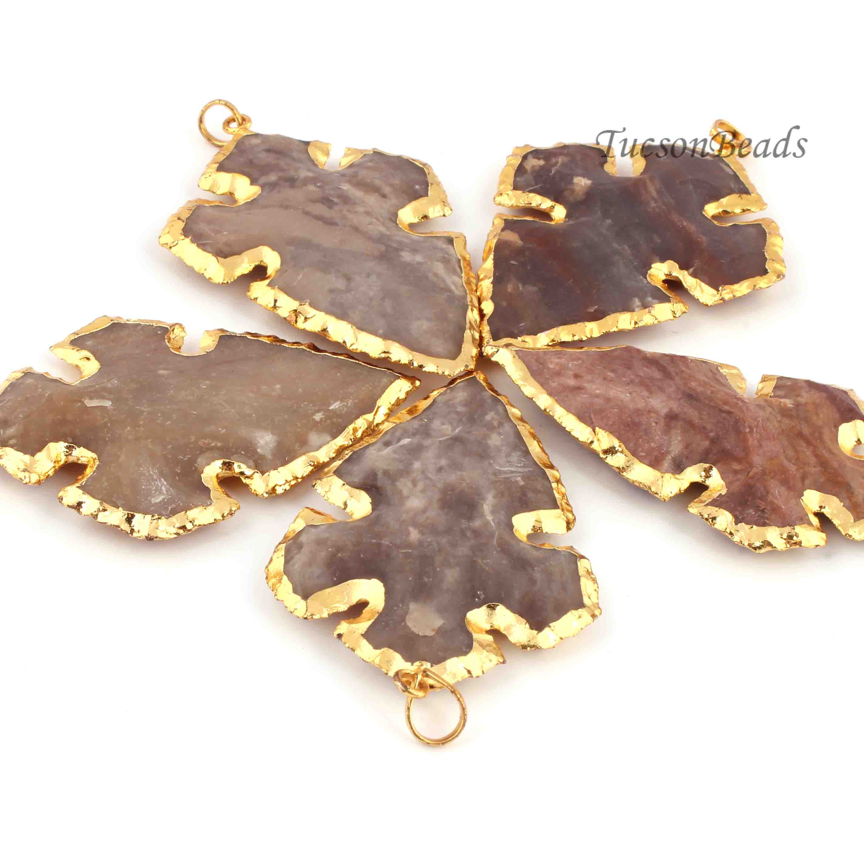10 Pcs Jasper Arrowhead 24k Gold Plated Charm Single Bail Pendant - Electroplated With Gold Edge 64mmX40mm - AR120