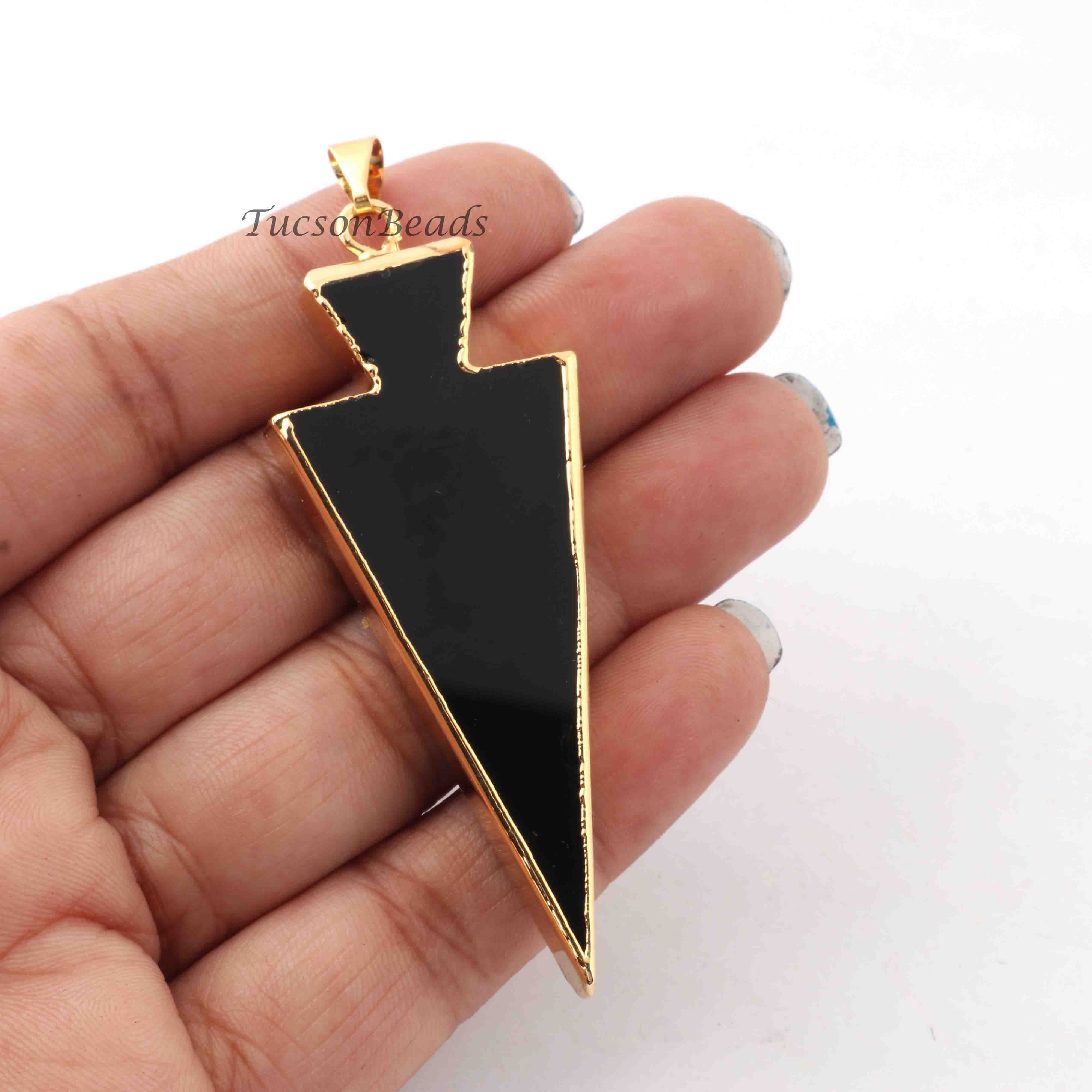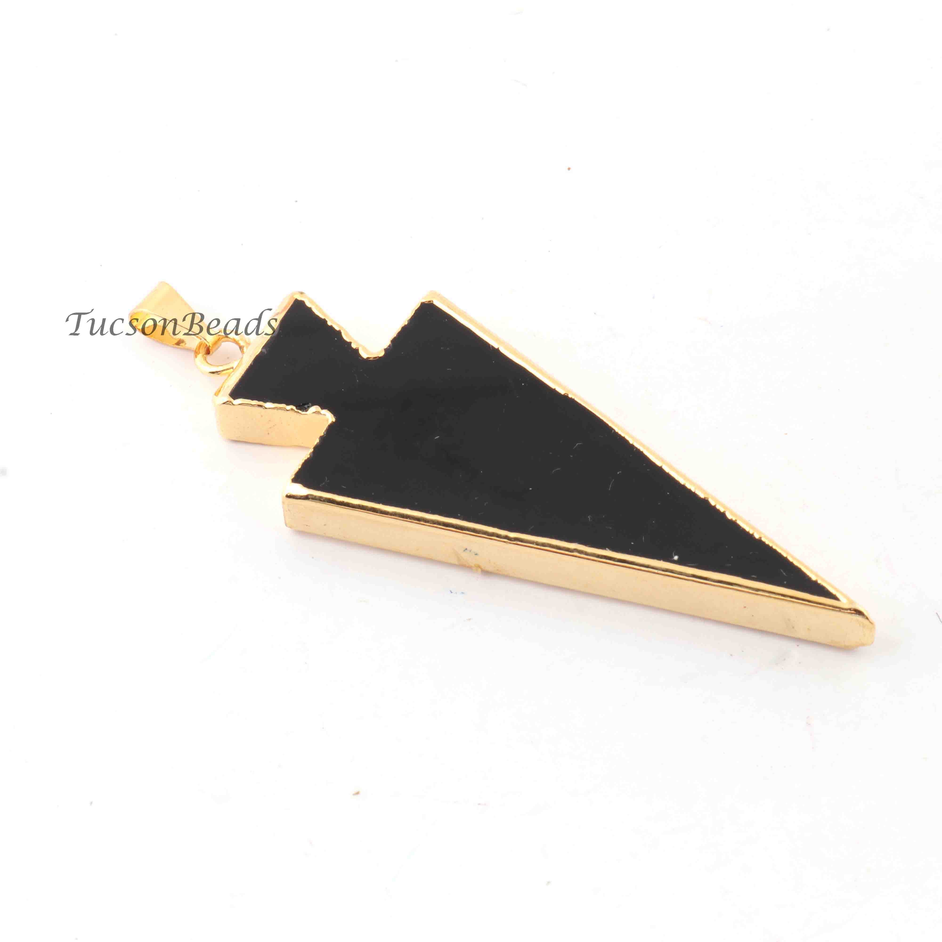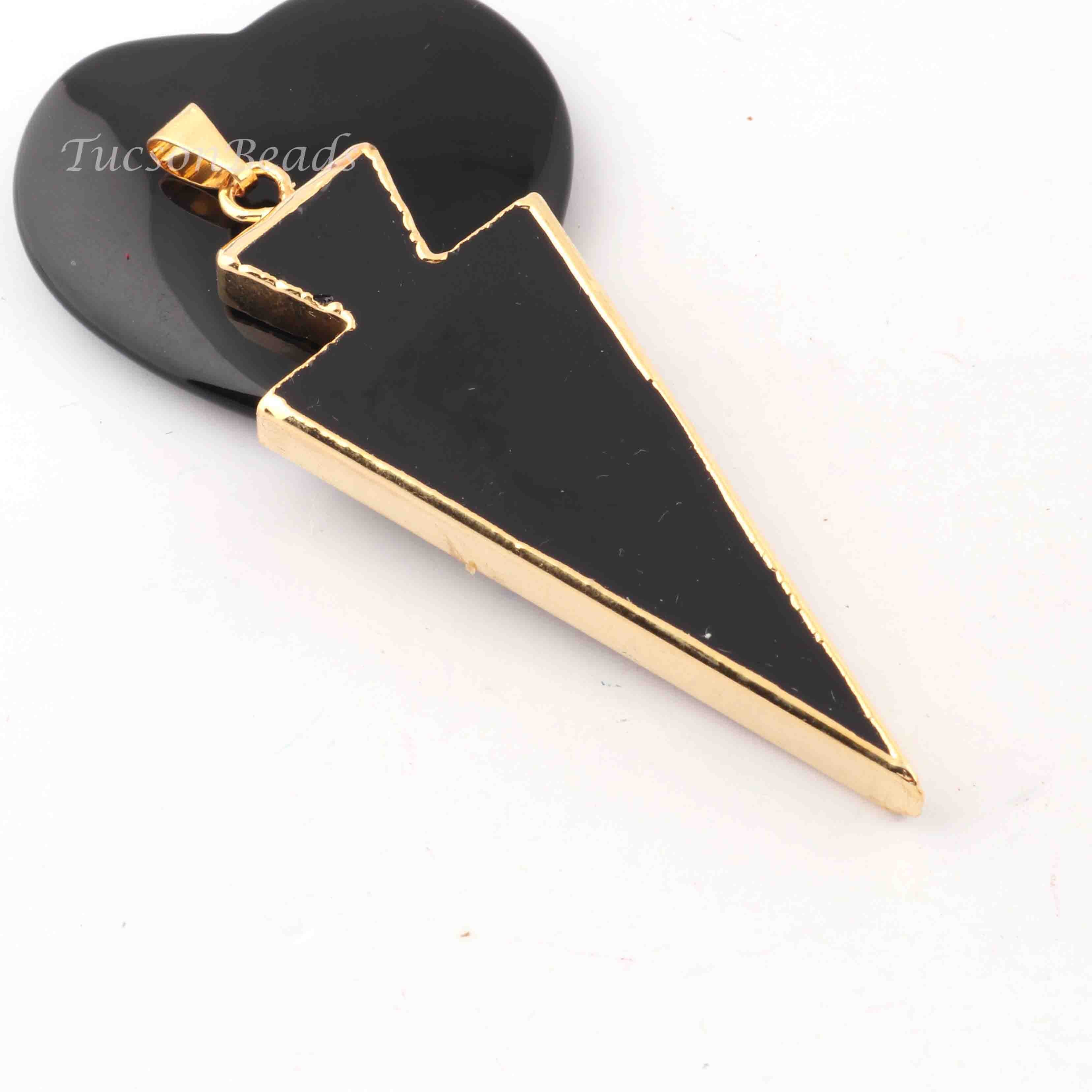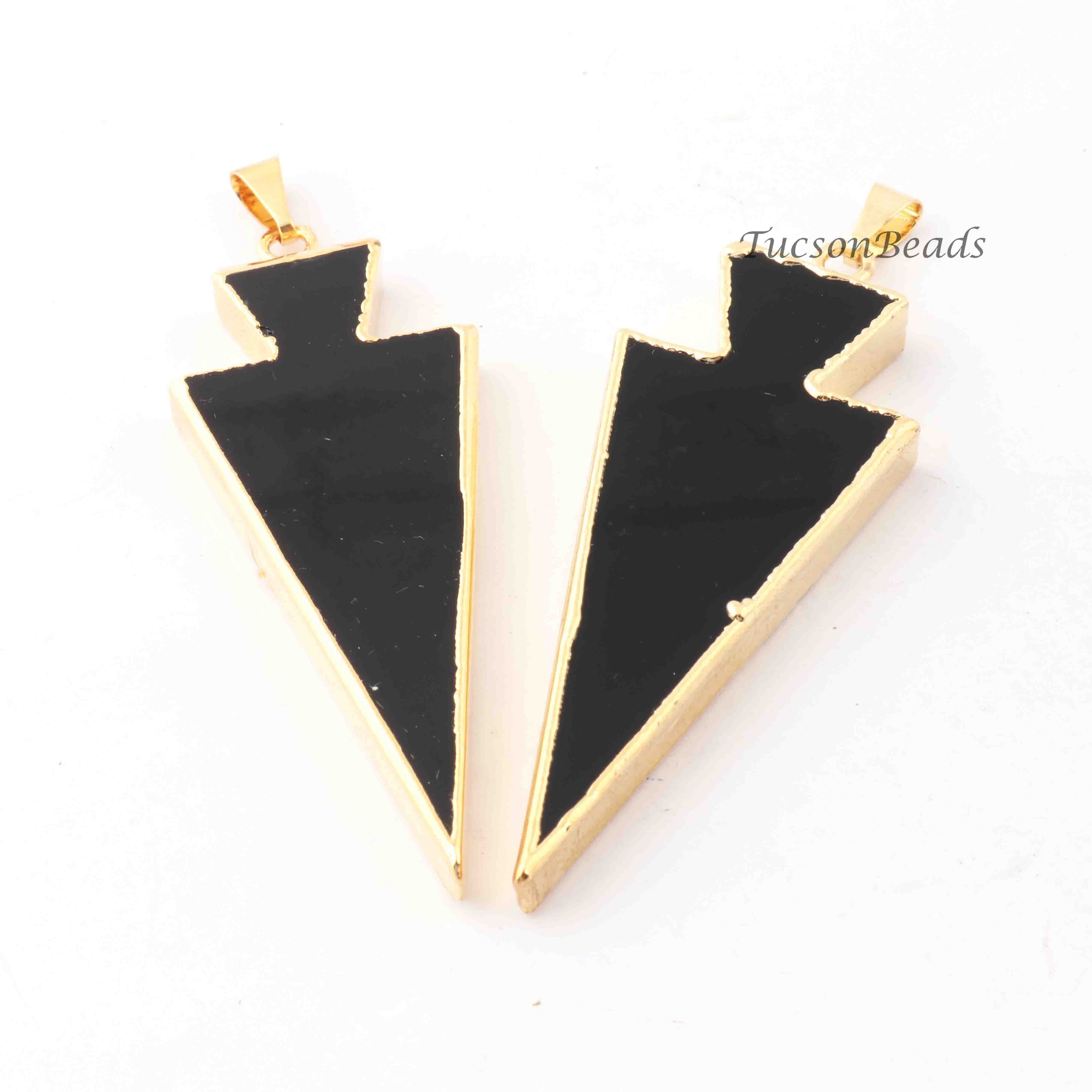 5 Pcs Black Jasper Arrowhead 24k Gold Plated Single Bail Pendant - Electroplated With Gold Edge 72mmx21mm-66mmx21mm-9mmx4mm AR034