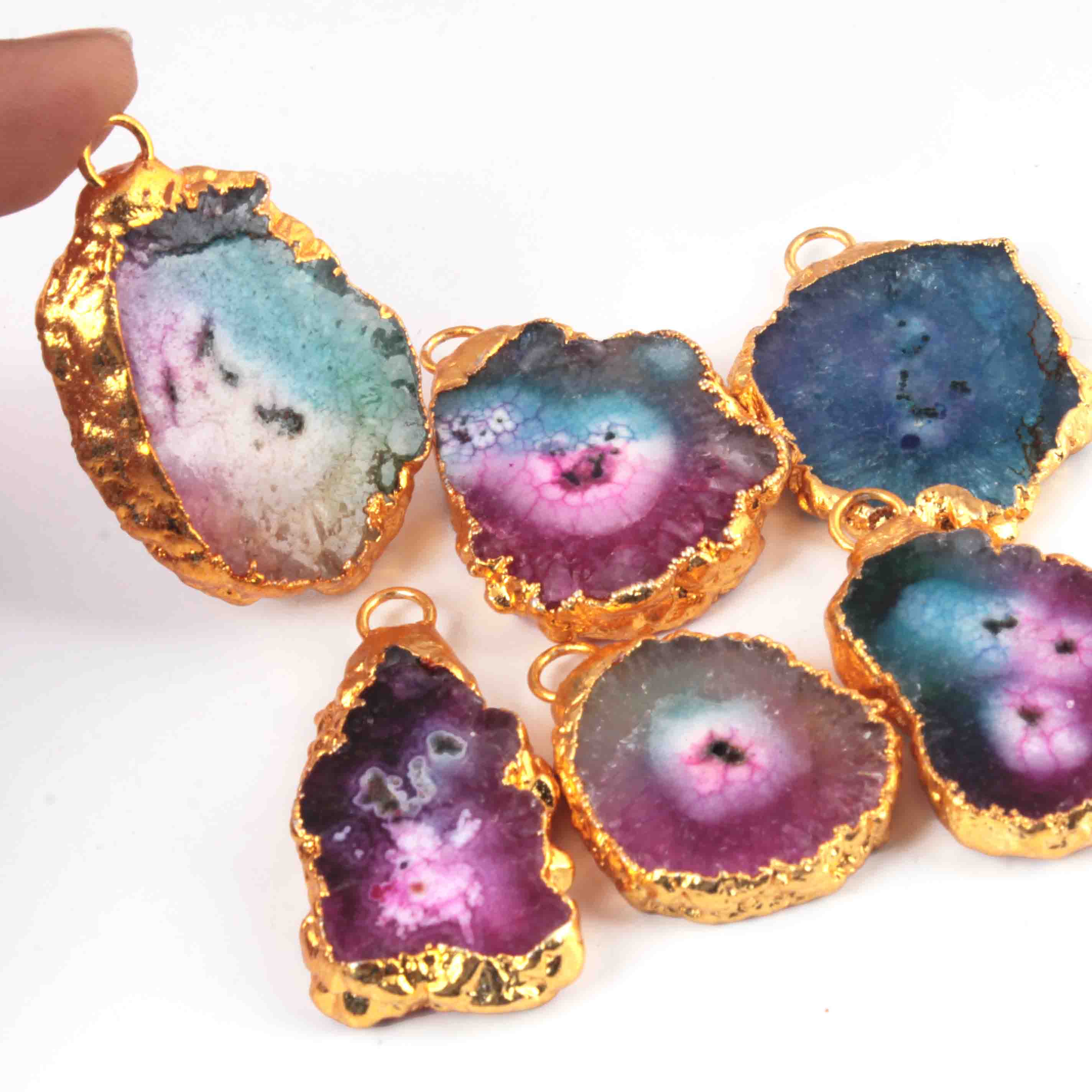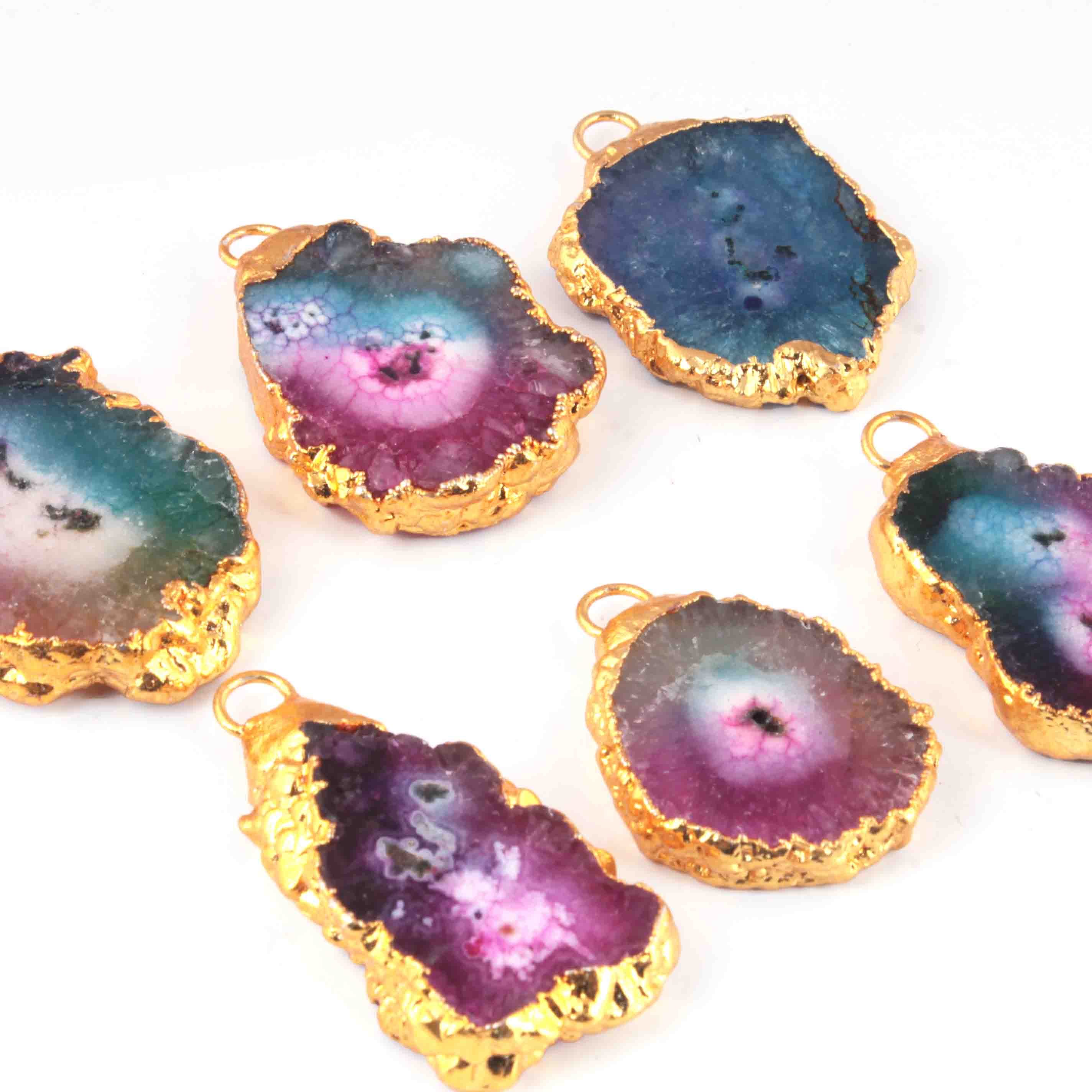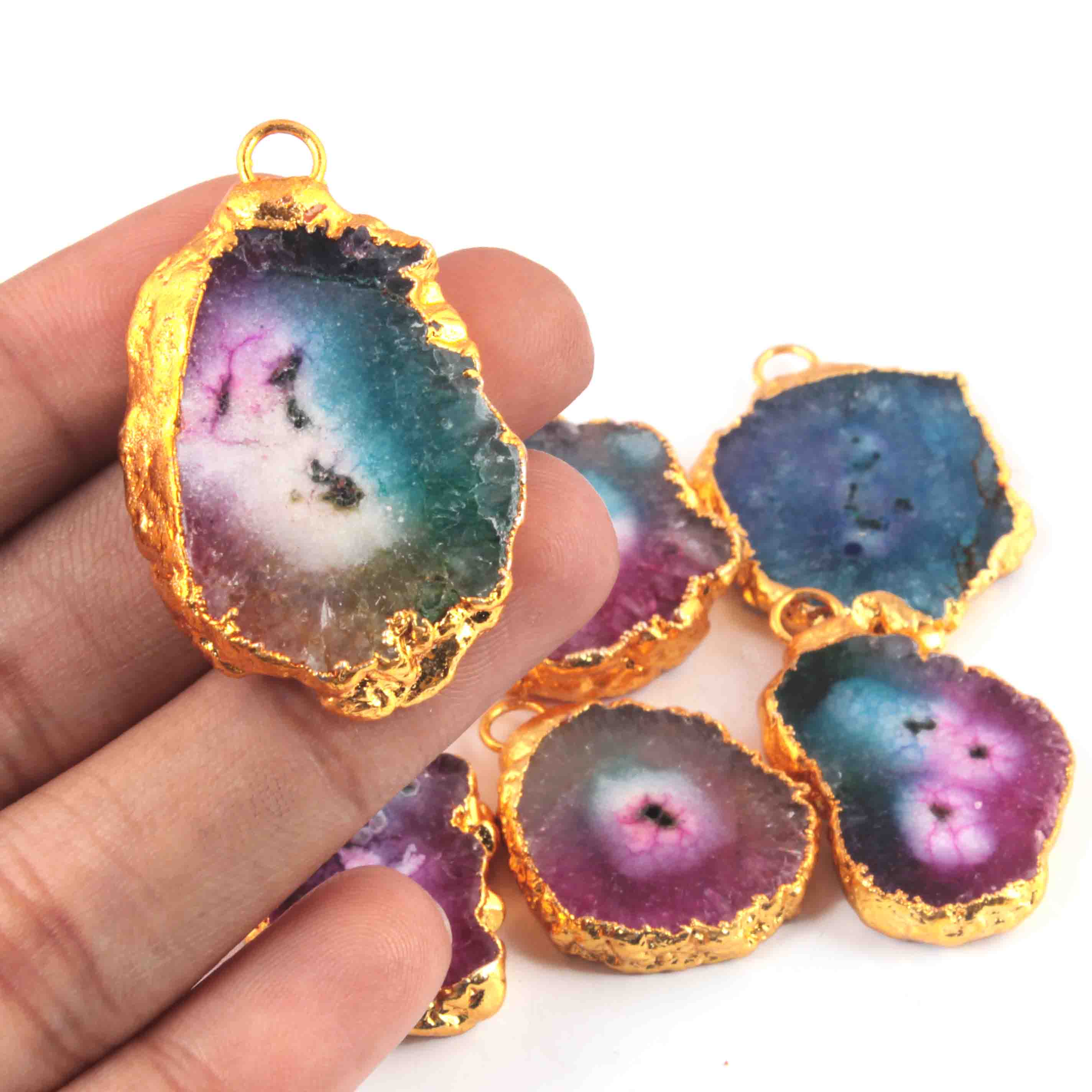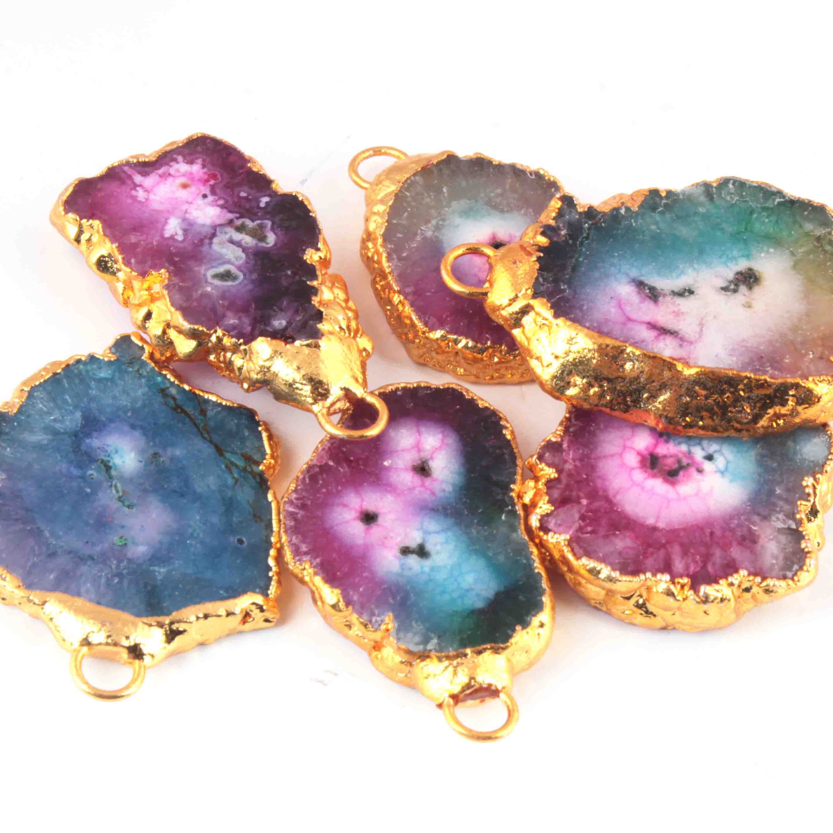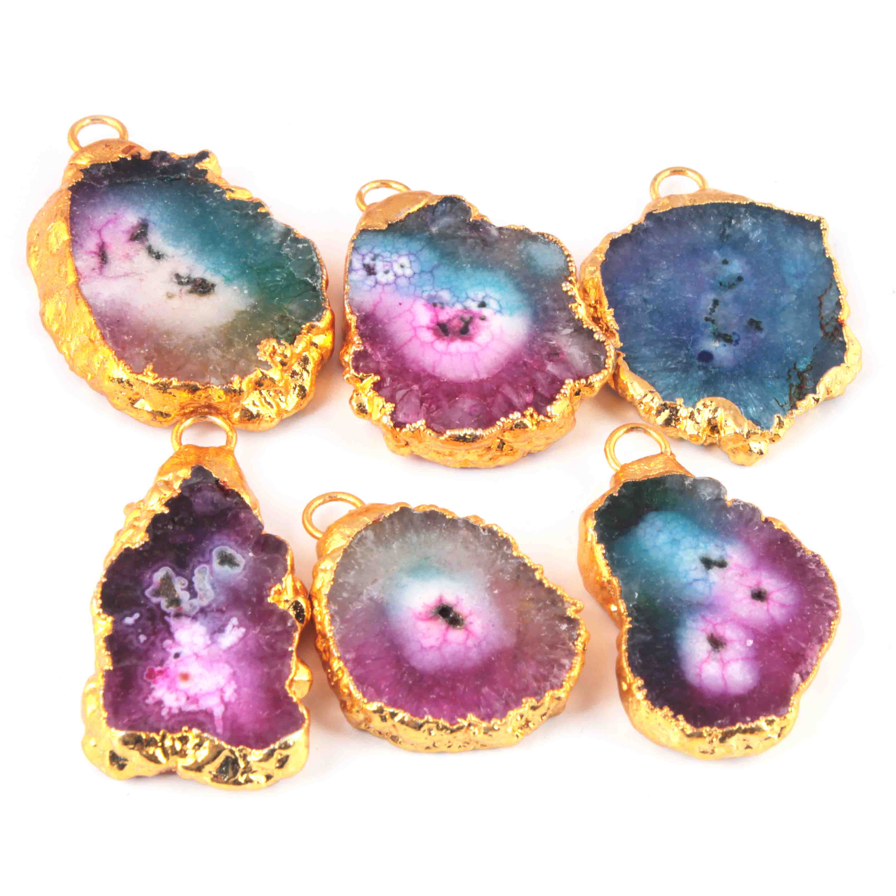 6 Pcs Multi Druzzy Drusy Agate Slice Pendant - Electroplated Gold Druzy Pendant - 39mmx25mm-34mmx21mm DRZ355