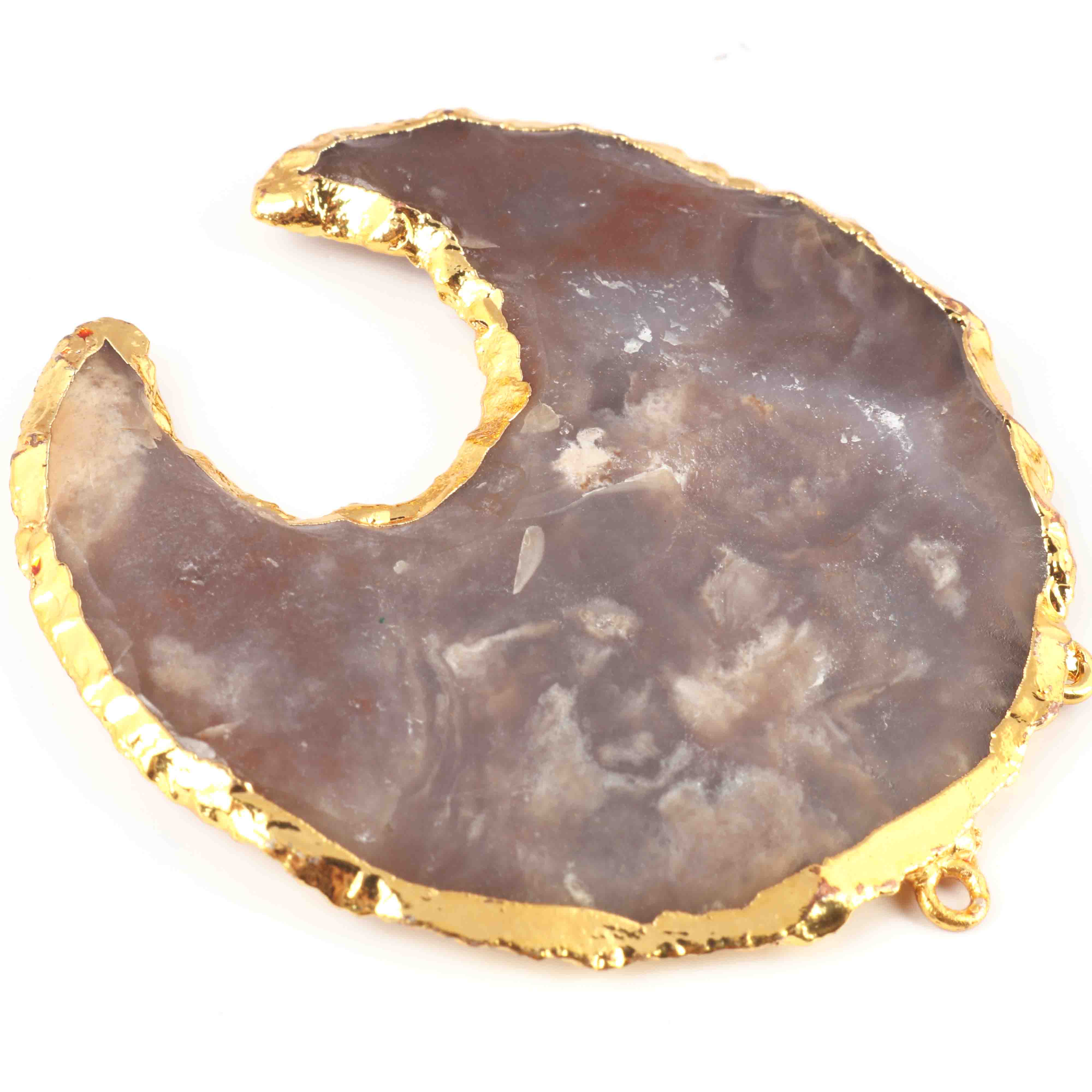 4 Pcs Brown Jasper Moon Arrowhead 24K Gold Plated Charm Pendant - Electroplated With Gold Edge - 51mmx49mm-60mmx48mm AR148