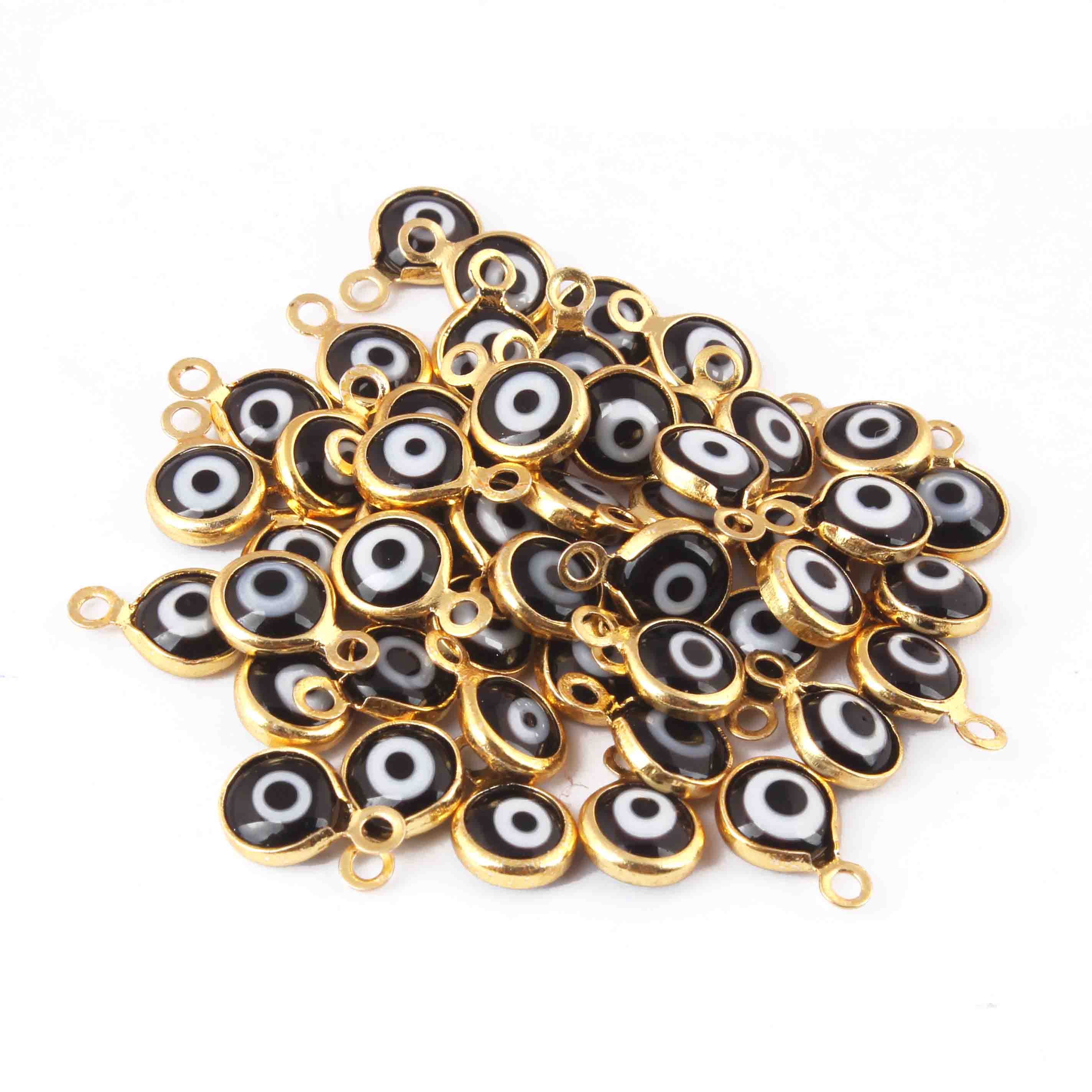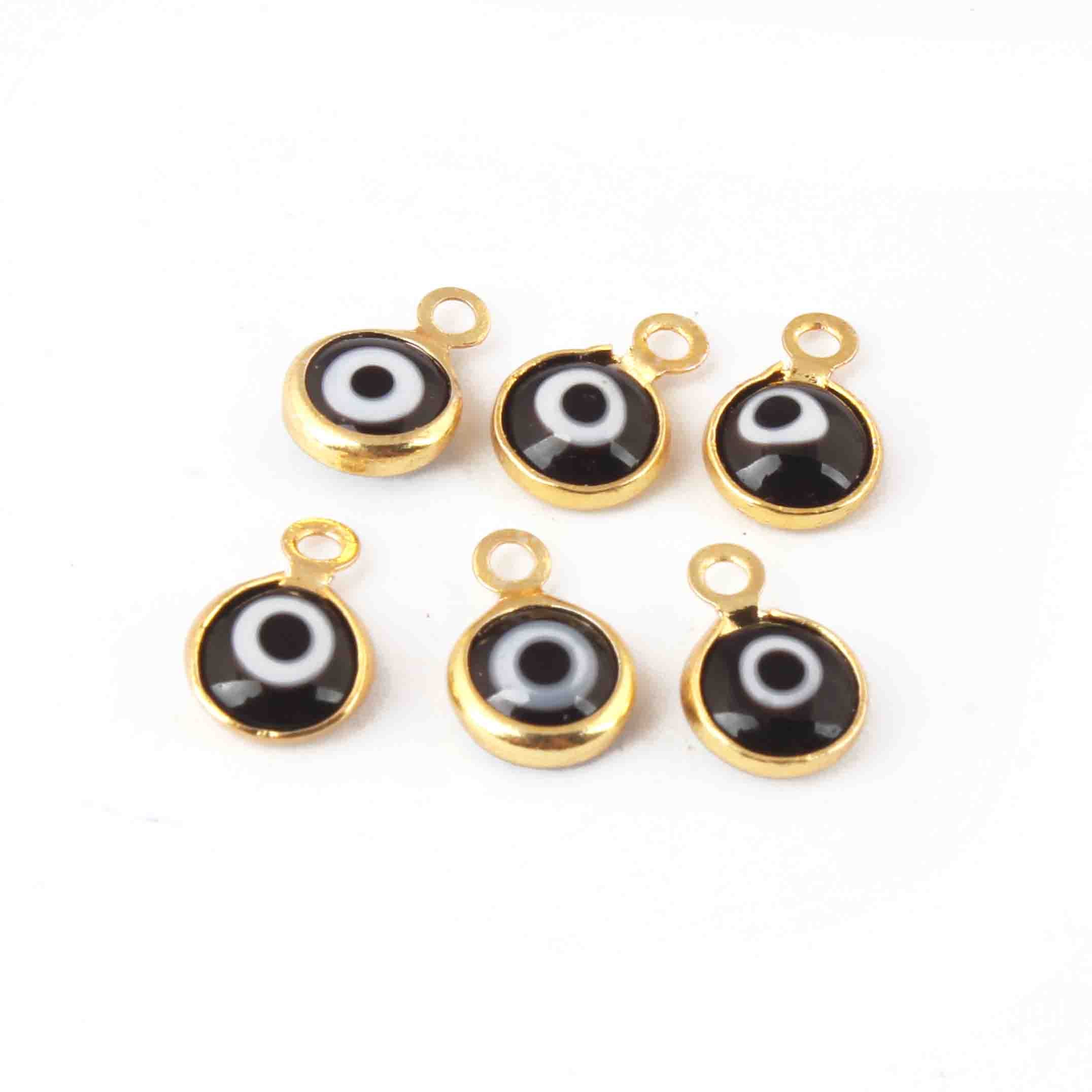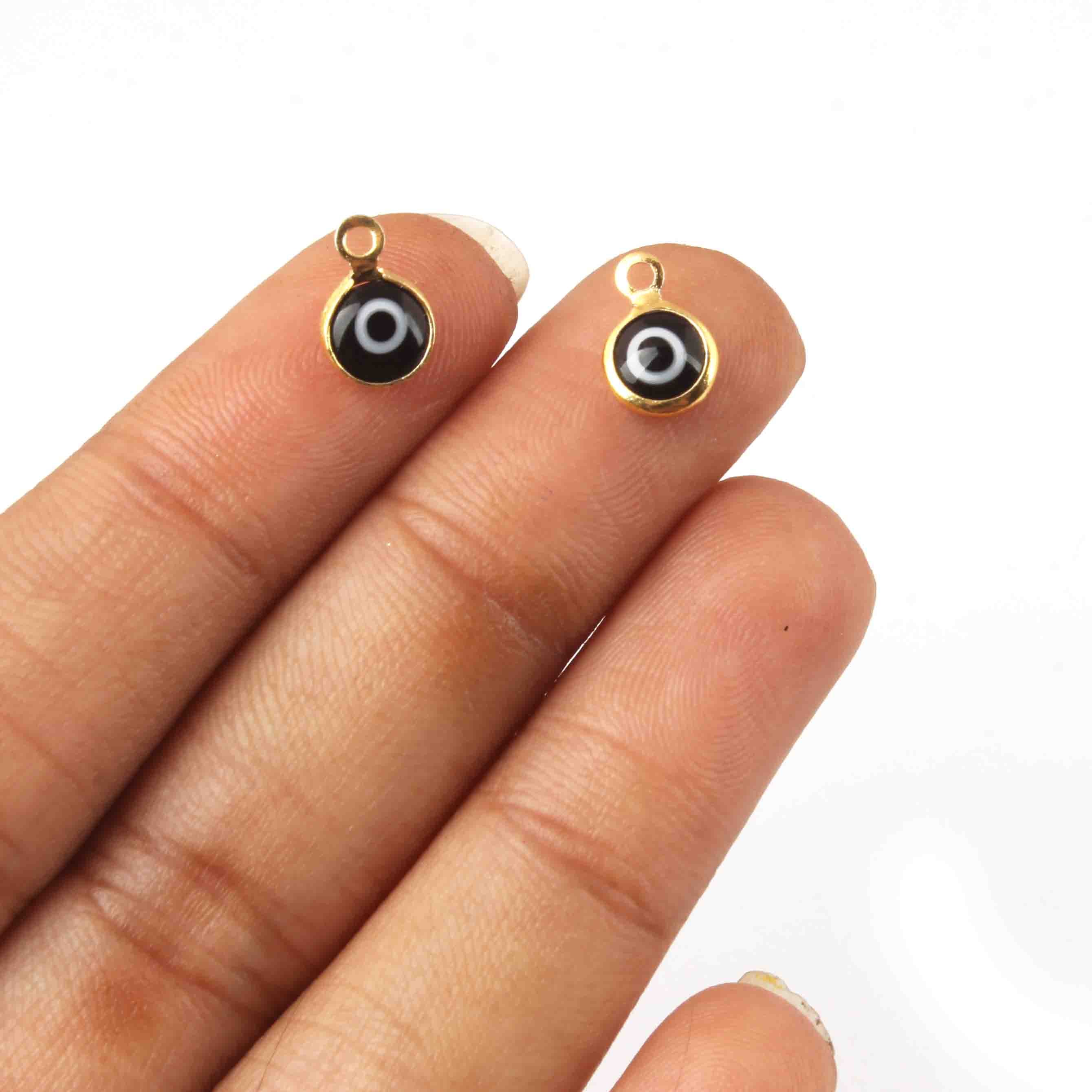 10 Pcs Black Evil eye charm 24k Gold Plated Pendant, evil eye pendant, glass evil eye charms 7mm-10mm PC626