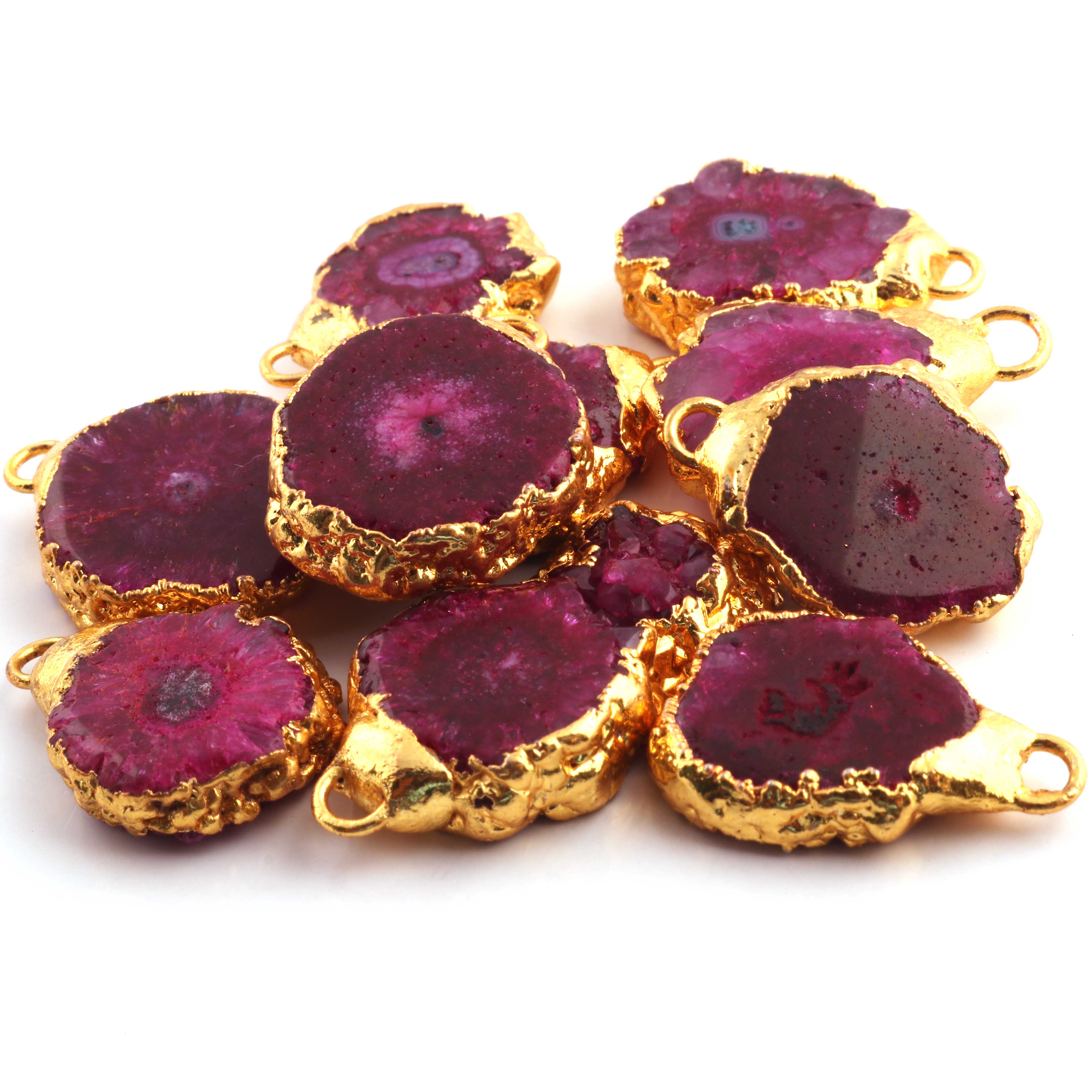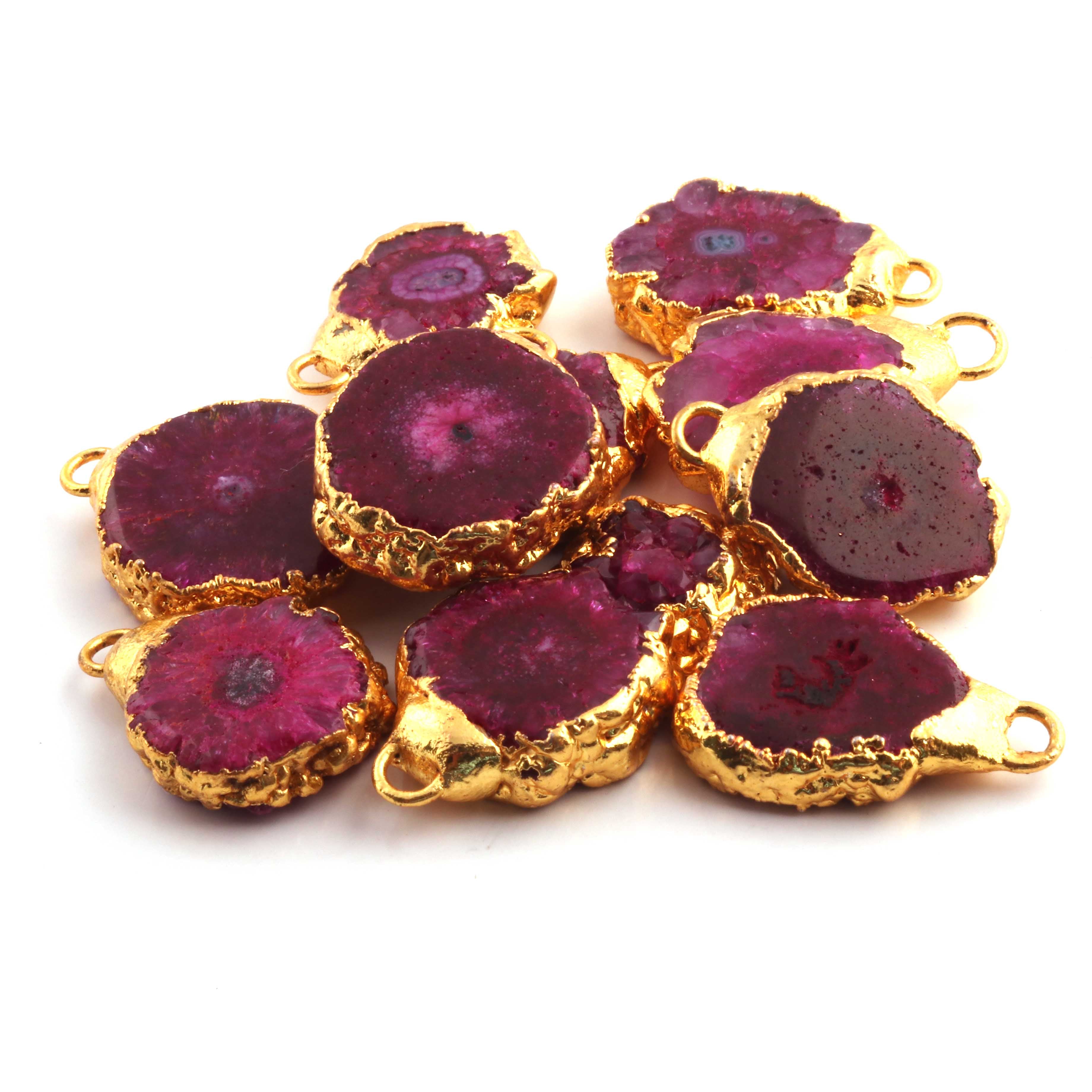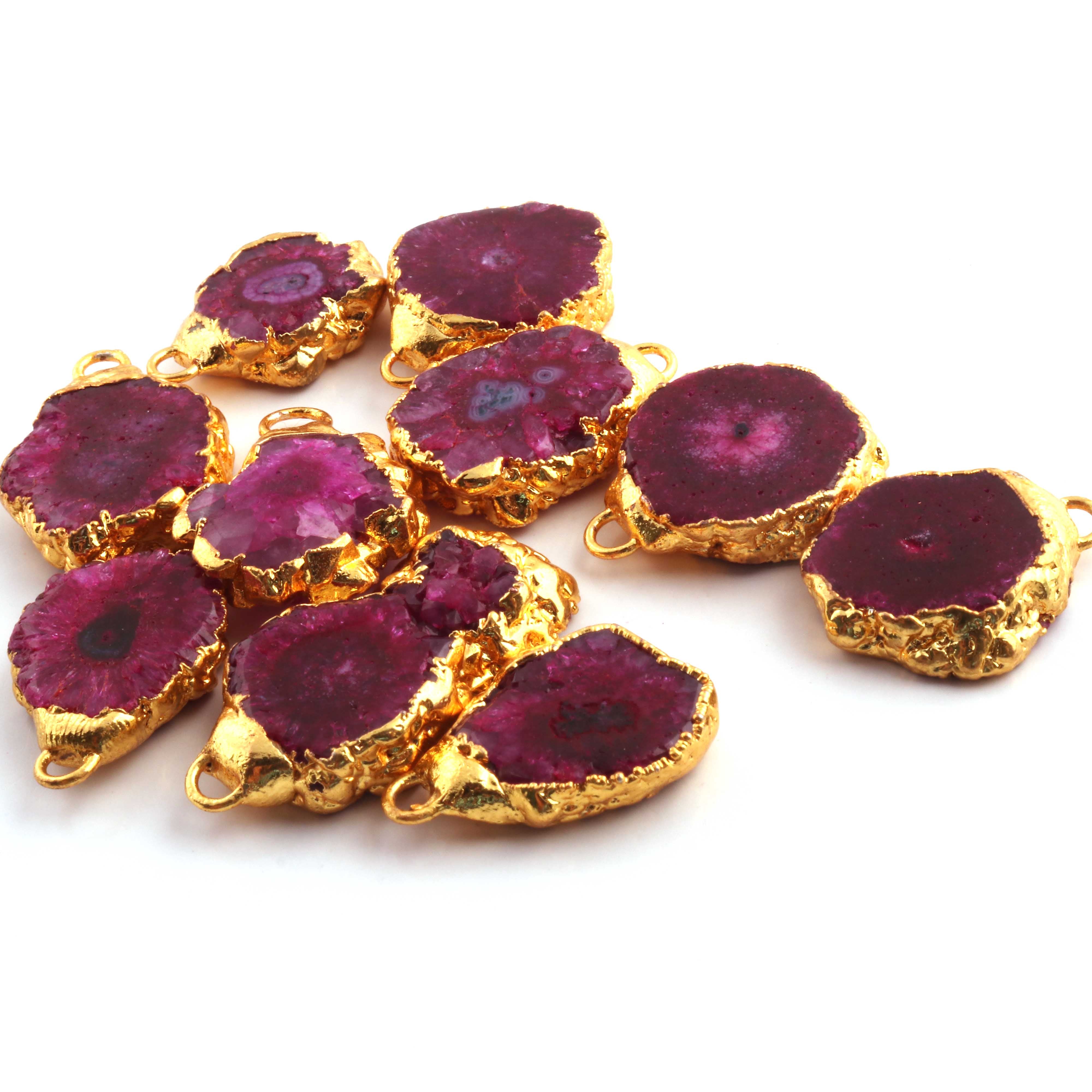 10 Pcs Purple Druzzy Geode Raw Drusy 24k Gold Plated Pendant - Electroplated Gold Druzy Pendant 14mmx23mm-32mmx18mm DRZ093