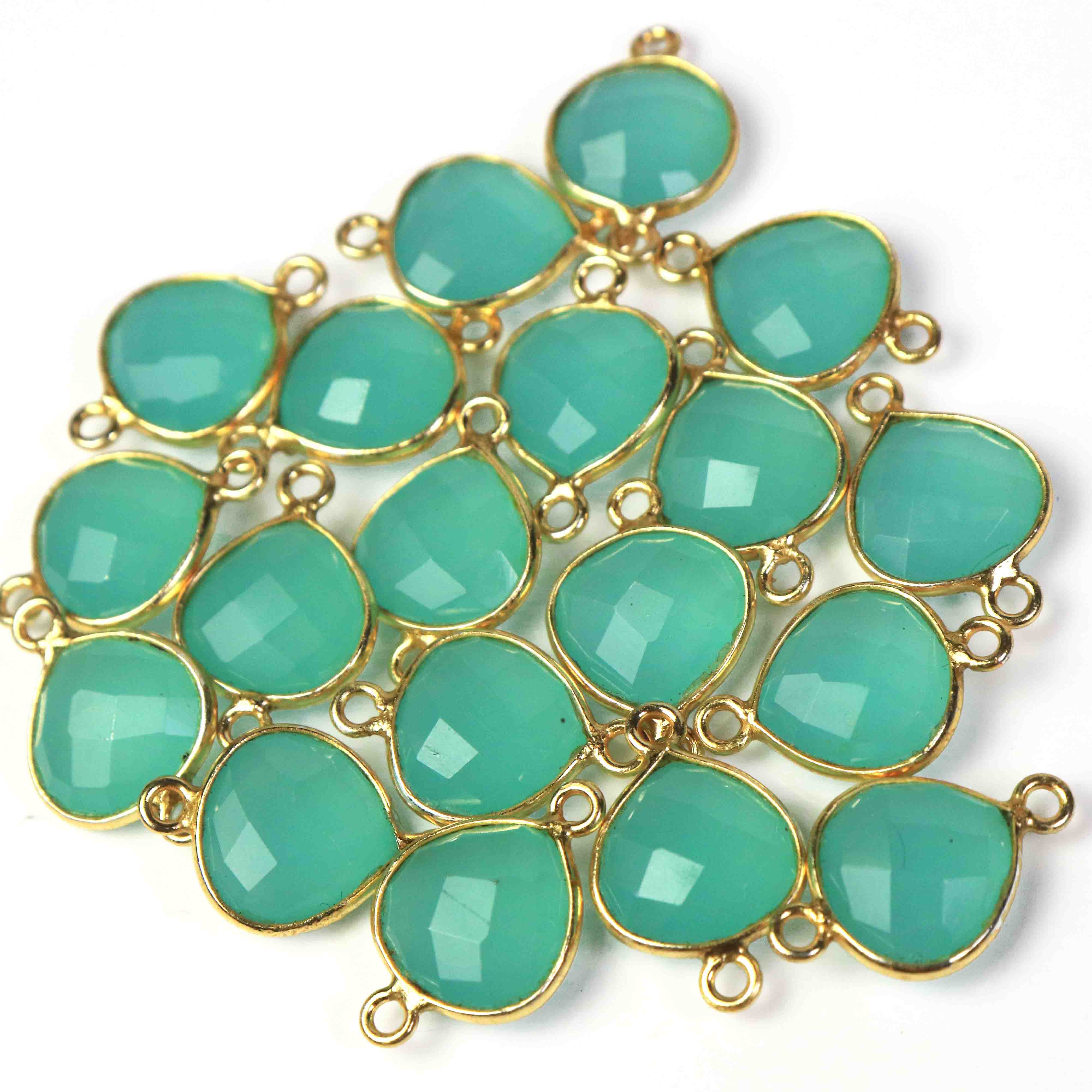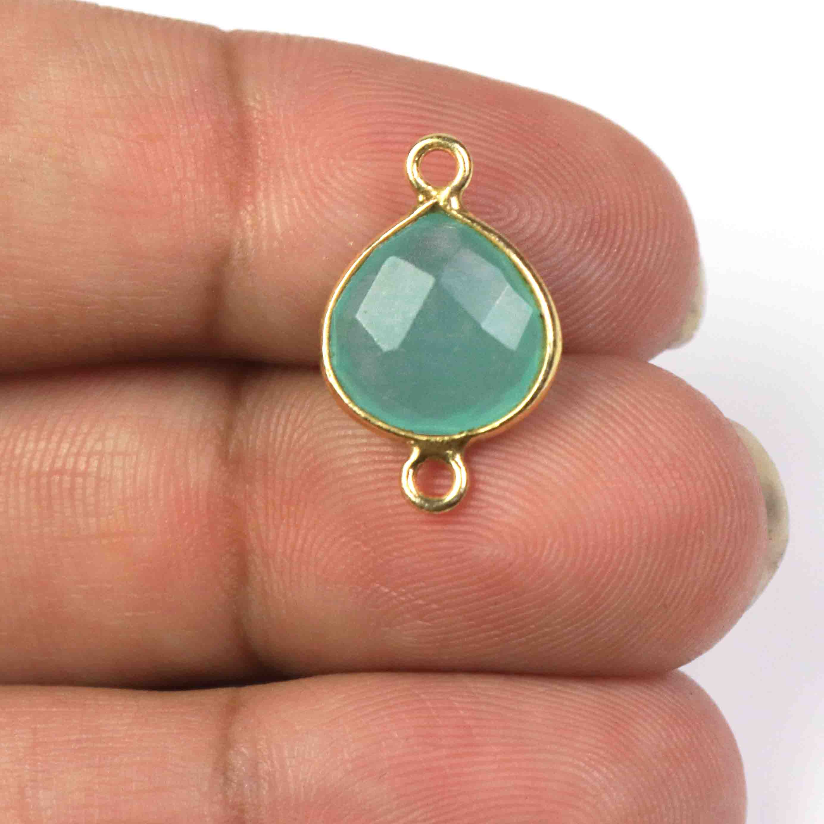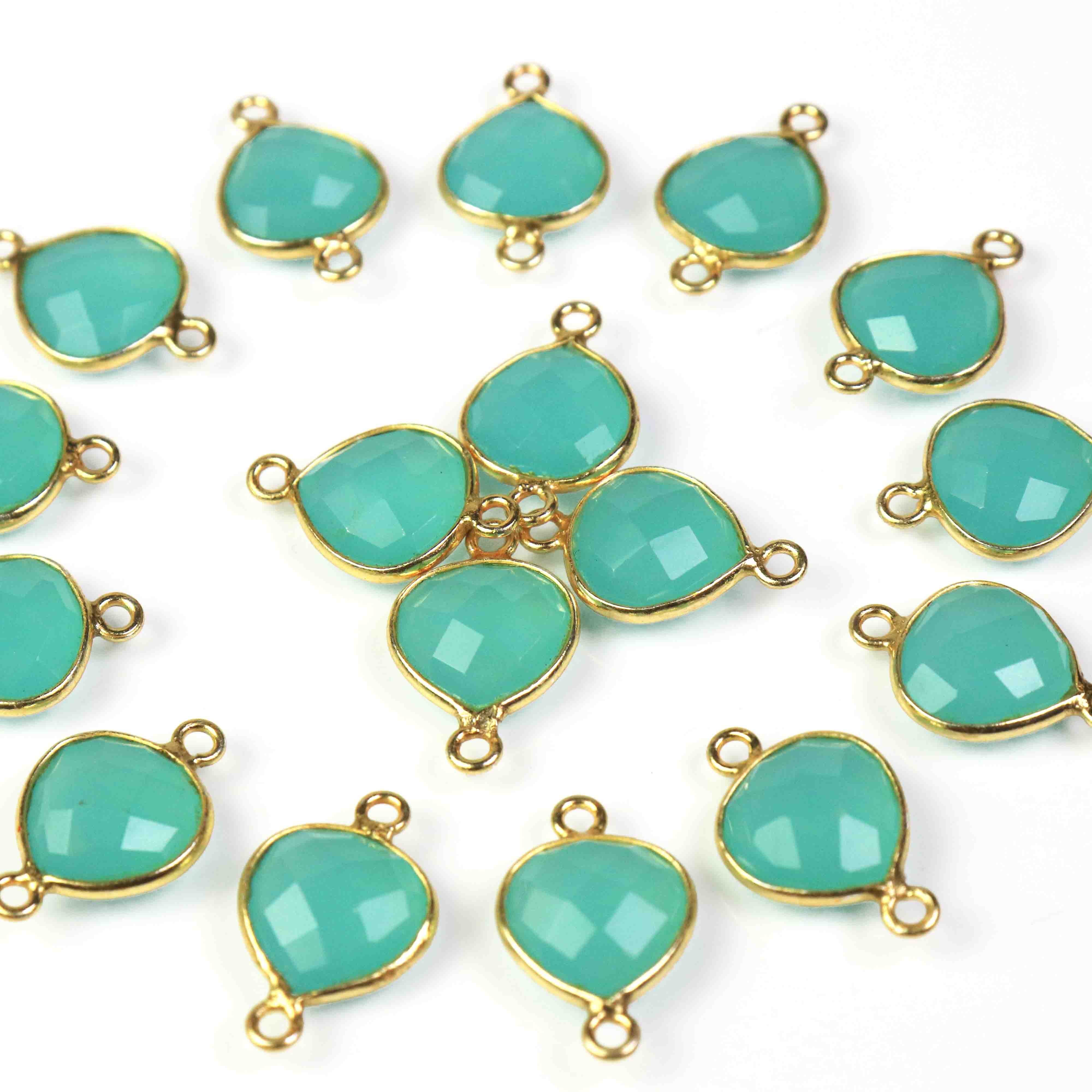 Listing is For -13 Pcs Beautiful Blue Aqua Chalcedony 925 Sterling Vermeil Gemstone Faceted Heart Shape Double Bail Connector -