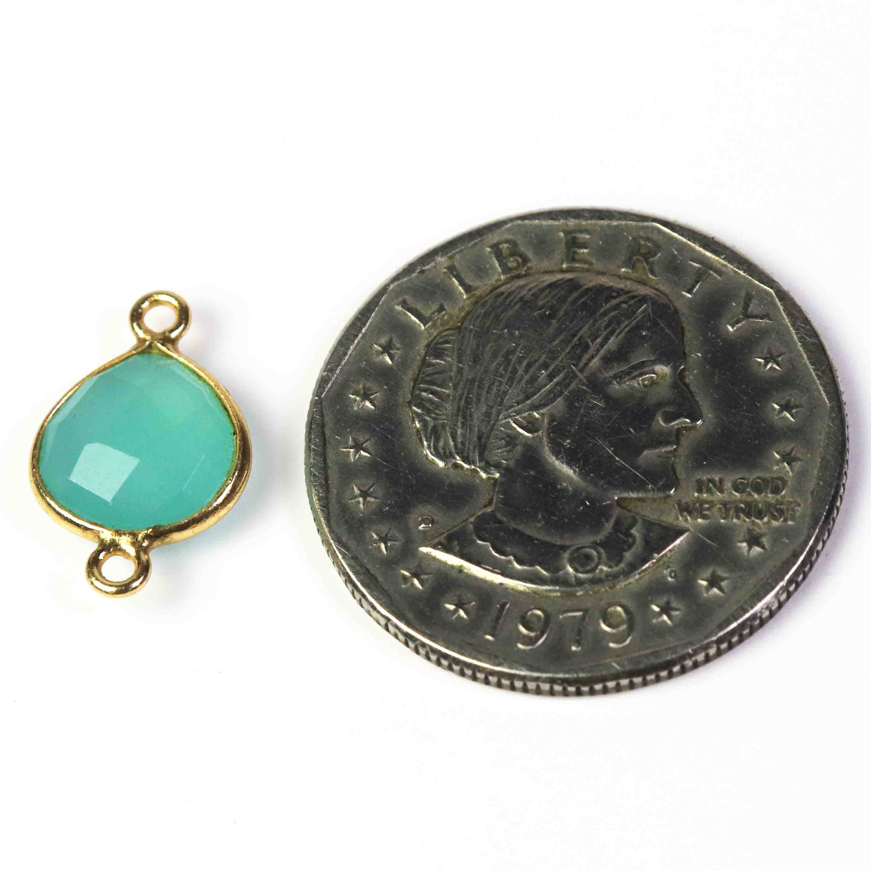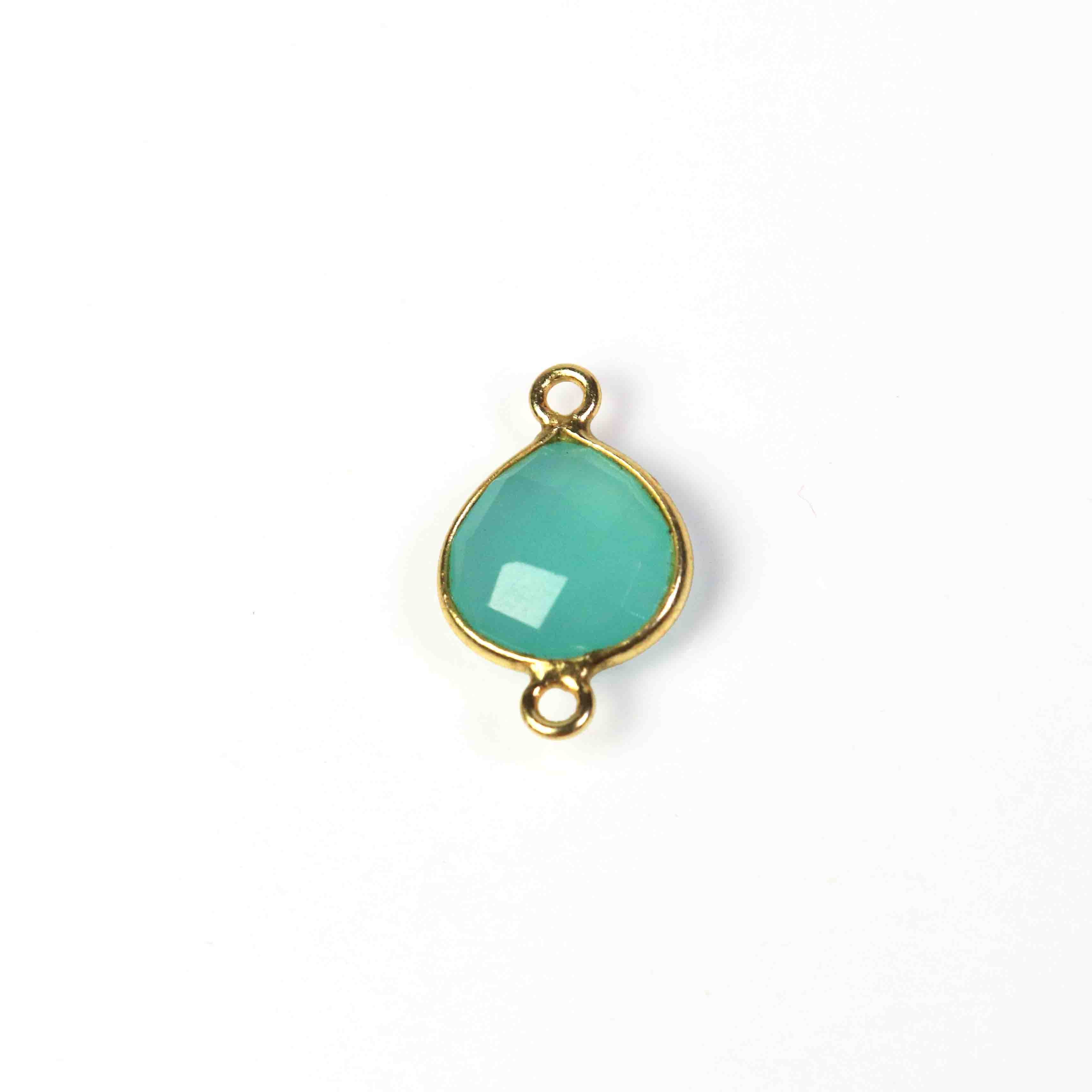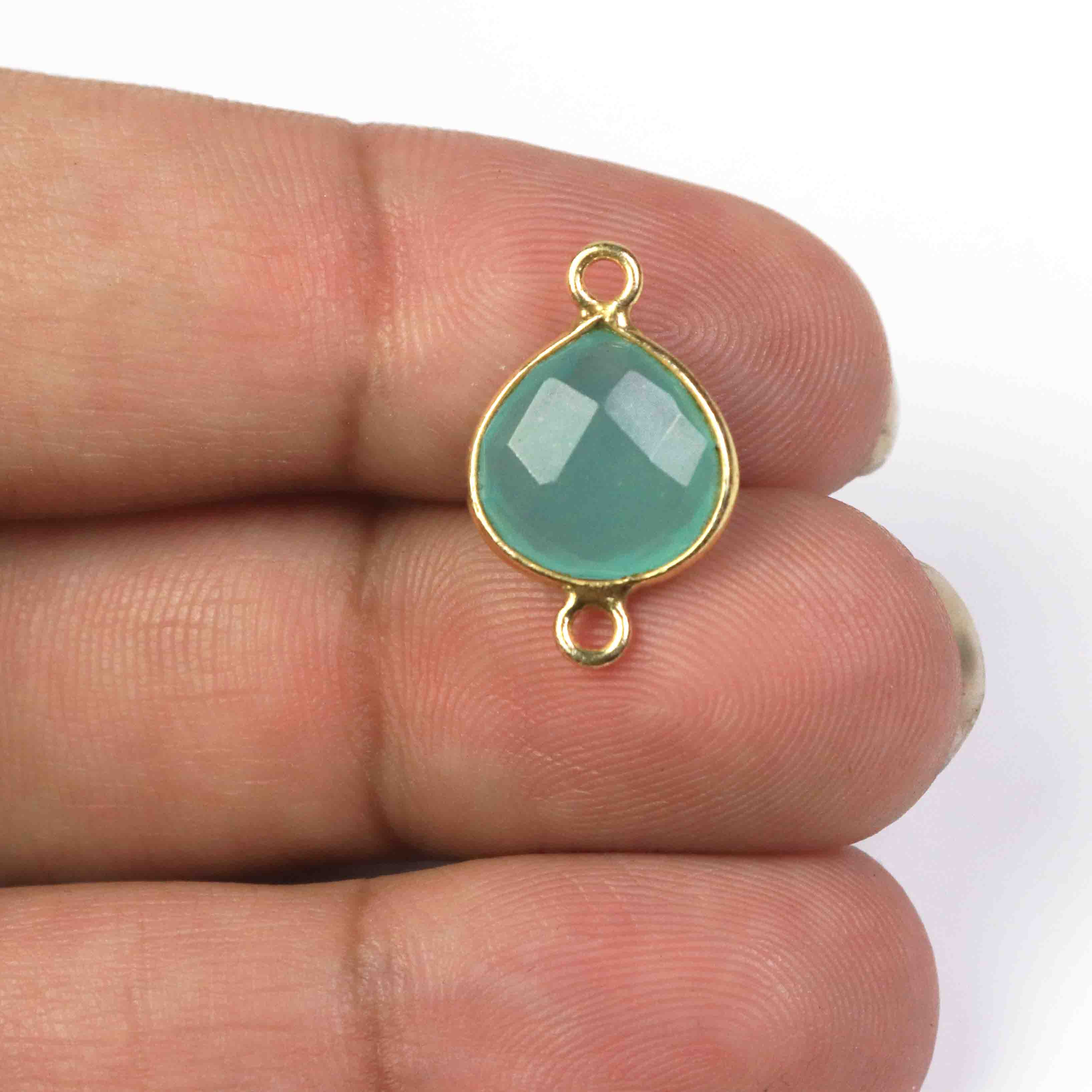 Listing is For -13 Pcs Beautiful Blue Aqua Chalcedony 925 Sterling Vermeil Gemstone Faceted Heart Shape Double Bail Connector -