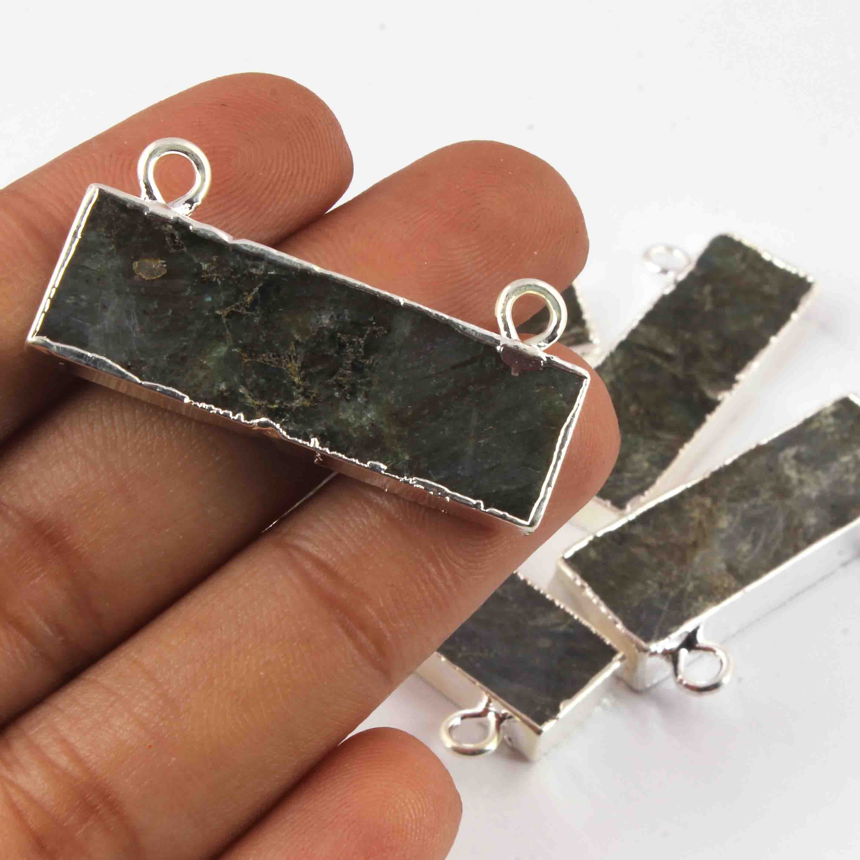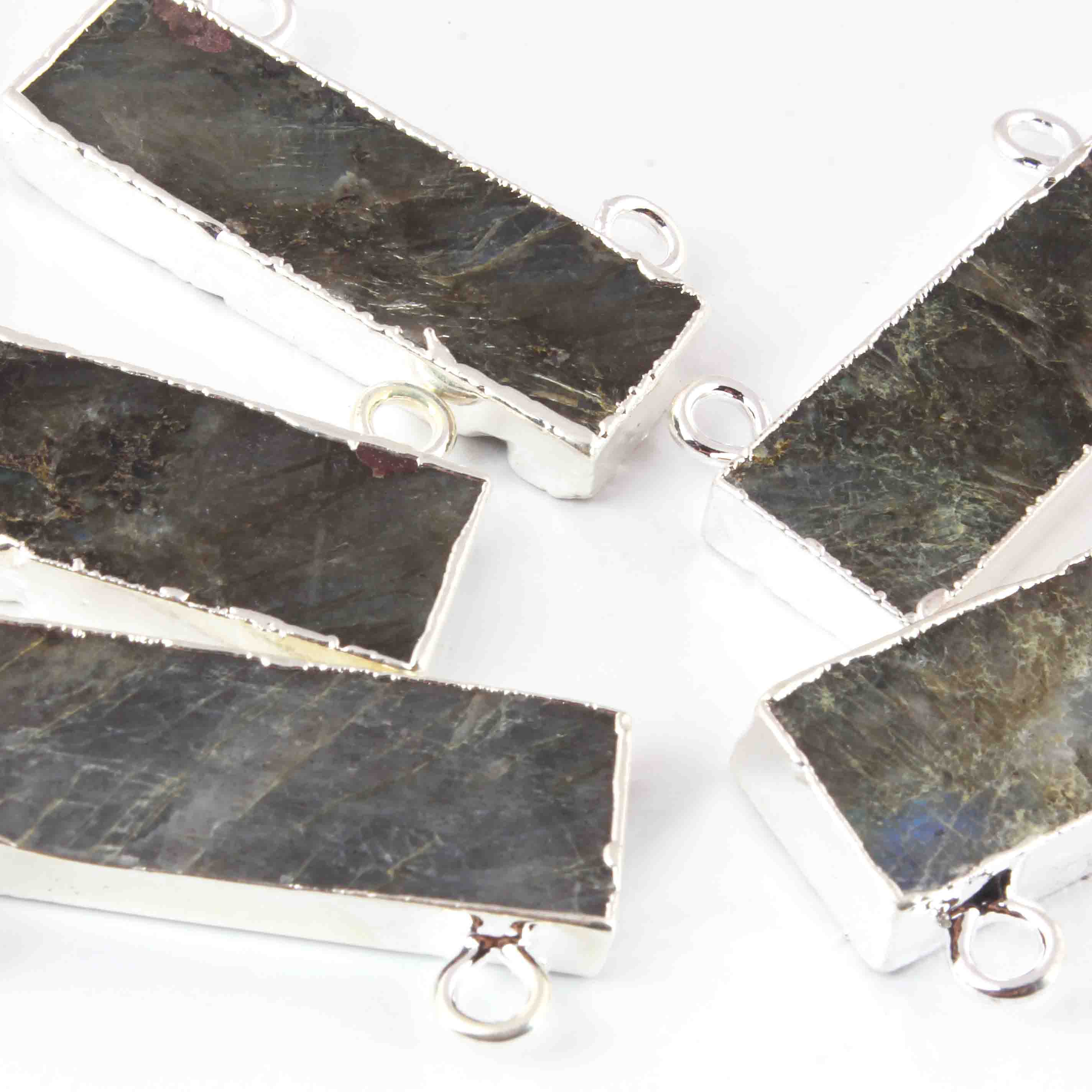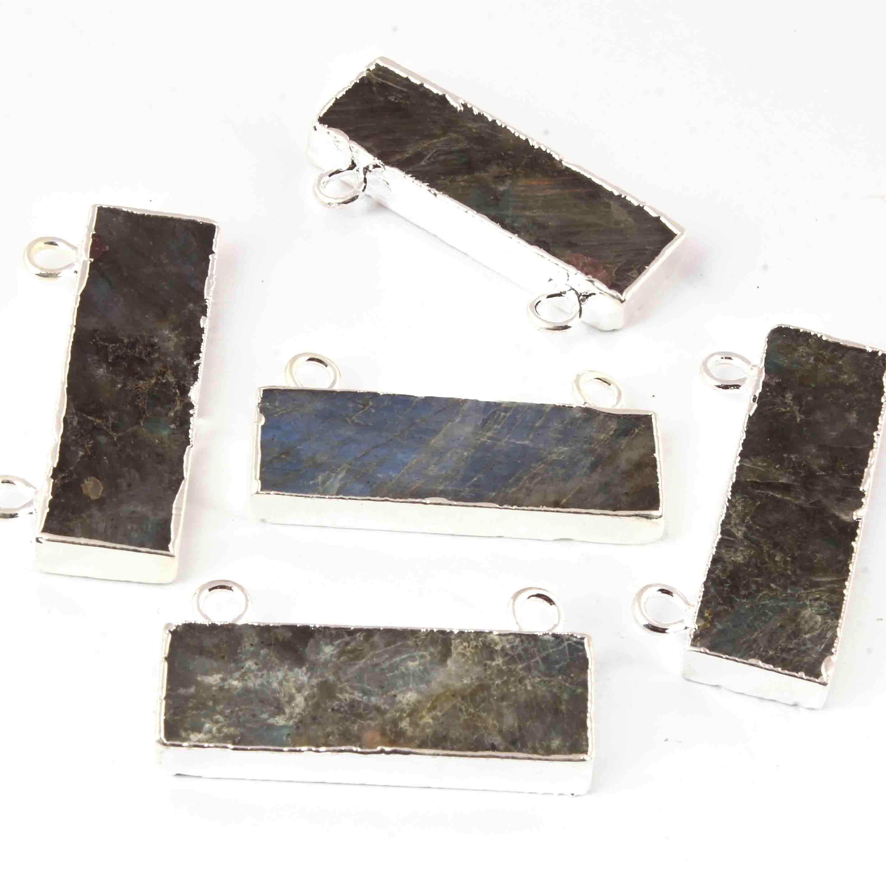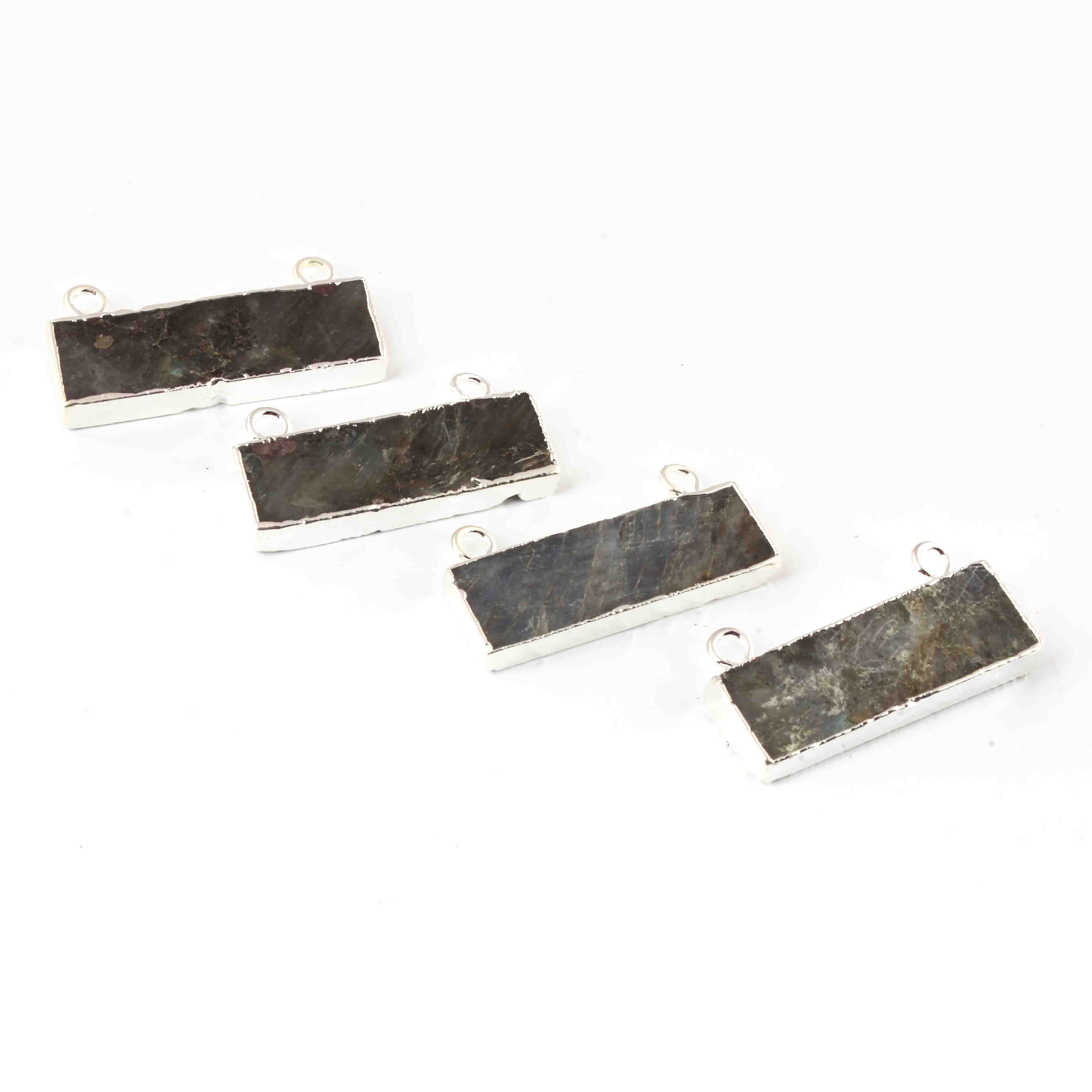 15 Pcs Labradorite Druzzy Rectangle Shape Drusy Silver Plated Double Bail Pendant - Electroplated Silver Druzy Pendant -36mmx17mm DRZ314