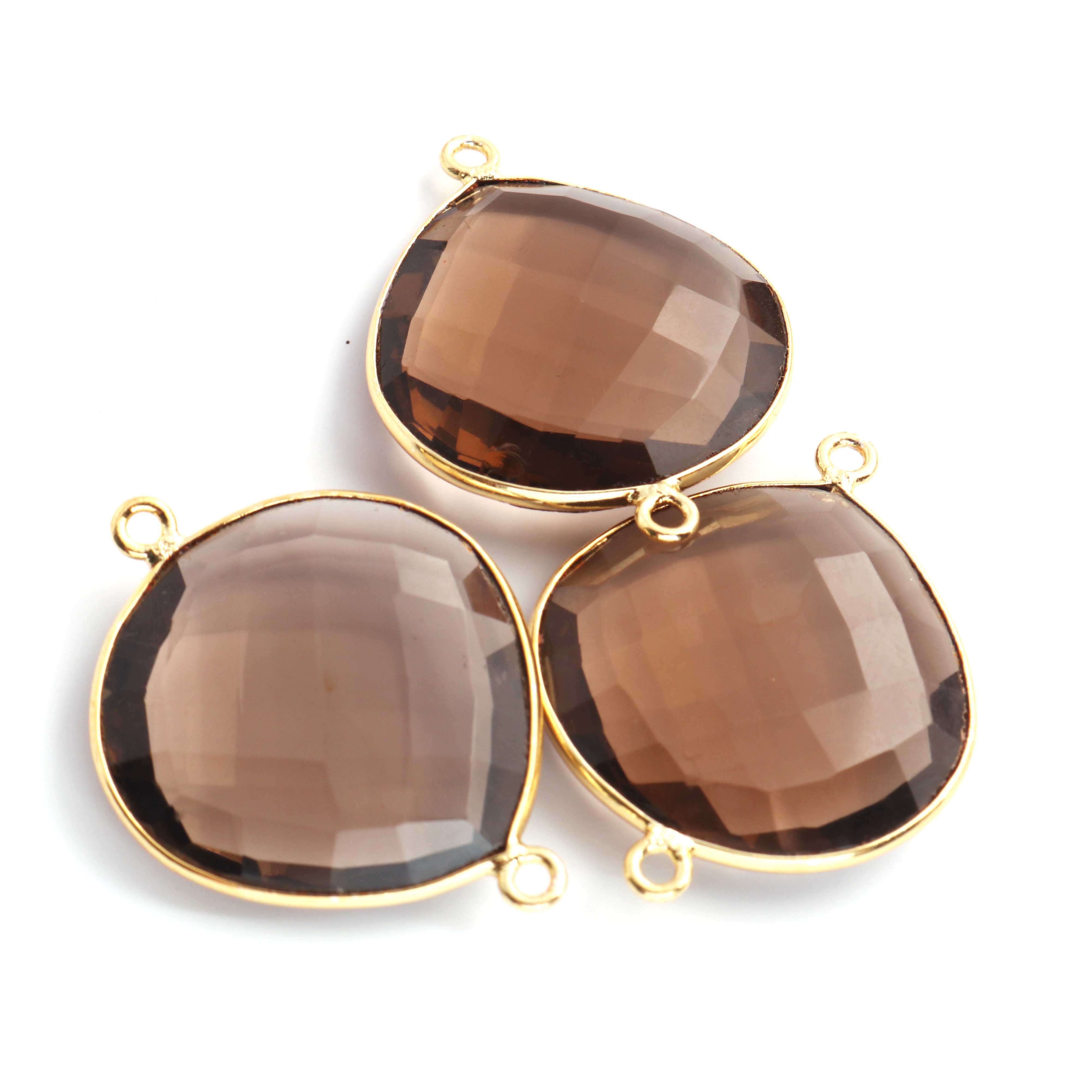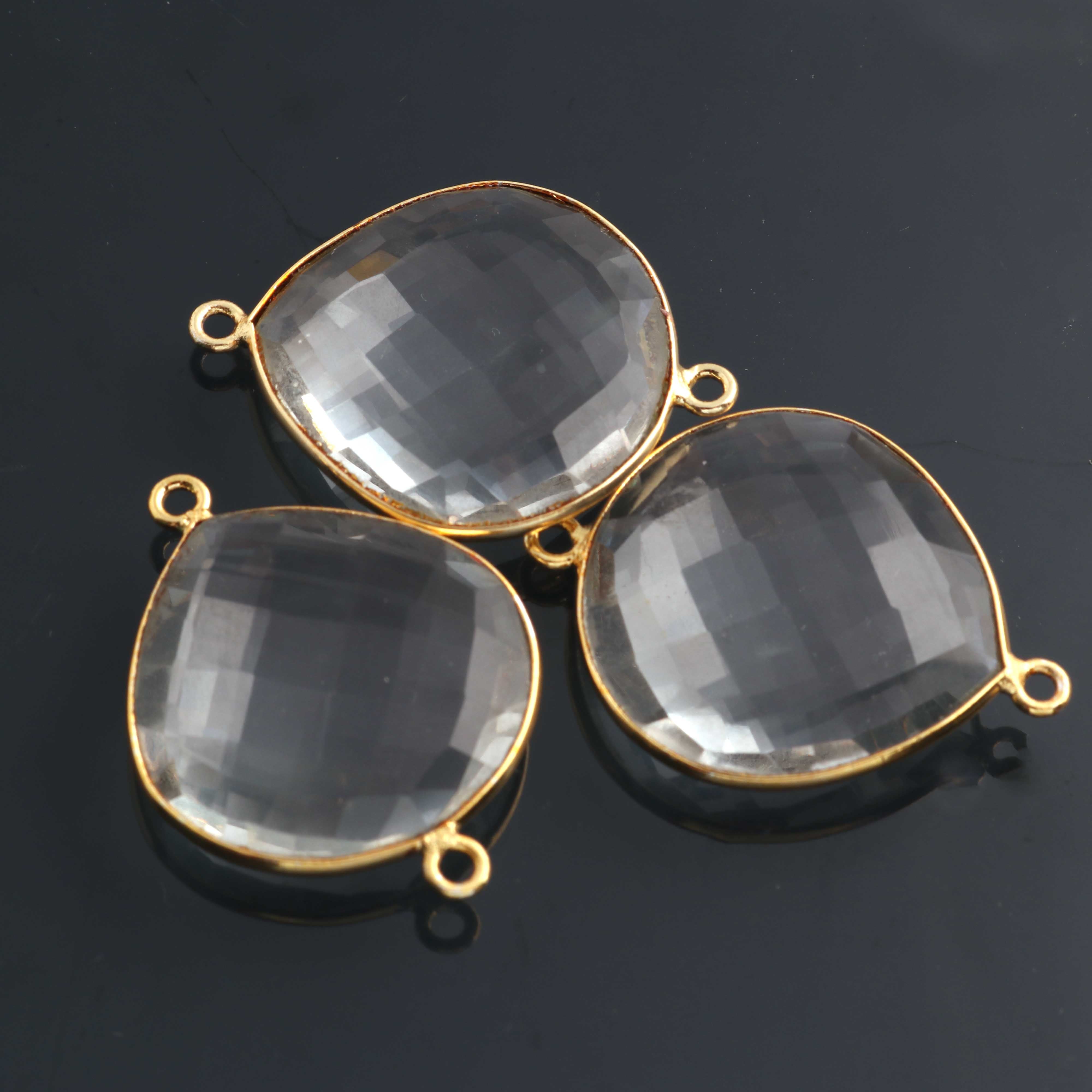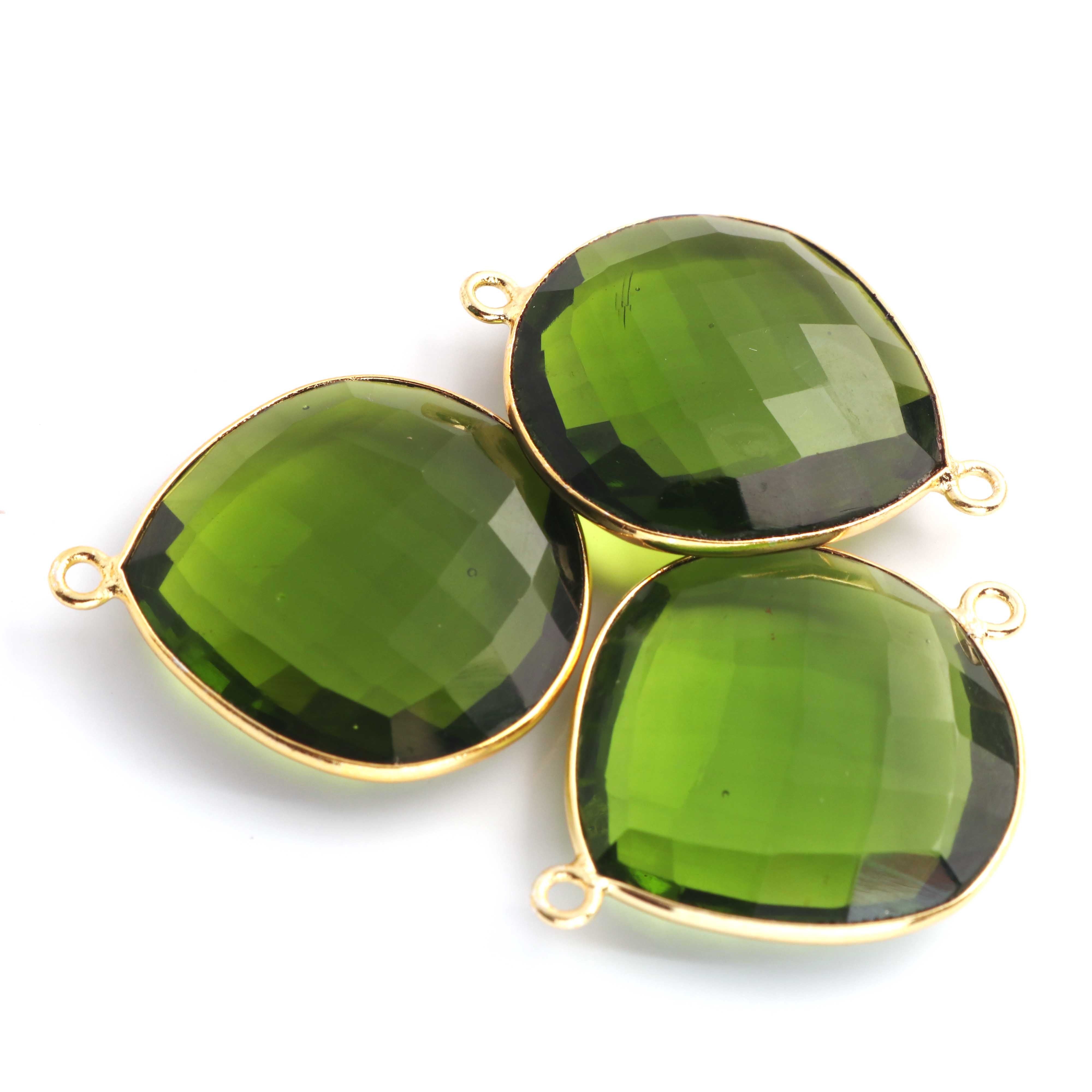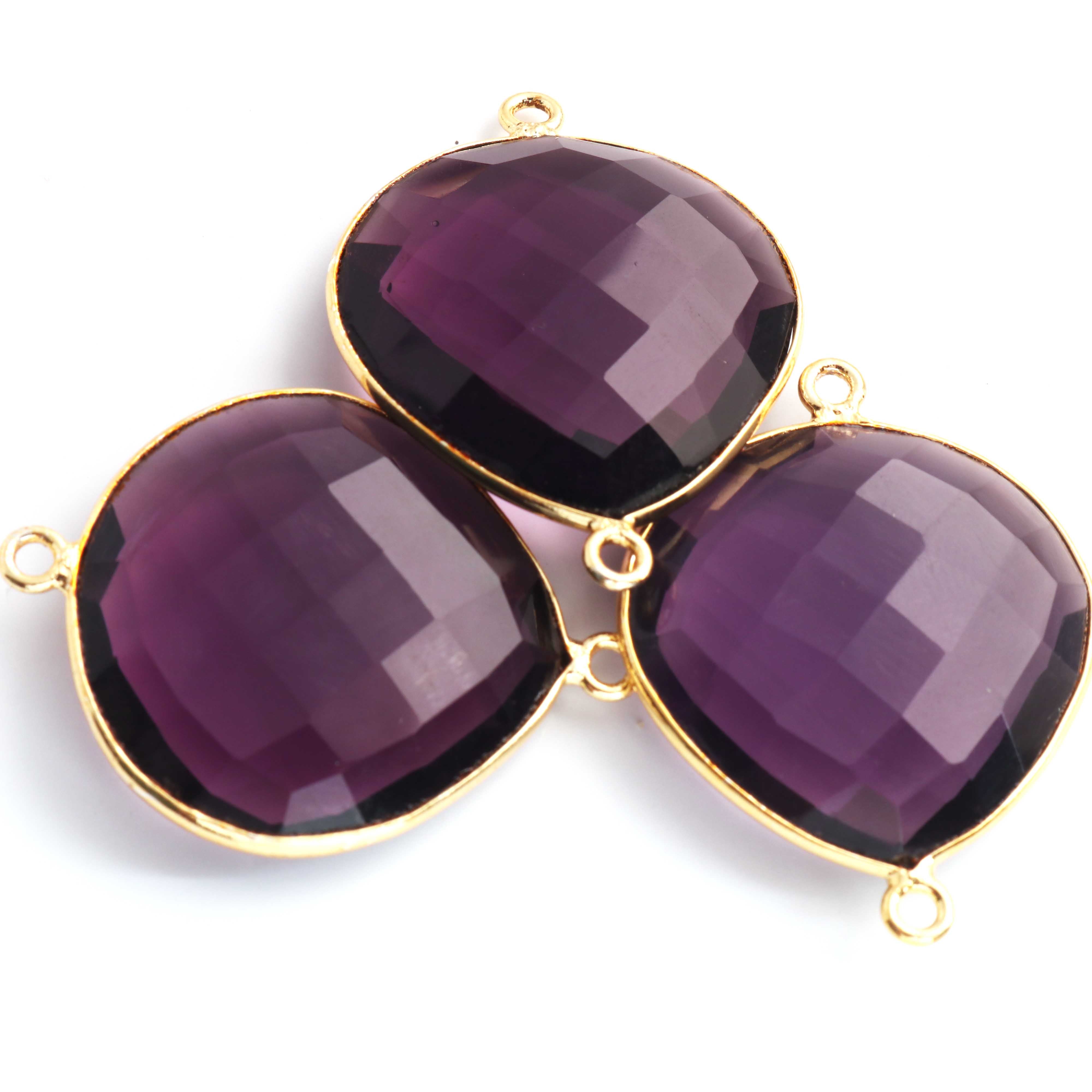 5 Pcs Birth Stone Heart Shape 24k Gold Plated Double Bail Connector- Multi Stone Faceted Connector 34mmx25mm PC0018(You Choose)