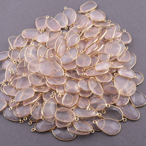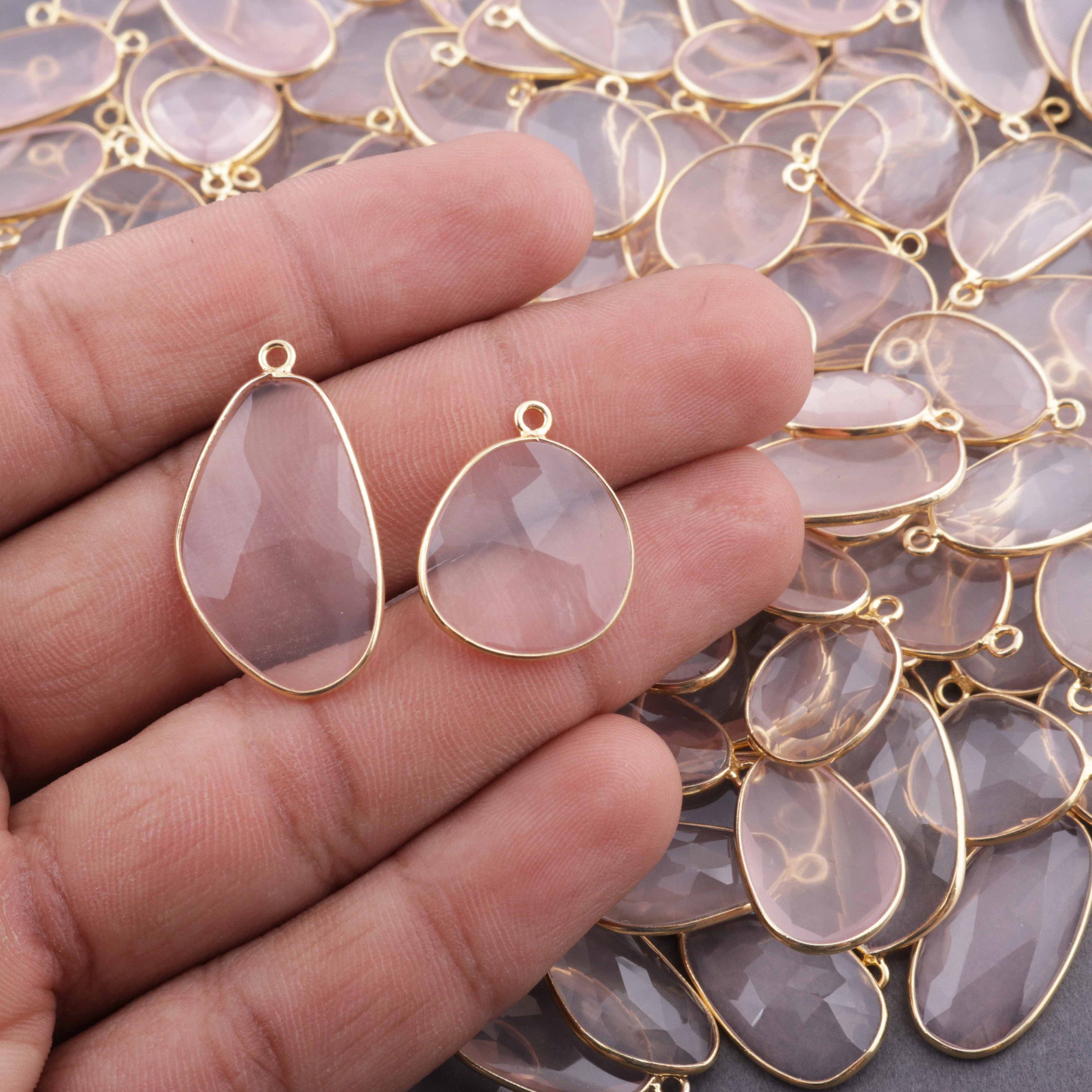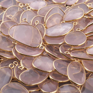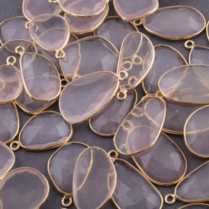 5 Pcs Rose Quartz Faceted Assorted Shape 925 Sterling Vermeil Pendant -18mmx12mm-25mmx19mm SS649