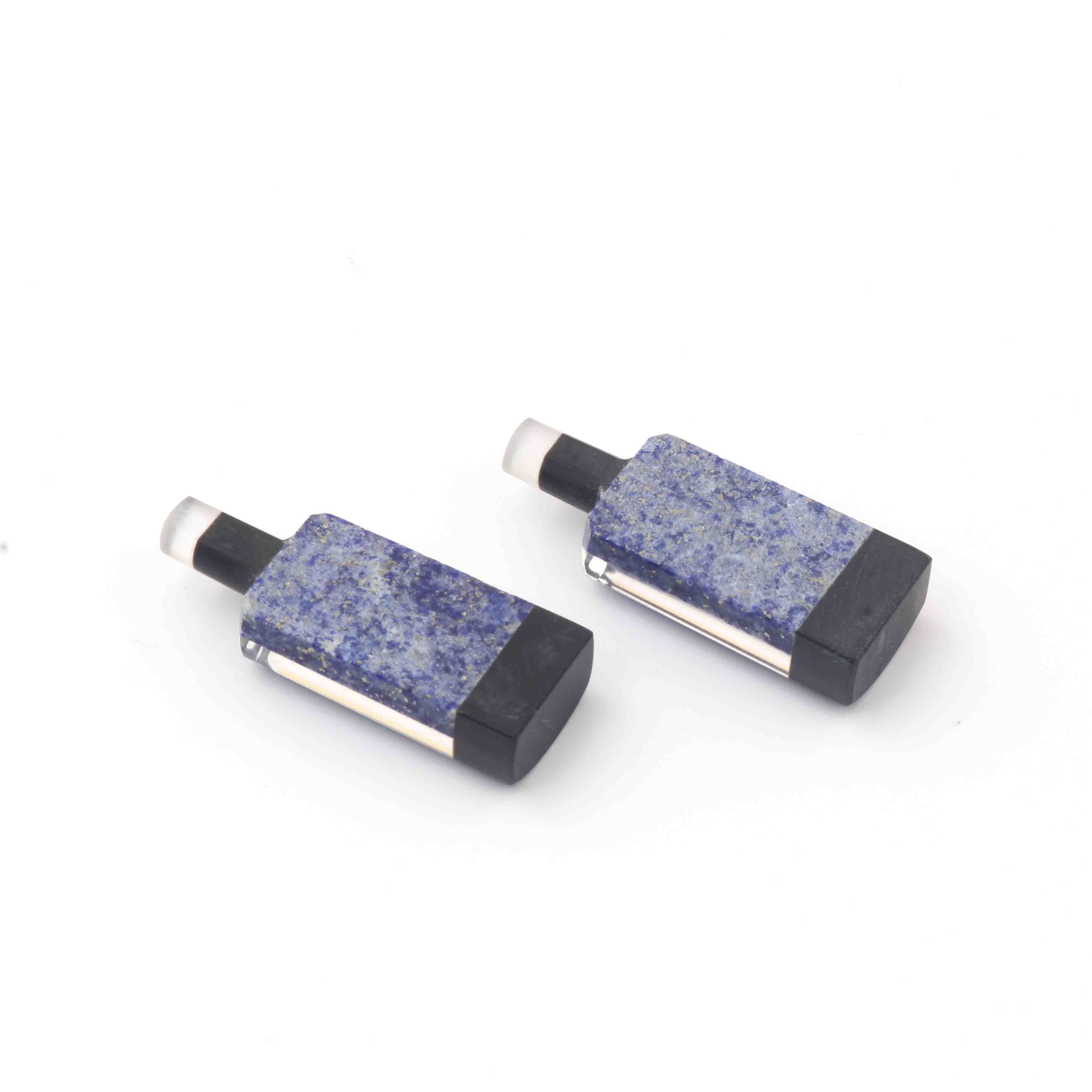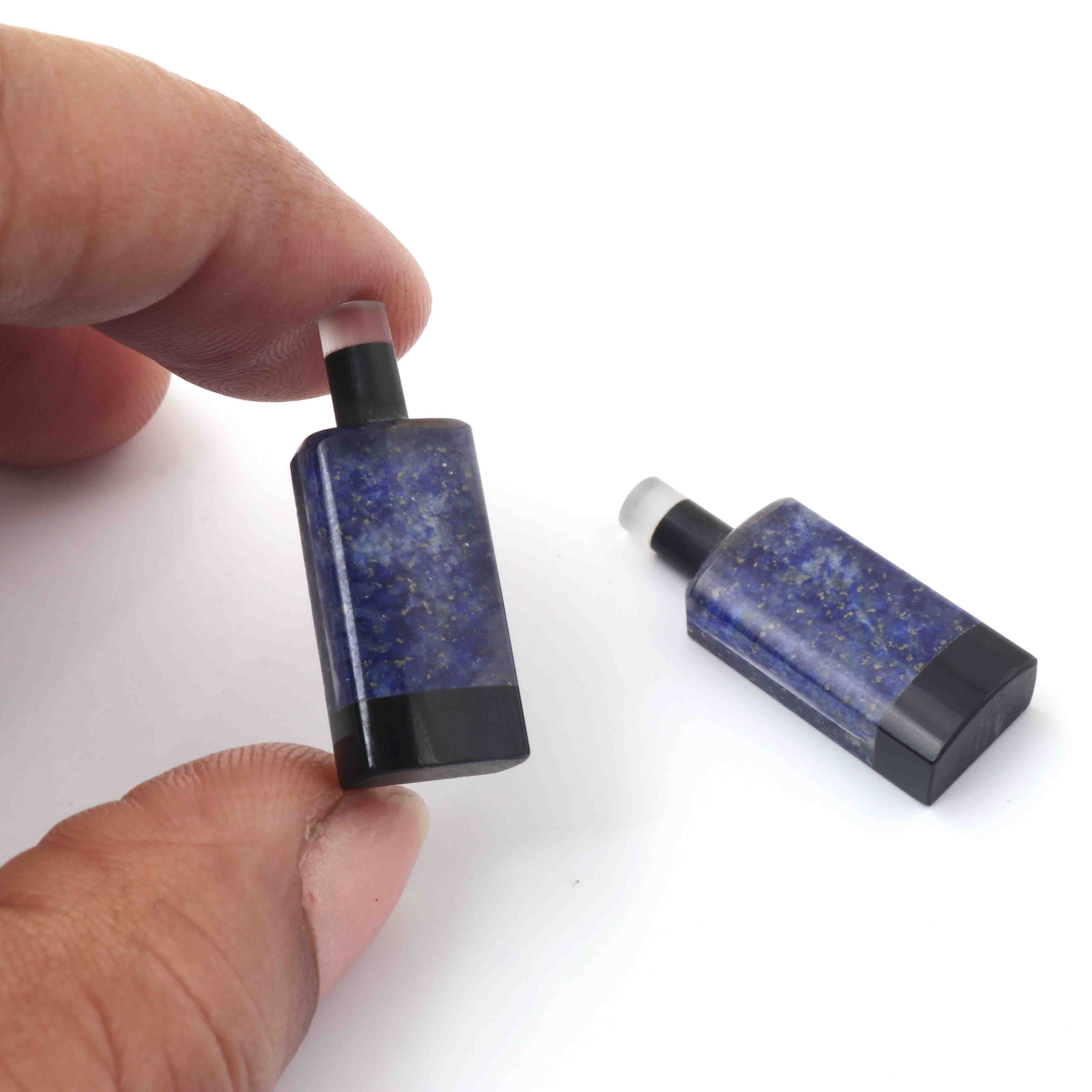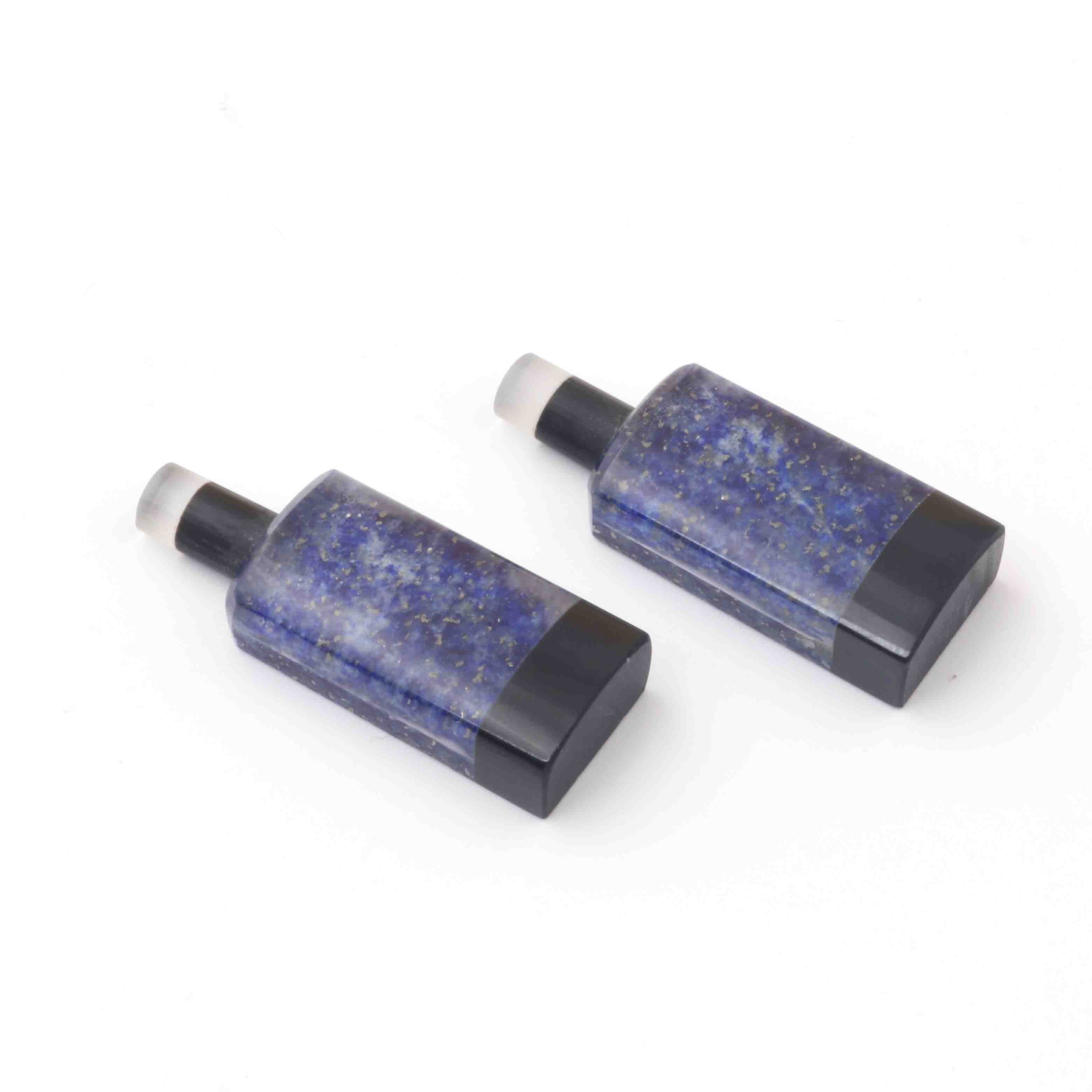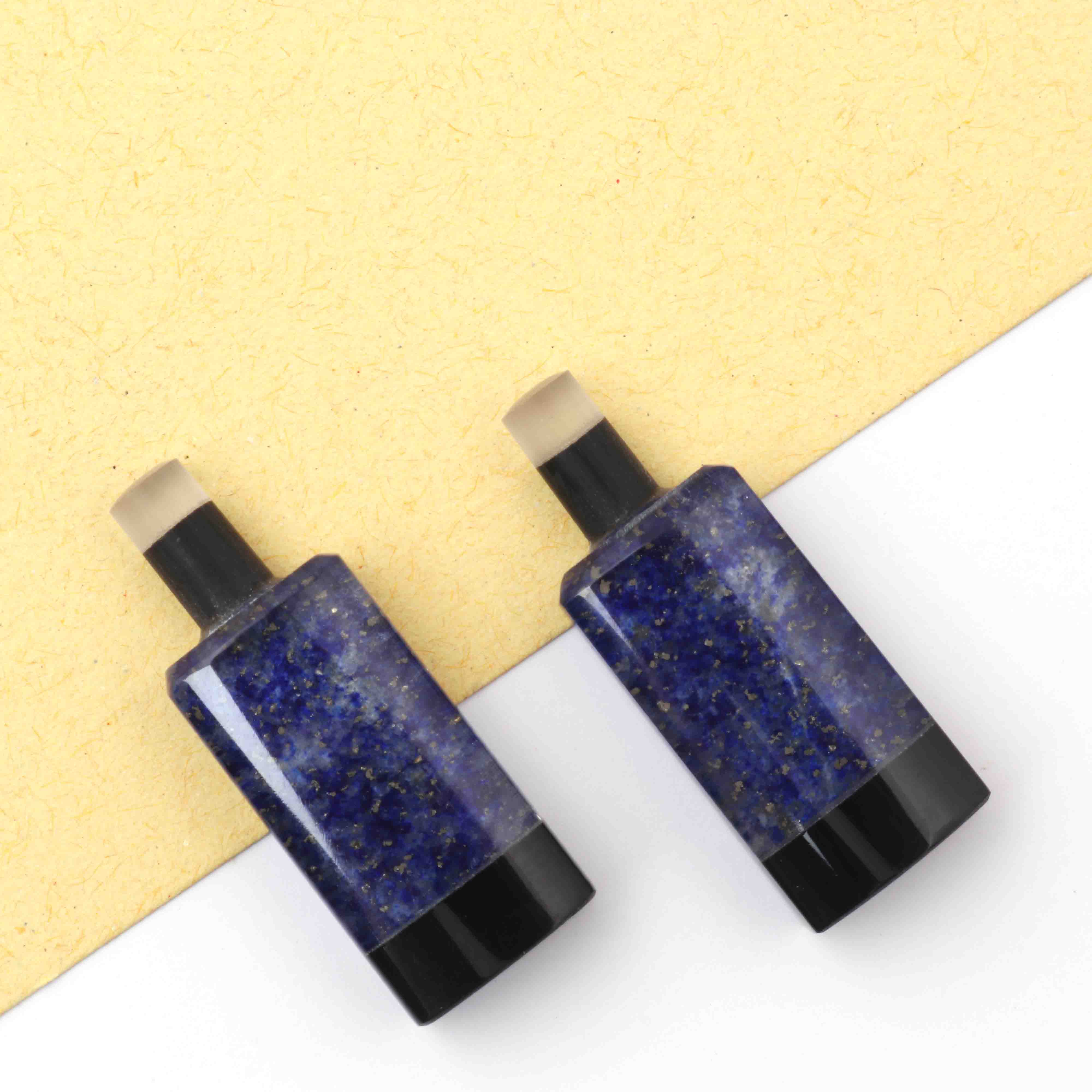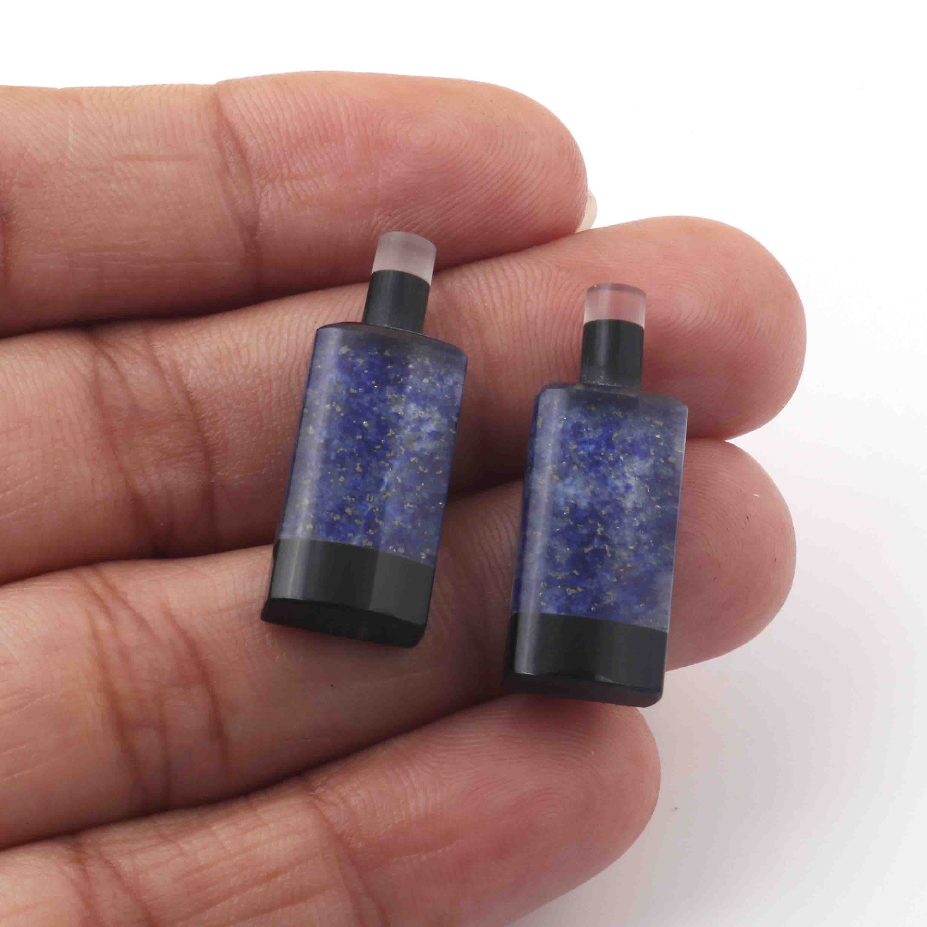 Matched Pairs Natural Lapis ,Black Onyx Joined Smooth Bottle Shape Loose Gemstone 26mmx10mm BG037