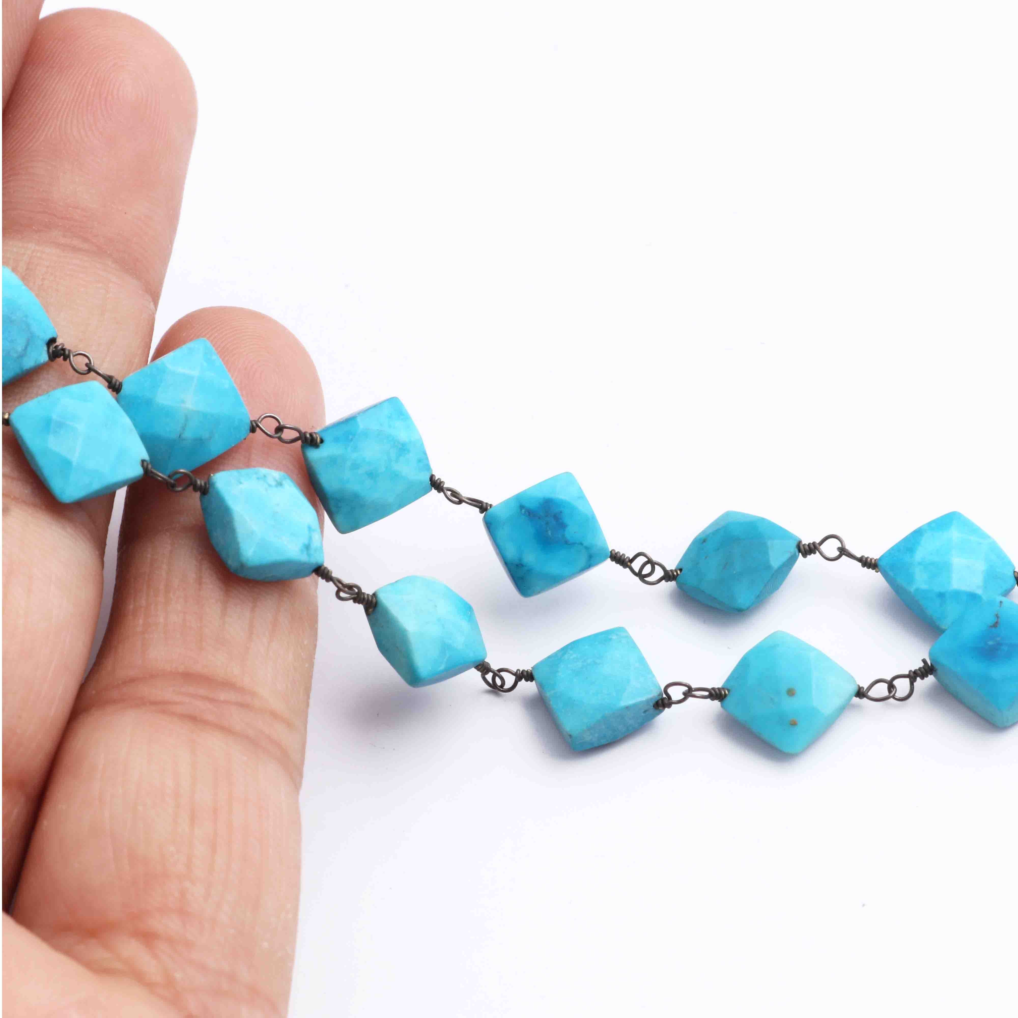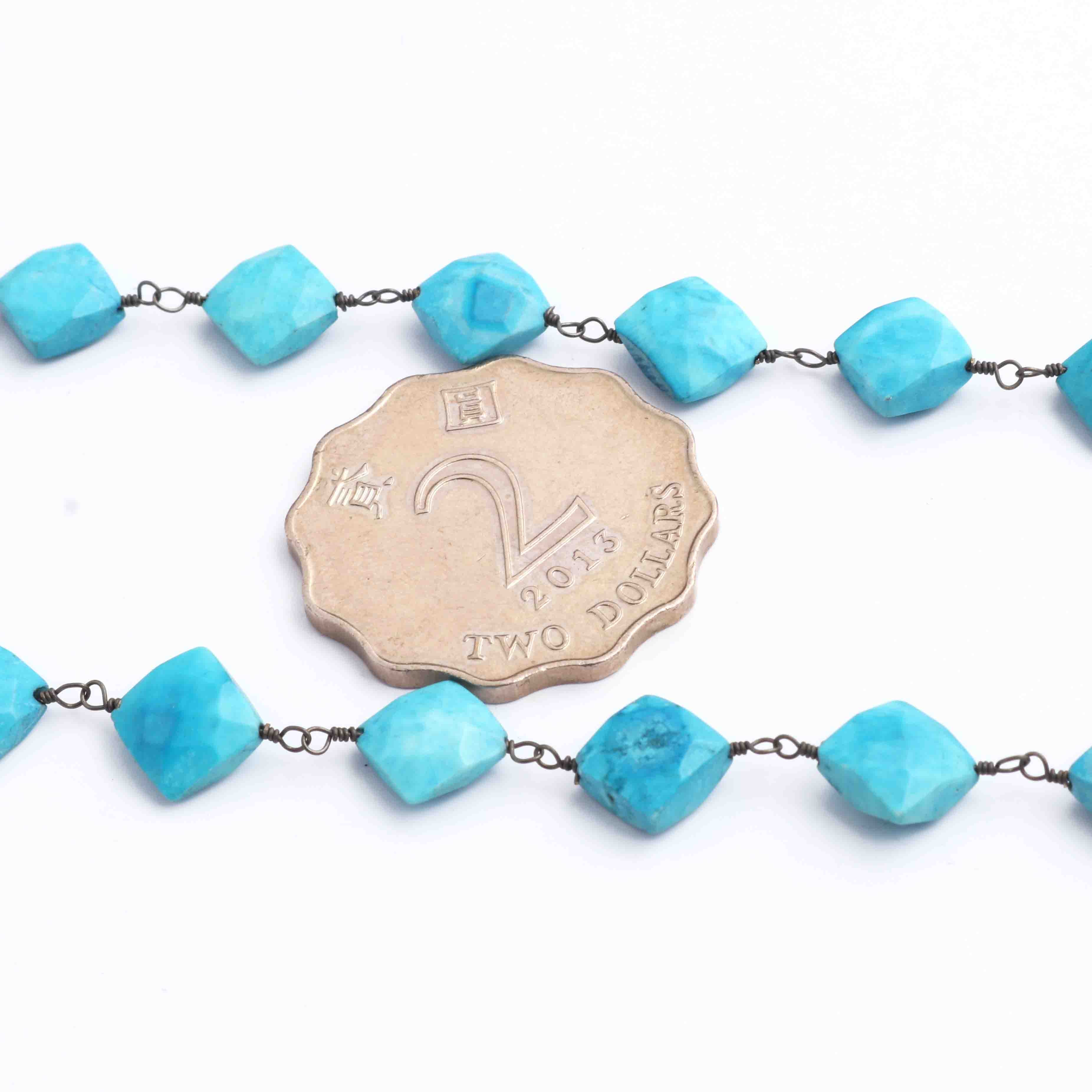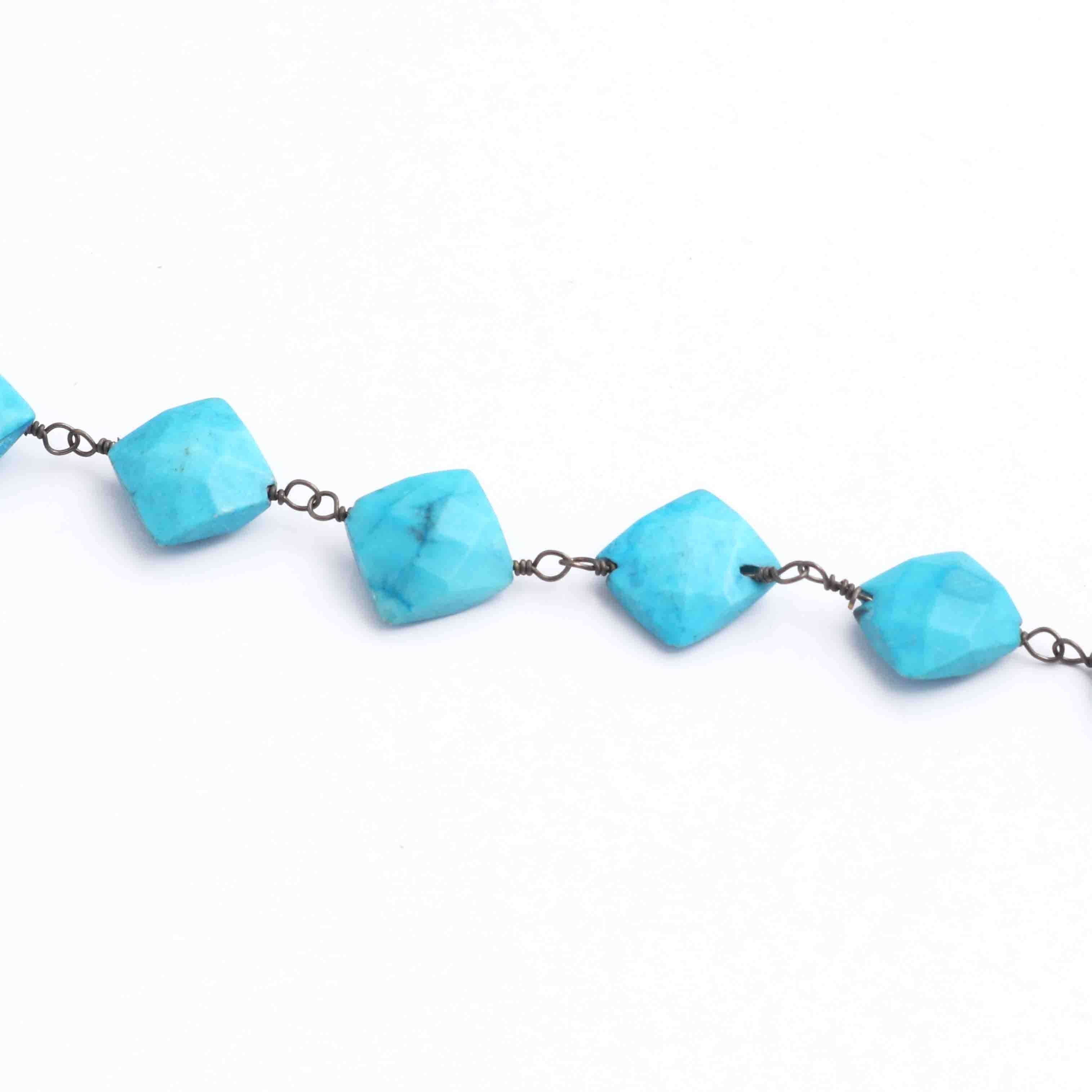 1 Feet Turquoise Kite Shape Rosary Style Oxidized Silver plated Beaded Chain- 12mmx10mm-15mmx10mm SC306