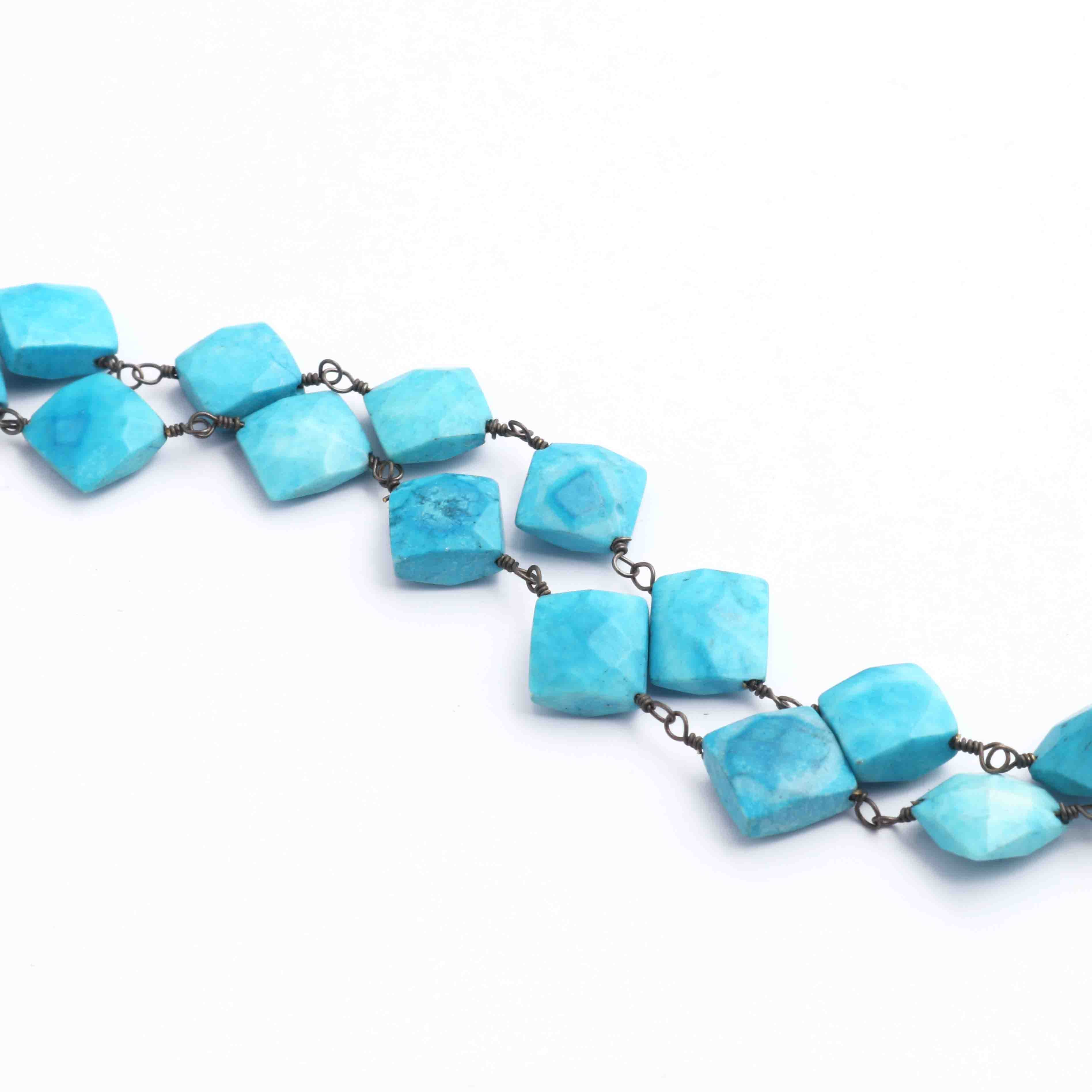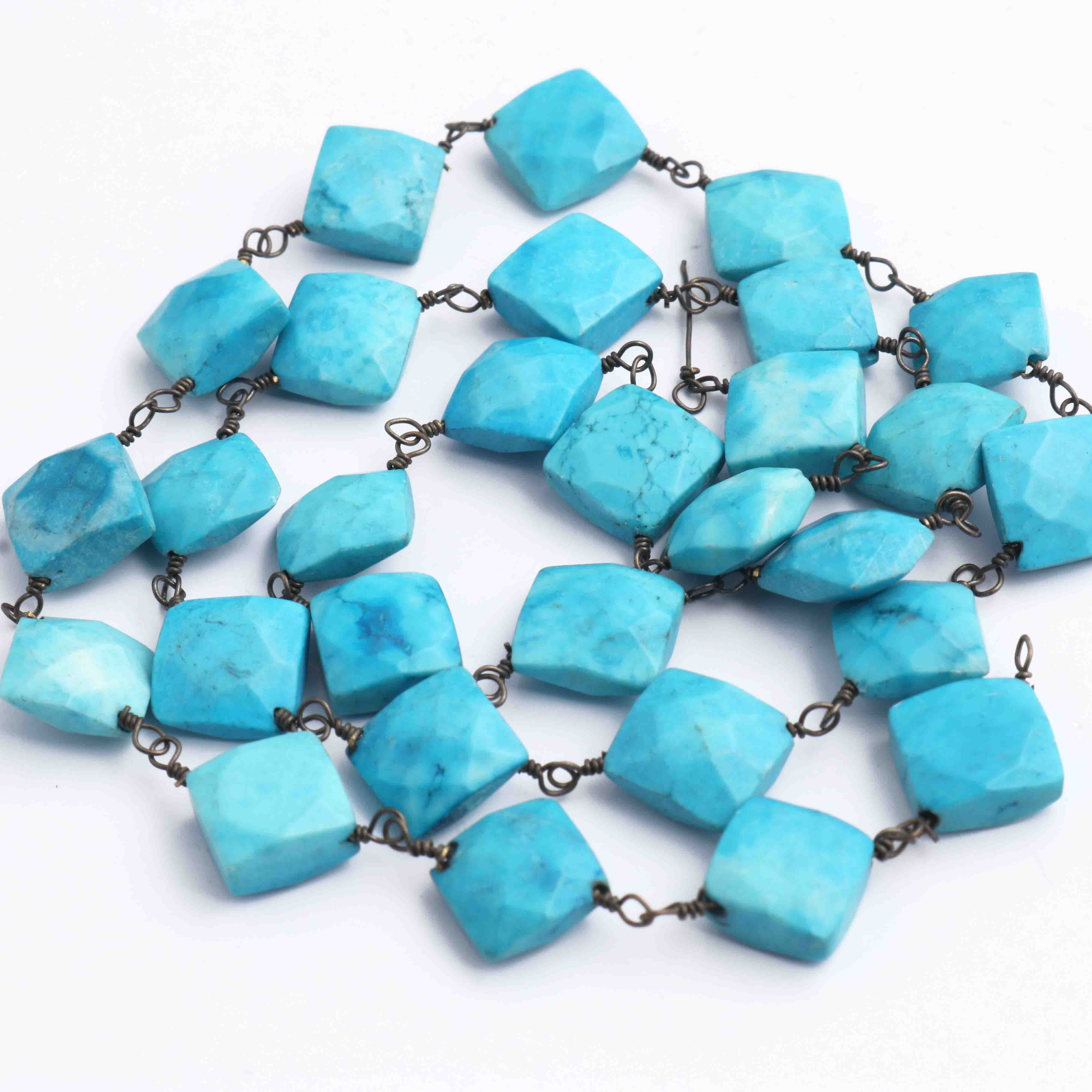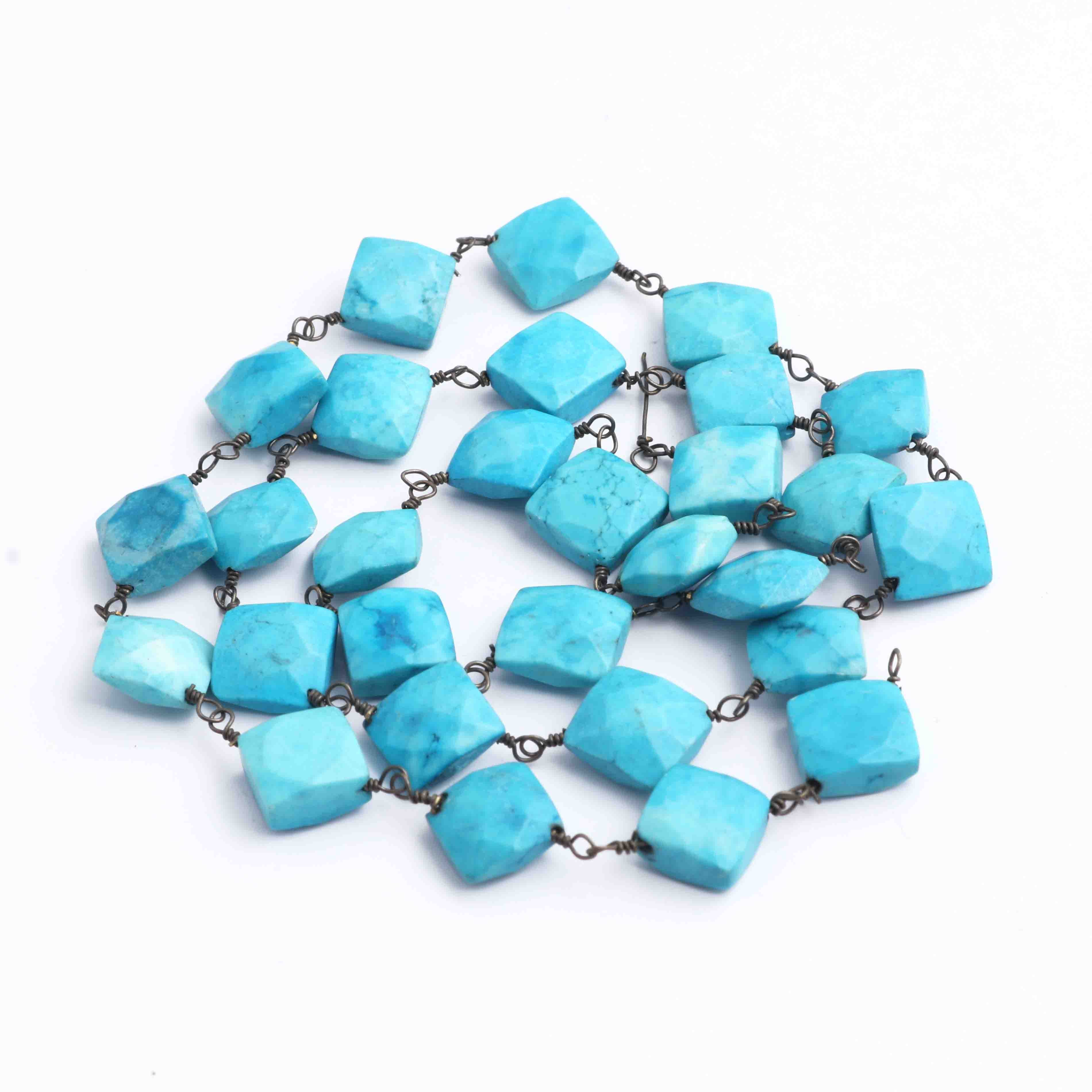1 Feet Turquoise Kite Shape Rosary Style Oxidized Silver plated Beaded Chain- 12mmx10mm-15mmx10mm SC306