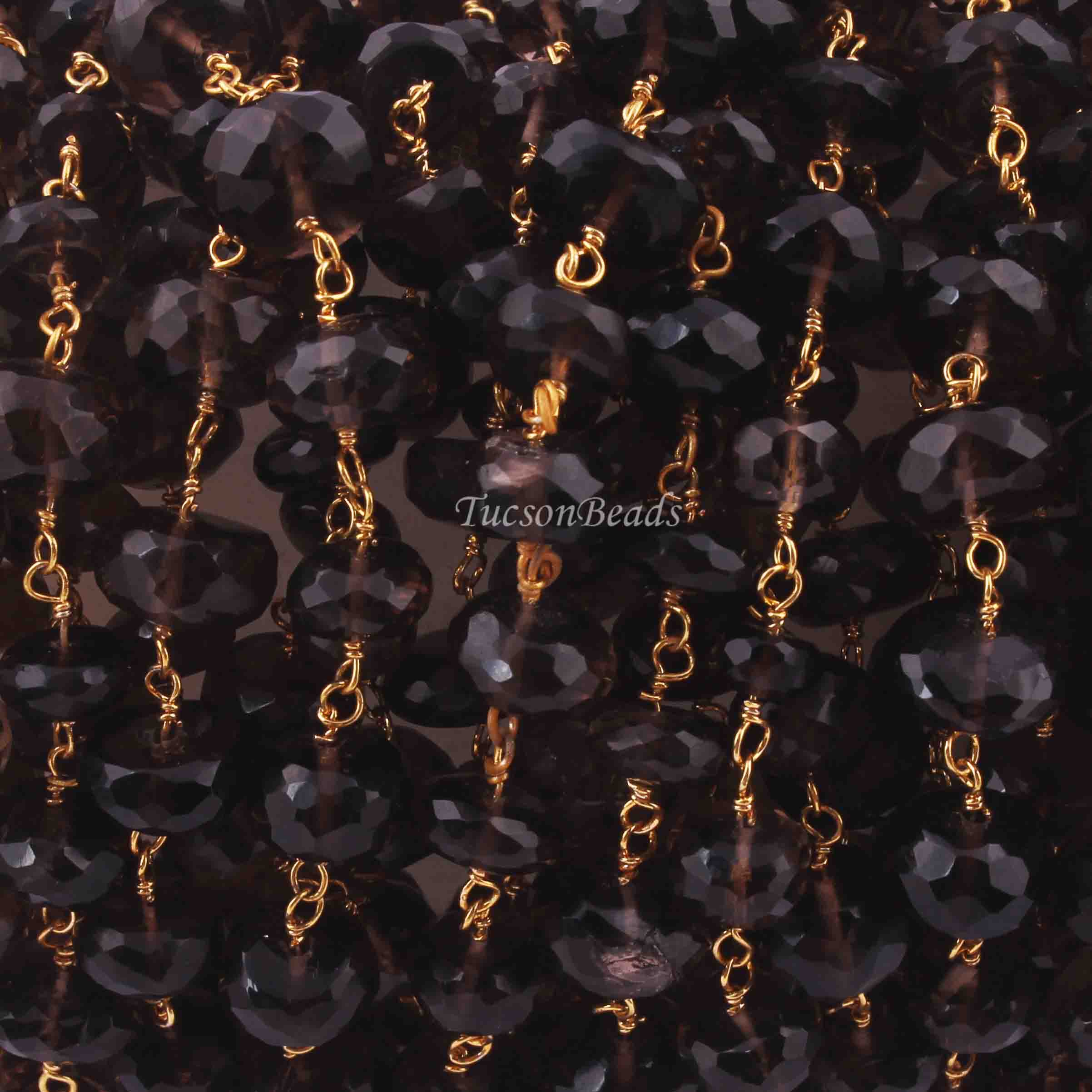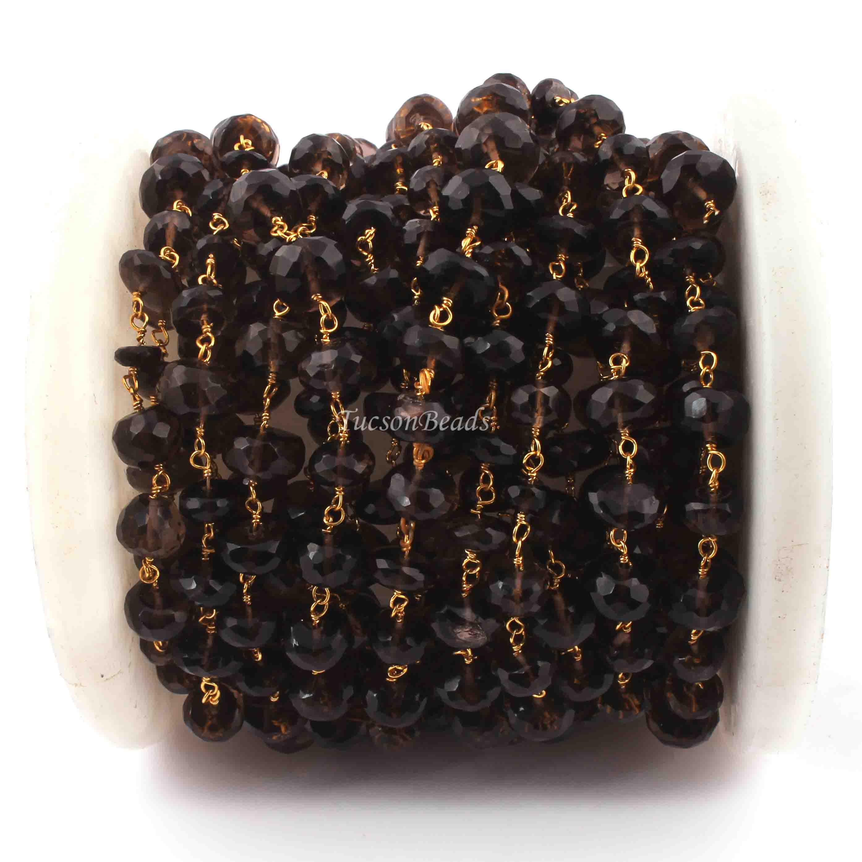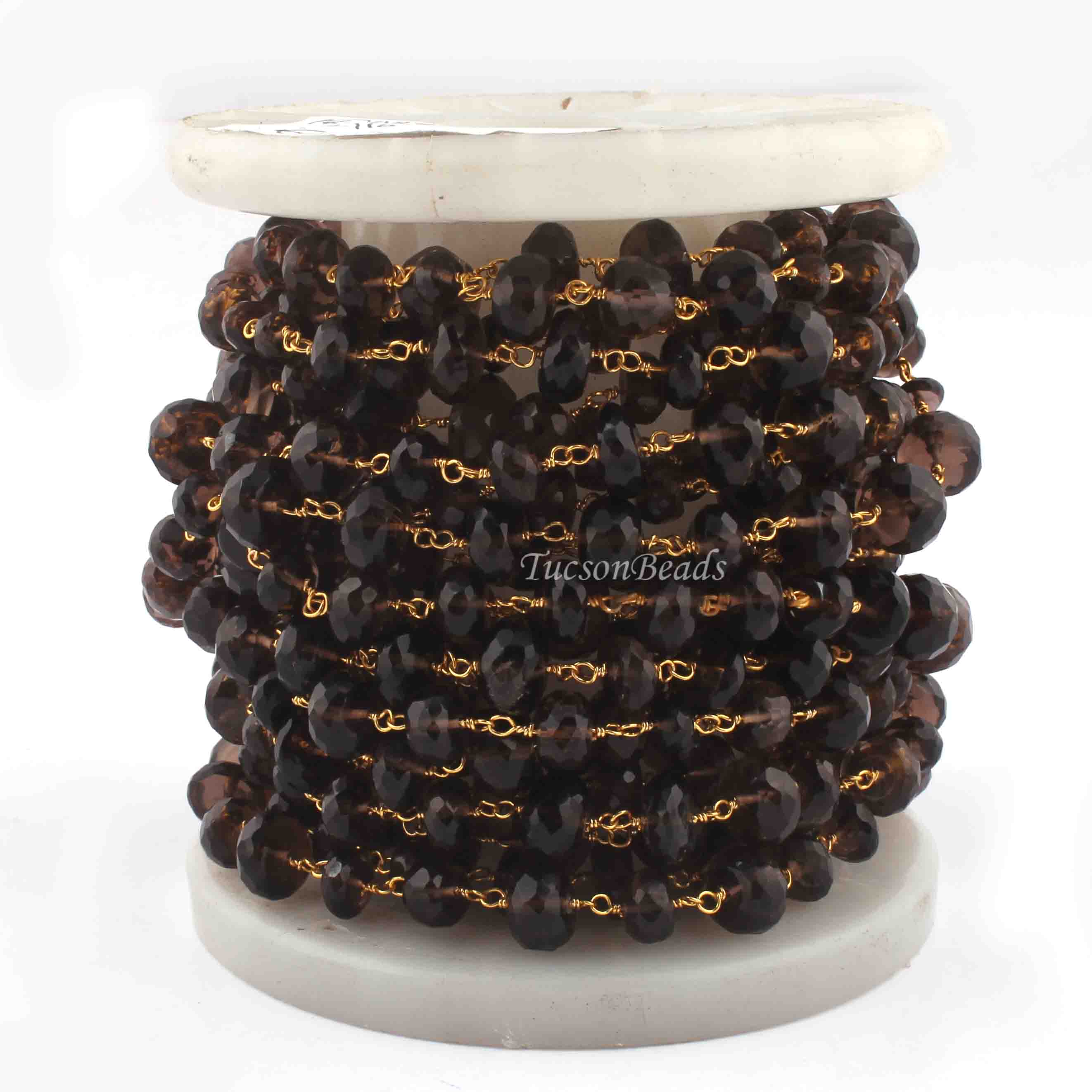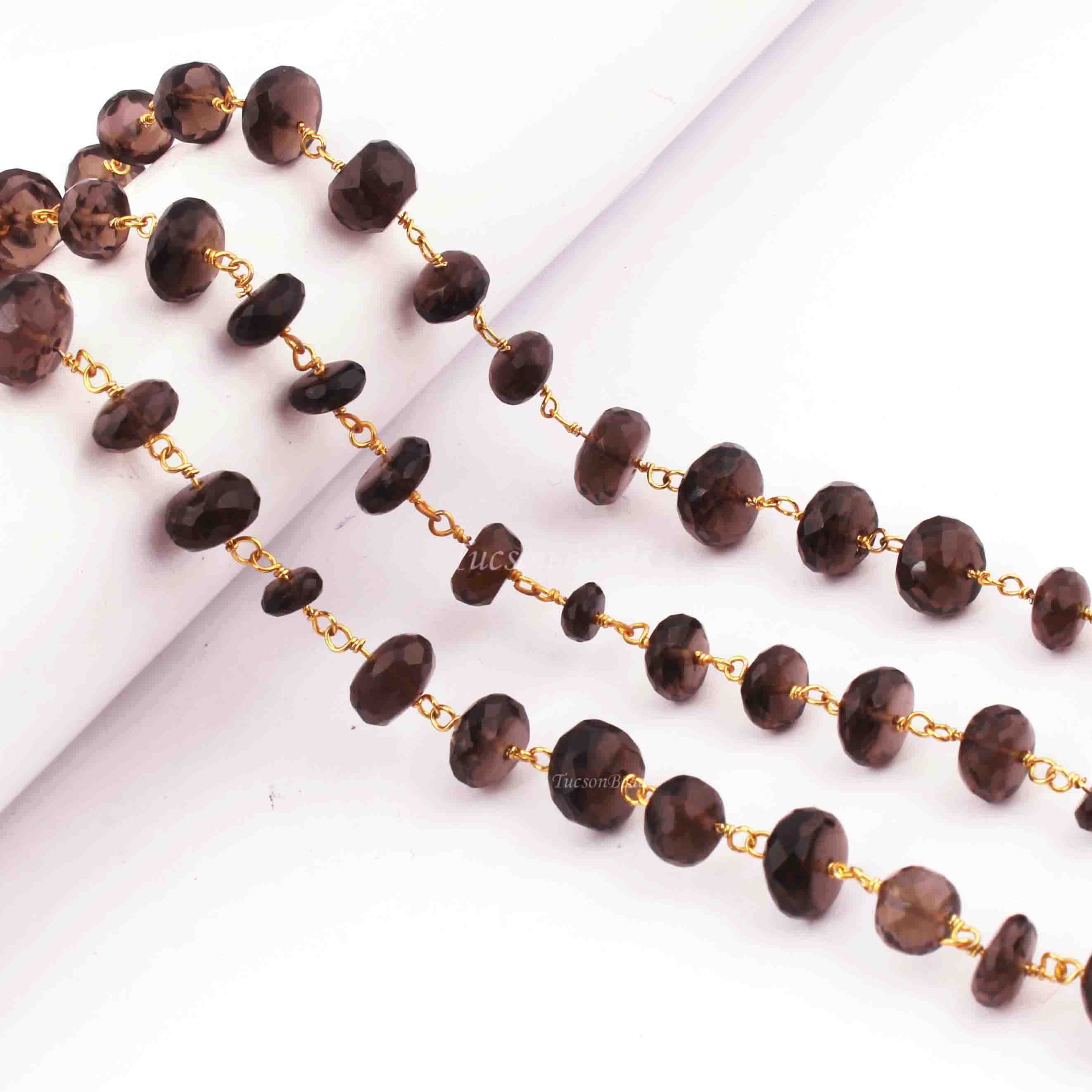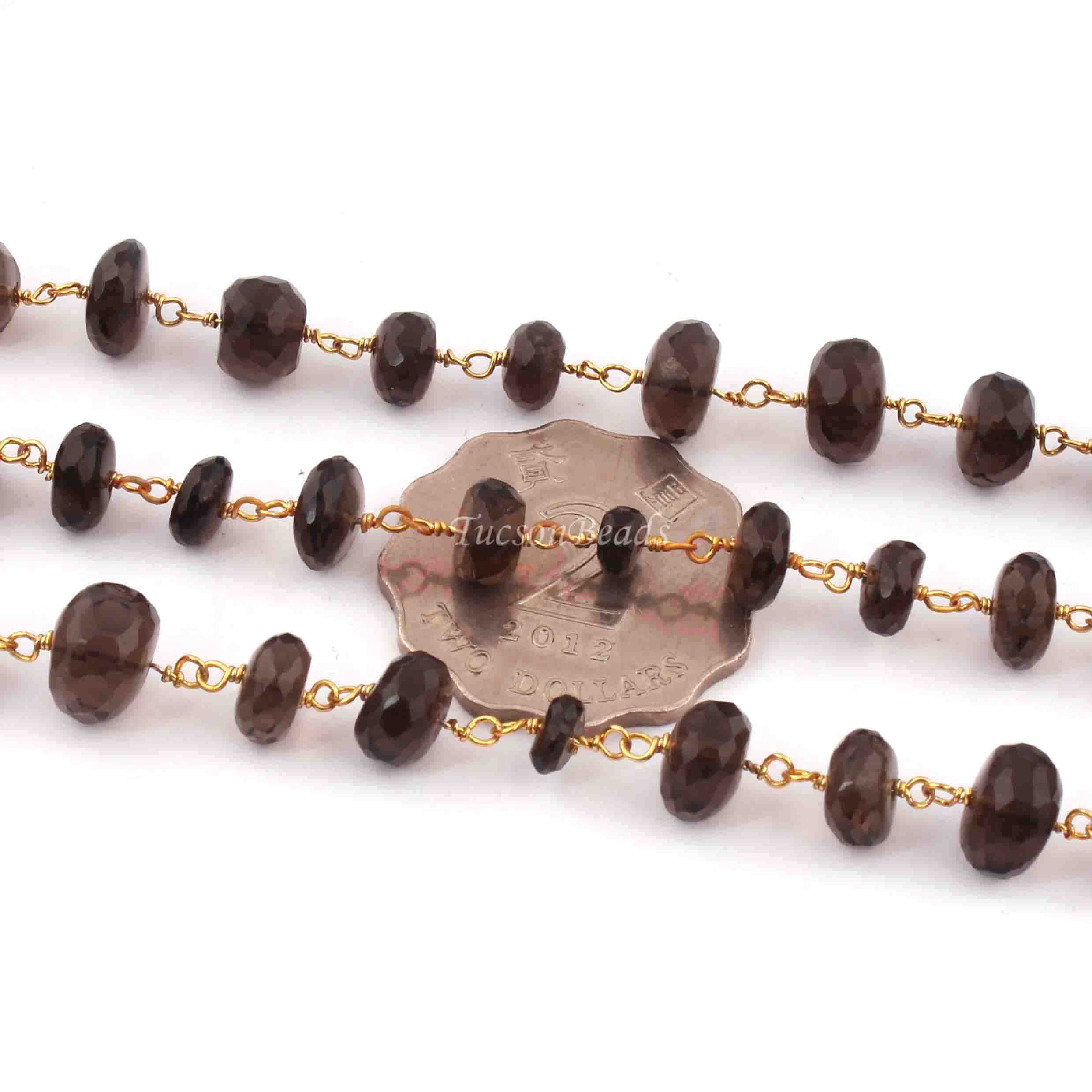5 Feet Smoky Quartz Rondelles Rosary Style 24k Gold plated Beaded Chain- 4mm-6mm- Smoky Quartz Rondelles Gold wire Chain SC340