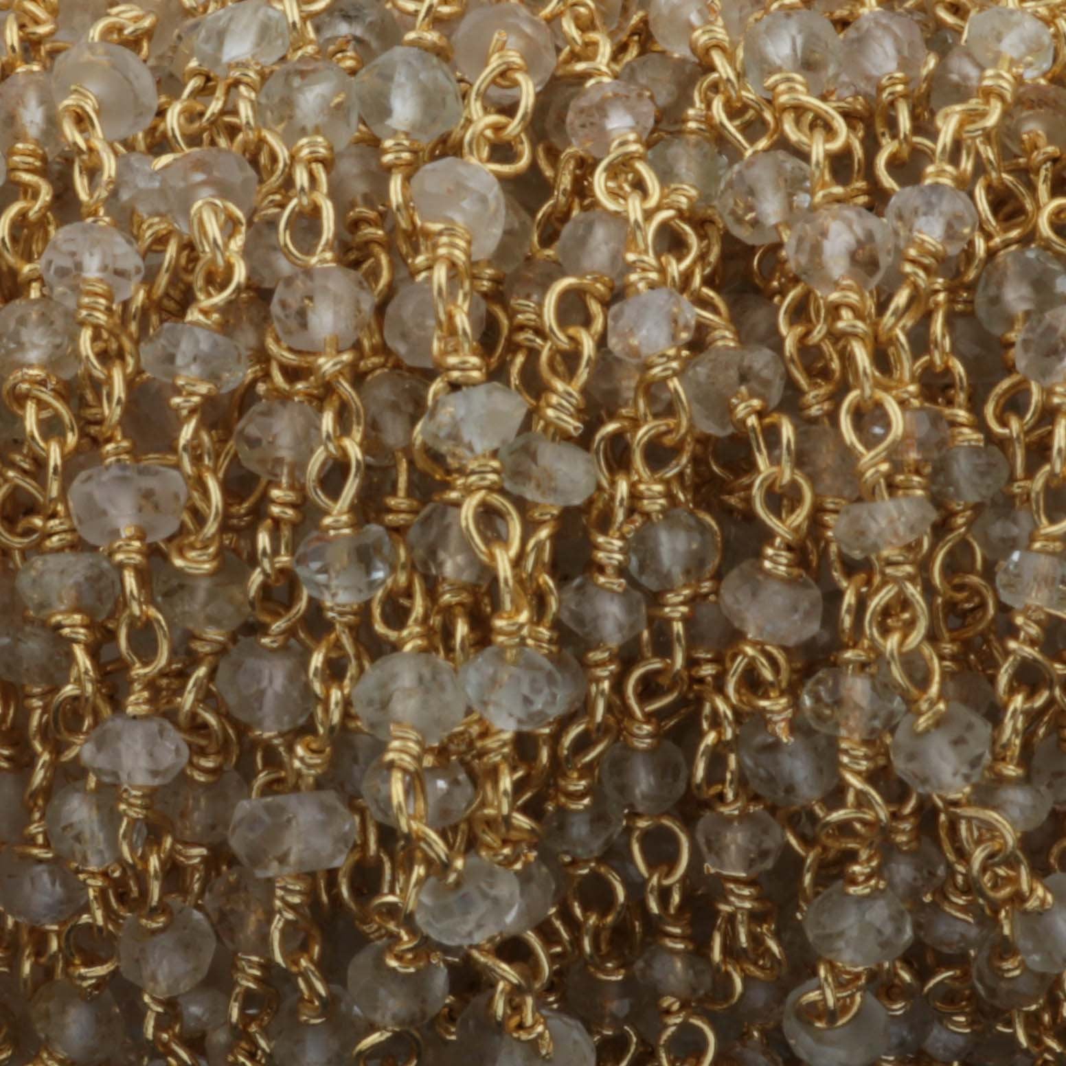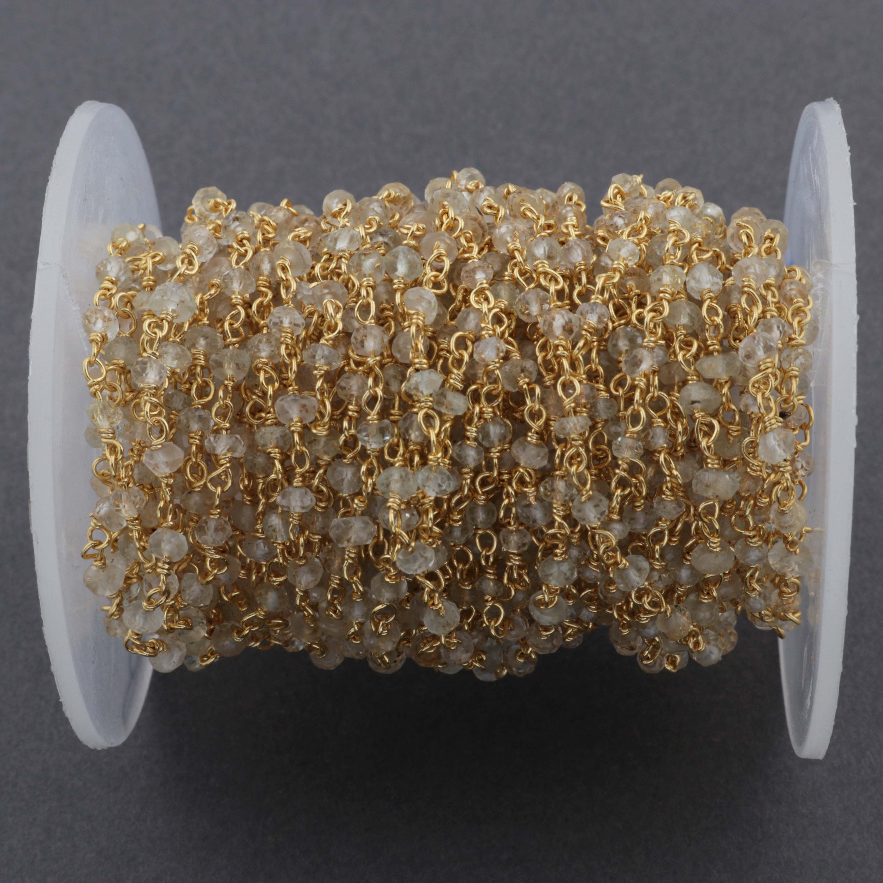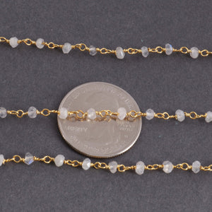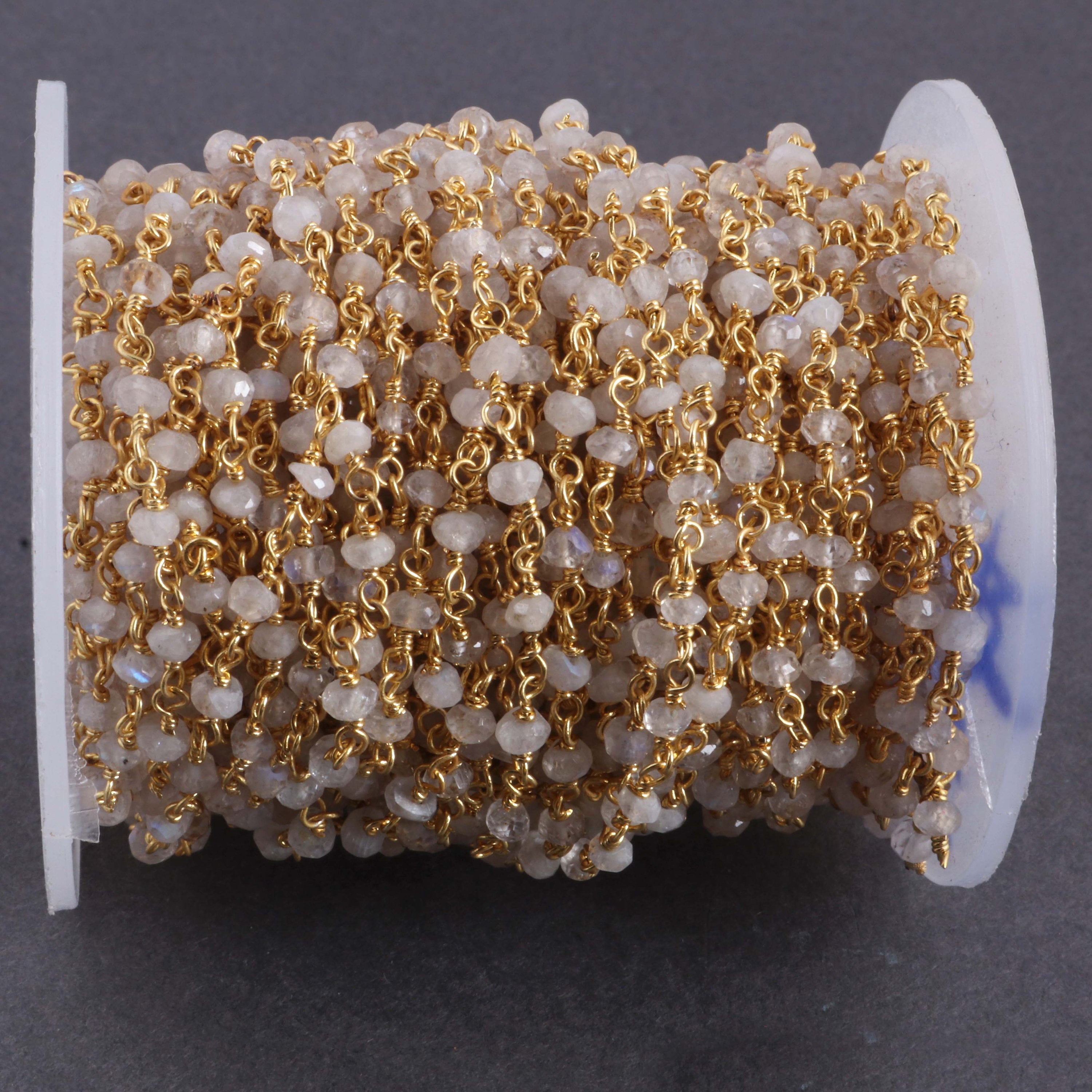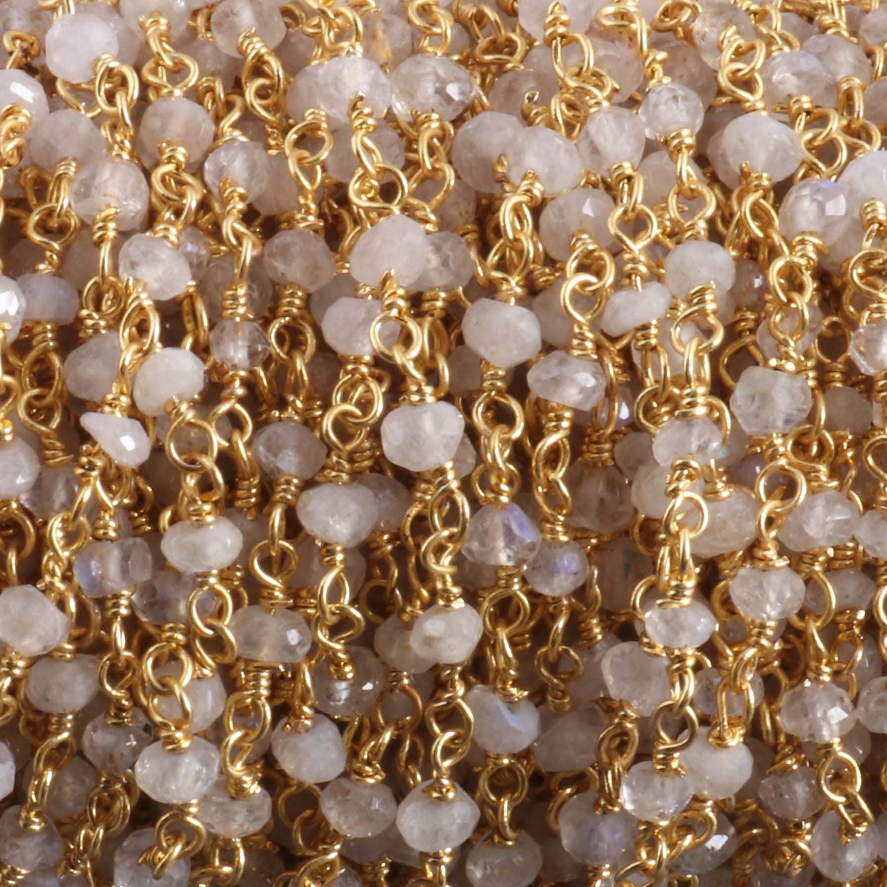 Listing For 5 feet White Rainbow Moonstone Rosary Style Beaded Chain - White Moonstone Beads wire wrapped 24k Gold Plated chain SC165