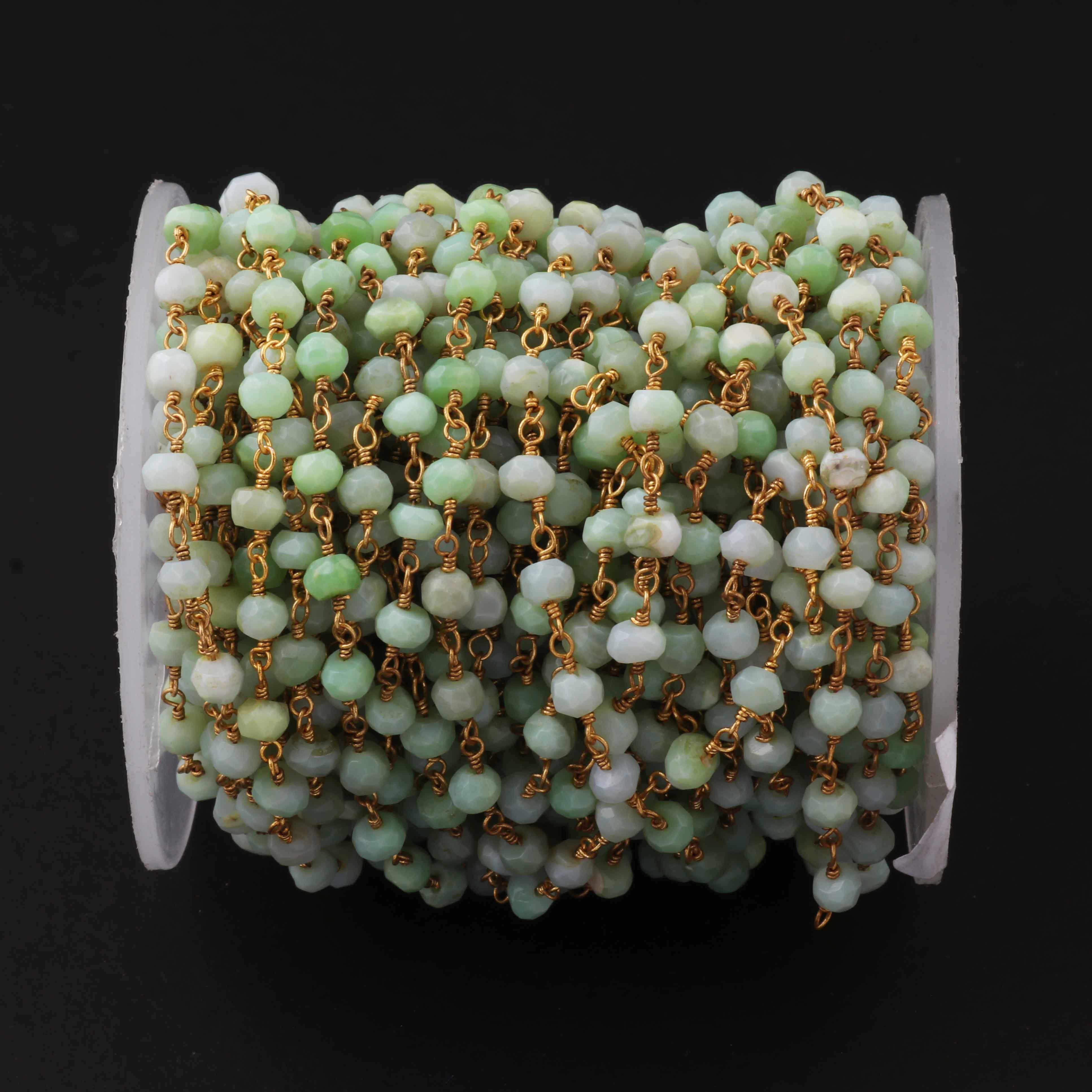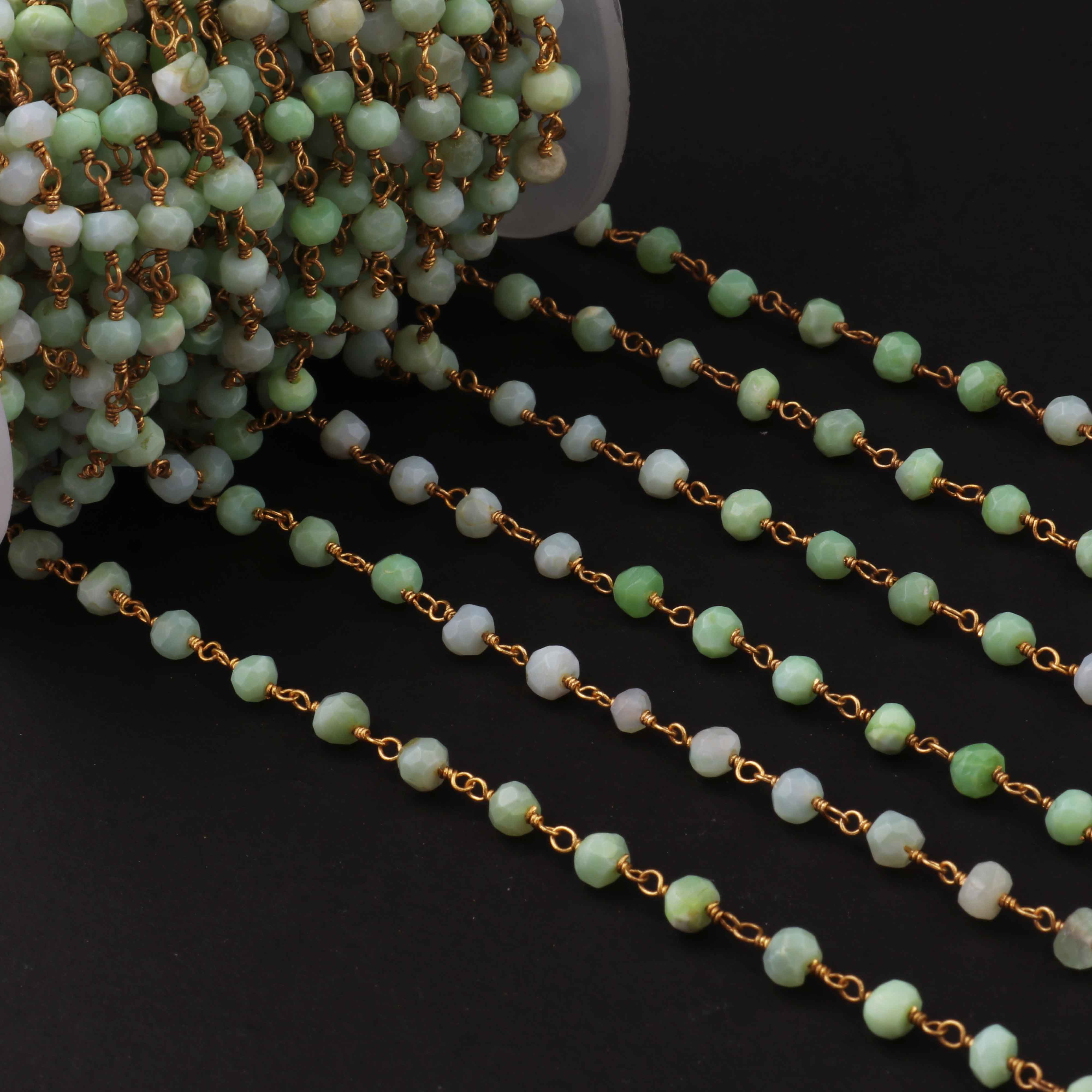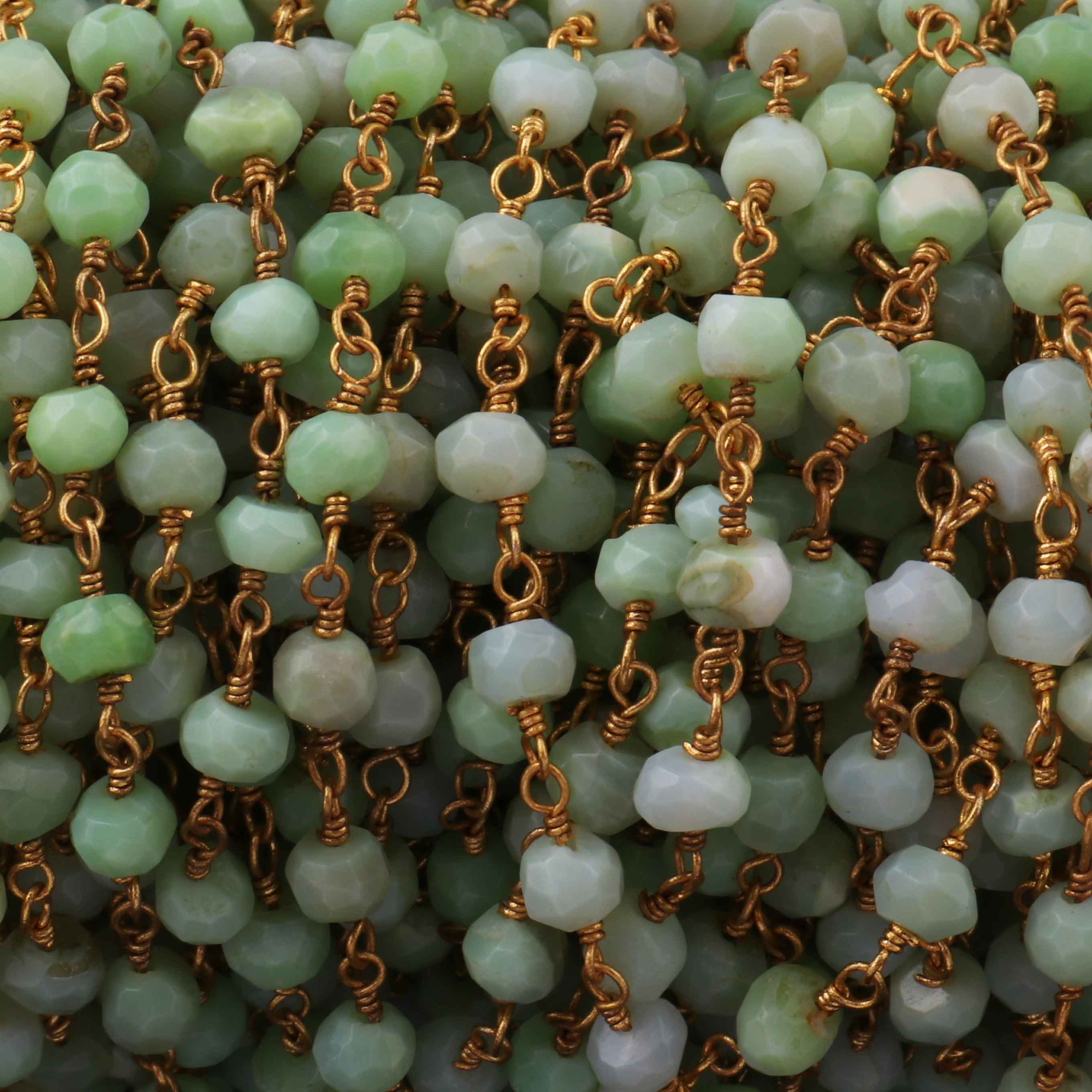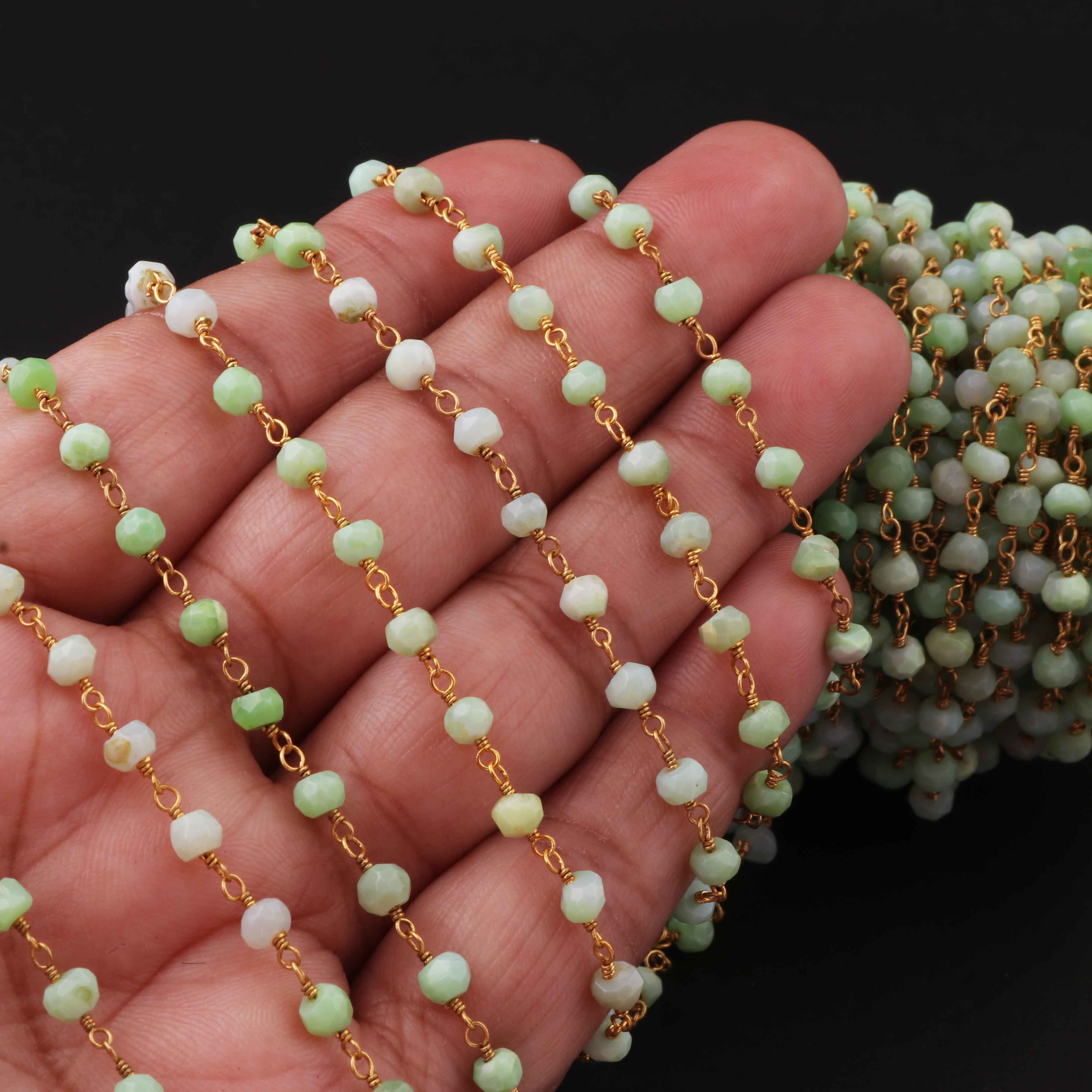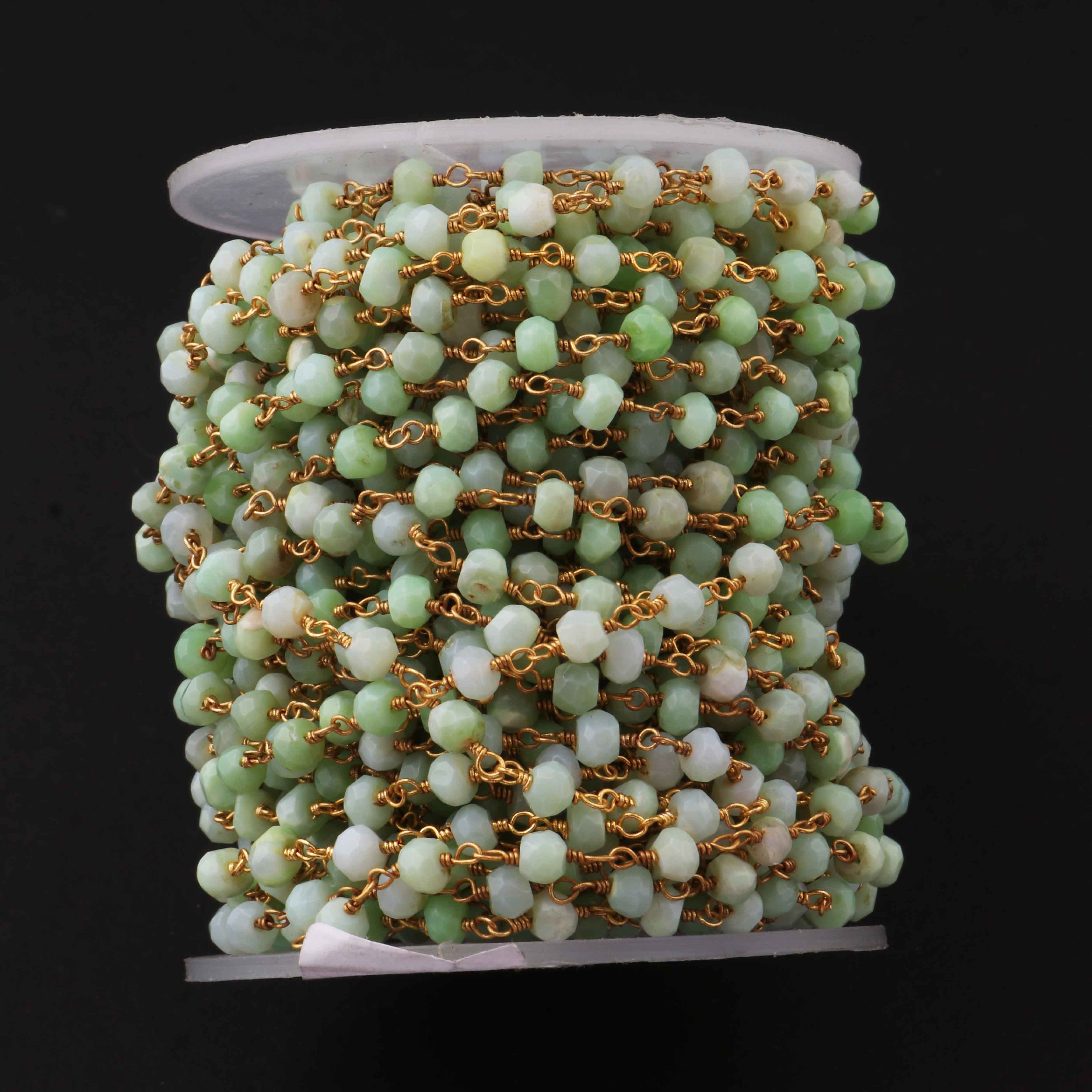 1 Feet Green Opal Faceted Rondelles Rosary Style 24k Gold plated Beaded Chain- 3mm- Green Opal Rondelles Gold wire Chain SC0163