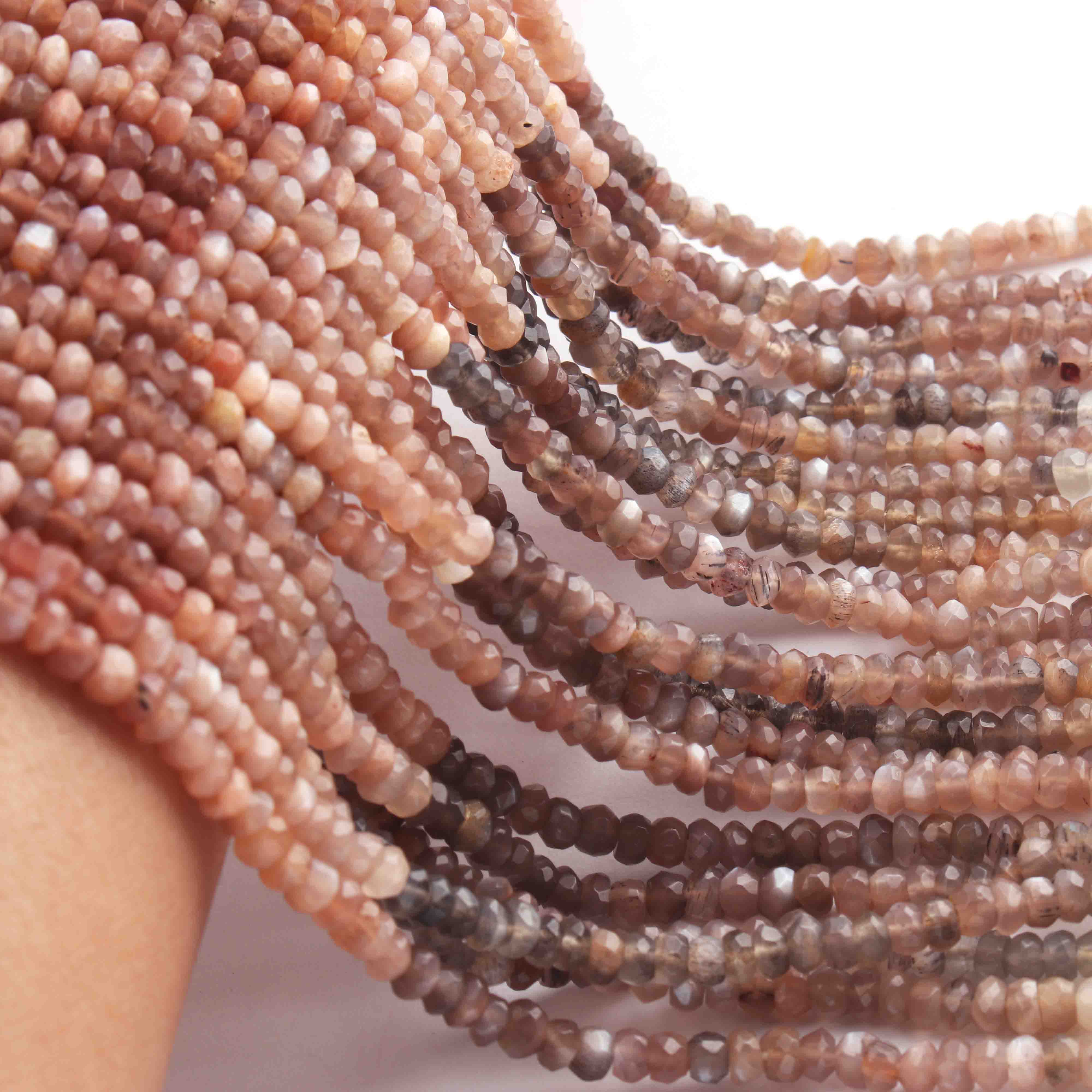 AAA Chocolate Moonstone Silver Coated Micro Faceted 4mm- Beads Rb096