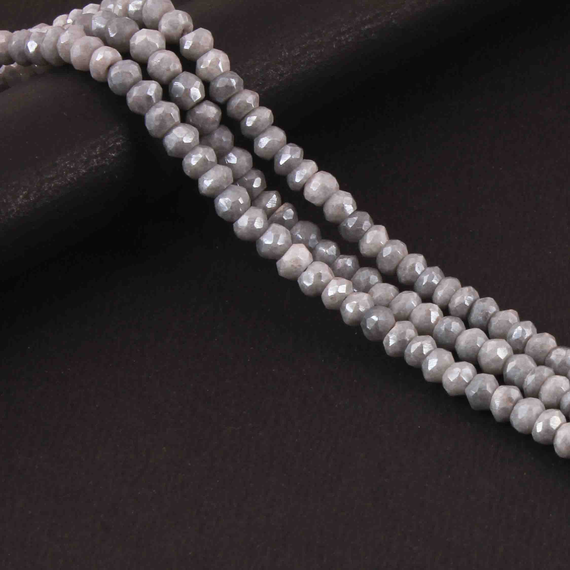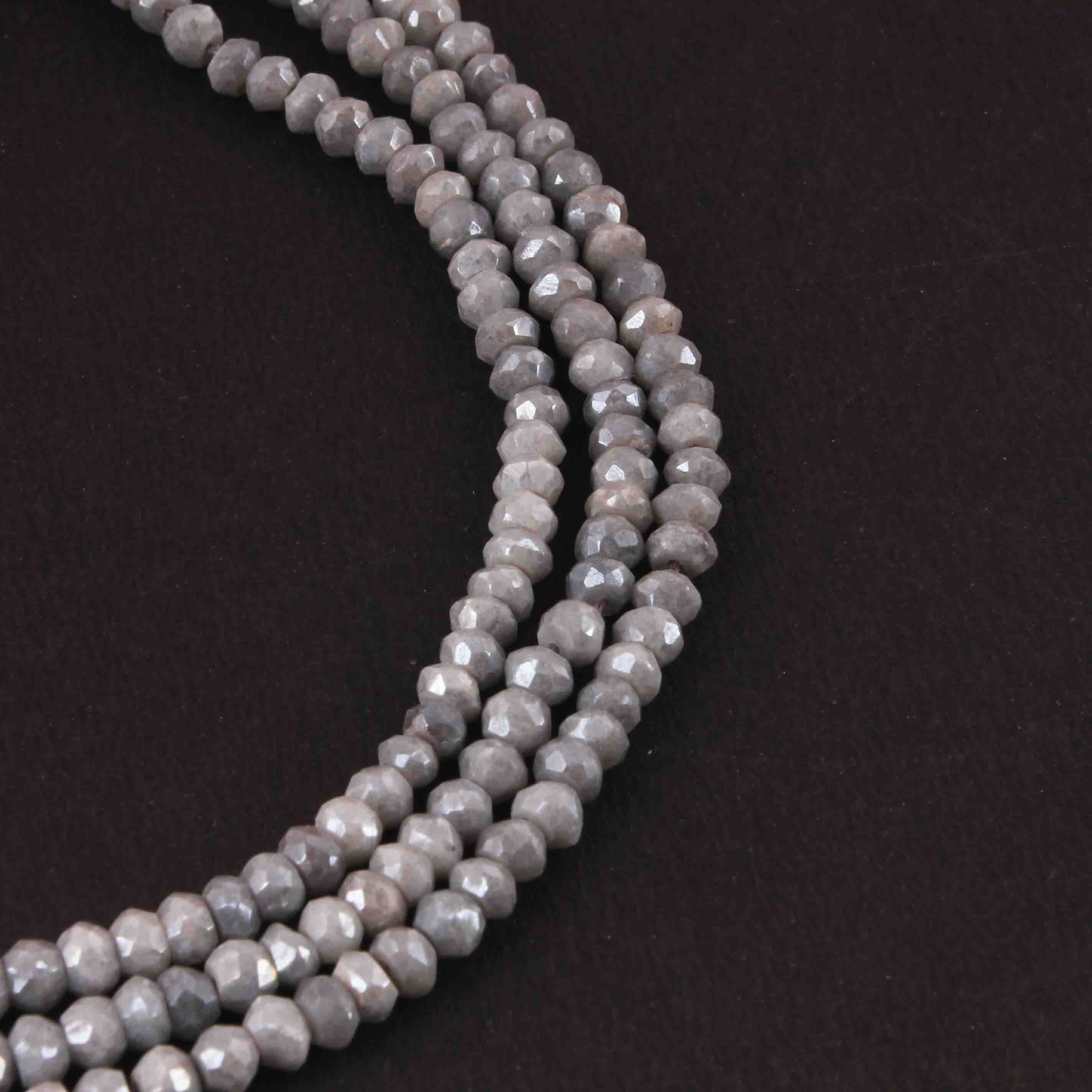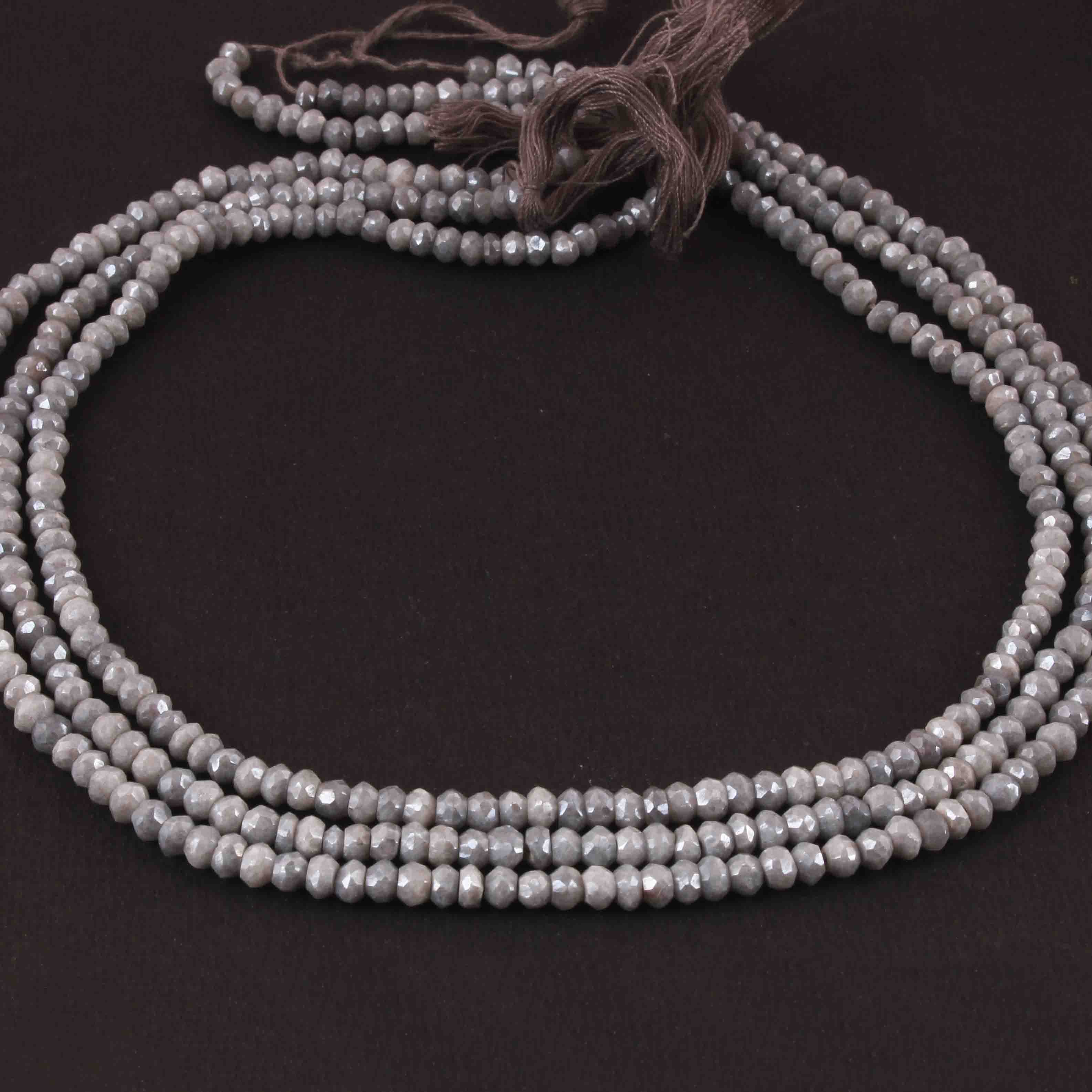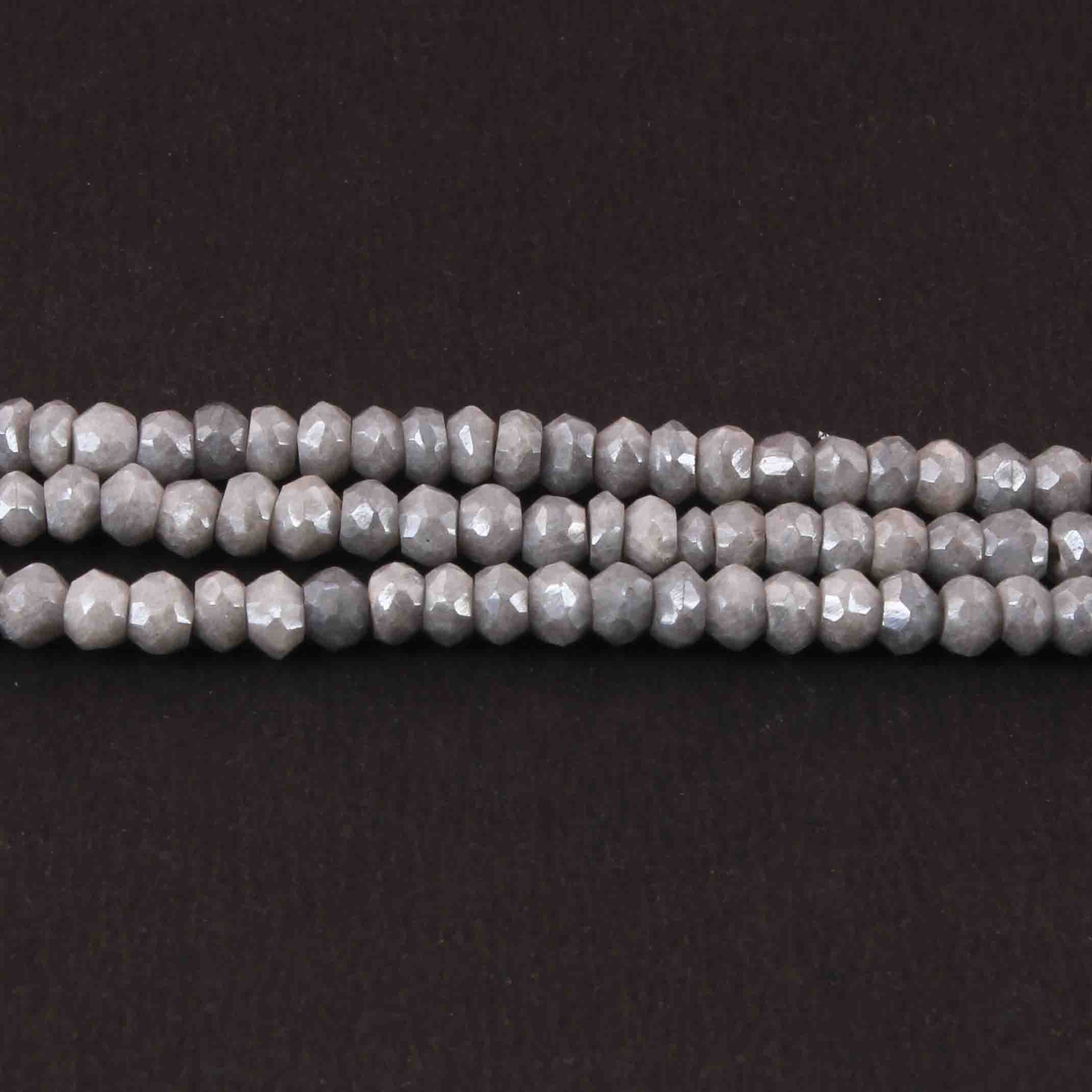 AAA Gray Moonstone Silver Coated Micro Faceted 4mm Beads RB456