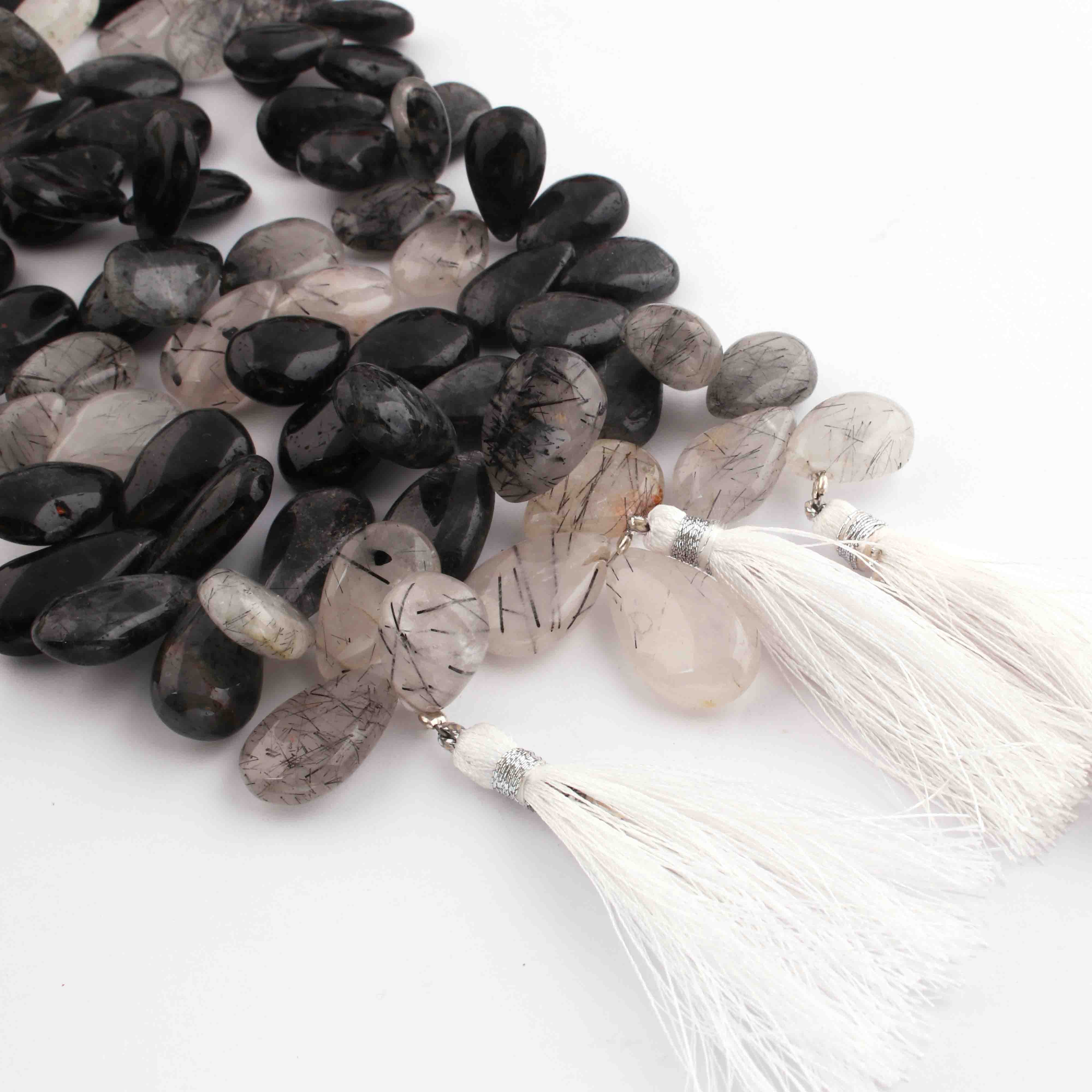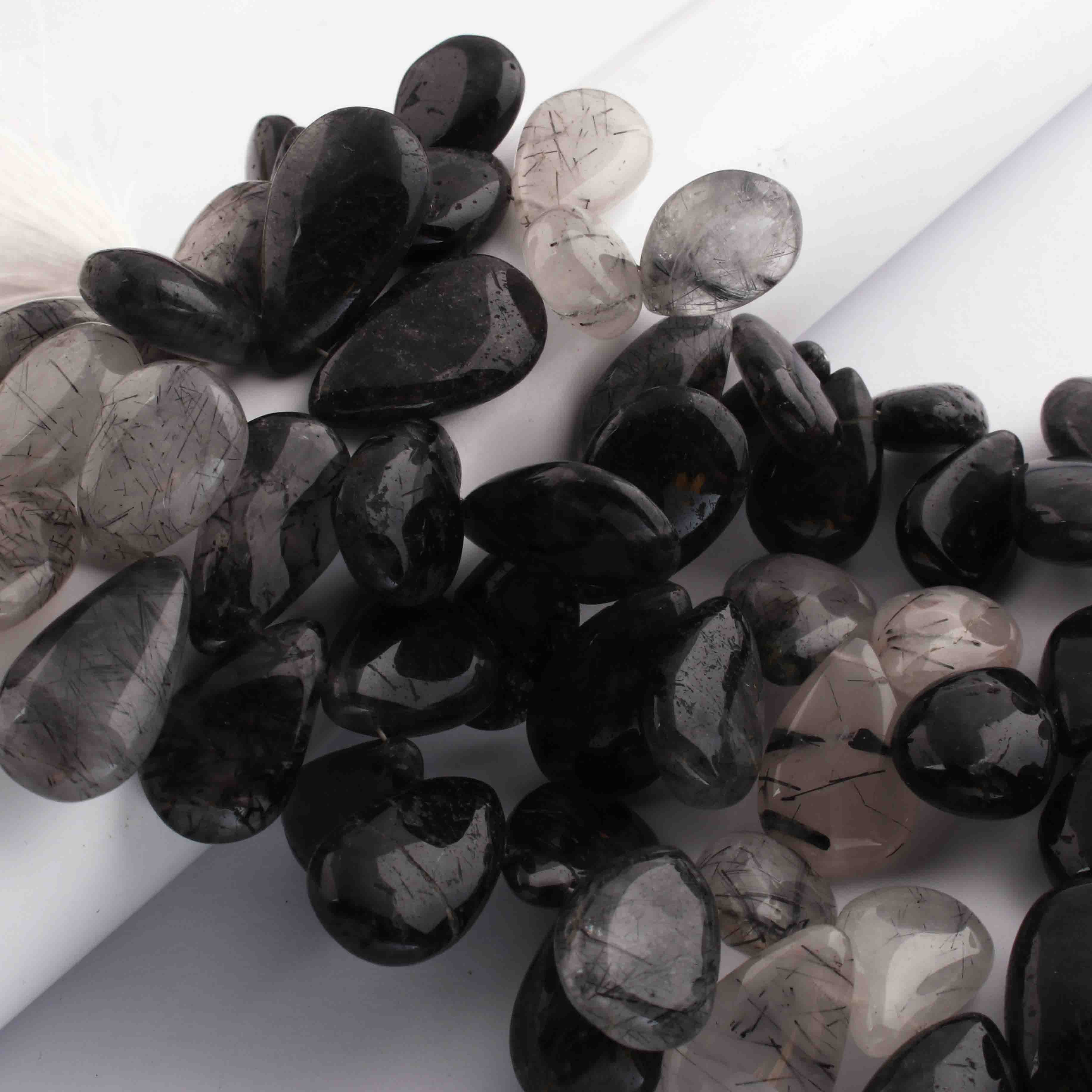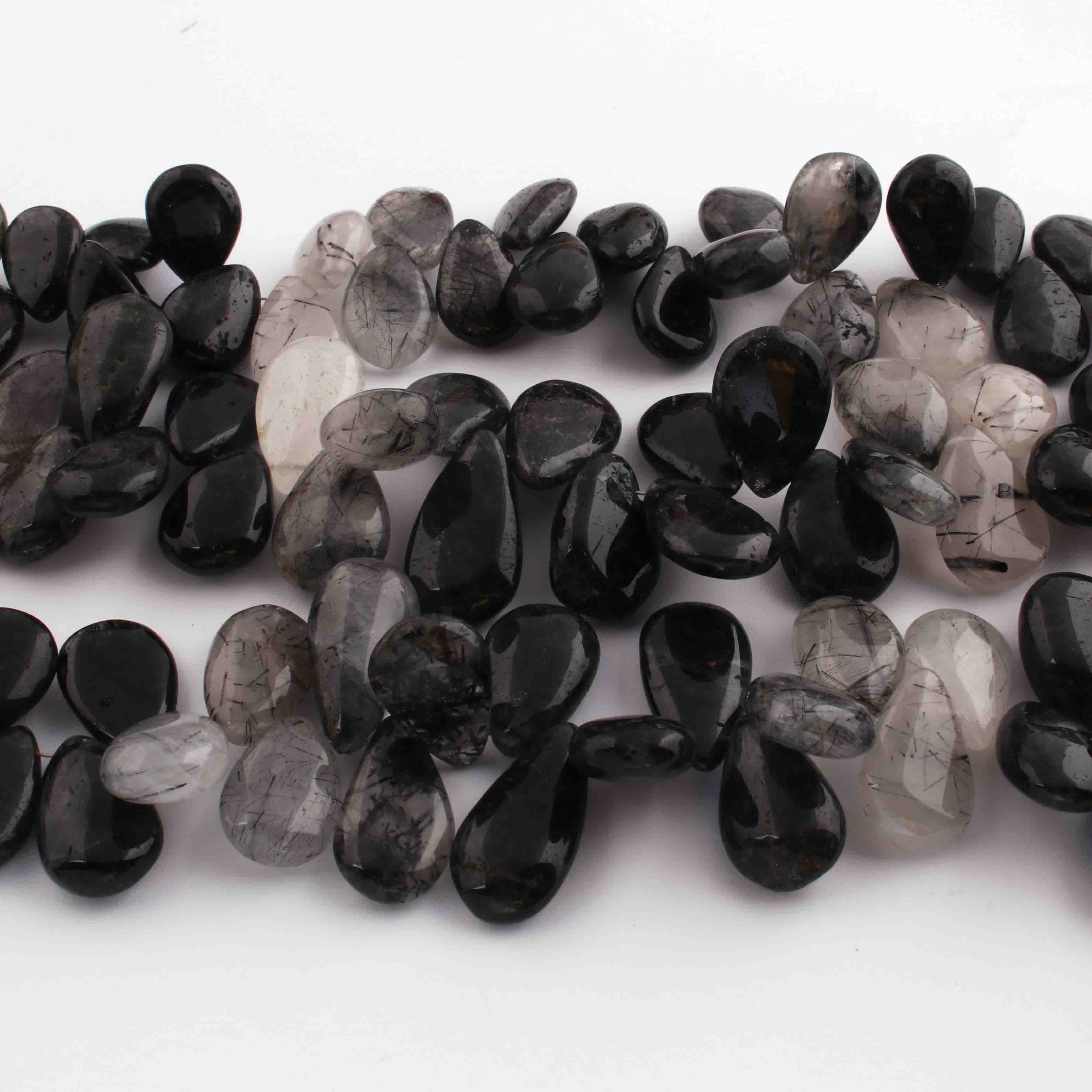 1 Long Strand Black Rutile Smooth Pear Shape Briolettes - 17mmx12mm-23mmx13mm- 8 Inches BR0932