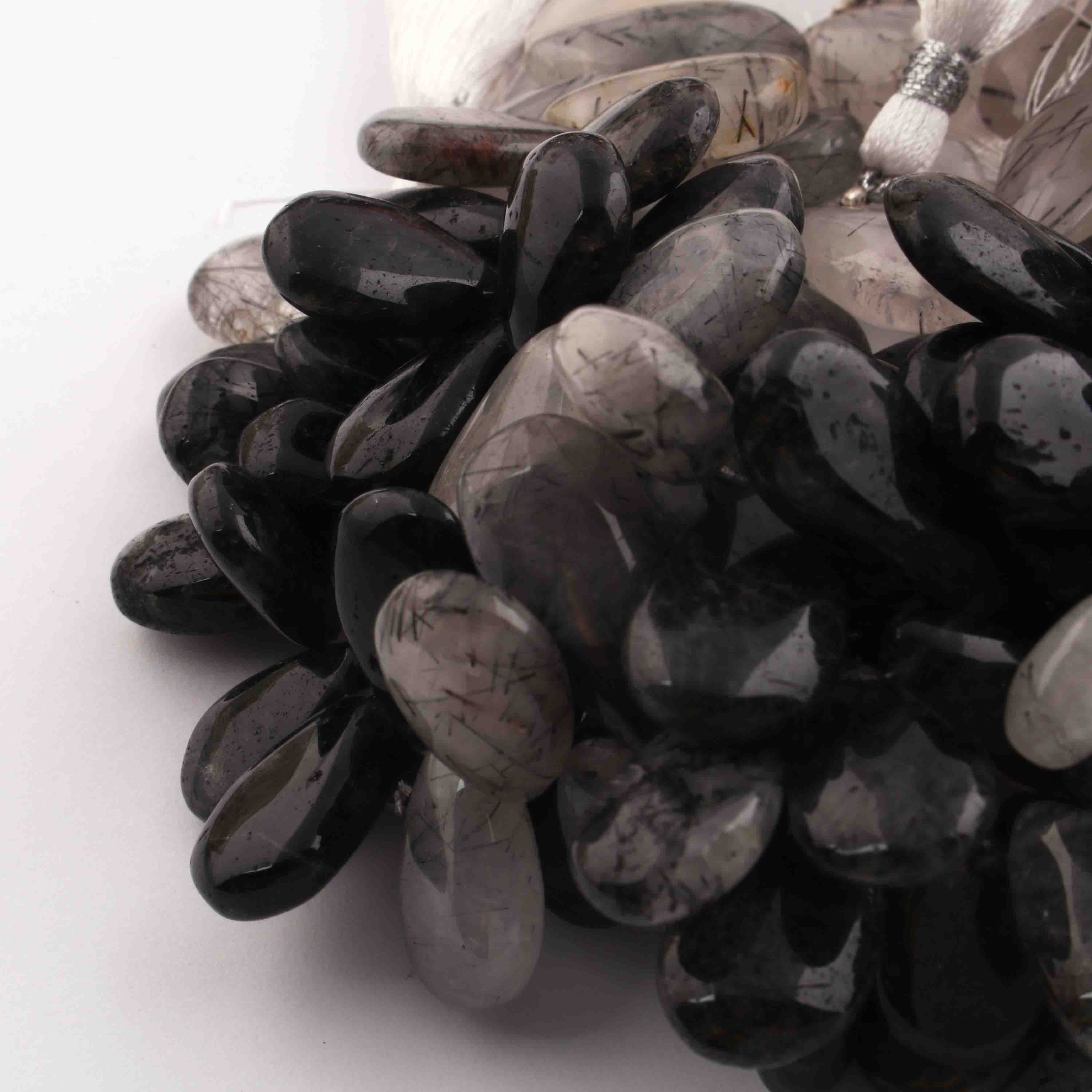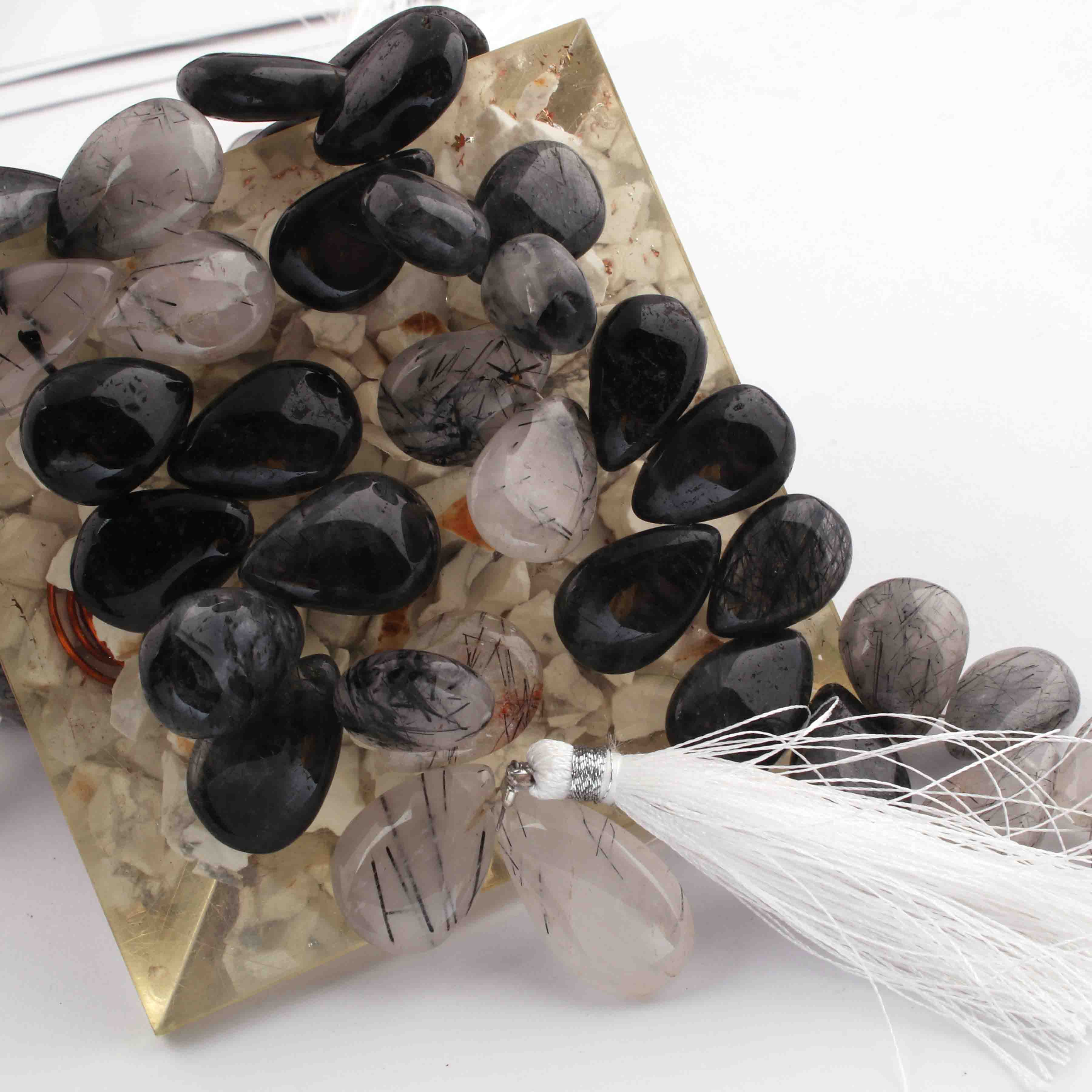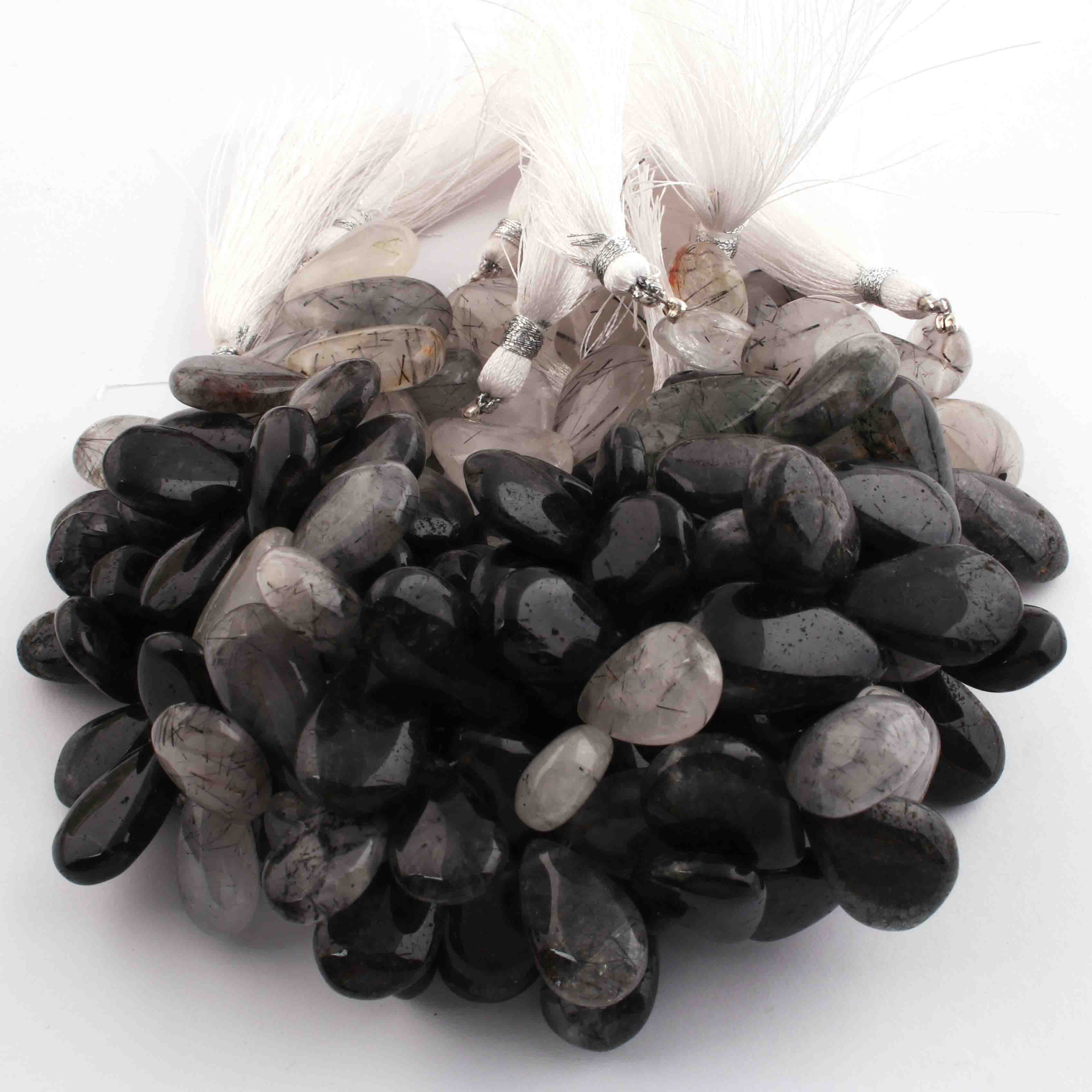 1 Long Strand Black Rutile Smooth Pear Shape Briolettes - 17mmx12mm-23mmx13mm- 8 Inches BR0932