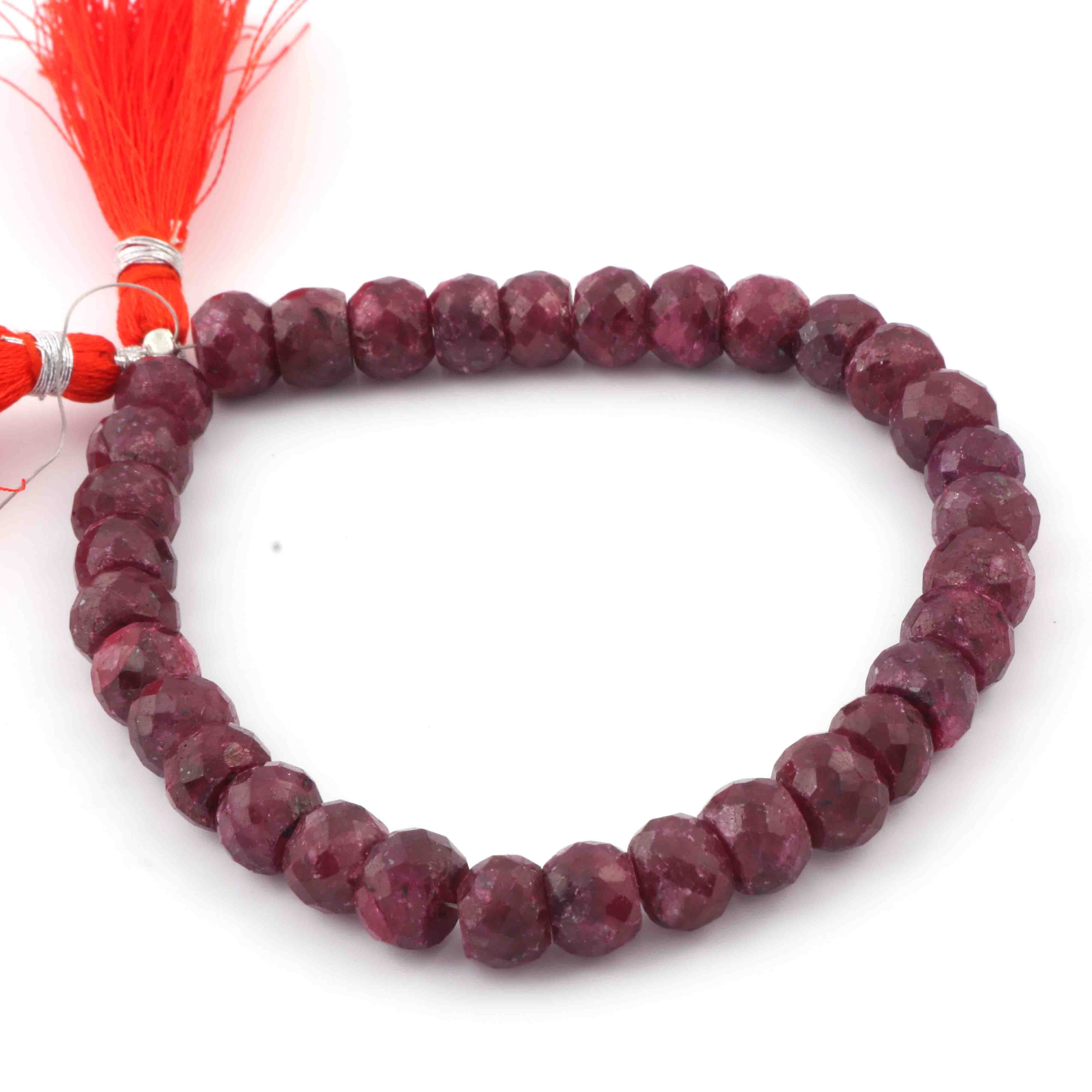 1 Long Strand Ruby Faceted Rondelles - Gemstone Rondelles - 8mm - 8 Inches BR2704