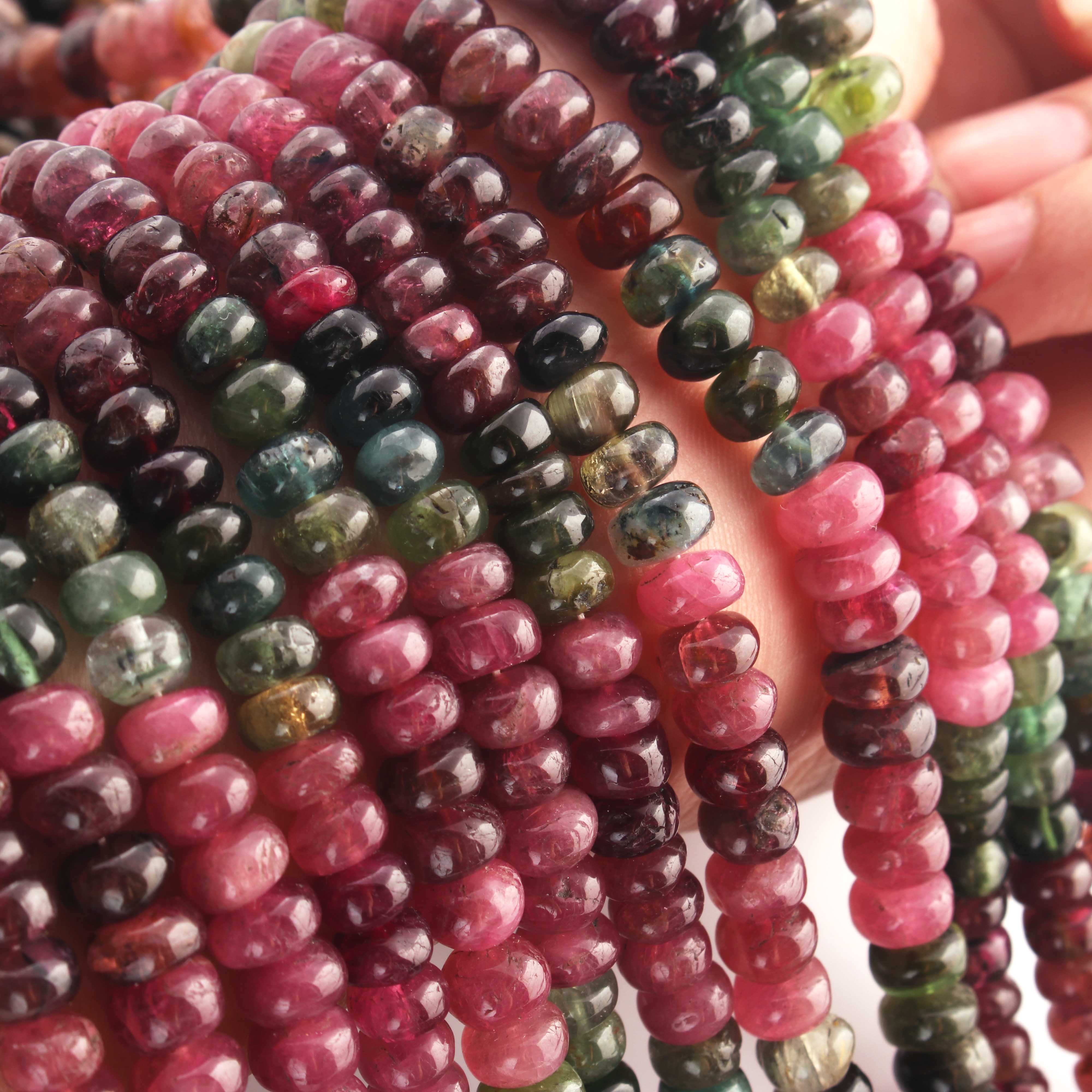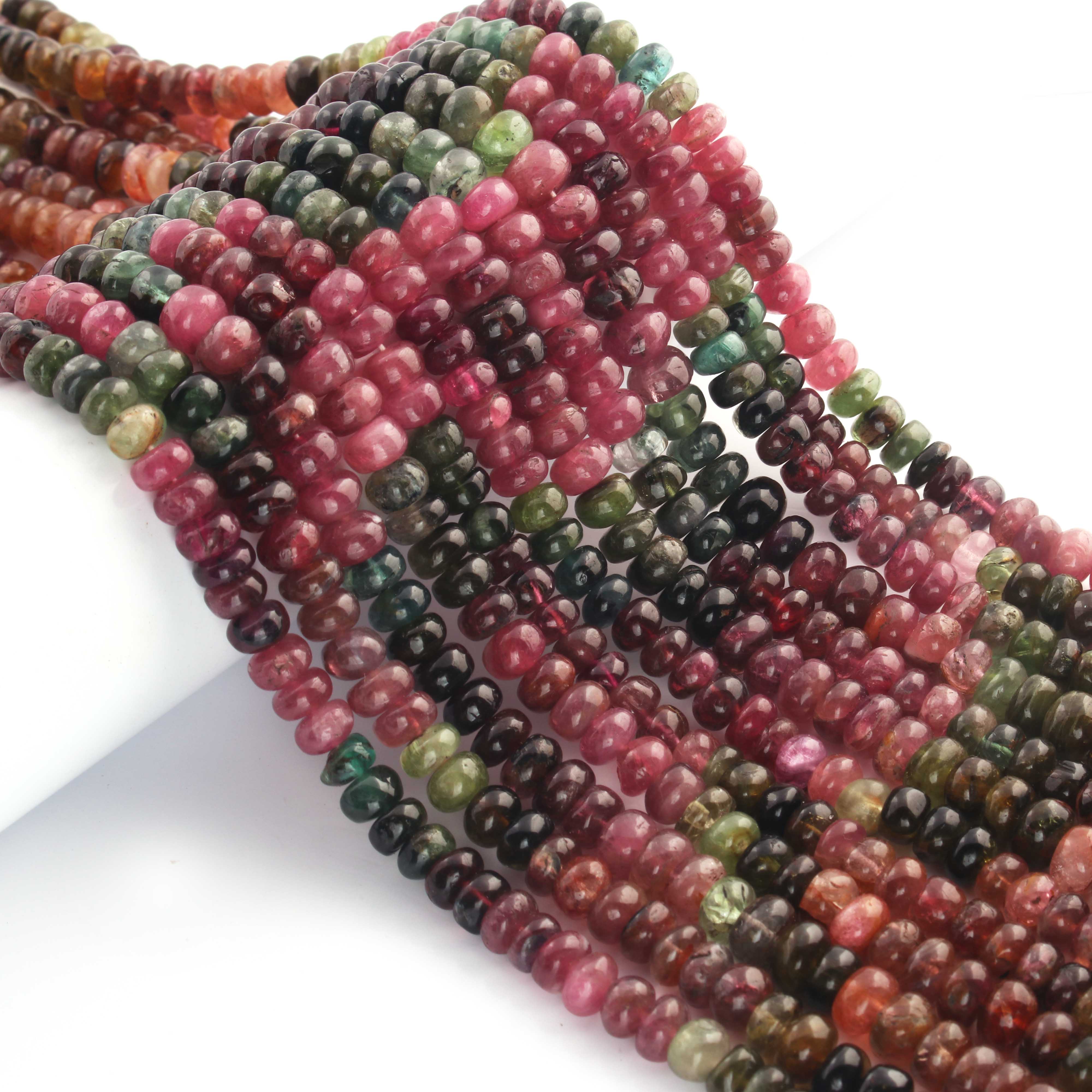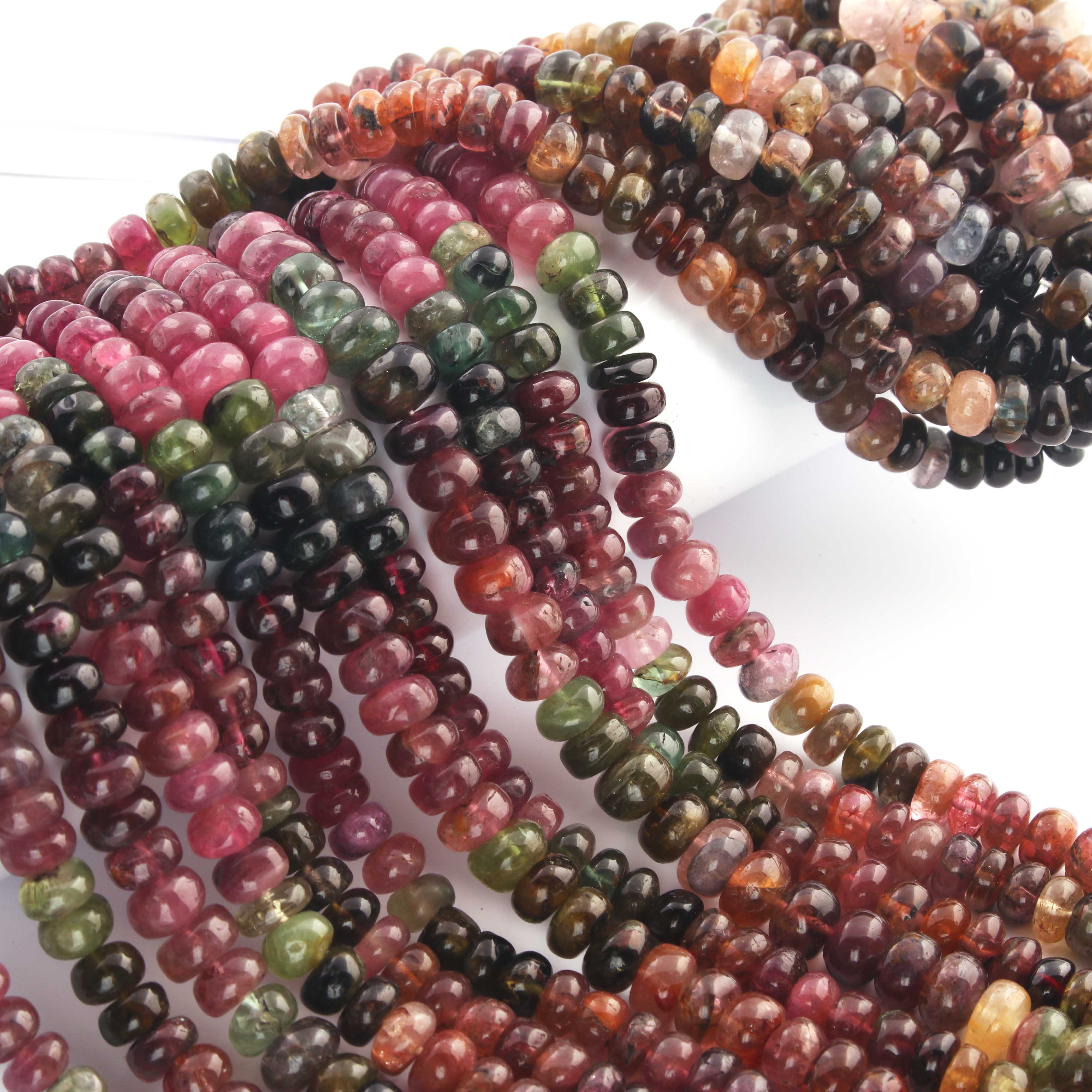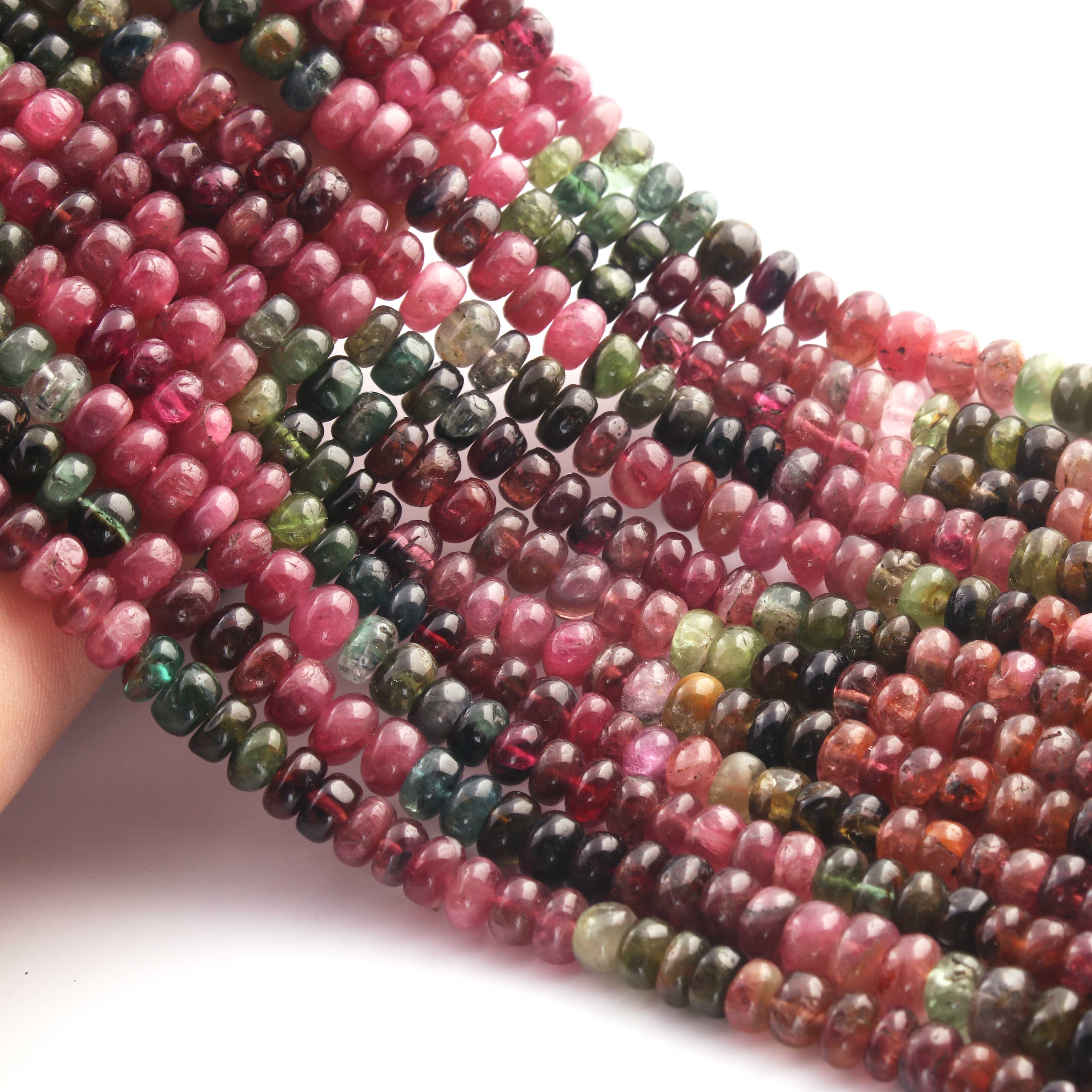 1 Long Strand Multi Tourmaline Smooth Roundelles -Tourmaline Roundel Beads - Gemstone Rondelles 5mm-14 Inches BR0429