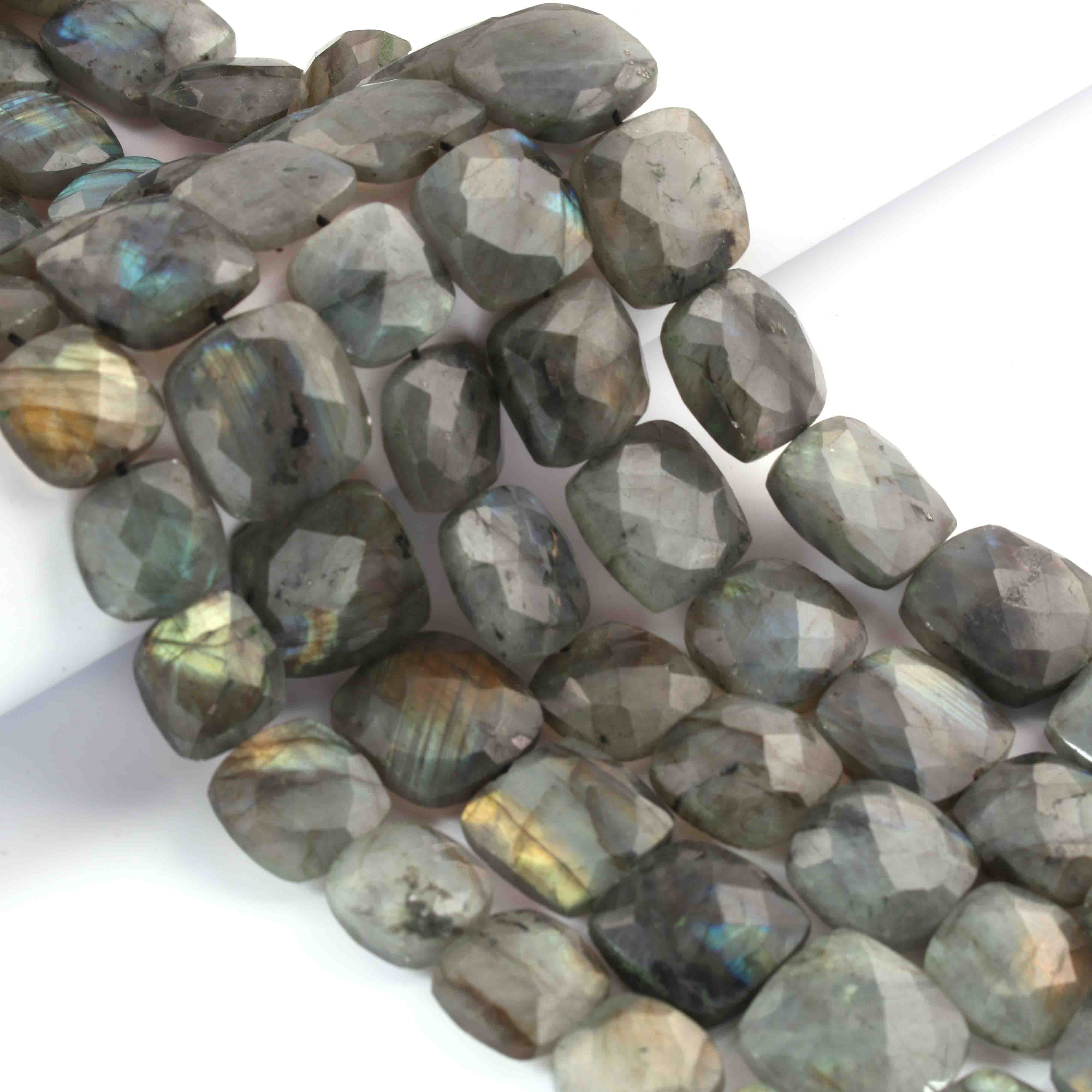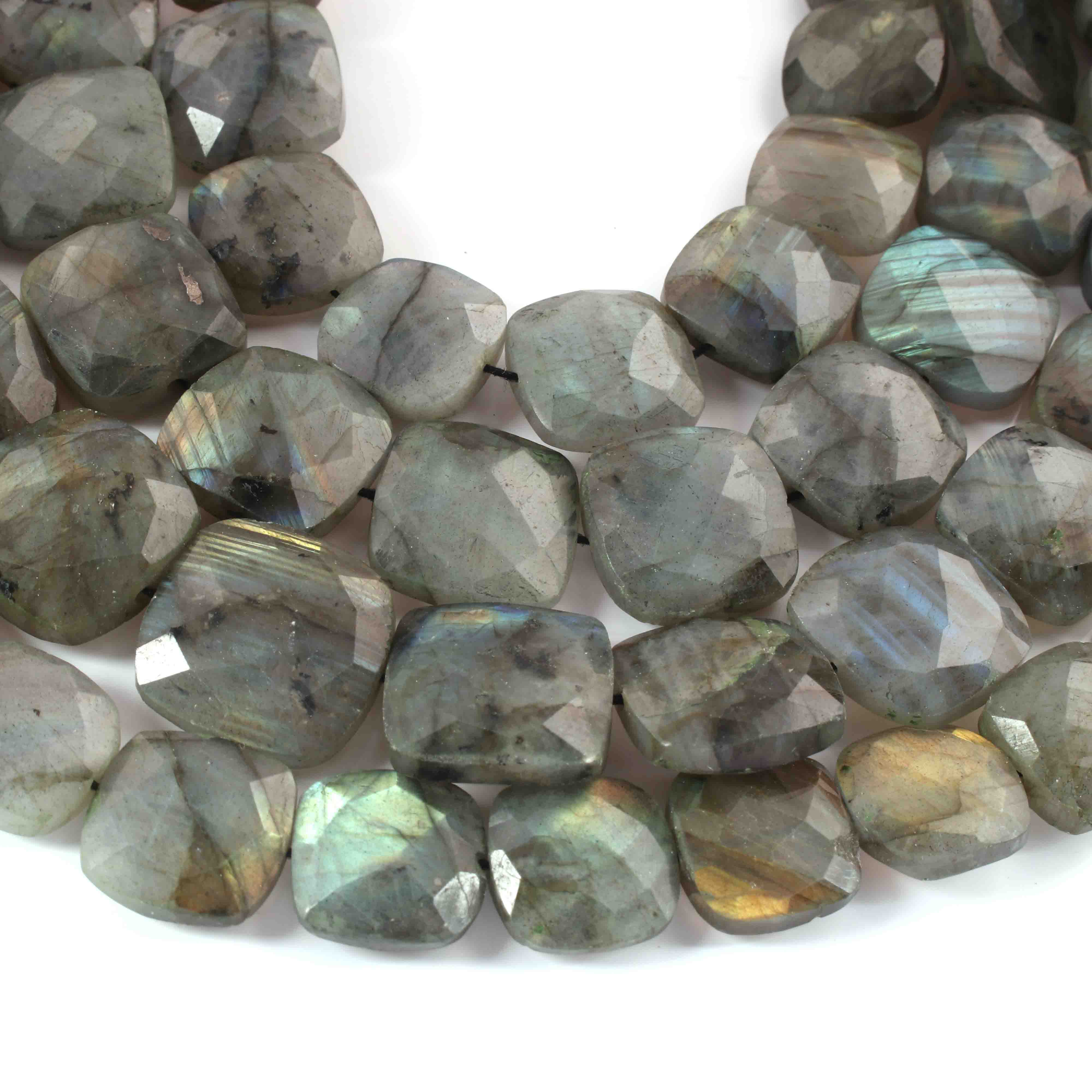 1 Strand Labradorite Faceted Briolettes - Cushion Shape Briolettes 12mm- 10.5 Inches BR02249