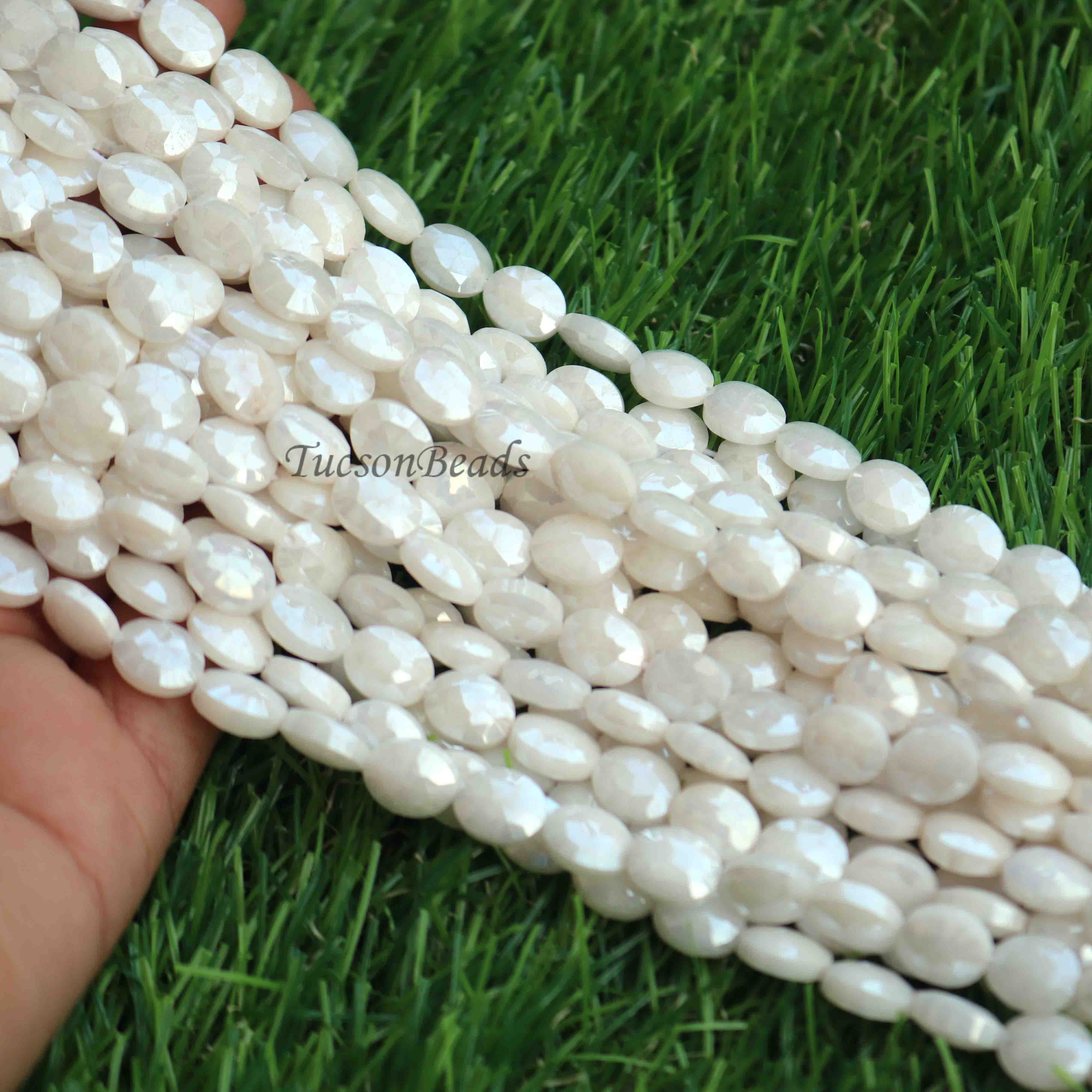1 Strand White Silverite Faceted Briolettes -Oval Shape Briolettes - 8mm-10mm -15 Inches BR0311