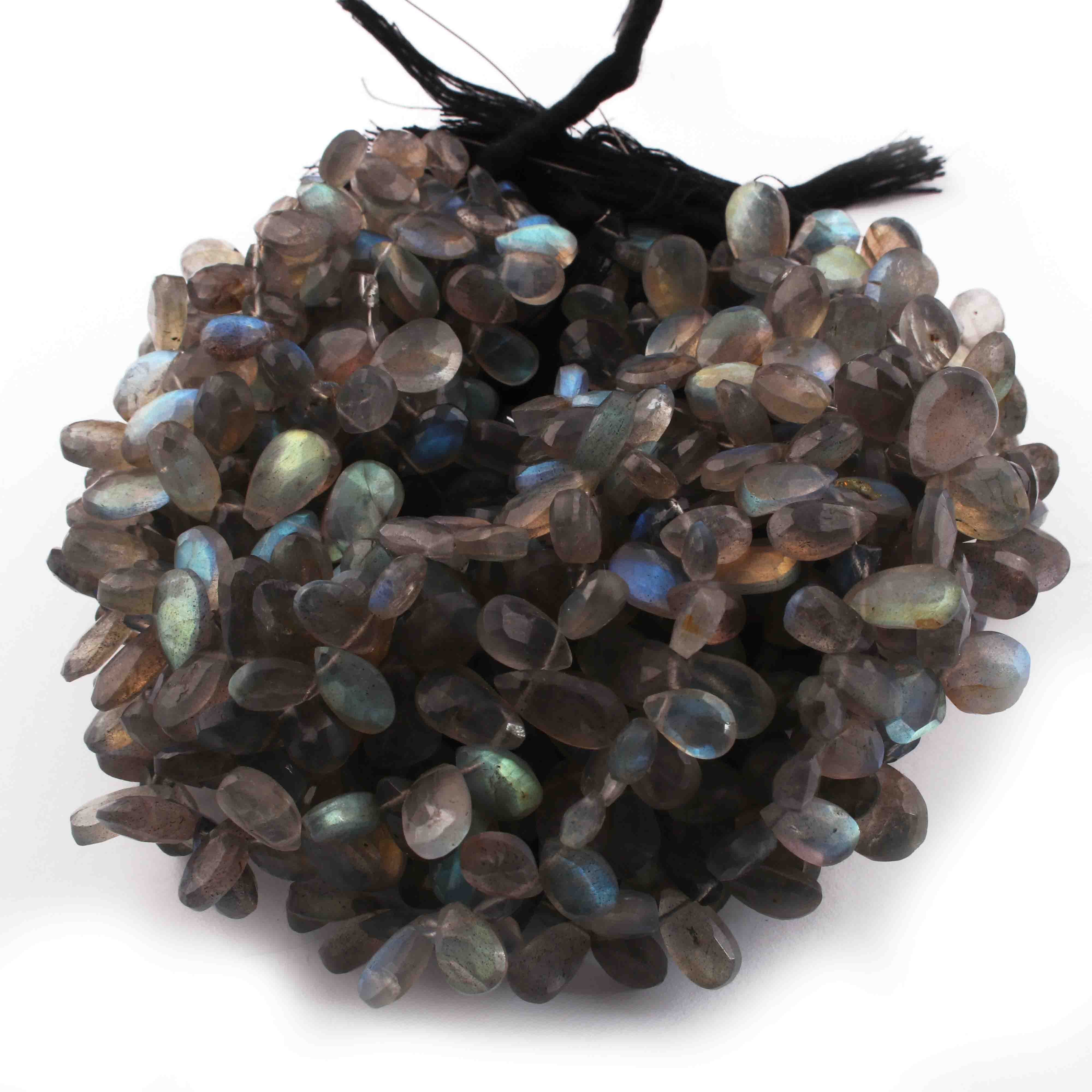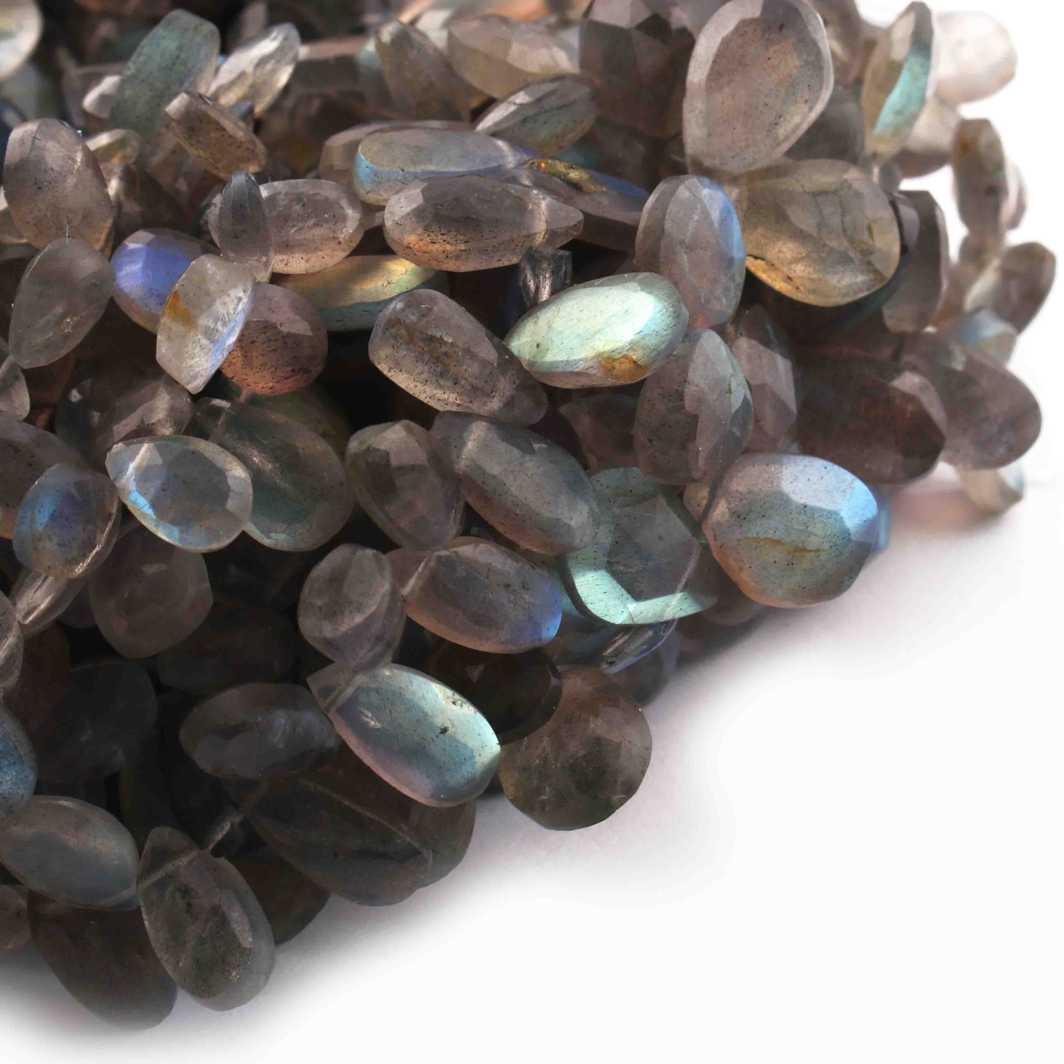 1 Strand Labradorite Faceted Pear Briolettes - Labradorite Pear Briolettes 8mmx6mm-11x9mm 10 inches BR0722