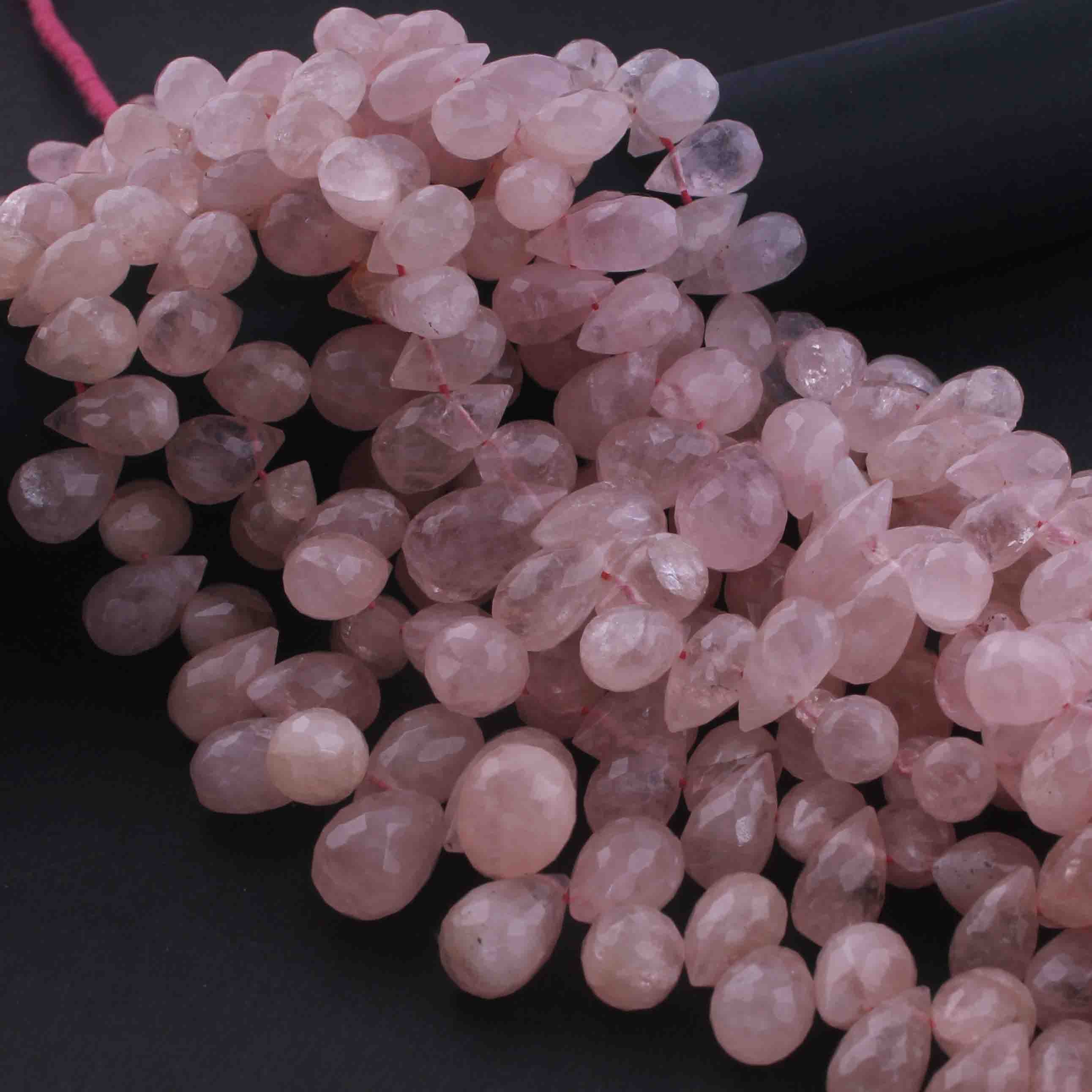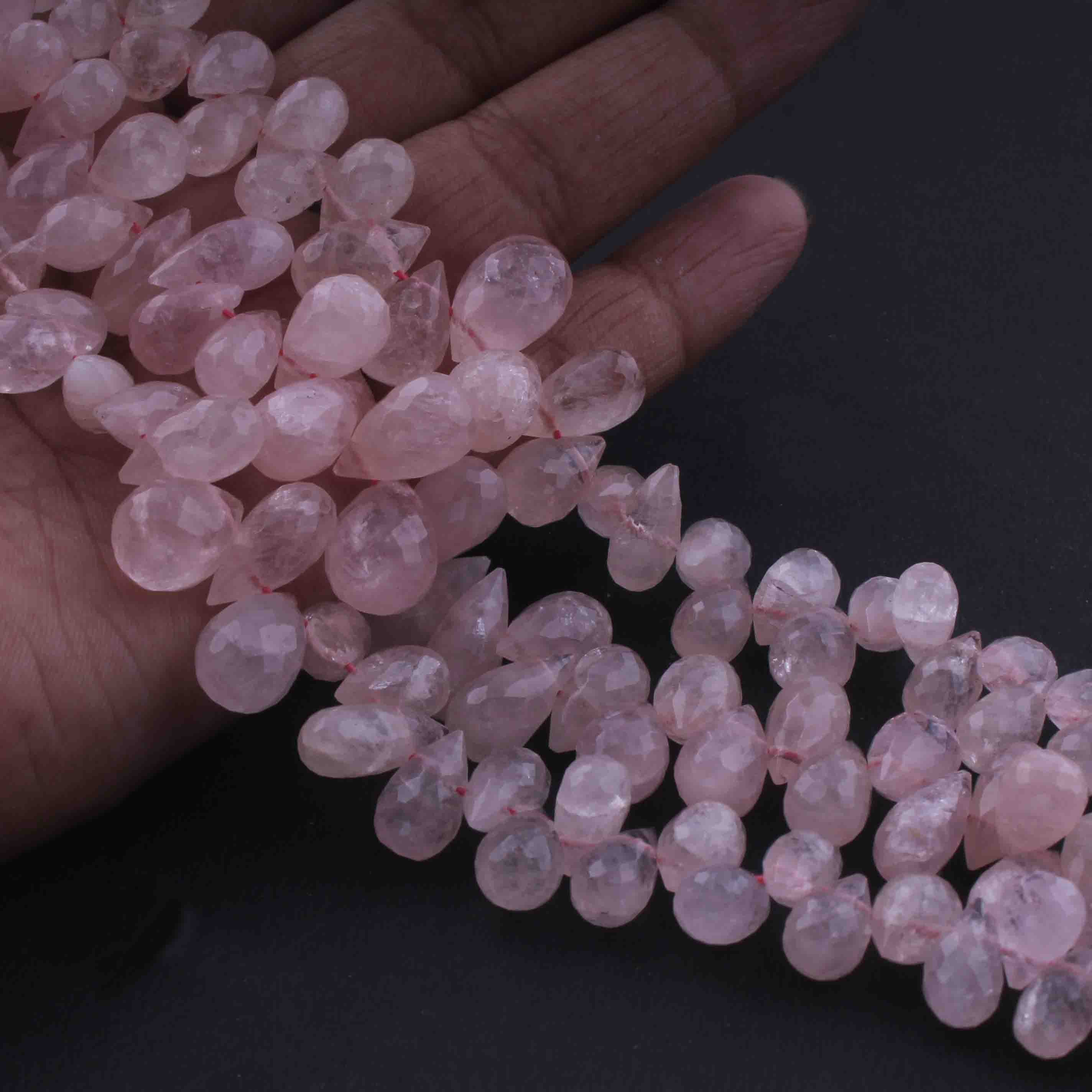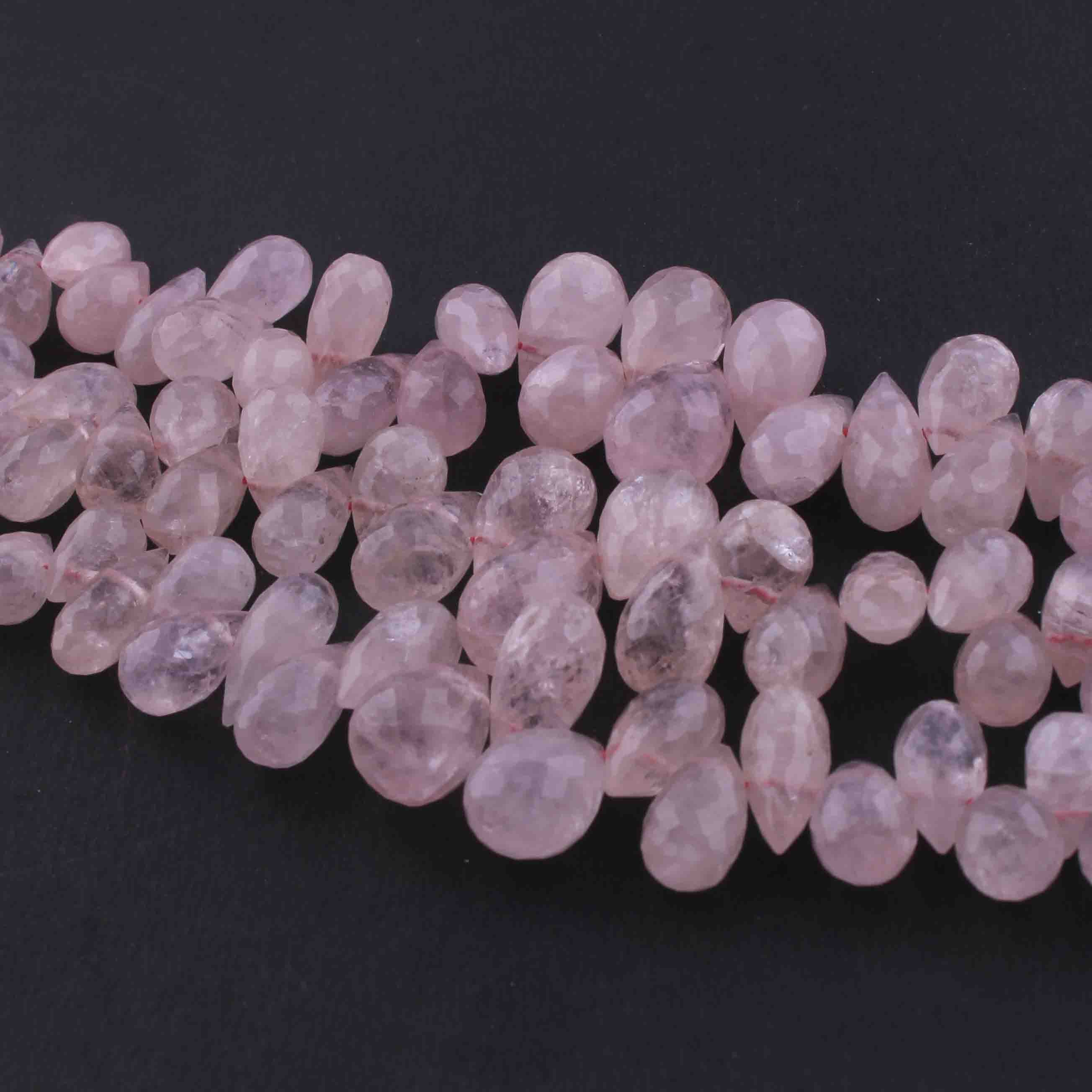 1 Strand Rose Quartz Faceted Tear Drop Briolettes - Rose Quartz Briolettes 16mmx10mm-8mmx7mm 8.5 Inches BR0723