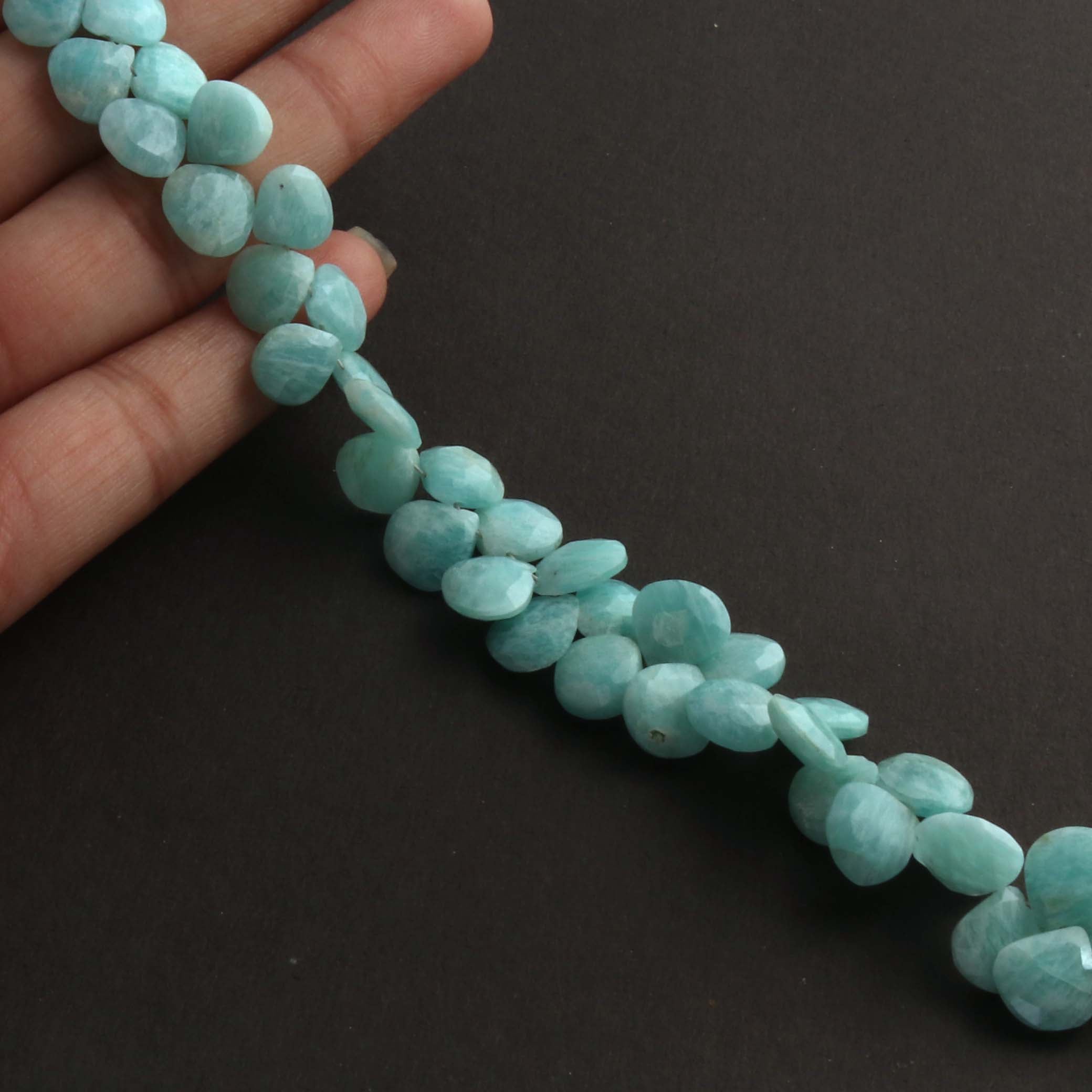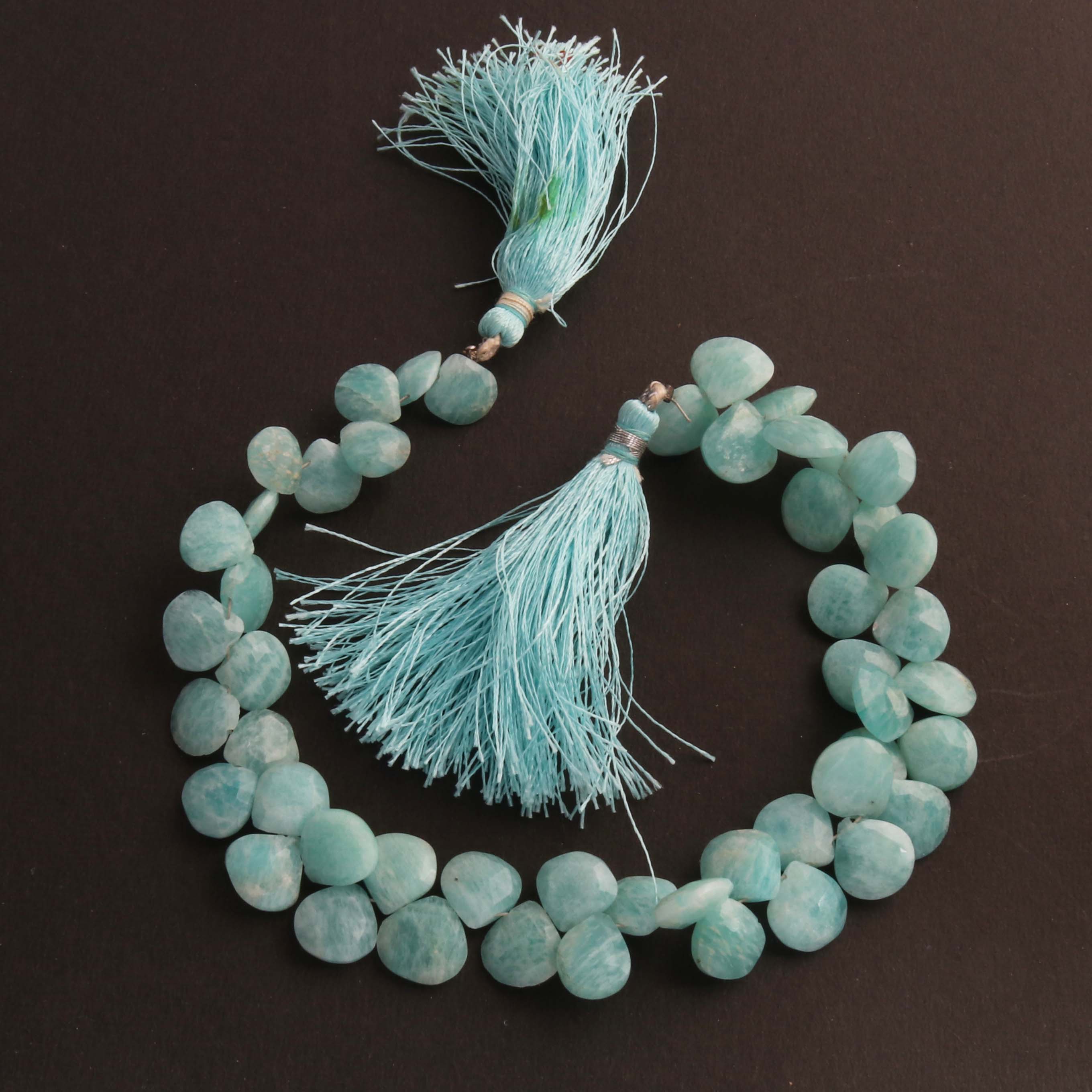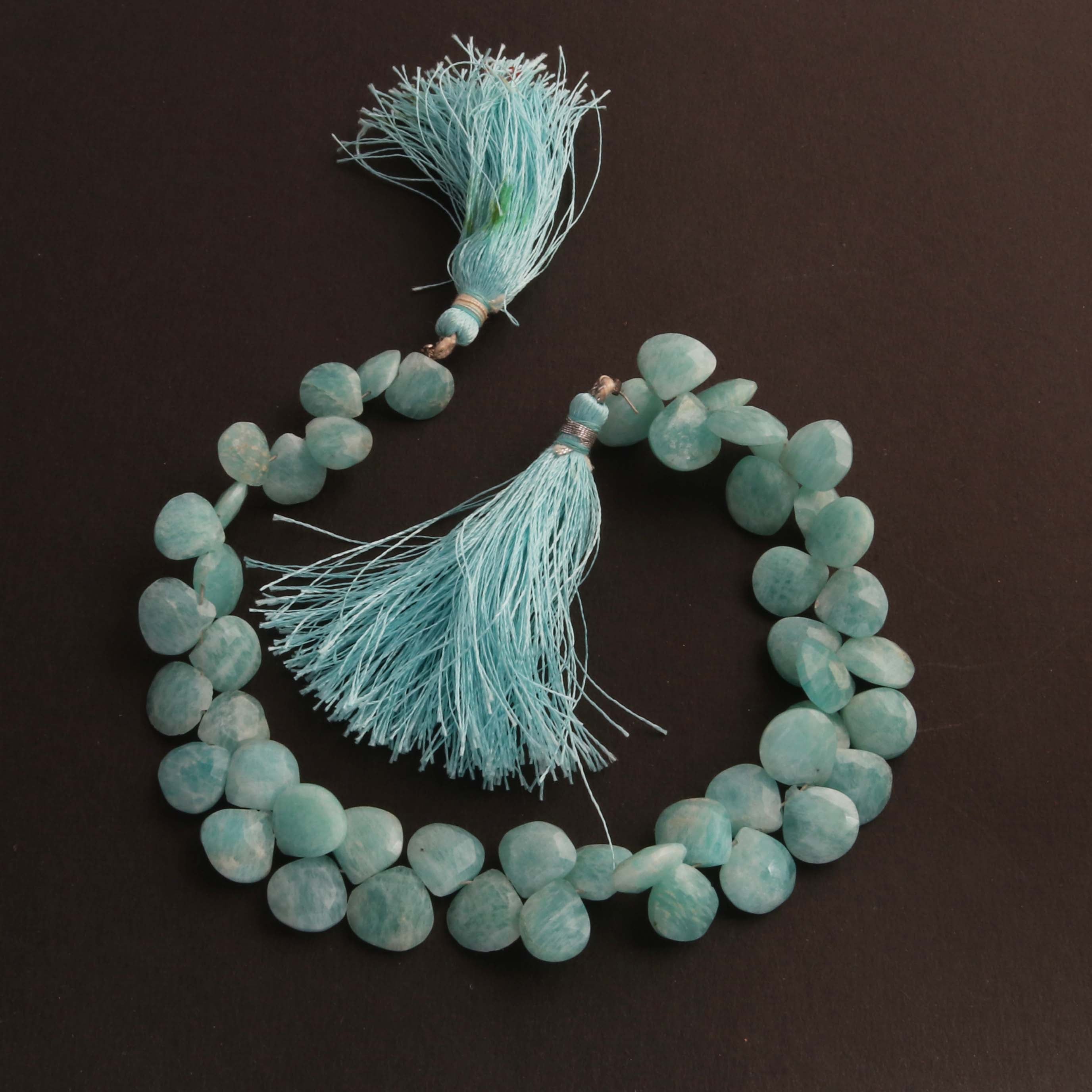 1 Long Strand Amazonite Faceted Briolettes - Heart Shape Briolettes -11mmx10mm-9mmx8mm- 9 Inches, BR02923