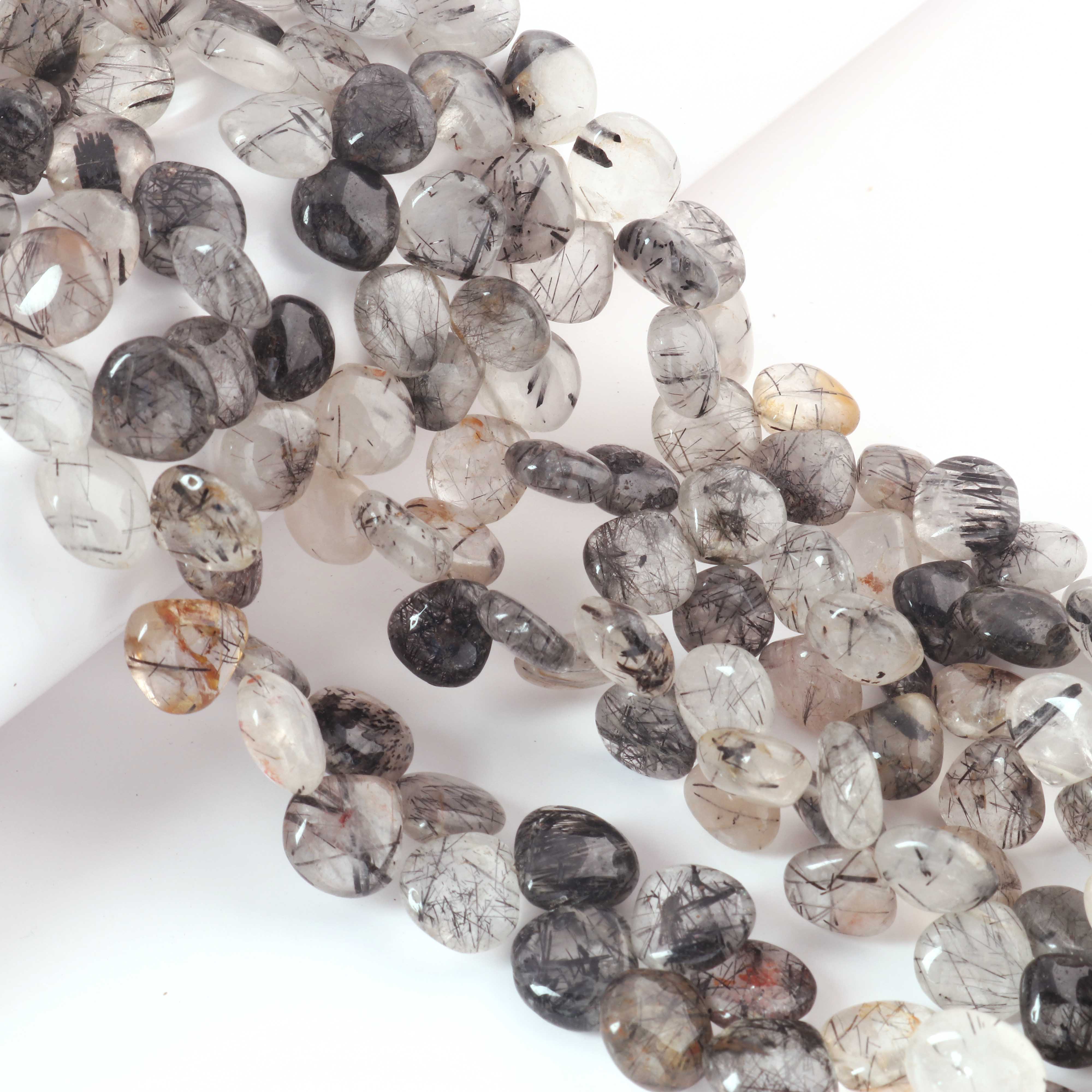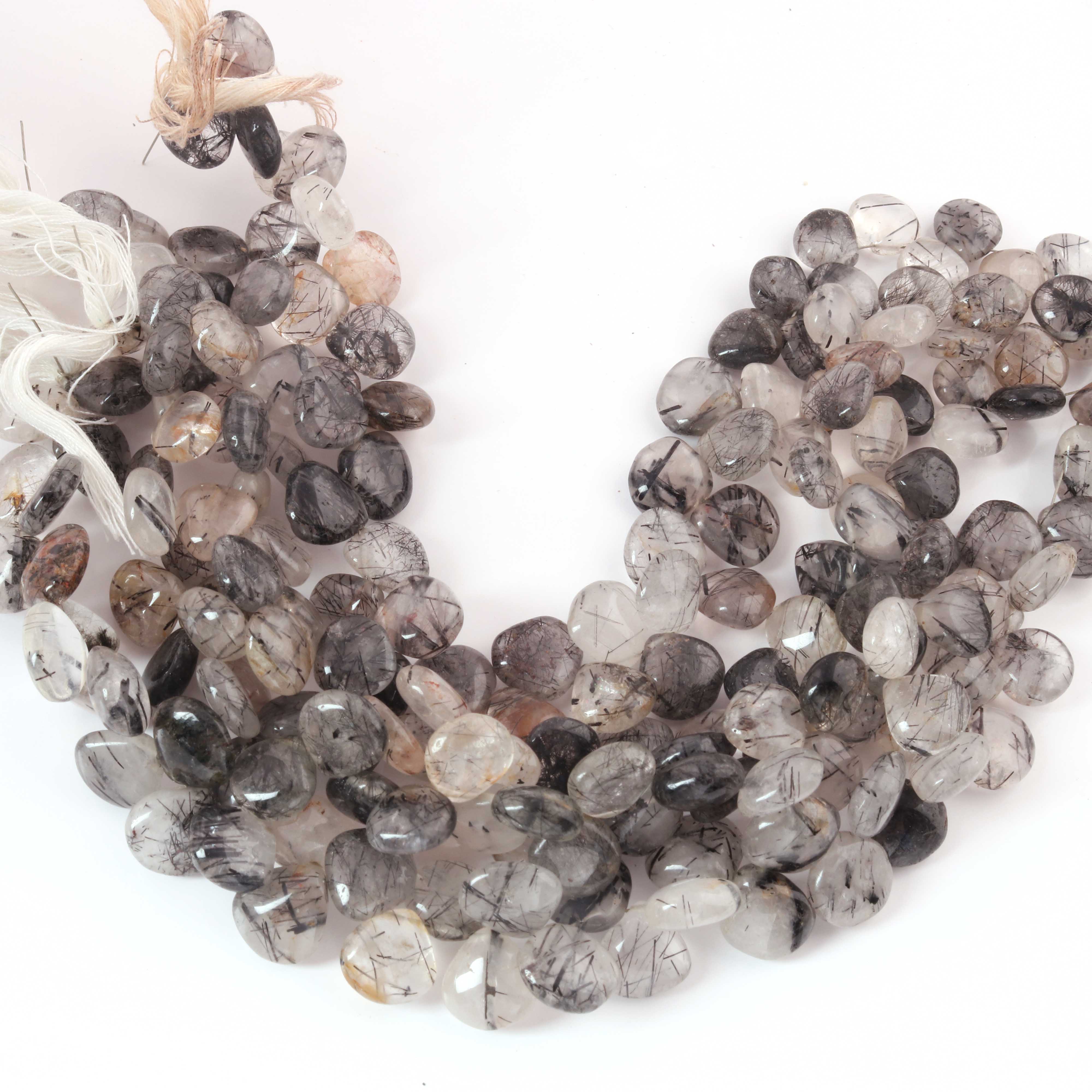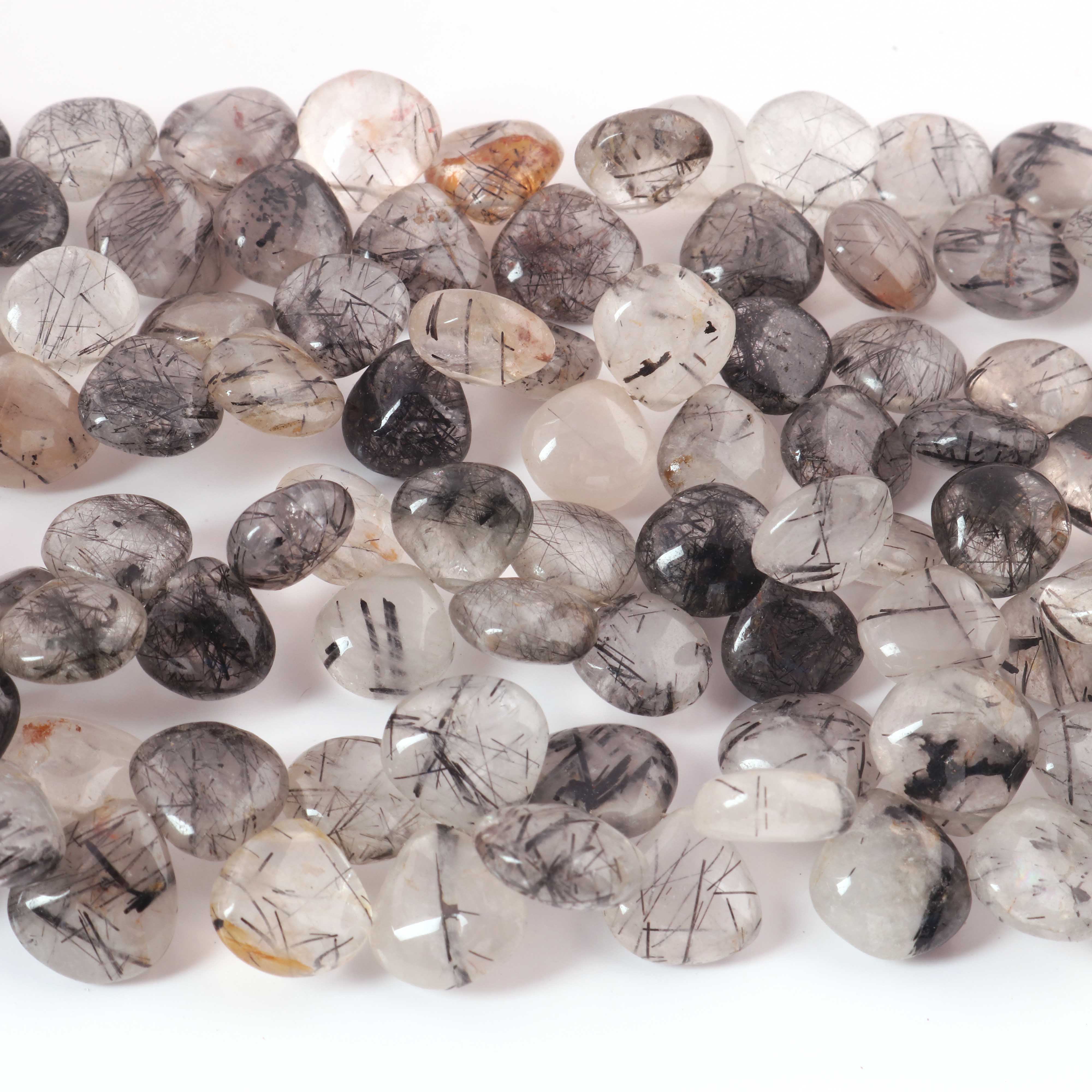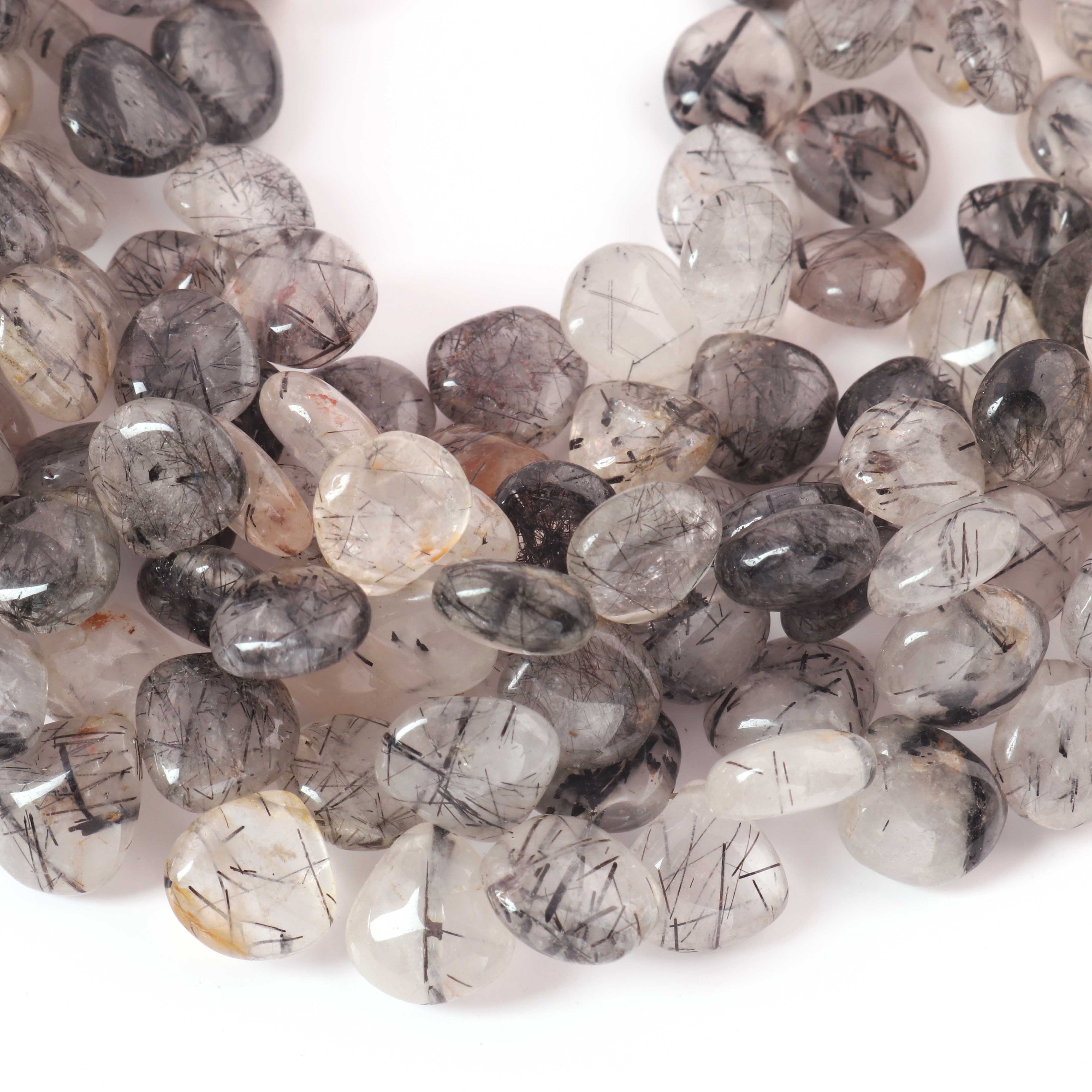 1 Strand Black Rutile Smooth Briolettes - Heart Shape Briolettes - 16mmx11mm-- 9.5 Inches BR03363