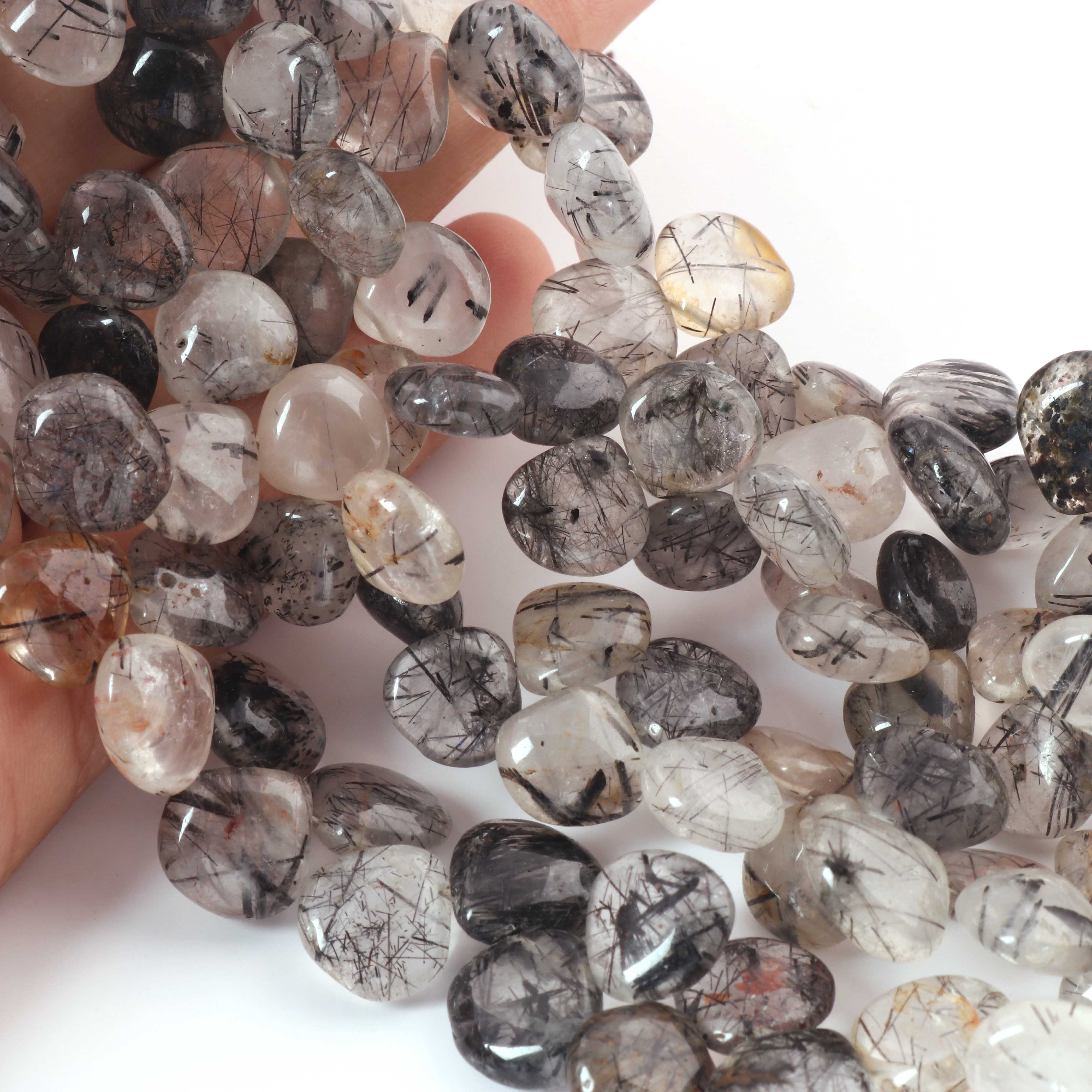 1  Strand Black Rutile  Smooth Briolettes - Heart Shape  Briolettes - 16mmx11mm-- 9.5 Inches BR03363