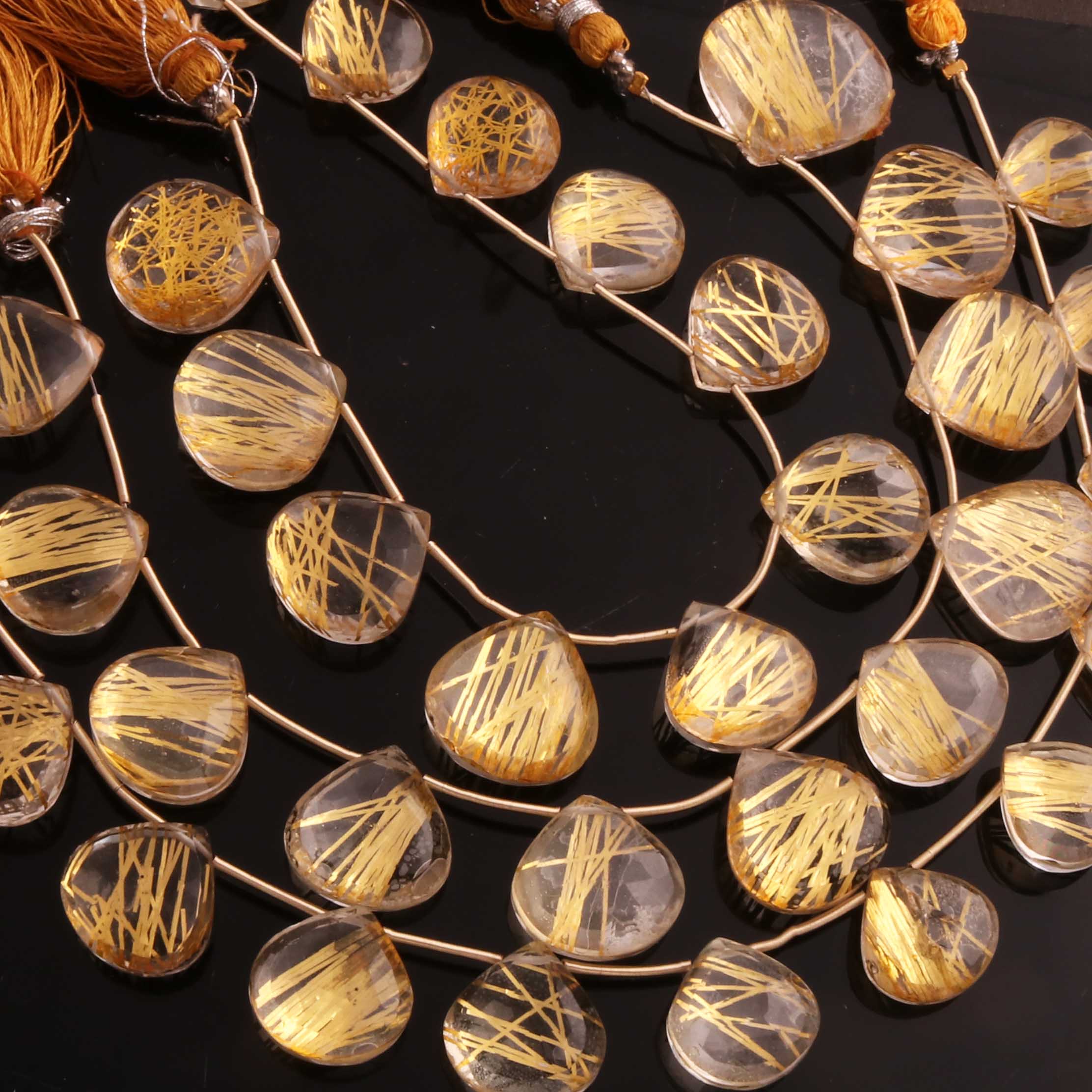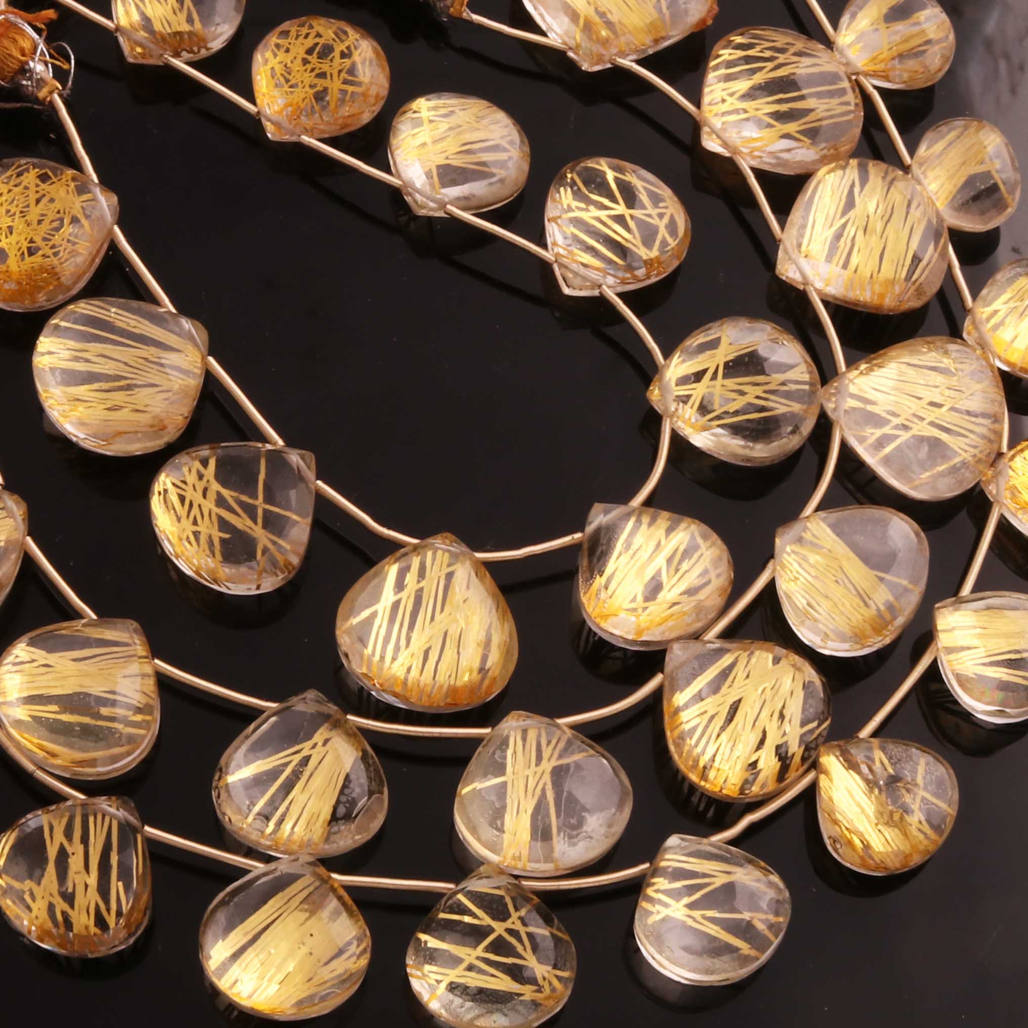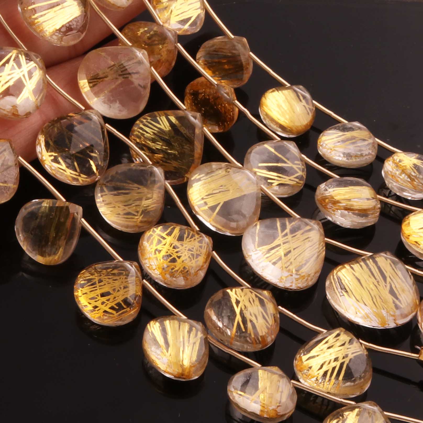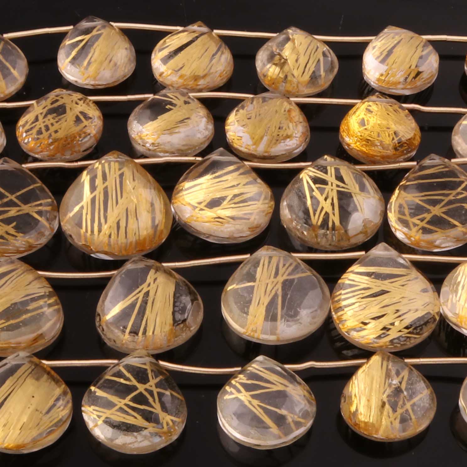 1 Strand Golden Rutile Faceted Briolettes - Golden Rutile Heart Gemstone Beads- 13mmx12mm-18mmx18mm 8 Inch BR02875